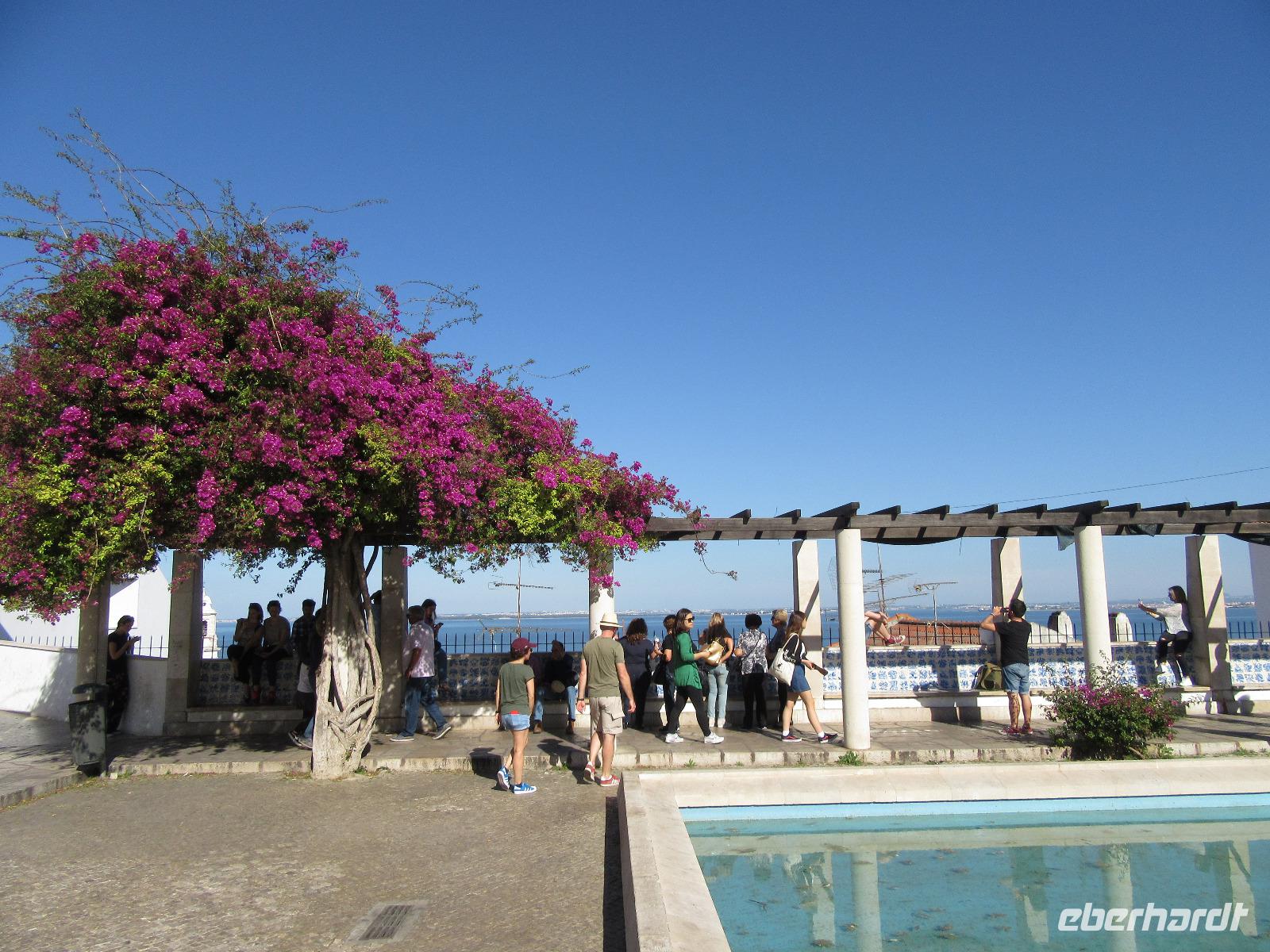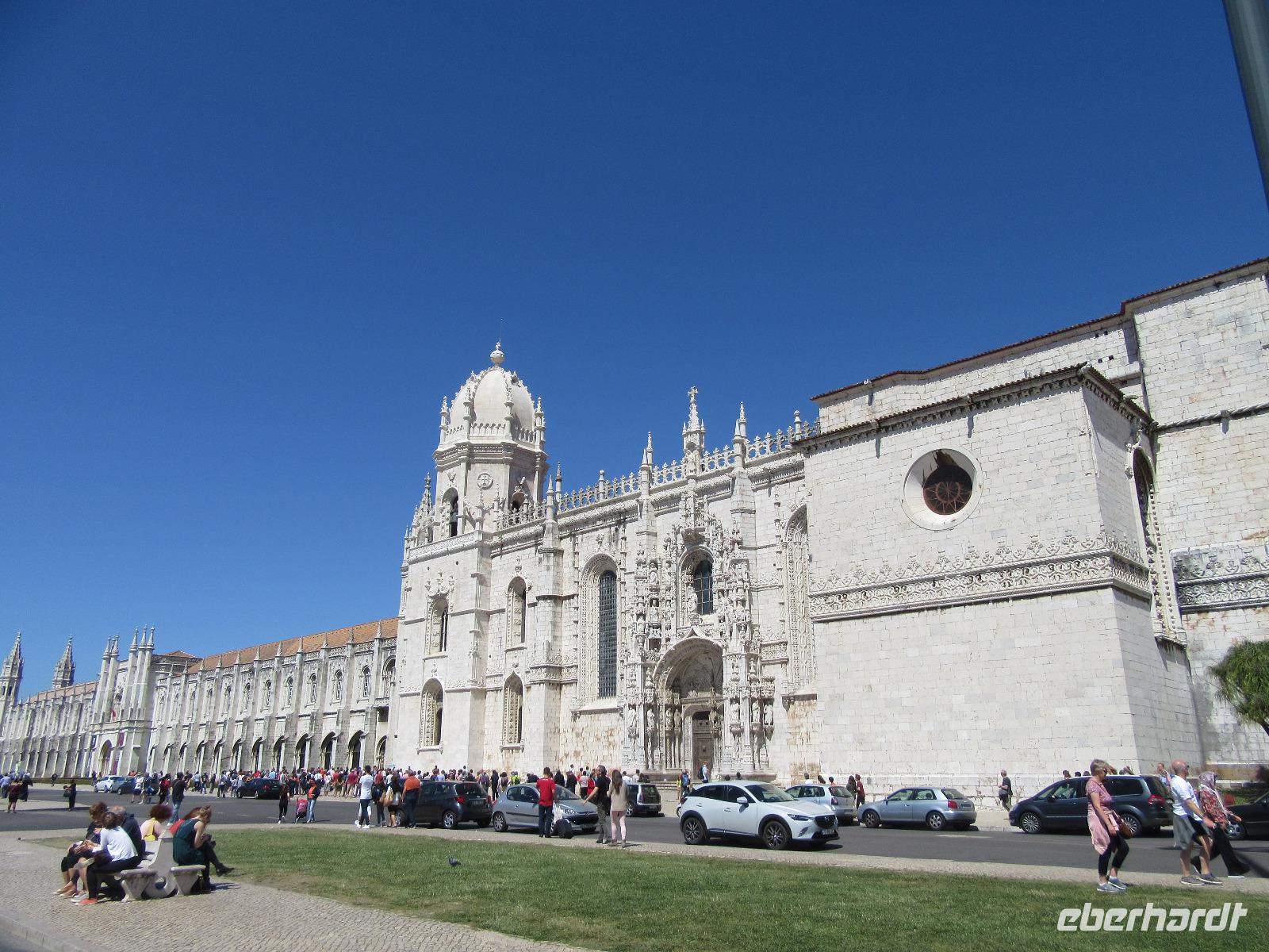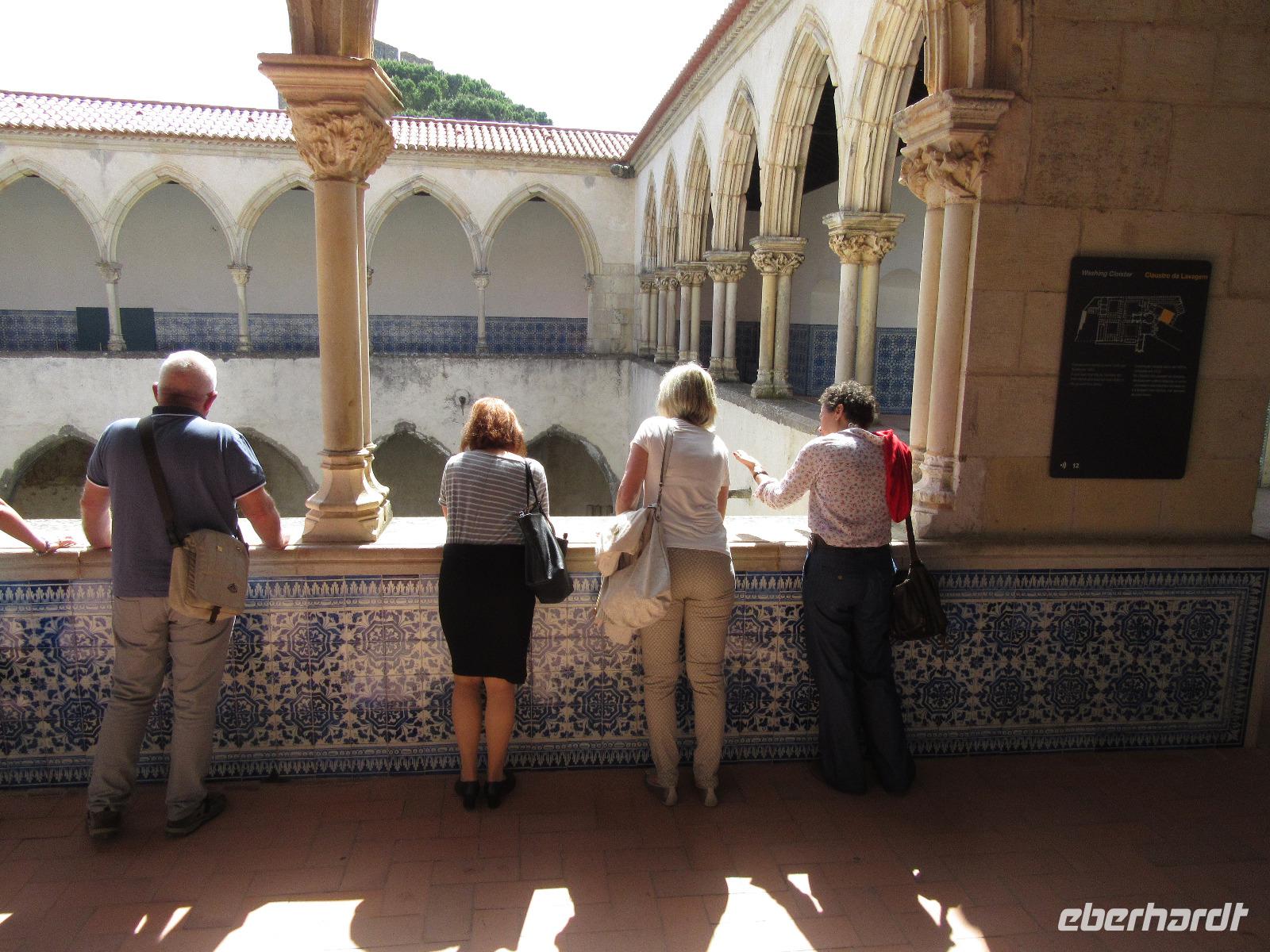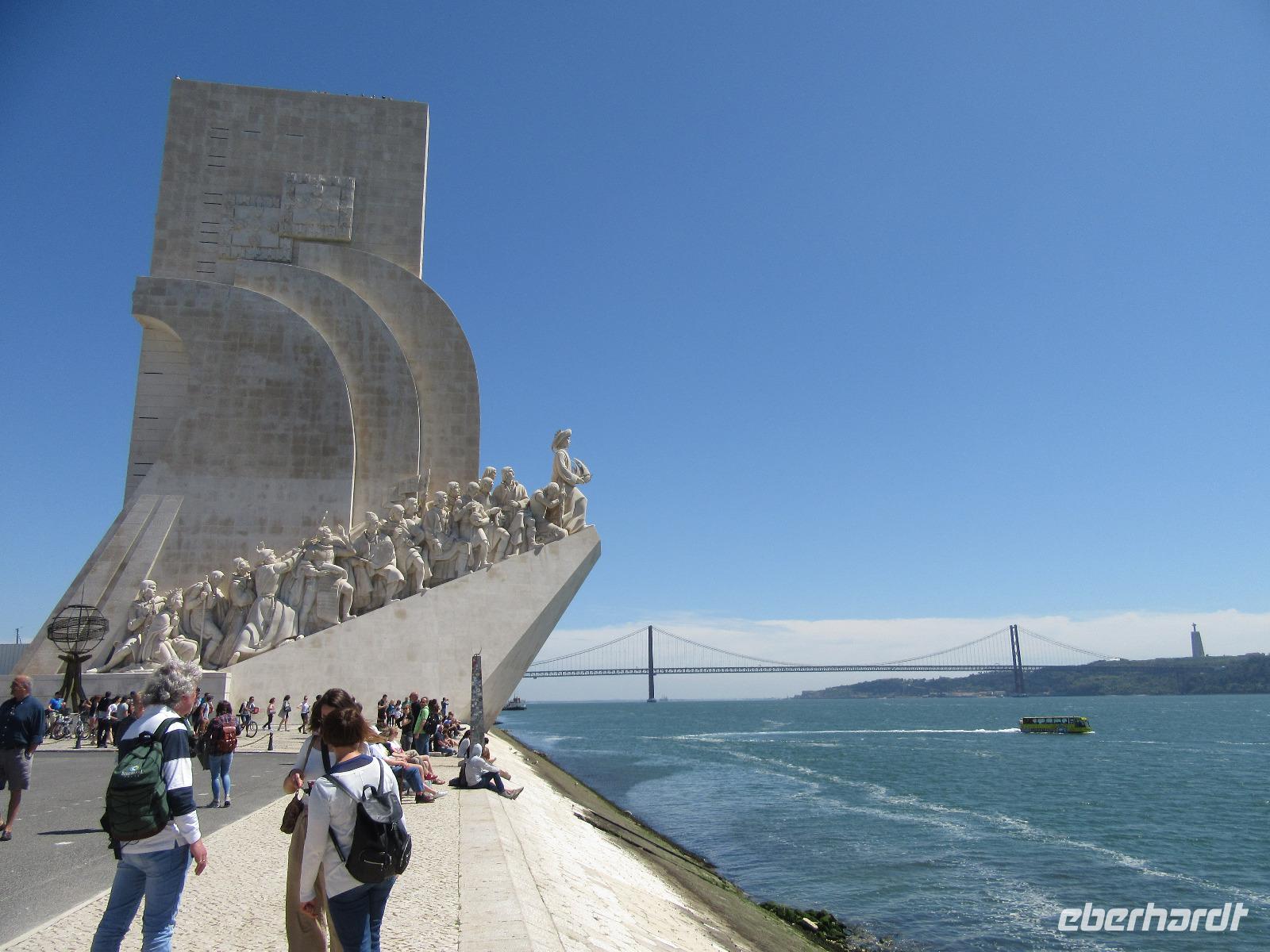 Nach einem guten Frühstück holte uns Isabel im Hotel ab und unsere Erkundungstour in Lisboa konnte beginnen. Während unser Bus durch den Stadtteil Baixa fuhr, begann Isabell mit ihren Ausführungen über die Geschichte der Stadt. Wir passierten den zentralen Rossio-Platz, einen gusseisernen Fahrstuhl, welcher von einem Schüler Gustav Eifels erbaut wurde und erreichten die Kathedrale der Stadt, die an der Stelle einer früheren Moschee errichtet wurde und sich im ältesten Stadtviertel Lissabons, der Alfama befand. Während der Ausführungen staunten wir über die üppigen Blumengestecke, die überall zu sehen waren. Unsere Besichtigungstour ging ab nun fußläufig entlang kleiner verwinkelter Gassen bis zum Park Eduardo oberhalb der Stadt. Die Aussicht war fantastisch! Wir konnten uns gar nicht satt sehen. Das unendliche Häusermeer, der Fluss Tejo, am Hochizont die riesige Jesusstatue und dazu strahlender Sonnenschein. Isabell gab uns ein wenig Zeit, den Ausblick und den Park Eduardo zu genießen. Unser anschließender Spaziergang durch die urige und verwinkelte Alfama führte uns wieder bis zu unserem Bus, der am Tejo auf uns wartete. Während wir nun auf die andere Seite der Stadt fuhren, passierten wir die Brücke des 25. April, die baugleich der Golden Gate Bridge aussah. Sie wurde von einem amerikanischen Konsortium nach den Plänen des Architekten David B. Steinmann erbaut. Da wir über die Osterfeiertage in Portugals Hauptstadt verweilten, war es sehr voll am Hieronimuskloster. Lange Schlangen aus Wartenden zogen sich um das Gebäude. Wir nutzen die Zeit, um ein wenig im angrenzenden Park zu schlendern oder dem Flohmarkt einen Besuch abzustatten. Natürlich durfte eine Kostprobe der hiesigen Spezialität nicht fehlen. Noch ganz warme Pasteis de Belem stillten unseren aufkommenden Hunger, da es bereits Mittagszeit war. Die Fábrica dos Pastéis de Belém stellt bereits seit 1837 die kleinen Puddingteilchen her und das Rezept wurde bis heute geheim gehalten. Nun führte uns ein kleiner Spaziergang zum imposanten Denkmal der Entdecker, welches 1960 zum 500. Todestag von Heinrich dem Seefahrer errichtet wurde. Das Bodenmosaik zu Füßen des Denkmals erinnerte an die großen Seefahrerzeiten. Nach einer kurzen Busfahrt erreichten wir den Torre de Belém. Der Wachturm am Tejo gilt als das Wahrzeichen der Stadt und bewachte früher die Einfahrt der Karavellen. Wir nutzten die freie Zeit für einen Mittagssnack und einen Spaziergang in der Sonne. Ein Flugzeug, welches an die Überquerung des Atlantiks 1922 erinnerte, weckte zum Abschluss unseres Aufenthaltes unsere Aufmerksamkeit. Ein weiterer kleiner Höhepunkt wartete nun auf uns. Der Bus fuhr uns wieder in die Innenstadt und wir stiegen um auf ein altes Fährschiff, was jetzt für Ausflugsfahrten diente. Während der 90 minütigen Bootsfahrt konnten wir alle bereits besuchten Sehenswürdigkeiten des Tages vom Wasser aus betrachten und alles noch einmal Revue passieren lassen. Anschließend nutzte jeder die Zeit bis zum Abendessen, wie er wollte und so trafen wir uns alle im Hotelrestaurant wieder. Aber was war das? Der Osterhase war vorbei gekommen und hatte jedem einen kleinen Gruß da gelassen. Den Abschluss des Tages krönten wir mit einem kleinen nächtlichen Spaziergang und einer Kostprobe des unter Einheimischen sehr beliebten Kirschlikörs Qinqinha. Natürlich im ältesten Verkaufsladen der Stadt, traditionell auf klebrigen Fußboden.