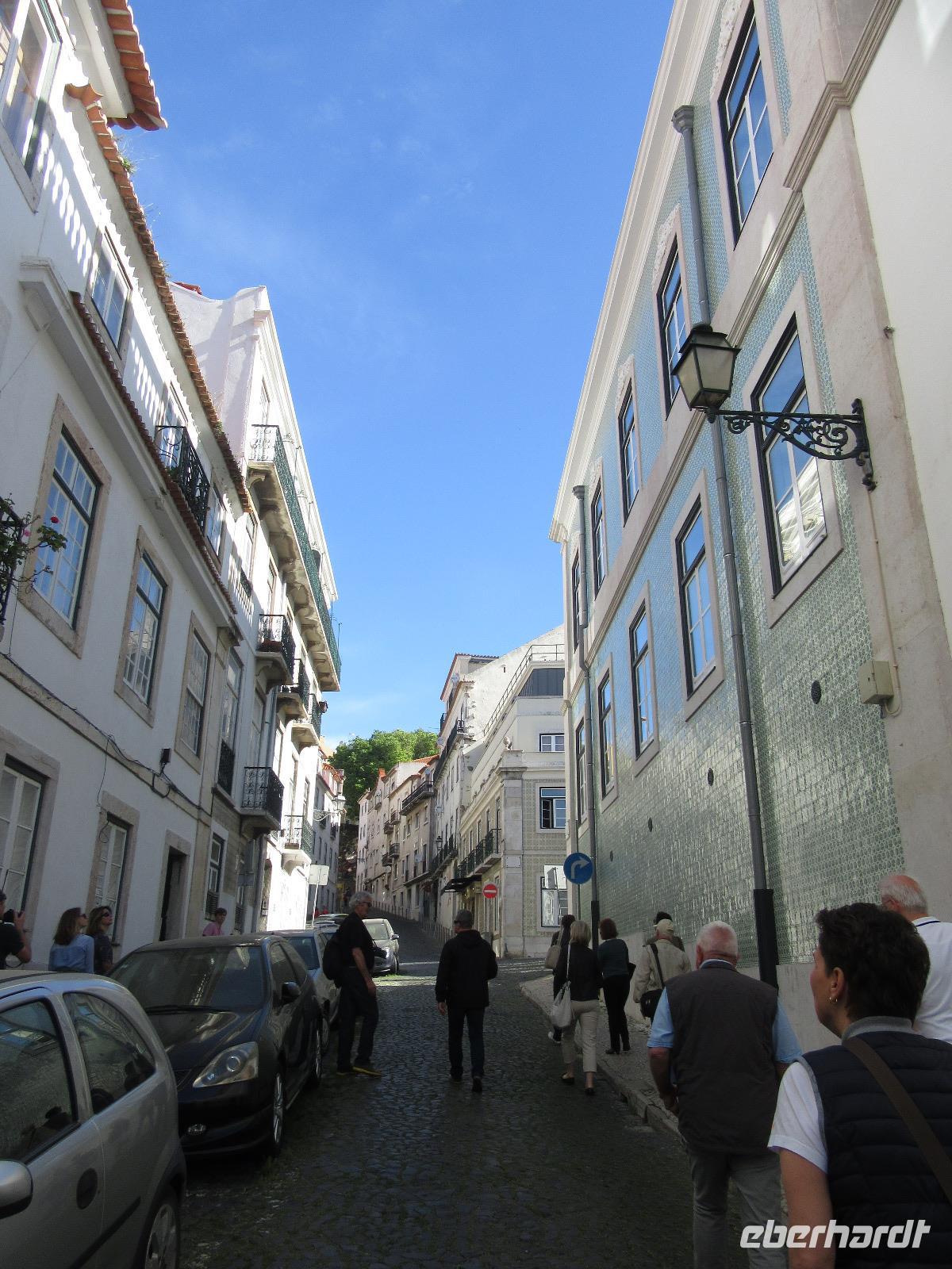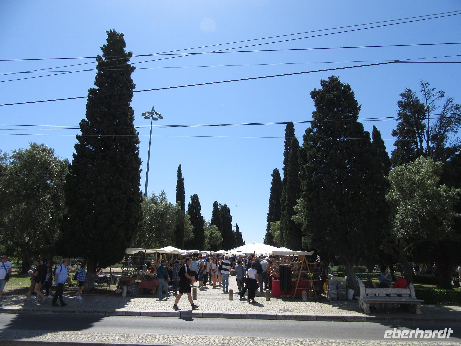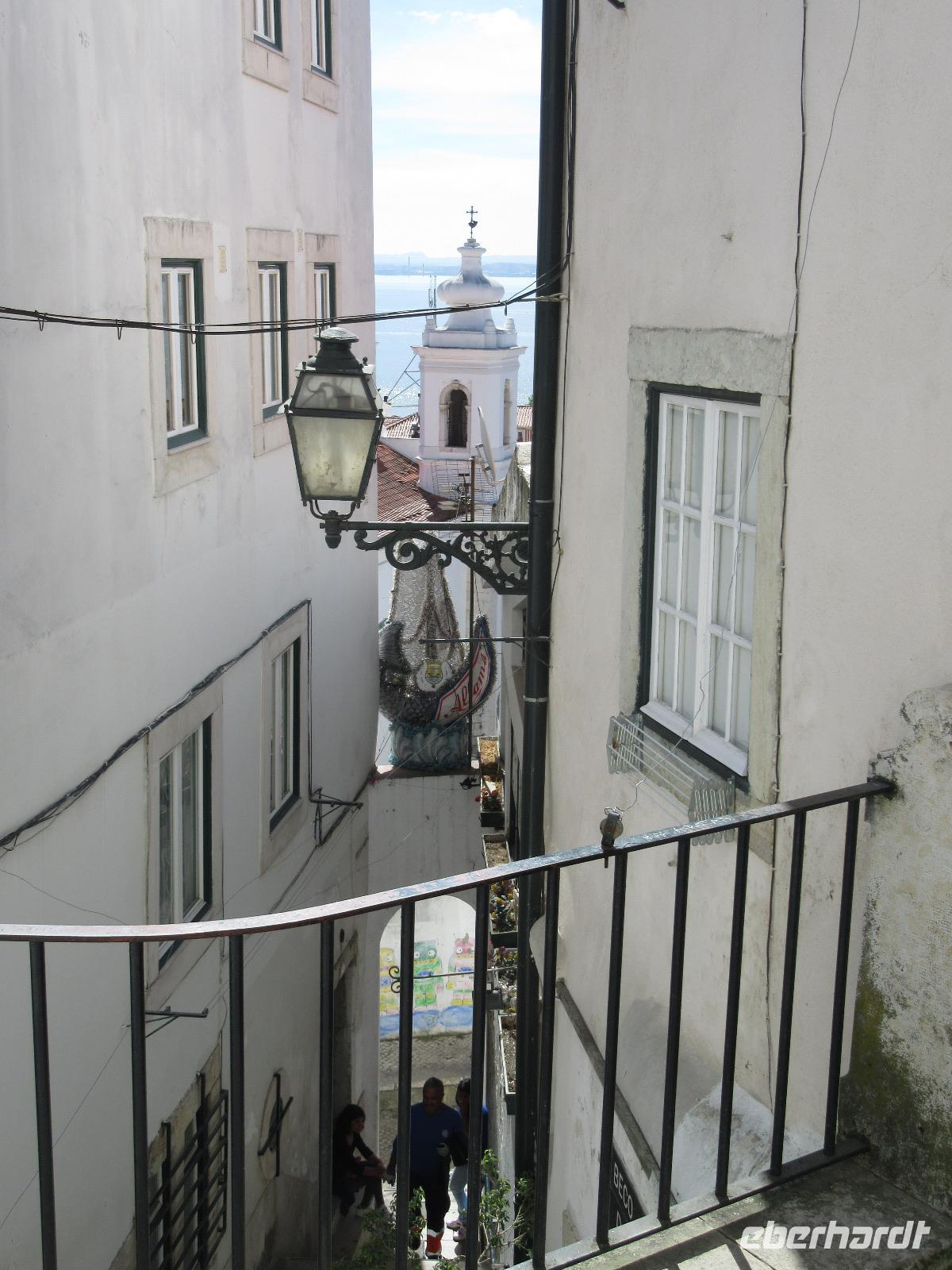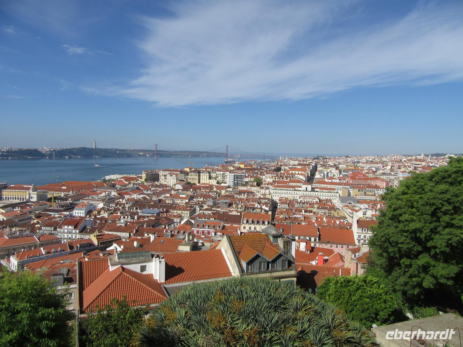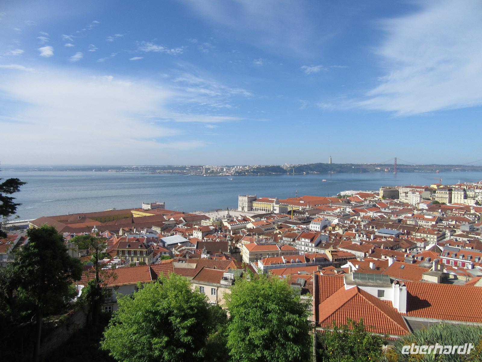 Nach einem guten Frühstück holte uns Isabel im Hotel ab und unsere Erkundungstour in Lisboa konnte beginnen. Während unser Bus durch den Stadtteil Baixa fuhr, begann Isabell mit ihren Ausführungen über die Geschichte der Stadt. Wir passierten den zentralen Rossio-Platz, einen gusseisernen Fahrstuhl, welcher von einem Schüler Gustav Eifels erbaut wurde und erreichten die Kathedrale der Stadt, die an der Stelle einer früheren Moschee errichtet wurde und sich im ältesten Stadtviertel Lissabons, der Alfama befand. Während der Ausführungen staunten wir über die üppigen Blumengestecke, die überall zu sehen waren. Unsere Besichtigungstour ging ab nun fußläufig entlang kleiner verwinkelter Gassen bis zum Park Eduardo oberhalb der Stadt. Die Aussicht war fantastisch! Wir konnten uns gar nicht satt sehen. Das unendliche Häusermeer, der Fluss Tejo, am Hochizont die riesige Jesusstatue und dazu strahlender Sonnenschein. Isabell gab uns ein wenig Zeit, den Ausblick und den Park Eduardo zu genießen. Unser anschließender Spaziergang durch die urige und verwinkelte Alfama führte uns wieder bis zu unserem Bus, der am Tejo auf uns wartete. Während wir nun auf die andere Seite der Stadt fuhren, passierten wir die Brücke des 25. April, die baugleich der Golden Gate Bridge aussah. Sie wurde von einem amerikanischen Konsortium nach den Plänen des Architekten David B. Steinmann erbaut. Da wir über die Osterfeiertage in Portugals Hauptstadt verweilten, war es sehr voll am Hieronimuskloster. Lange Schlangen aus Wartenden zogen sich um das Gebäude. Wir nutzen die Zeit, um ein wenig im angrenzenden Park zu schlendern oder dem Flohmarkt einen Besuch abzustatten. Natürlich durfte eine Kostprobe der hiesigen Spezialität nicht fehlen. Noch ganz warme Pasteis de Belem stillten unseren aufkommenden Hunger, da es bereits Mittagszeit war. Die Fábrica dos Pastéis de Belém stellt bereits seit 1837 die kleinen Puddingteilchen her und das Rezept wurde bis heute geheim gehalten. Nun führte uns ein kleiner Spaziergang zum imposanten Denkmal der Entdecker, welches 1960 zum 500. Todestag von Heinrich dem Seefahrer errichtet wurde. Das Bodenmosaik zu Füßen des Denkmals erinnerte an die großen Seefahrerzeiten. Nach einer kurzen Busfahrt erreichten wir den Torre de Belém. Der Wachturm am Tejo gilt als das Wahrzeichen der Stadt und bewachte früher die Einfahrt der Karavellen. Wir nutzten die freie Zeit für einen Mittagssnack und einen Spaziergang in der Sonne. Ein Flugzeug, welches an die Überquerung des Atlantiks 1922 erinnerte, weckte zum Abschluss unseres Aufenthaltes unsere Aufmerksamkeit. Ein weiterer kleiner Höhepunkt wartete nun auf uns. Der Bus fuhr uns wieder in die Innenstadt und wir stiegen um auf ein altes Fährschiff, was jetzt für Ausflugsfahrten diente. Während der 90 minütigen Bootsfahrt konnten wir alle bereits besuchten Sehenswürdigkeiten des Tages vom Wasser aus betrachten und alles noch einmal Revue passieren lassen. Anschließend nutzte jeder die Zeit bis zum Abendessen, wie er wollte und so trafen wir uns alle im Hotelrestaurant wieder. Aber was war das? Der Osterhase war vorbei gekommen und hatte jedem einen kleinen Gruß da gelassen. Den Abschluss des Tages krönten wir mit einem kleinen nächtlichen Spaziergang und einer Kostprobe des unter Einheimischen sehr beliebten Kirschlikörs Qinqinha. Natürlich im ältesten Verkaufsladen der Stadt, traditionell auf klebrigen Fußboden.
