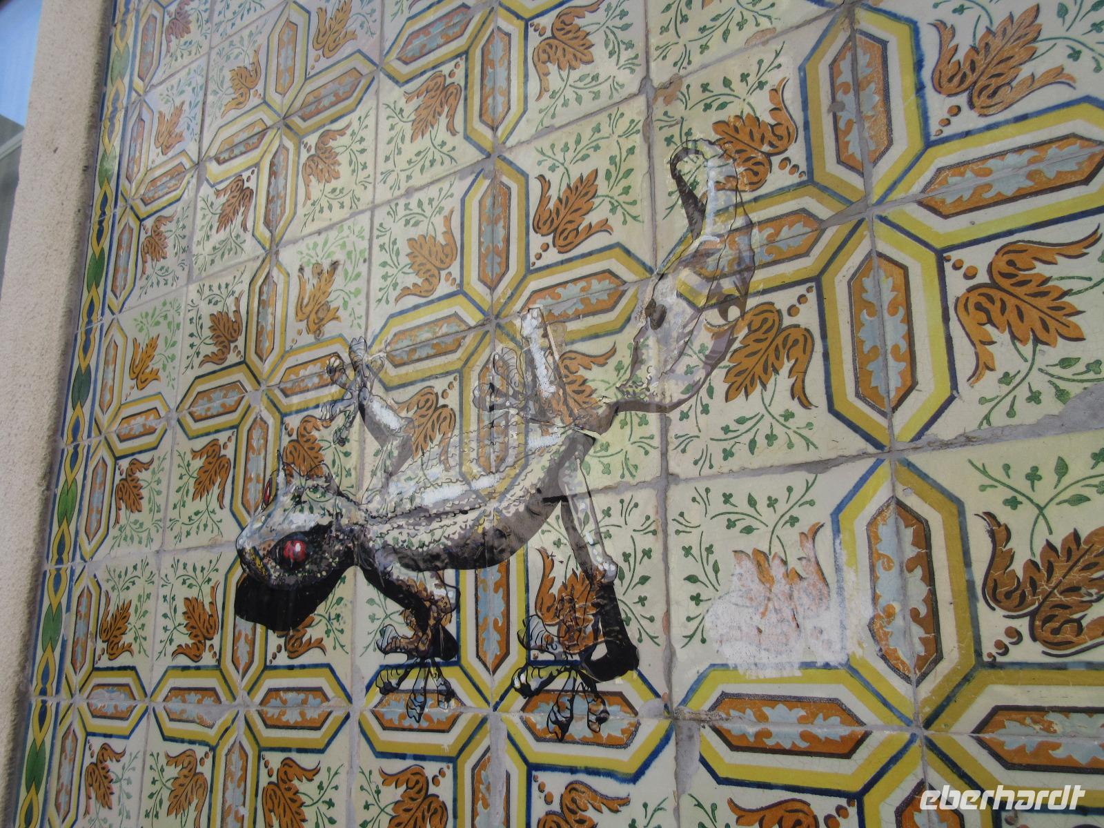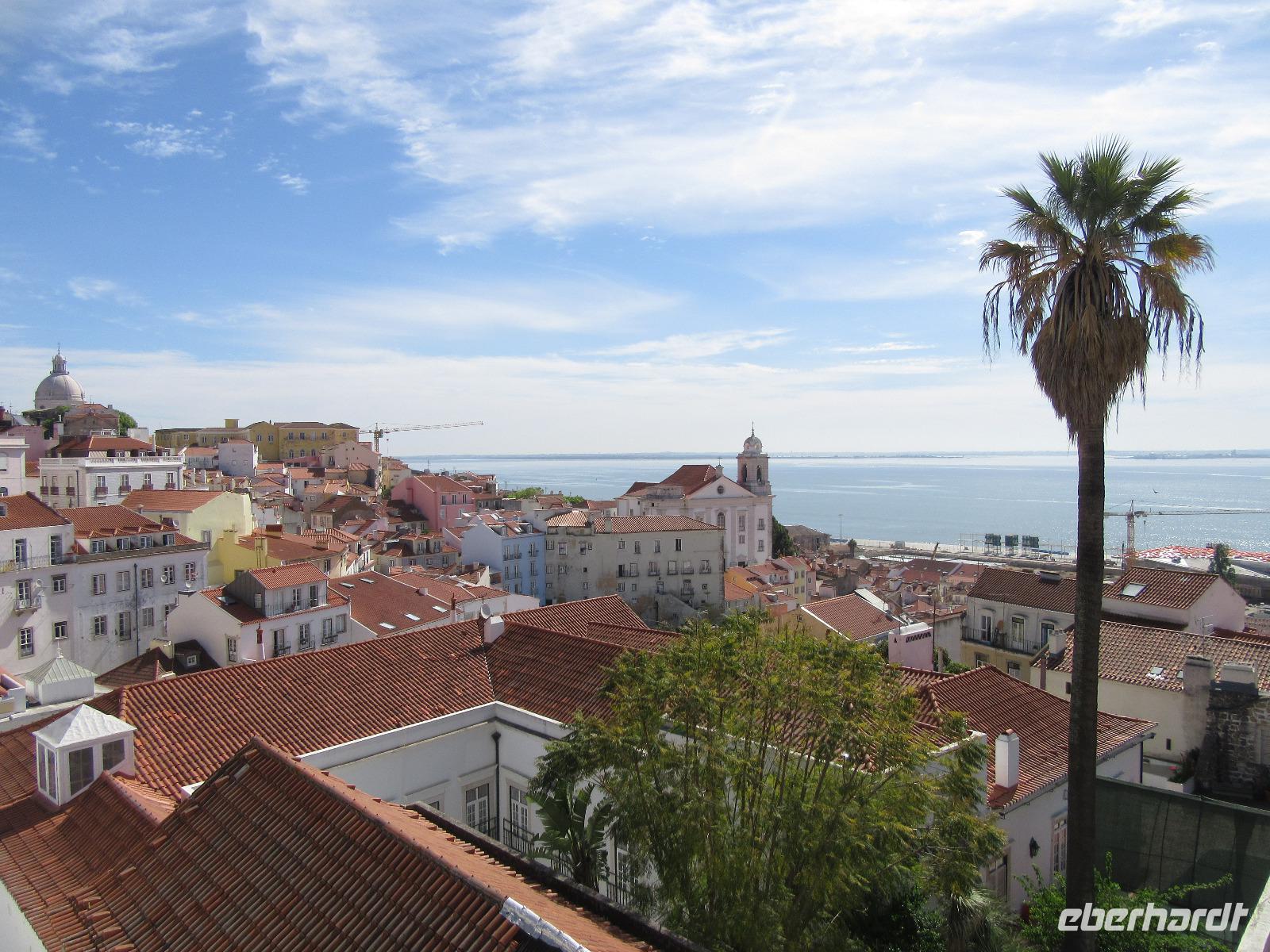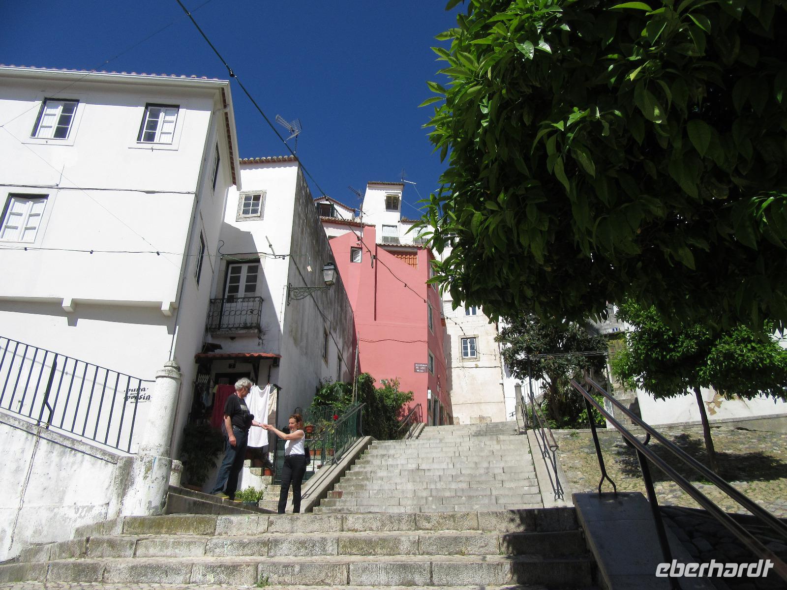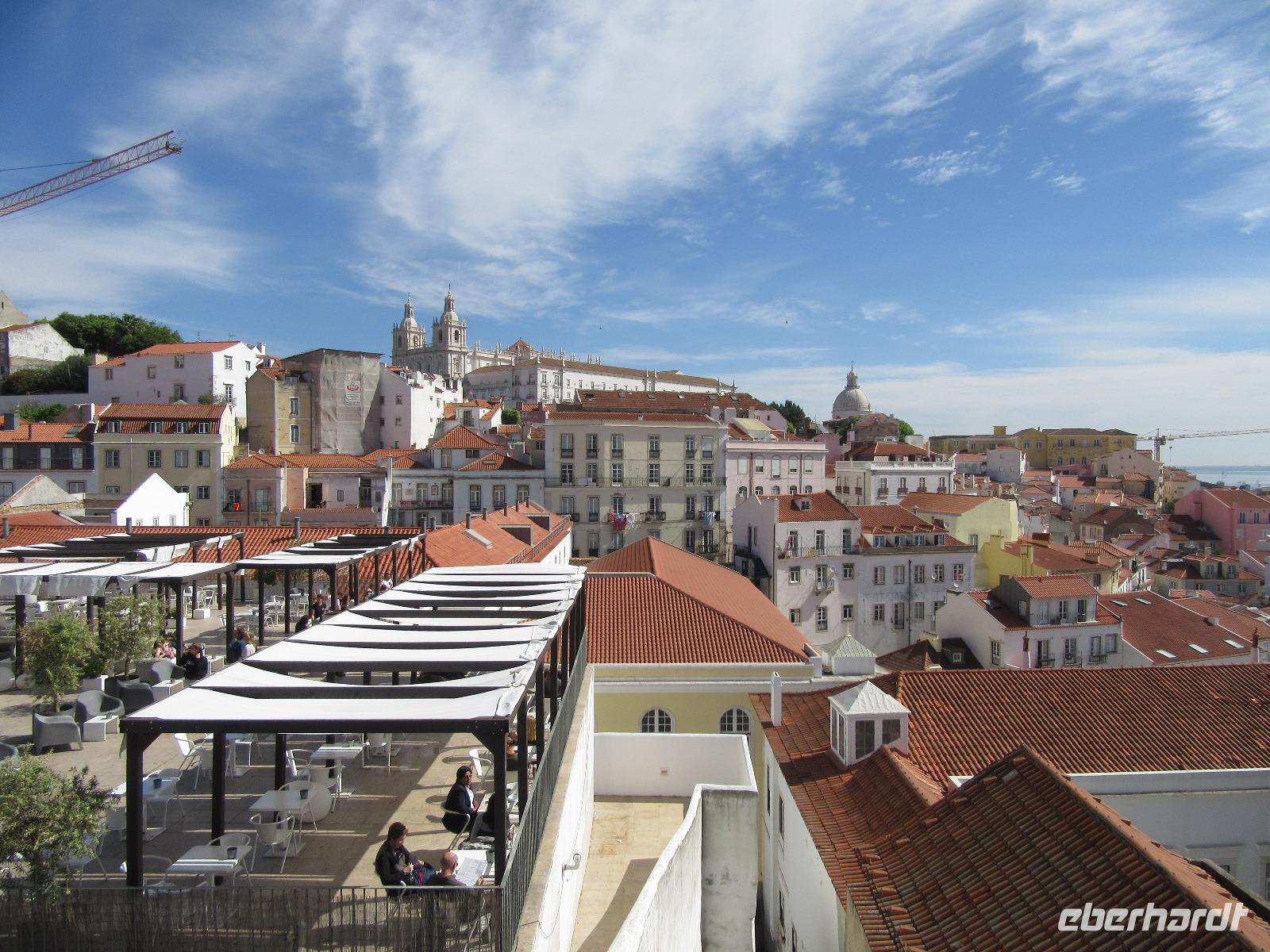 Nach einem guten Frühstück holte uns Isabel im Hotel ab und unsere Erkundungstour in Lisboa konnte beginnen. Während unser Bus durch den Stadtteil Baixa fuhr, begann Isabell mit ihren Ausführungen über die Geschichte der Stadt. Wir passierten den zentralen Rossio-Platz, einen gusseisernen Fahrstuhl, welcher von einem Schüler Gustav Eifels erbaut wurde und erreichten die Kathedrale der Stadt, die an der Stelle einer früheren Moschee errichtet wurde und sich im ältesten Stadtviertel Lissabons, der Alfama befand. Während der Ausführungen staunten wir über die üppigen Blumengestecke, die überall zu sehen waren. Unsere Besichtigungstour ging ab nun fußläufig entlang kleiner verwinkelter Gassen bis zum Park Eduardo oberhalb der Stadt. Die Aussicht war fantastisch! Wir konnten uns gar nicht satt sehen. Das unendliche Häusermeer, der Fluss Tejo, am Hochizont die riesige Jesusstatue und dazu strahlender Sonnenschein. Isabell gab uns ein wenig Zeit, den Ausblick und den Park Eduardo zu genießen. Unser anschließender Spaziergang durch die urige und verwinkelte Alfama führte uns wieder bis zu unserem Bus, der am Tejo auf uns wartete. Während wir nun auf die andere Seite der Stadt fuhren, passierten wir die Brücke des 25. April, die baugleich der Golden Gate Bridge aussah. Sie wurde von einem amerikanischen Konsortium nach den Plänen des Architekten David B. Steinmann erbaut. Da wir über die Osterfeiertage in Portugals Hauptstadt verweilten, war es sehr voll am Hieronimuskloster. Lange Schlangen aus Wartenden zogen sich um das Gebäude. Wir nutzen die Zeit, um ein wenig im angrenzenden Park zu schlendern oder dem Flohmarkt einen Besuch abzustatten. Natürlich durfte eine Kostprobe der hiesigen Spezialität nicht fehlen. Noch ganz warme Pasteis de Belem stillten unseren aufkommenden Hunger, da es bereits Mittagszeit war. Die Fábrica dos Pastéis de Belém stellt bereits seit 1837 die kleinen Puddingteilchen her und das Rezept wurde bis heute geheim gehalten. Nun führte uns ein kleiner Spaziergang zum imposanten Denkmal der Entdecker, welches 1960 zum 500. Todestag von Heinrich dem Seefahrer errichtet wurde. Das Bodenmosaik zu Füßen des Denkmals erinnerte an die großen Seefahrerzeiten. Nach einer kurzen Busfahrt erreichten wir den Torre de Belém. Der Wachturm am Tejo gilt als das Wahrzeichen der Stadt und bewachte früher die Einfahrt der Karavellen. Wir nutzten die freie Zeit für einen Mittagssnack und einen Spaziergang in der Sonne. Ein Flugzeug, welches an die Überquerung des Atlantiks 1922 erinnerte, weckte zum Abschluss unseres Aufenthaltes unsere Aufmerksamkeit. Ein weiterer kleiner Höhepunkt wartete nun auf uns. Der Bus fuhr uns wieder in die Innenstadt und wir stiegen um auf ein altes Fährschiff, was jetzt für Ausflugsfahrten diente. Während der 90 minütigen Bootsfahrt konnten wir alle bereits besuchten Sehenswürdigkeiten des Tages vom Wasser aus betrachten und alles noch einmal Revue passieren lassen. Anschließend nutzte jeder die Zeit bis zum Abendessen, wie er wollte und so trafen wir uns alle im Hotelrestaurant wieder. Aber was war das? Der Osterhase war vorbei gekommen und hatte jedem einen kleinen Gruß da gelassen. Den Abschluss des Tages krönten wir mit einem kleinen nächtlichen Spaziergang und einer Kostprobe des unter Einheimischen sehr beliebten Kirschlikörs Qinqinha. Natürlich im ältesten Verkaufsladen der Stadt, traditionell auf klebrigen Fußboden.