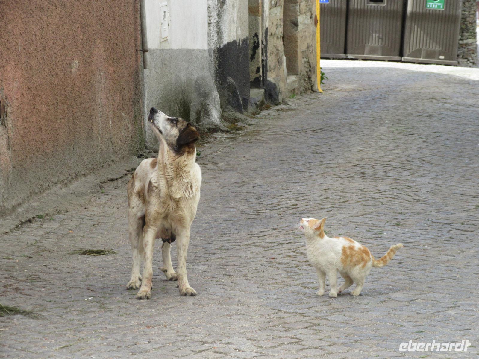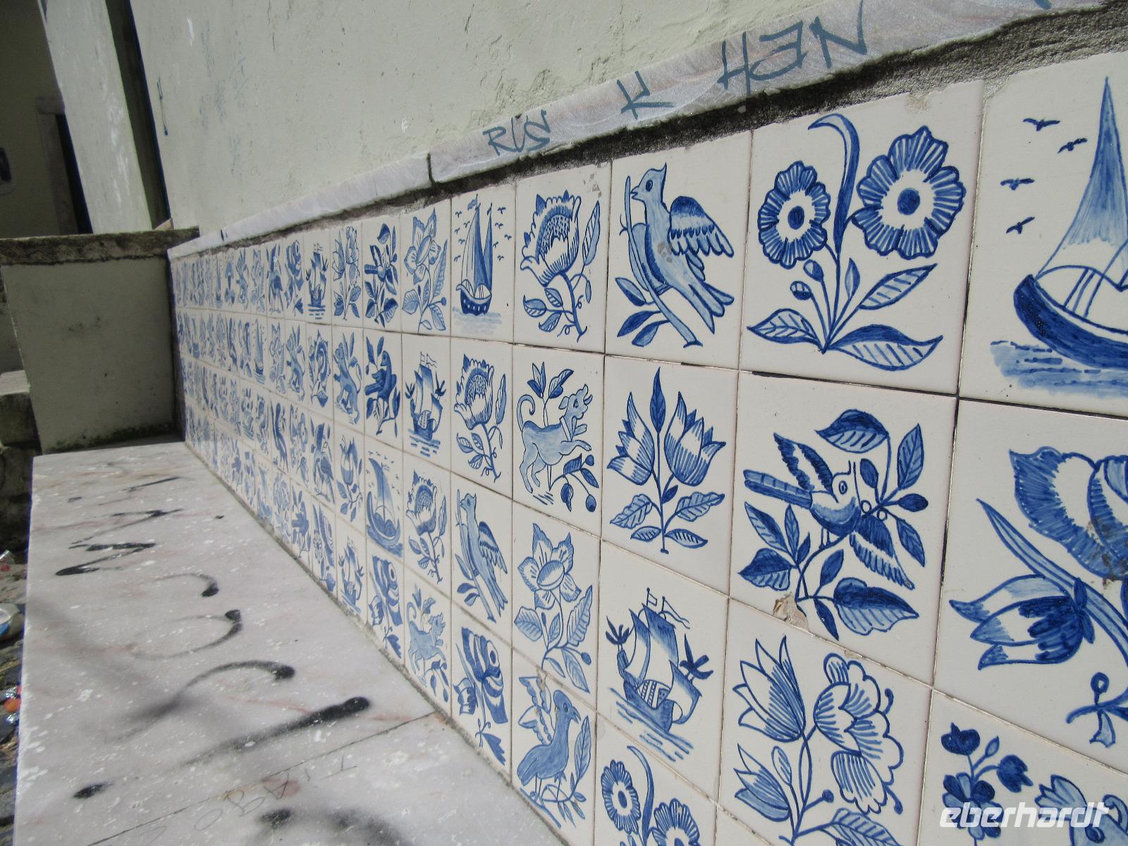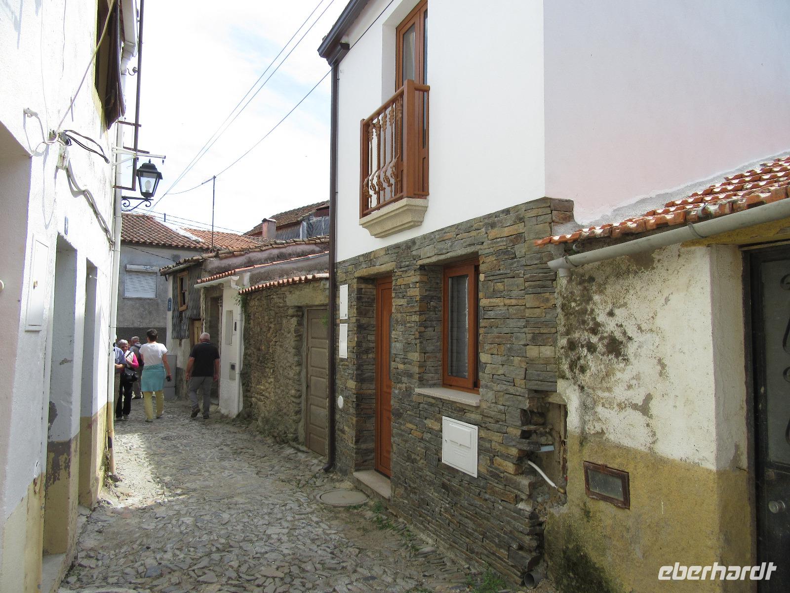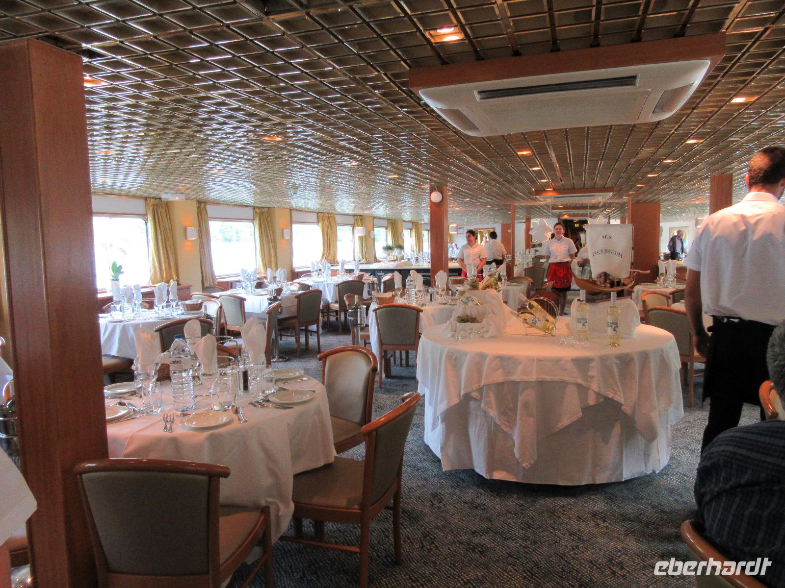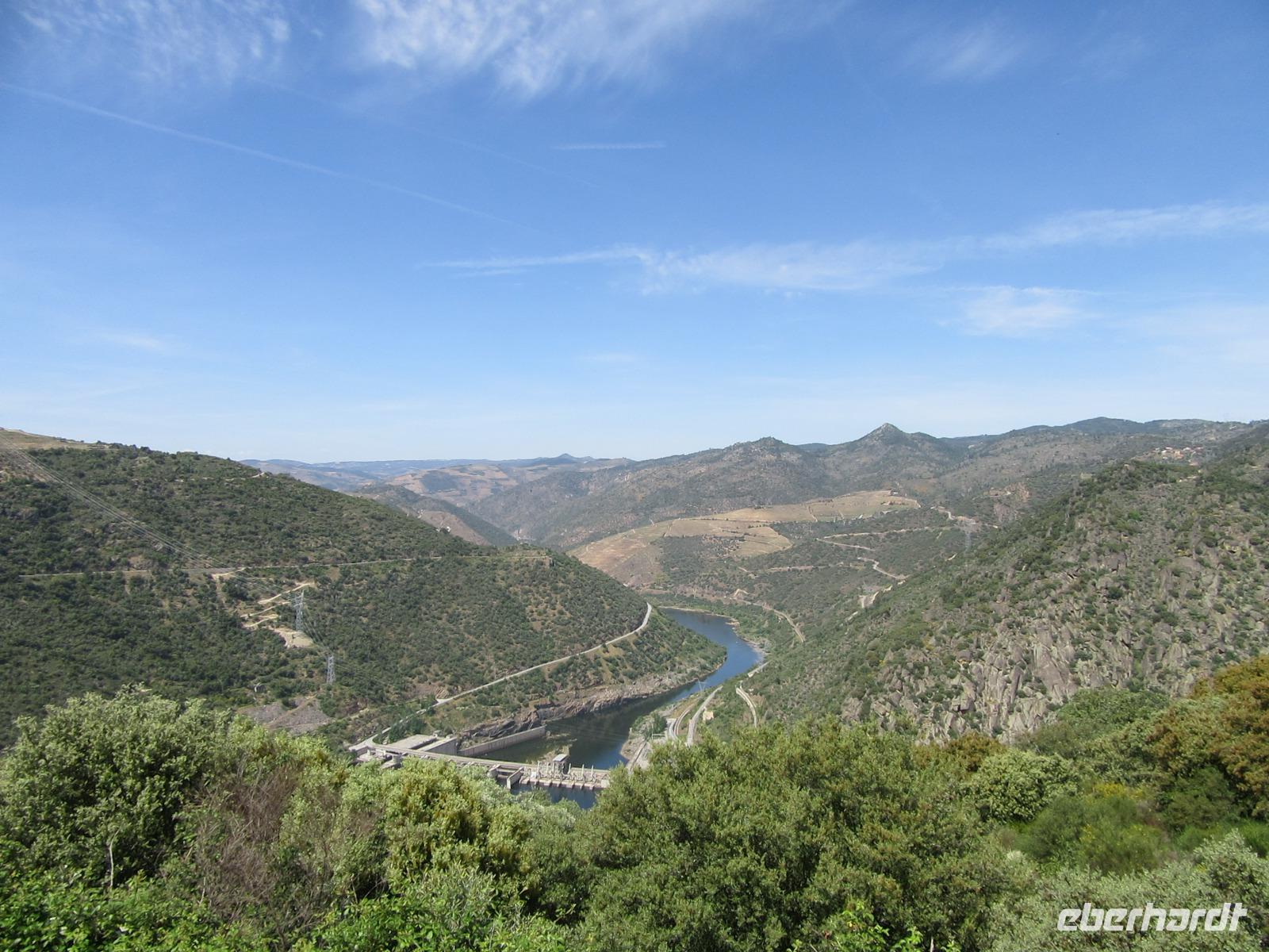 Noch während des Frühstücks legte unser Schiff ab und fuhr den morgendlich ruhenden Douro flussabwärts Richtung Ferradosa. Wir trafen uns zum Frühsport auf dem Sonnendeck und genossen anschließend bei doch recht windigem Wetter die vorbeiziehenden terrassenförmig angelegten Weinhänge. Nach dem Mittagsmenü wurden wir von Paolo abgeholt, der unser Guide für die nächsten zwei Tage sein sollte und wir fuhren durch das Weinanbaugebiet Alto Douro, der seit 1756 ersten herkunftsgeschützten Weinbauregion der Welt. Bei einem ersten Halt bei den zehn kleinen Wallfahrtskapellen von Sao Salvador do Mundo konnten wir in der ferne das Schiff und den Staudamm erkennen, außerdem einen grandiosen Panoramablick über die Region Cachao da Valeira. Weiter ging die Fahrt entlang kurvenreicher Serpentinenstraßen nach Sao Joao da Pesqueira. Bei sonnigem Wetter bummelten wir zum Ortszentrum und begutachteten die Kirche Igreja da Misericordia, die wie so viele andere Kirchen mit den blauen Kacheln (Azulejos) verkleidet war. Bei der anschließenden Freizeit erkundeten wir die kleinen engen Gassen, unter anderem die Travessa dos Gatos - die Katzenstraße. Die Häuser waren mit Schieferplatten verkleidet, was ihnen einen urigen Charme verlieh. Im Anschluss ging unsere Busfahrt weiter durch das fantastische Weinanbaugebiet des Douros. Bei einem weiteren Fotostopp konnten wir die wunderschöne Landschaft mit den wellenförmigen Terrassen der Weinhänge ausgiebig bewundern. Auch unser Kreuzfahrtschiff ganz in der Ferne konnten wir im Hafen von Pinhao erkennen. Da sollten wir also noch hinfahren. Vorher jedoch hielten wir in der Quinta do Tedo, einer Portweinkellerei die sich im Naturschutzgebiet zwischen den Flüssen Douro und Tedo befand. Nach einer ausgiebigen Führung erhielten wir die dort hergestellten Spezialitäten zum Kosten. Zurück an Bord in Pinhao machten wir uns für den Gala-Abend fein und genossen den Abend in geselliger Runde, fantastischem Mehr-Gang-Menü, schickem Zwirn und natürlich Portwein :-