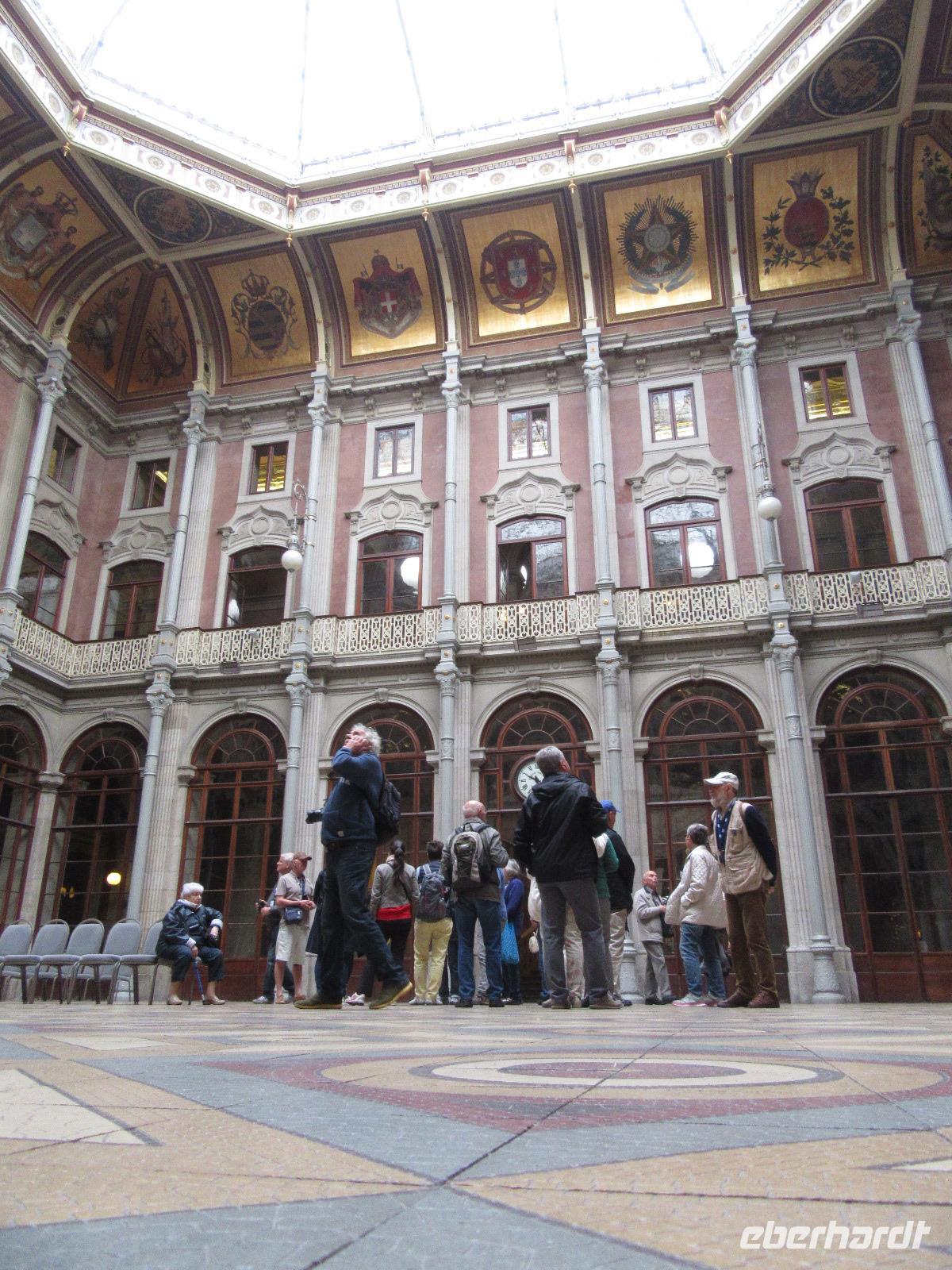 Der Morgen empfing uns mit einem wolkenbedeckten Himmel und entsprechend kühlen Temperaturen. Wir trafen uns in einem Bus für deutsprachige und englische Reisegäste und unserer Reiseleiterin Adelia. Unsere Panoramafahrt in Porto ließ uns einen ersten Eindruck dieser tollen Stadt gewinnen. Am Palazio de Balas, dem Handelszentrum erhielten wir eine intensive Besichtigung, bei welcher wir auch das Kabinettzimmer Gustav Eiffels besichtigten. Im Anschluss besichtigten wir eine wirklich reich verzierte Franziskanerkirche, die uns mit ihrem Prunk begeisterte. Unser nächster Halt war die gegenüberliegende Seite von Porto - Villa Nova de Gaia. Dort waren die namenhaften Portweinhersteller ansässig und genau eine Solche wollten wir besuchen. Wir hielten bei Ferreira und bekamen von der örtlichen Führerin eine gute Führung in den Hallen der Portweinkellerei. Sie erzählte uns die Unterschiede von einem Tawny zu einem Ruby. Auch die spezielle Zusammensetzung eines Late Bottled Vintage wurde von ihr detailliert erklärt. Anschließend verkosteten wir die vorher angesprochenen Sorten und wir nahmen für die Liebsten zu Hasue gleich ein paar Tröpfchen mit ins Gepäck. Zurück an Bord unseres Flusskreuzfahrtschiffes genossen wir unser Mittagessen. Wer wollte, konnte zum Nachmittag mit einem Rabelo-Boot in die Innenstadt fahren und Porto auf eigene Faust erkunden. Wir wollten alle. Am Abend trafen wir uns wieder auf der Vasco da Gama und wurden bei einem typischen Fado-Abend gut unterhalten.