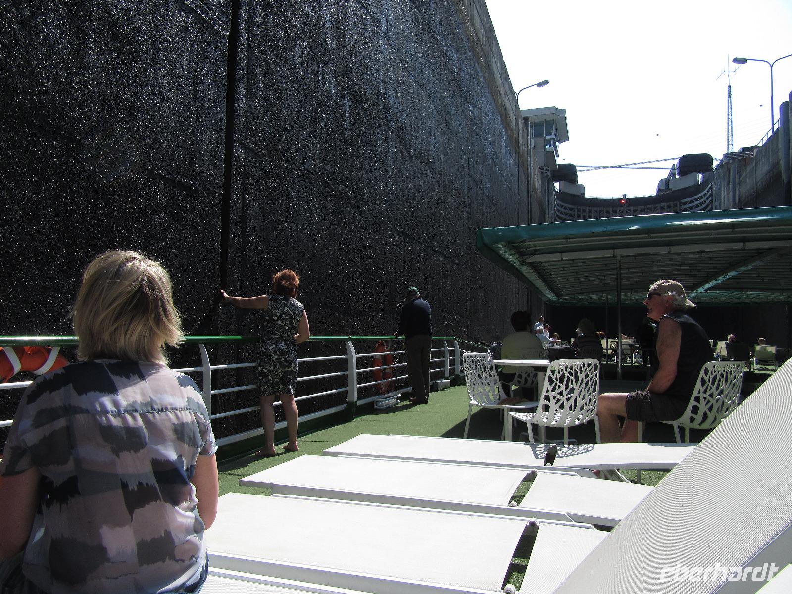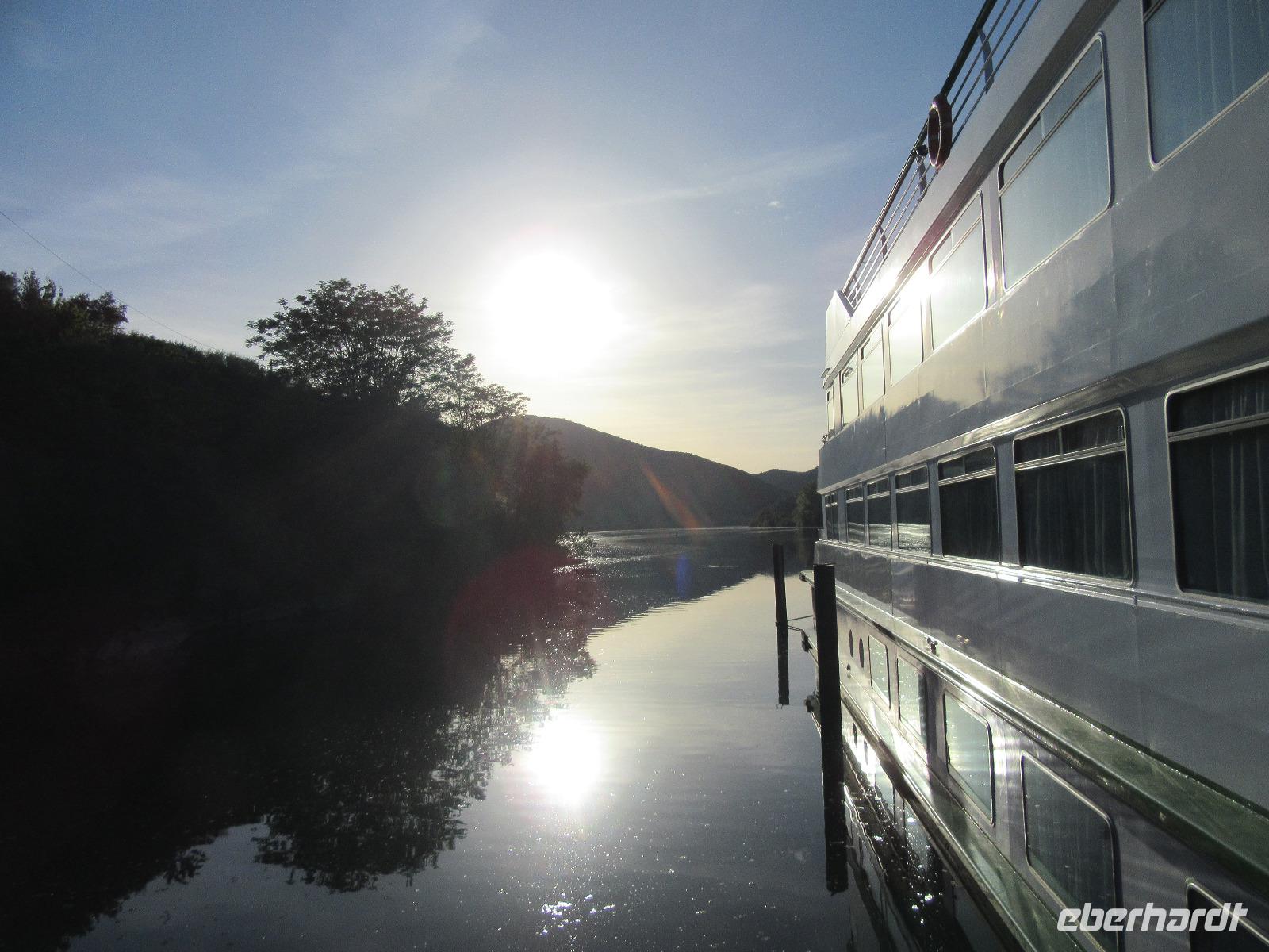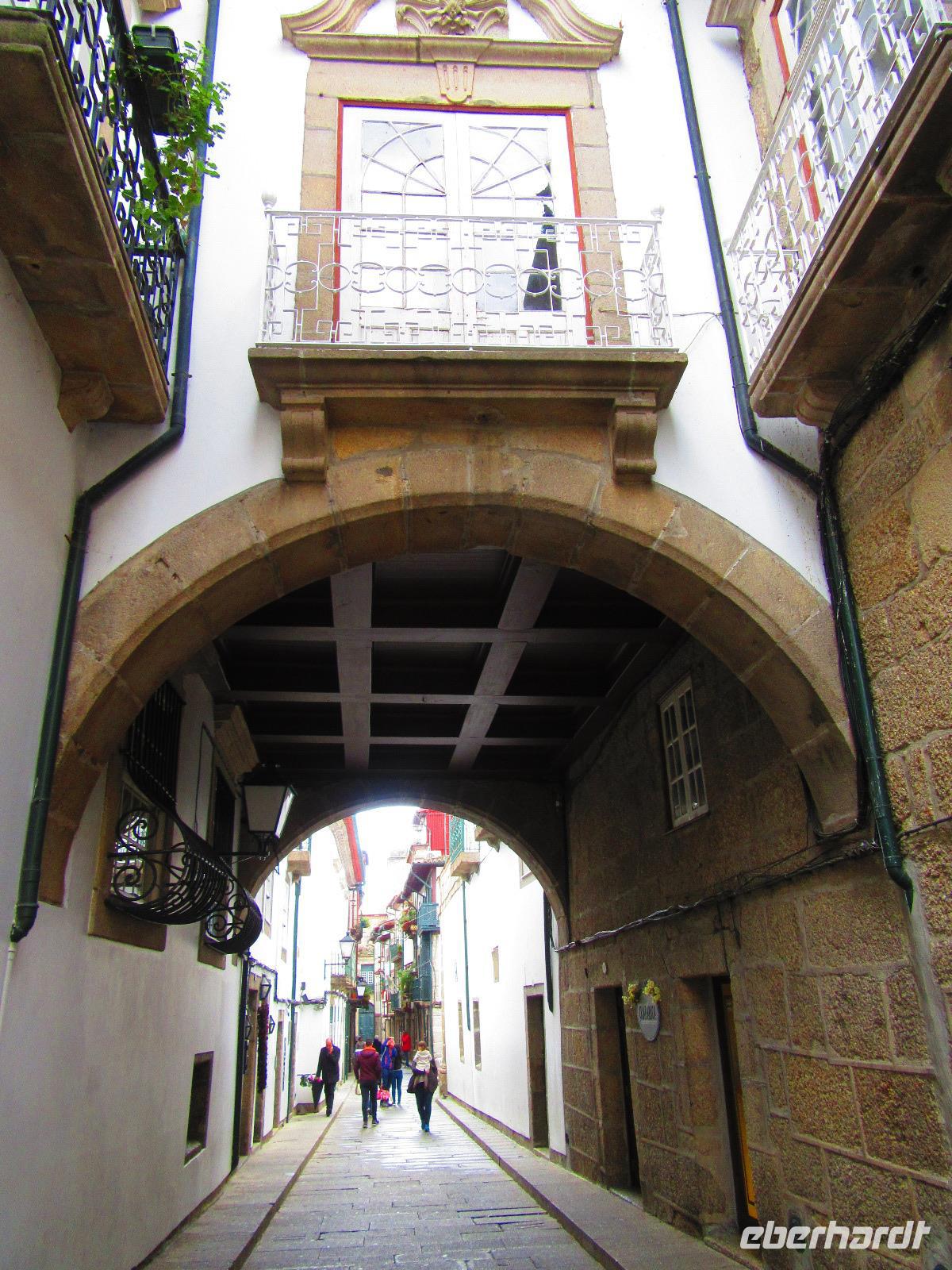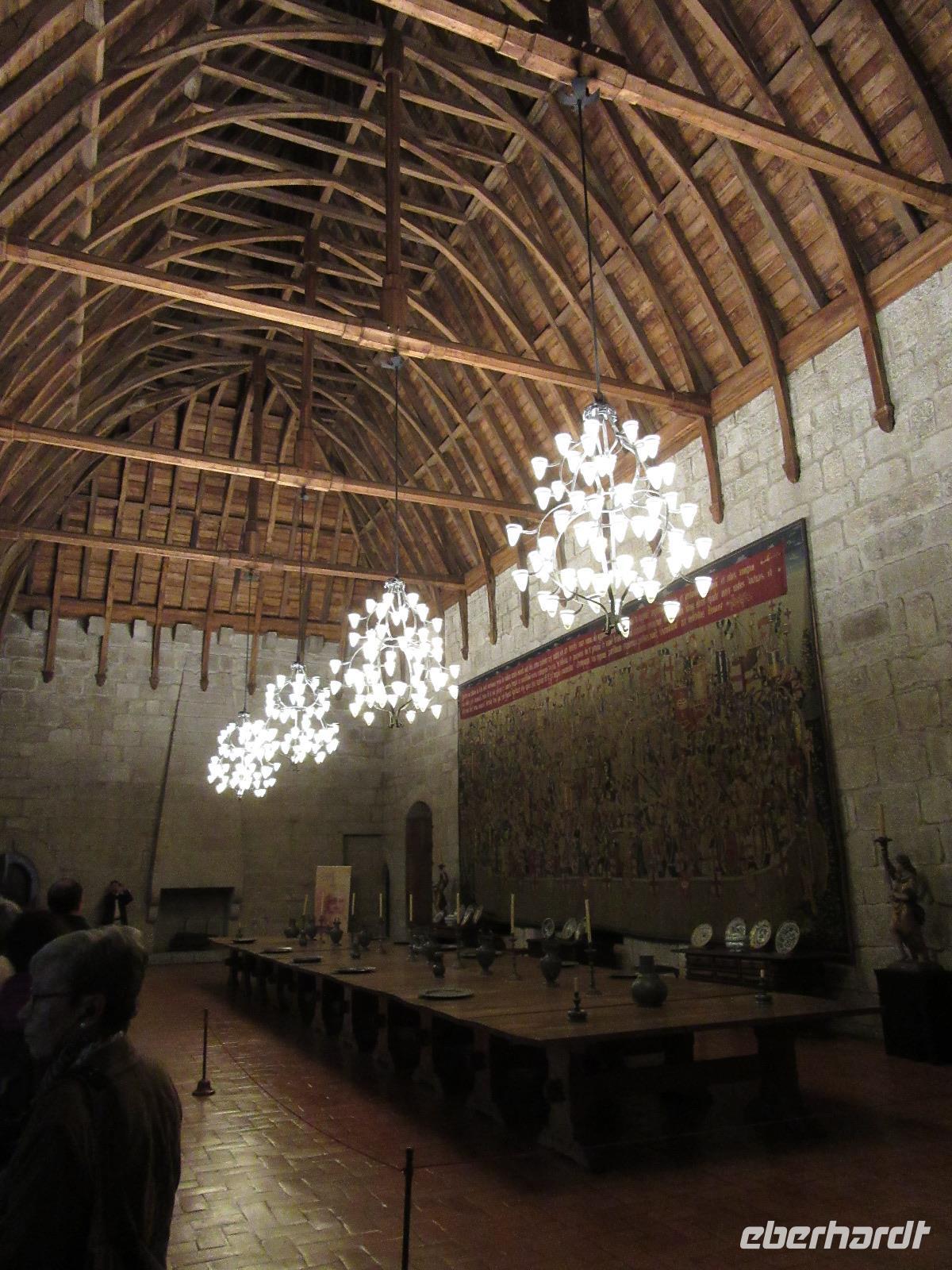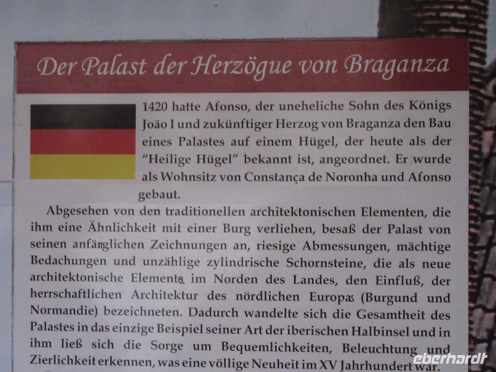 Der Vormittag empfing uns wieder mit einem kühlen grauen Wetter, aber das war nicht so schlimm. Schließlich wussten wir bereits, dass wir ab der Mittagszeit mit Sonne und blauem Himmel rechnen konnte. Wir fuhren wieder mit den englischsprechenden Gästen und unserer Reiseleiterin Adelia Richtung Guimares, um dem Geburtsort Portugals einen Besuch abzustatten. Wir besuchten den Palast der Herzöge von Braganza, welcher seit 2001 zum Welkulturerbe gehört. Das Wetter verschlechterte sich, was uns in den sicheren riesigen Hallen aber nicht störte. Wir sahen herzögliche Gemächer, wundervolle Wandteppiche, und riesige Hallen, deren Deckengewölbe einem alten Bootsrumpf nachempfunden wurden. Anschließend schlenderten wir durch die hübsche Innenstadt von Guimares, in der der erste König Portugals Alfons I. geboren sein soll, weshalb sie als Wiege der Nation Portugals gilt. Wieder zurück an Bord genossen wir ein leckeres Mittagsmenü und anschließend die vorbeiziehenden Landschaften des Dourotals. Als wir eine der zahlreichen Schleusen erreichten, mussten wir das Sonnendeck verlassen, da der Douro zu viel Wasser führte. Wir vertrieben uns die Zeit beim Kartenspielen. Danach konnten wir wieder auf das Sonnendeck gehen und eine der tiefsten Brücken beim Vorbeiziehen fast berühren. Abends erreichten wir den Ort Regua und nutzten nach dem Abendessen die Möglichkeit für einen kleinen Spaziergang und einen kleinen Tanz beim Tanzabend.