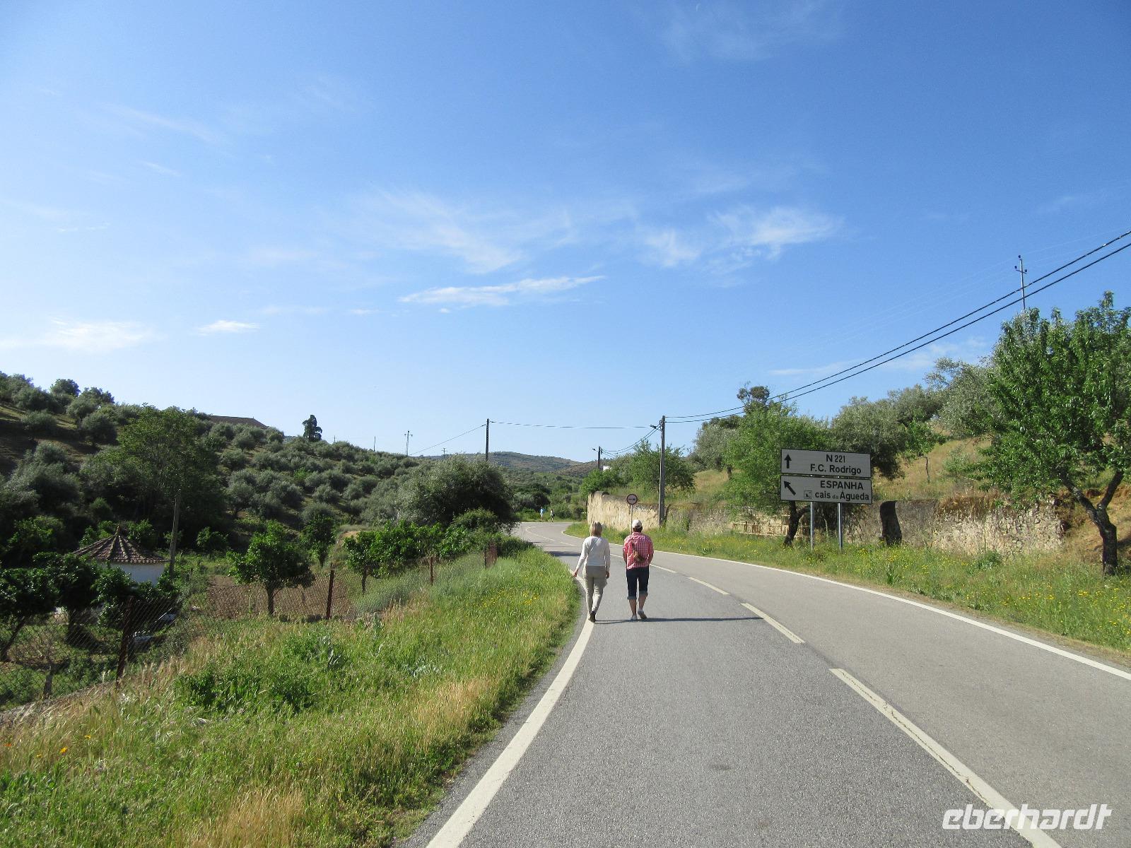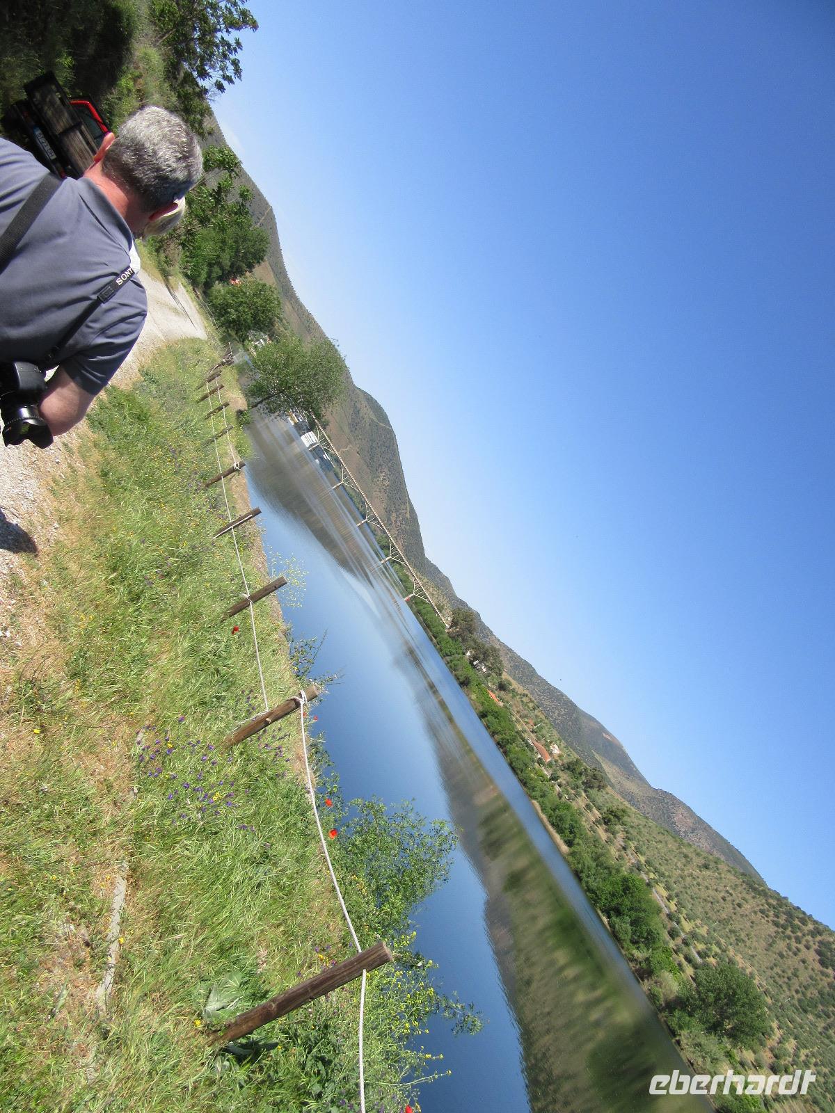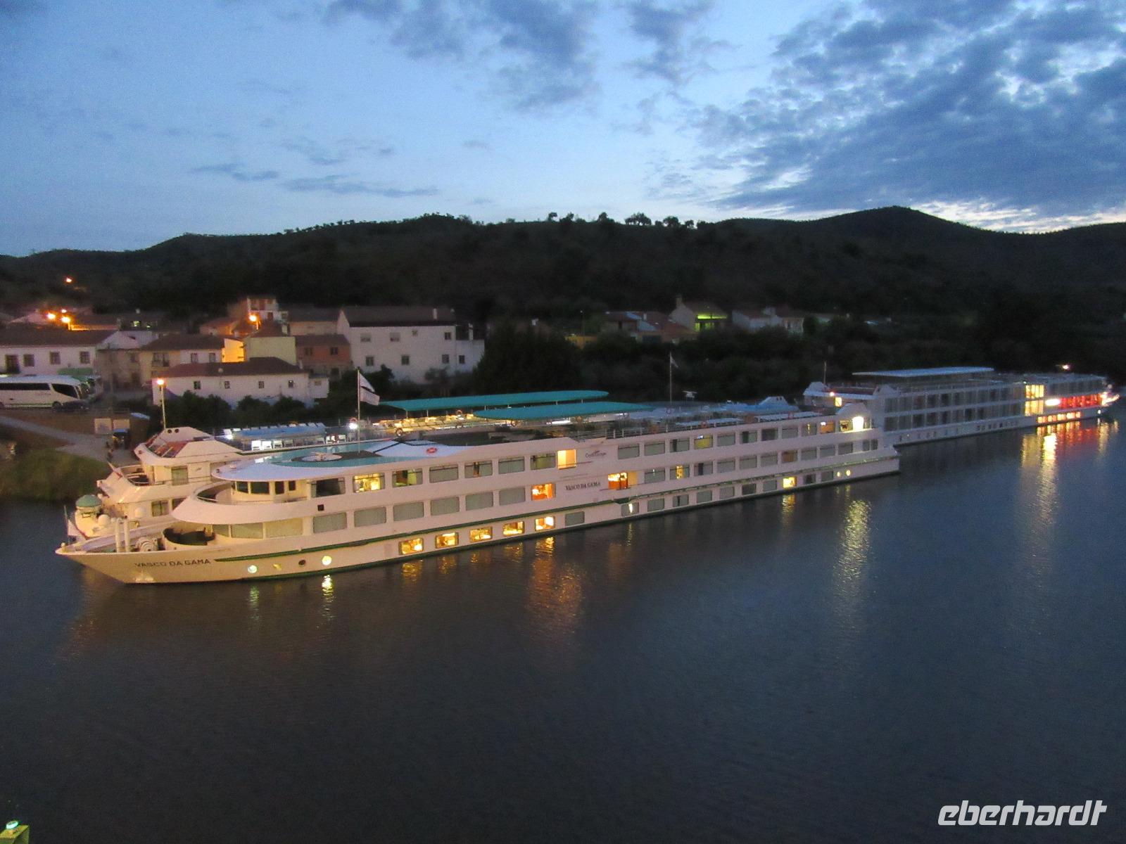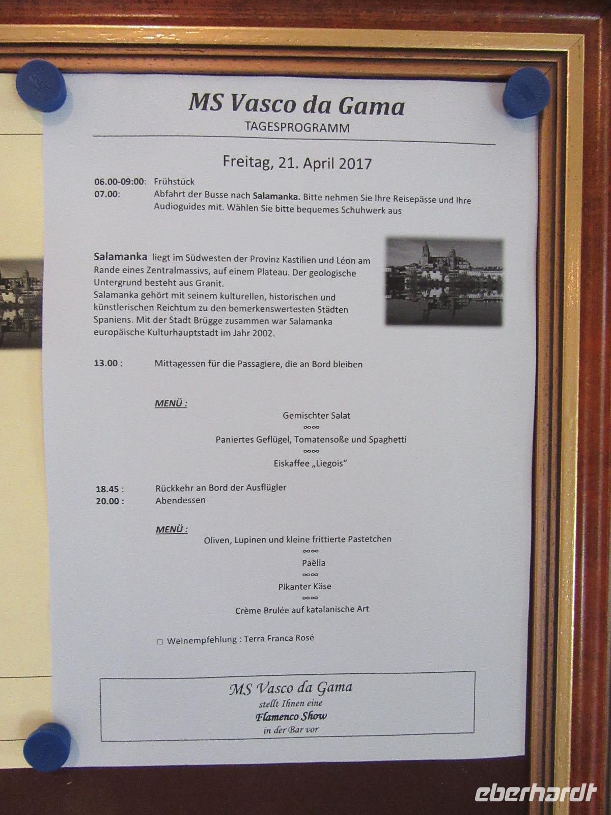 Da nur ein kleiner Teil der Gruppe nach Salamanca fahren wollte, entschied sich der Rest für ein längeres ausgiebiges Frühstück. Gemeinsam beschlossen wir, die Gegend um Barca d´Alva erkunden zu wollen. Unser Barkeeper Antonio kannte sich in der Gegend kurz vor der spanischen Grenze bestens aus uns zeichnete uns eine sehr bildhafte Wanderkarte der Umgebung. Das Wetter war für einen kleinen aktiven Ausflug wie geschaffen. Die Sonne schien aber die Temperaturen waren sehr angenehm. Wir spazierten durch die drei Straßen des Dorfes entlang der Hauptstraße und folgten den Anweisungen Antonios. Als wir einen begehbaren Olivenhain entdeckten, beschlossen wir doch ein wenig abseits der eingezeichneten Route zu spazieren. Die Gegend war einfach traumhaft. Inmitten der üppigen Olivenbäume standen Mandelbäumchen, die schon kräftige Früchte trugen. Wir besuchten kurz Spanien, betrachteten unsere Vasco de Gama von weitem und spazierten entspannt zum Schiff auf der portugisischen Seite zurück. Nach dem Mittagessen entspannten wir auf dem Sonnendeck und empfingen die Gäste am Abend aus Salamanca. Am Abend erwartete uns ein leckeres Paella-Essen und eine feurige Flameco-Show, bei der auch mitgemacht werden durfte.