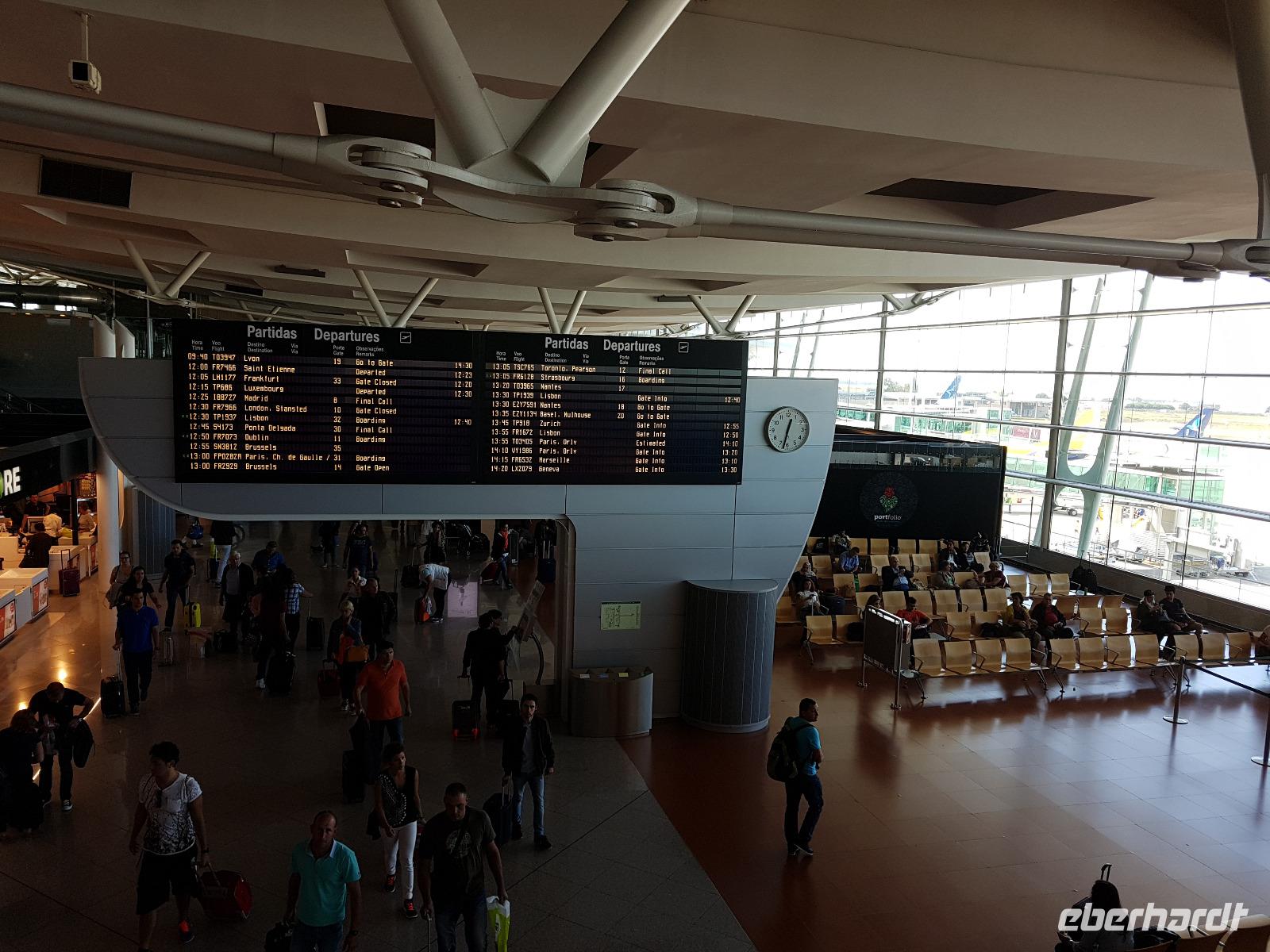 Wir konnten noch einmal ausgiebig das Frühstück genießen. Bis 9 Uhr wurden unsere Koffer bereit gestellt und die Kabinen geräumt. Bei Teresa bedankten wir uns mit dem Eberhardt Reisebären und machten ihr damit eine sehr große Freude. Dann sollten wir eigentlich noch einen Kurzaufenthalt in Porto haben. Aber unser Bus kam später zur Abholung und so fuhren wir gleich zum Flughafen. Alle Gäste waren bereits eingecheckt und so ging die Kofferabgabe schnell und reibungslos. Es blieb dann ausreichend Zeit für einen Imbiss und die letzten Einkäufe. Unsere Lufthansamaschine kam zwar verspätet an und flog auch später in Porto ab, aber die Anschlüsse in Frankfurt wurden alle erreicht.