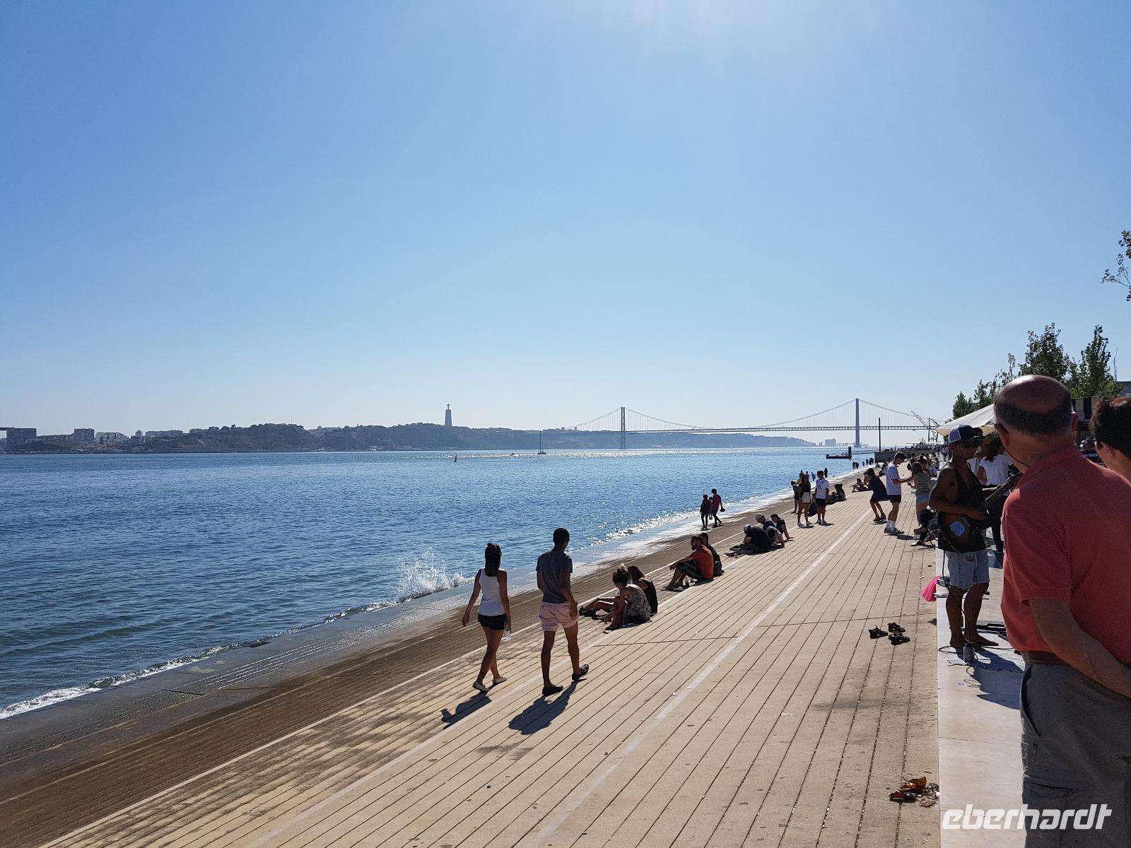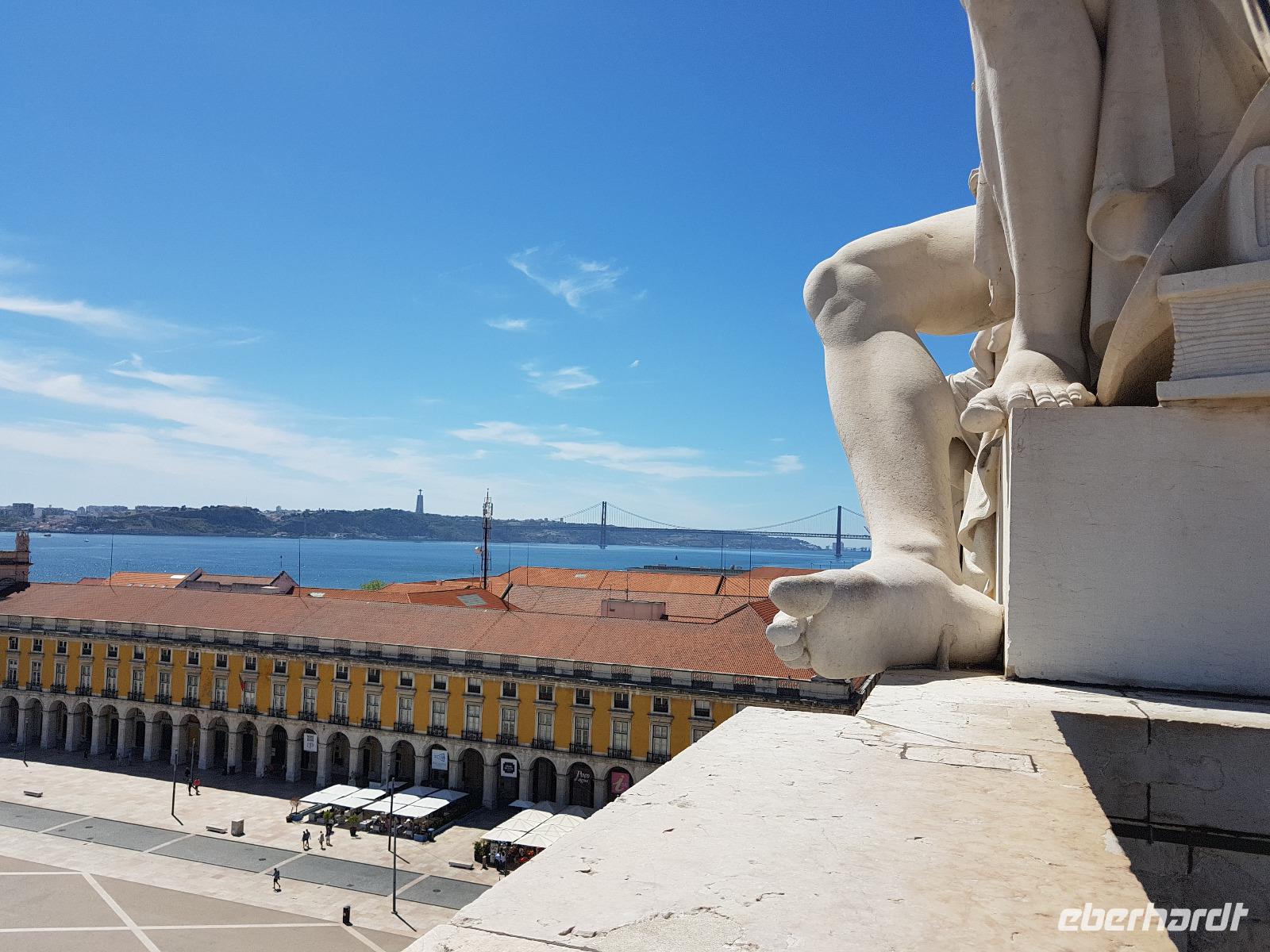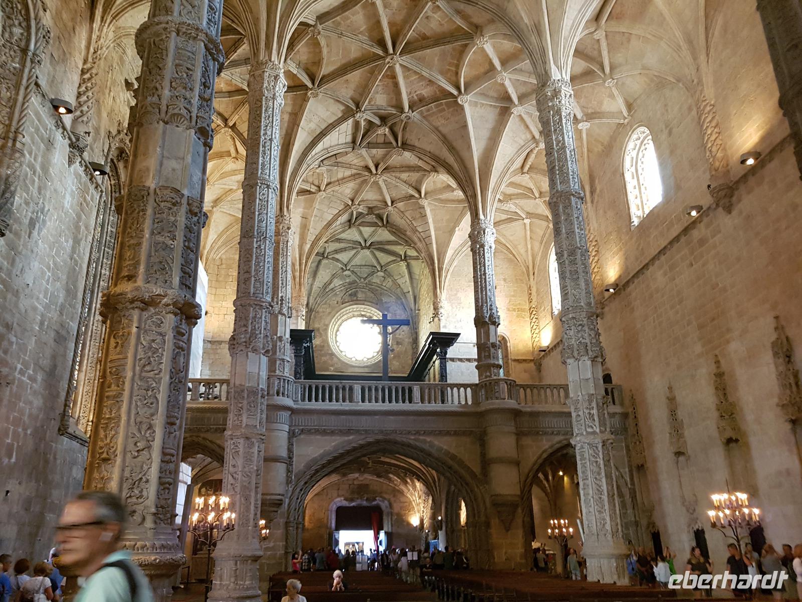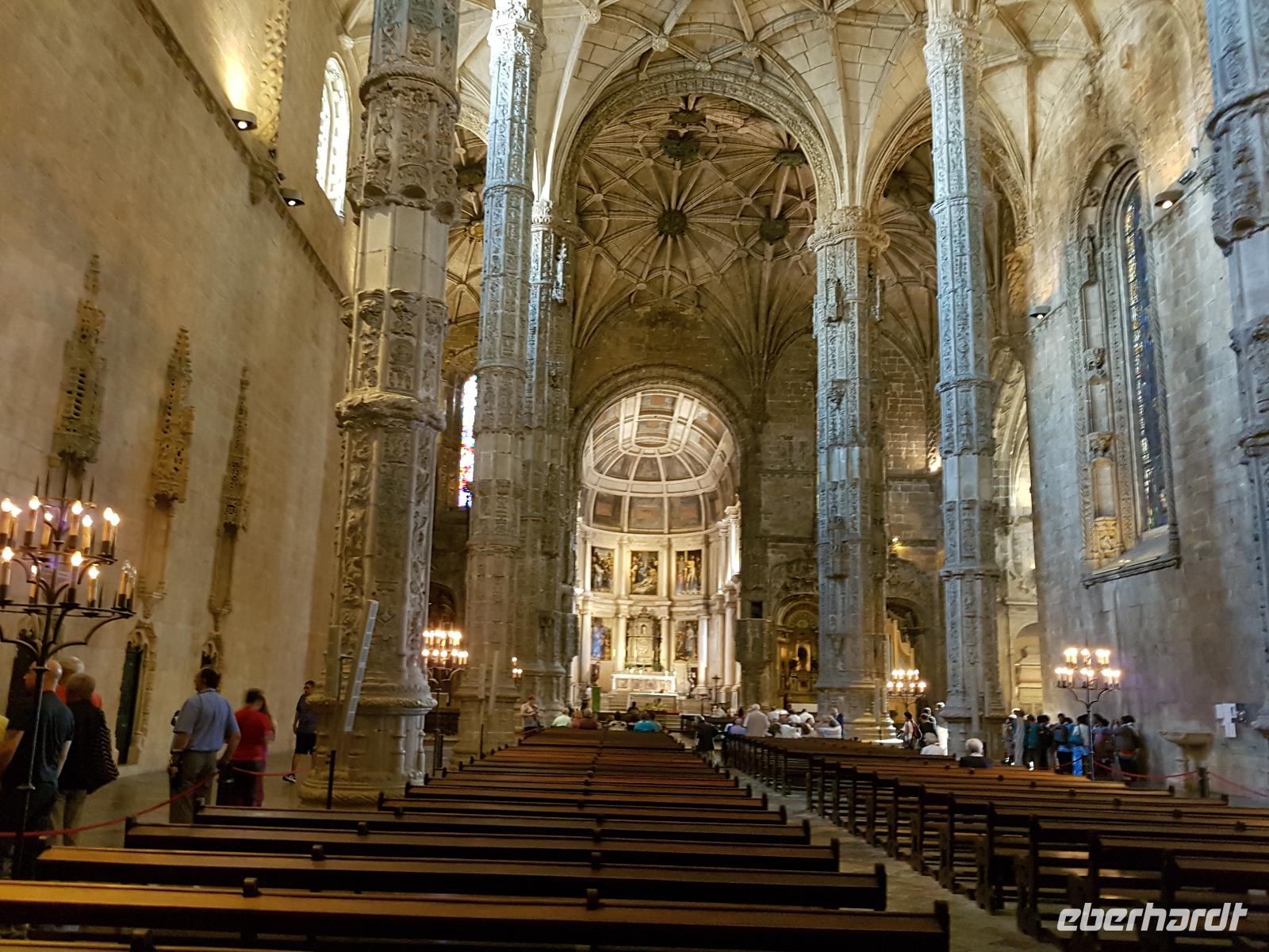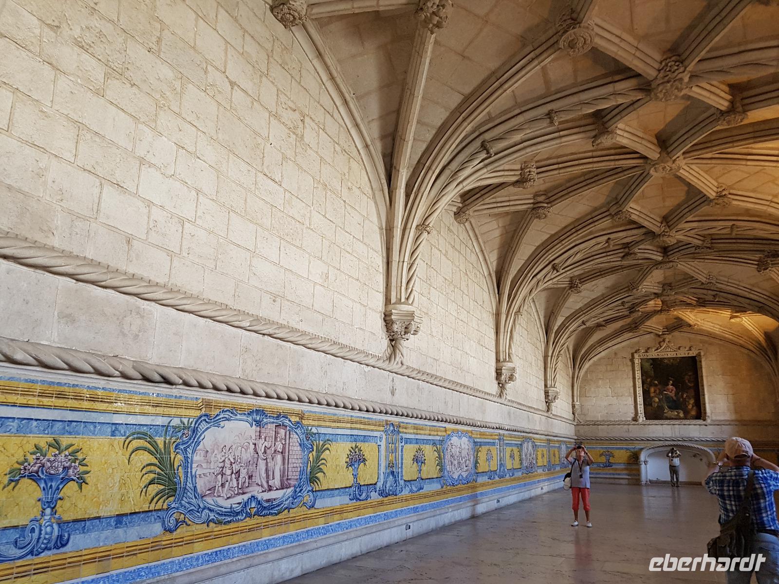 Nach einem guten Frühstück fuhren wir mit dem Bus durch die Außenbezirke zum Aussichtspunkt beim Park Eduard VII, mit Blick über Lissabon, und dann weiter nach Belem. In diesem einstigen Vorort wurden früher Schiffe gebaut, dort wartete man auf die richtige Strömung und es sammelten sich die Flotten für Entdeckungsfahrten. Heute erinnern der Turm von Belem und das Seefahrermonument an diese Zeit. Noch heute kommt an dieser Stelle ein Lotse an Bord, wenn Schiffe hinaus auf den Atlantik fahren. Beim verheerenden Erdbeben von 1755 wurde dieser Vorort zerstört bis auf das Hieronymuskloster. Das Kloster ist heute ein Wahrzeichen Lissabons und wir begannen mit der Besichtigung der Kirche und des Kreuzganges. Das in Belem kreierte Gebäck Pasteis de Belem bekam danach jeder Gast zum Probieren. Nach 2 Fotostopps am Tejo gings dann weoter ins Stadtzentrum zur Mittagspause.