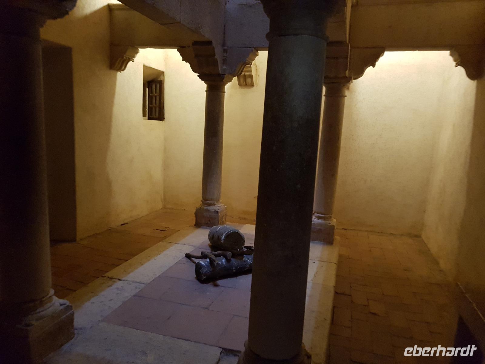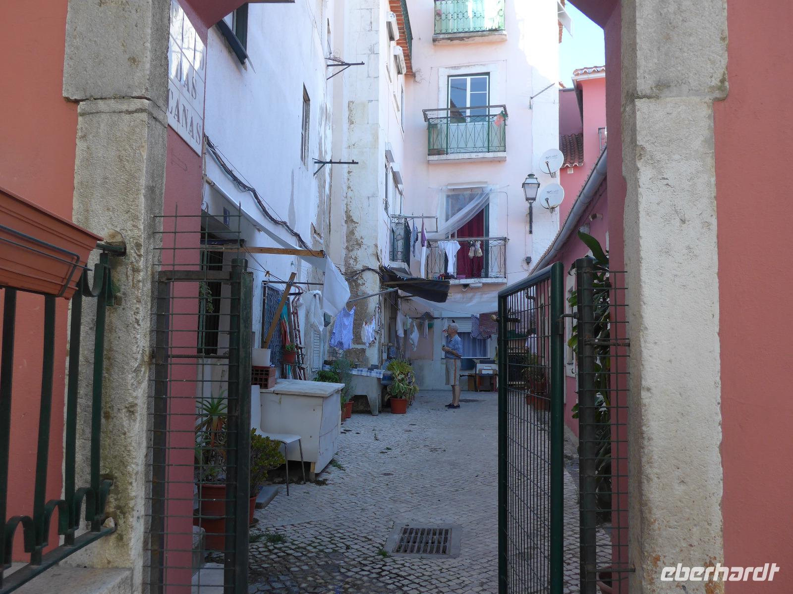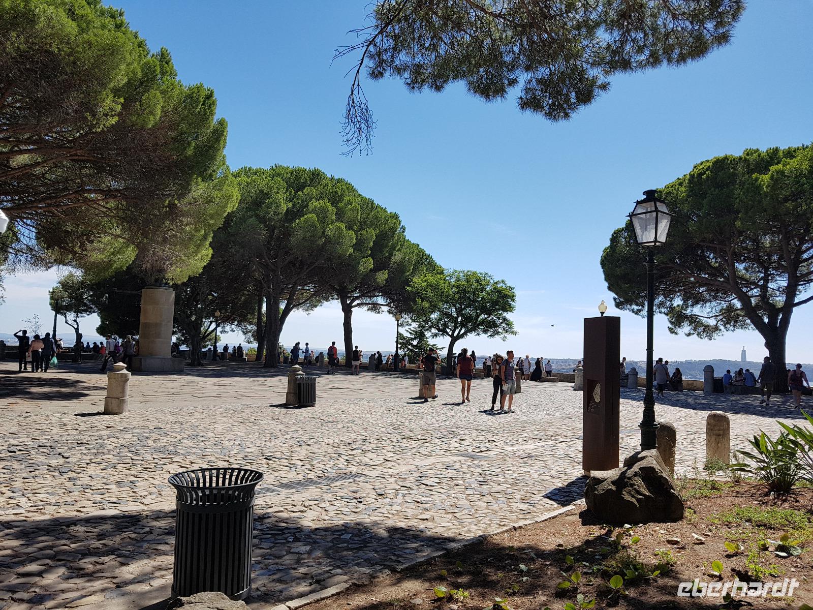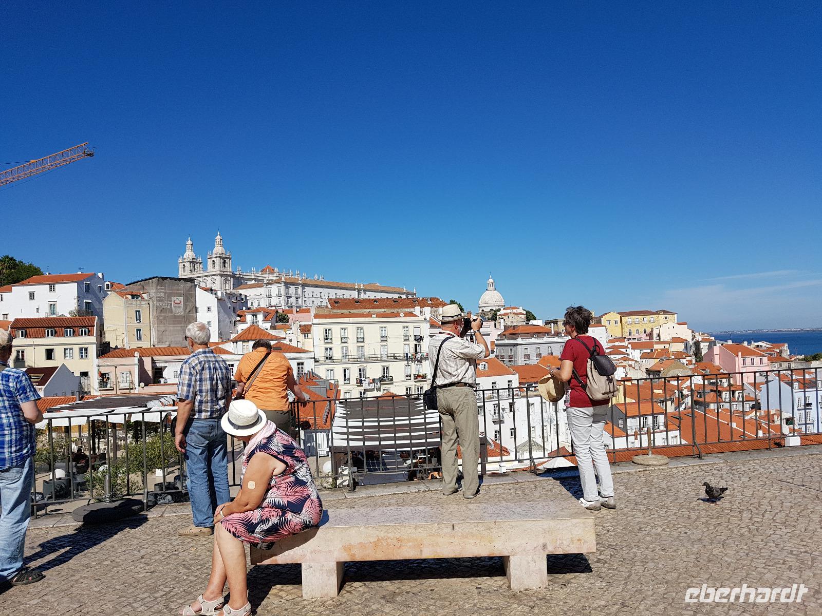 Ausgeruht und gut gestärkt trafen wir uns am frühen Nachmittag, um zunächst einen Spaziergang durch die Fußgängerzone und dann hinauf auf die Burg zu machen. Für einen Teil des steilen Aufstieges nutzten wir einen Fahrstuhl und dann gingen wir aber zu Fuß vorbei an den römischen Ausgrabungen und durch idyllische Gassen hinauf auf die Burg. Vom Burginnenhof gab es einen ersten schönen Ausblick auf die Stadt, den Tejo und das gegenüberliegende Ufer. Der Weg immer an der Festungsmauer entlang zeigte uns das Stadtzentrum und unser Hotel direkt unter uns. Für die Unermüdlichen gings noch weiter hinauf auf die oberen Festungsmauern. Den Rückweg nahmen wir wieder zu Fuß auf einer anderen Strecke mit vielen Stufen durch die Altstadt. Immer wieder boten sich tolle Ausblicke und wir sahen das Leben der Menschen hautnah. Unterwegs boten Frauen selbstgemachten Sauerkirschlikör GINJA an und fast schon unten probierten wir ihn dann auch. Am neuen Kreuzfahrtterminal wartete unser Bus und brachte uns zurück ins Hotel. Noch ein wenig ausruhen und dann nahmen wir wieder ein schmackhaftes Abendessen im Hotel ein.