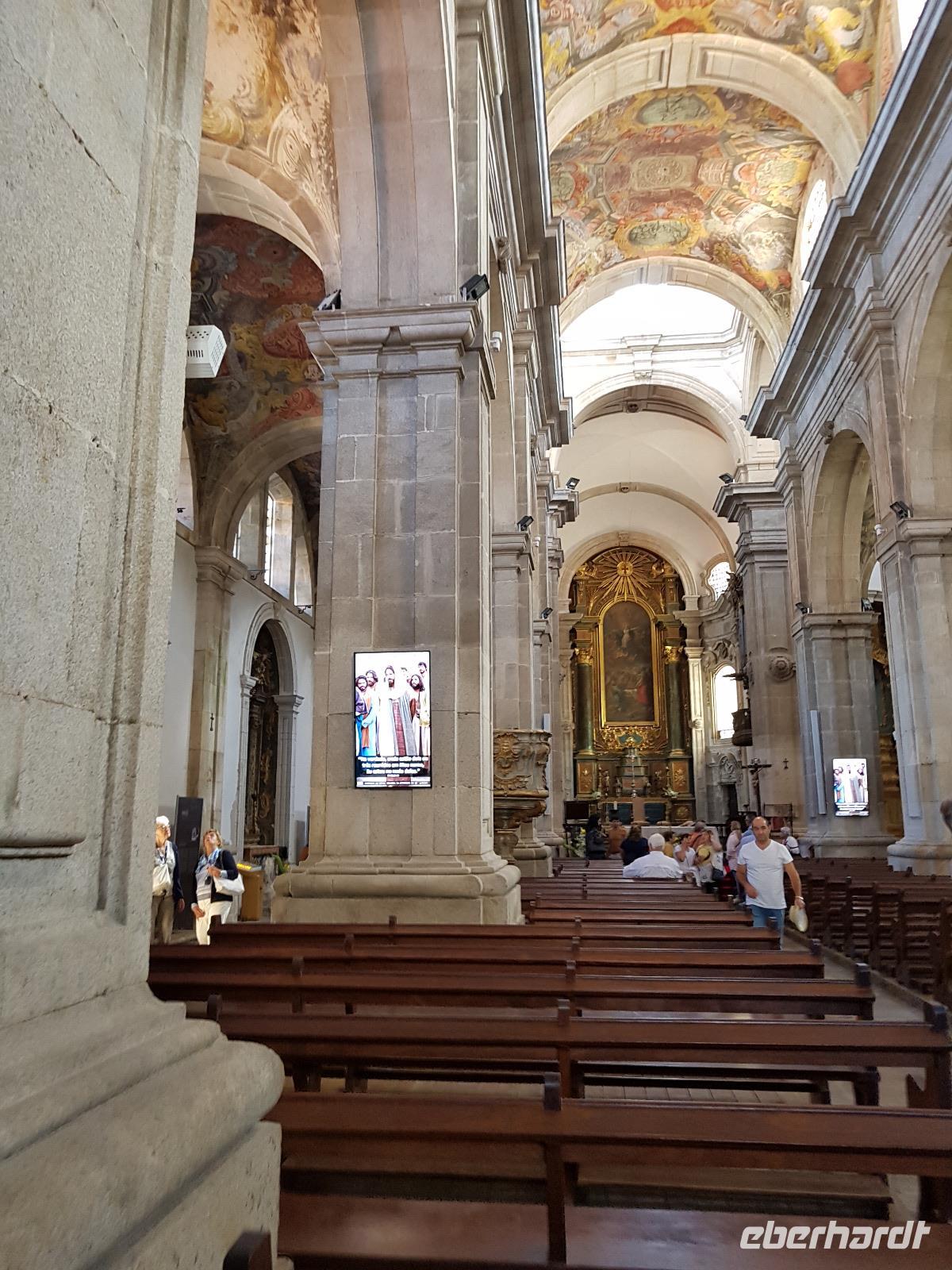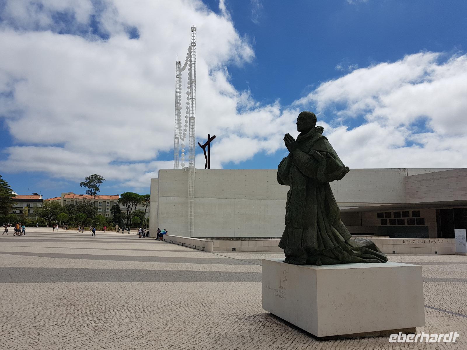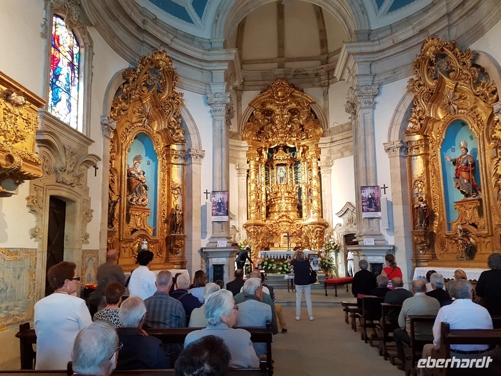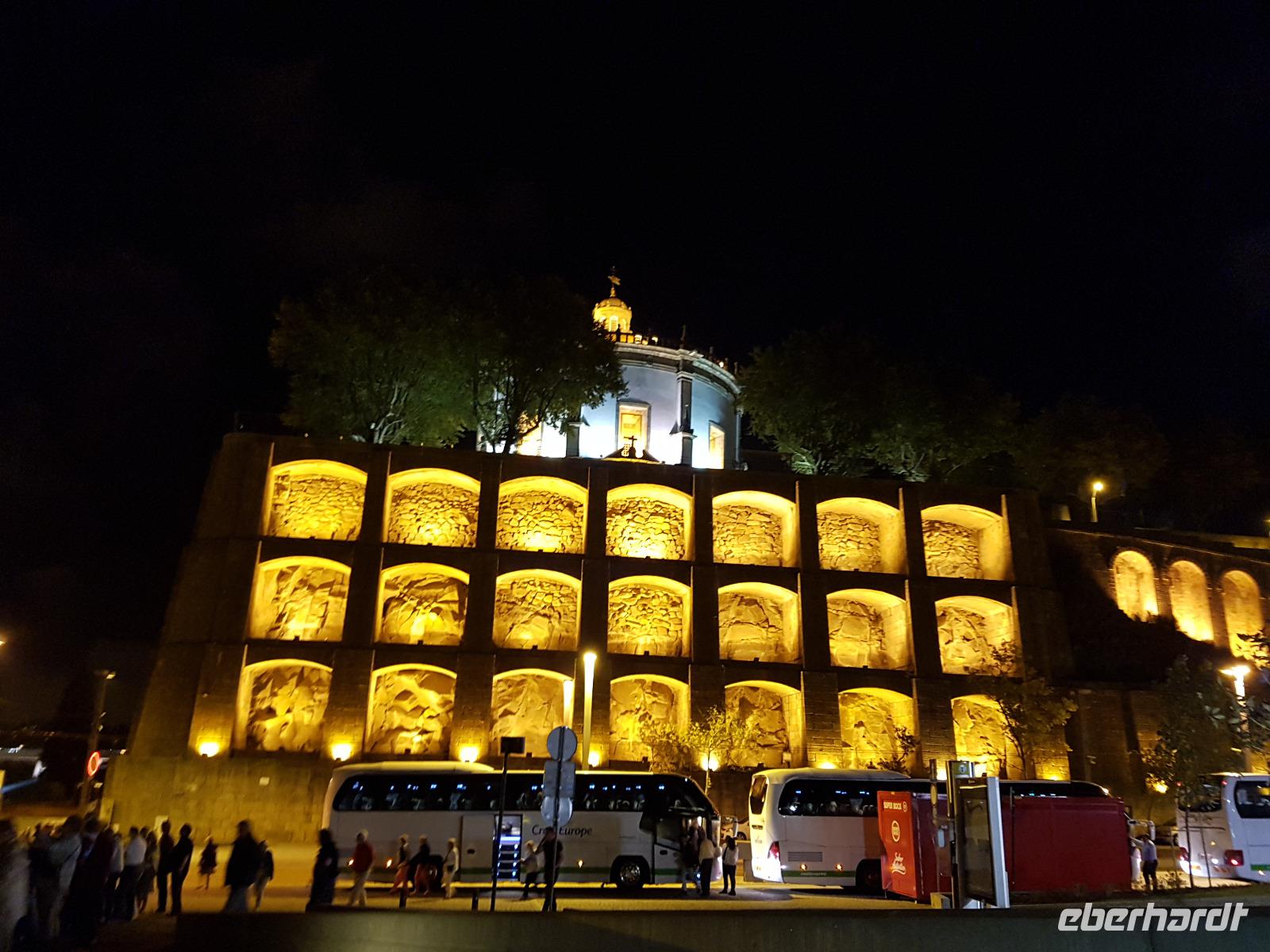 Nach kurzer Busfahrt erreichten wir Fatima. Es ist ein recht junger Wallfahrtsort. 1917 erschien 3 Kindern eine Madonna beim Schafe hüten. Diese Erscheinung wiederholte sich jeden Monat und im Herbst wohnten ihr schon mehrere tausend Menschen bei. Ab dann wurde regelmäßig nach Fatima gepilgert. In den 50er Jahren baute man die Basilika und überführte den Leichnam der Kinder in die Kirche. Schon bald war die Basilika zu klein für die vielen Pilger und so entstand der monumentale Platz davor. Seit 1973 trug man sich mit dem Gedanken, eine größere Basilika zu errichten. 1997 wurde ein internationaler Wettbewerb ausgeschrieben und 1998 bekam ein griechischer Architekt den Zuschlag. Im Jahr 2000 weilte Papst Johannes Paul II in Fatima und danach begann der Bau. Die Einweihung erfolgte im Herbst 2007 und seit 2012 trägt das monumentale Gebäude den Namen Basilika Minor. Der freitragende Innenraum bietet fast 9000 Pilgern Platz. Nach dem Besuch all dieser Gebäude stärkten wir uns mit einem kleinen Imbiss und fuhren dann weiter gen Norden nach Porto.