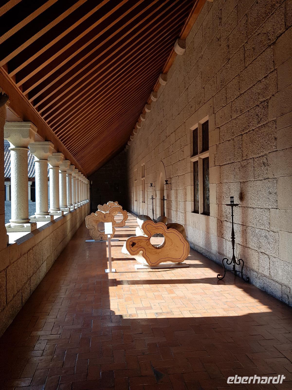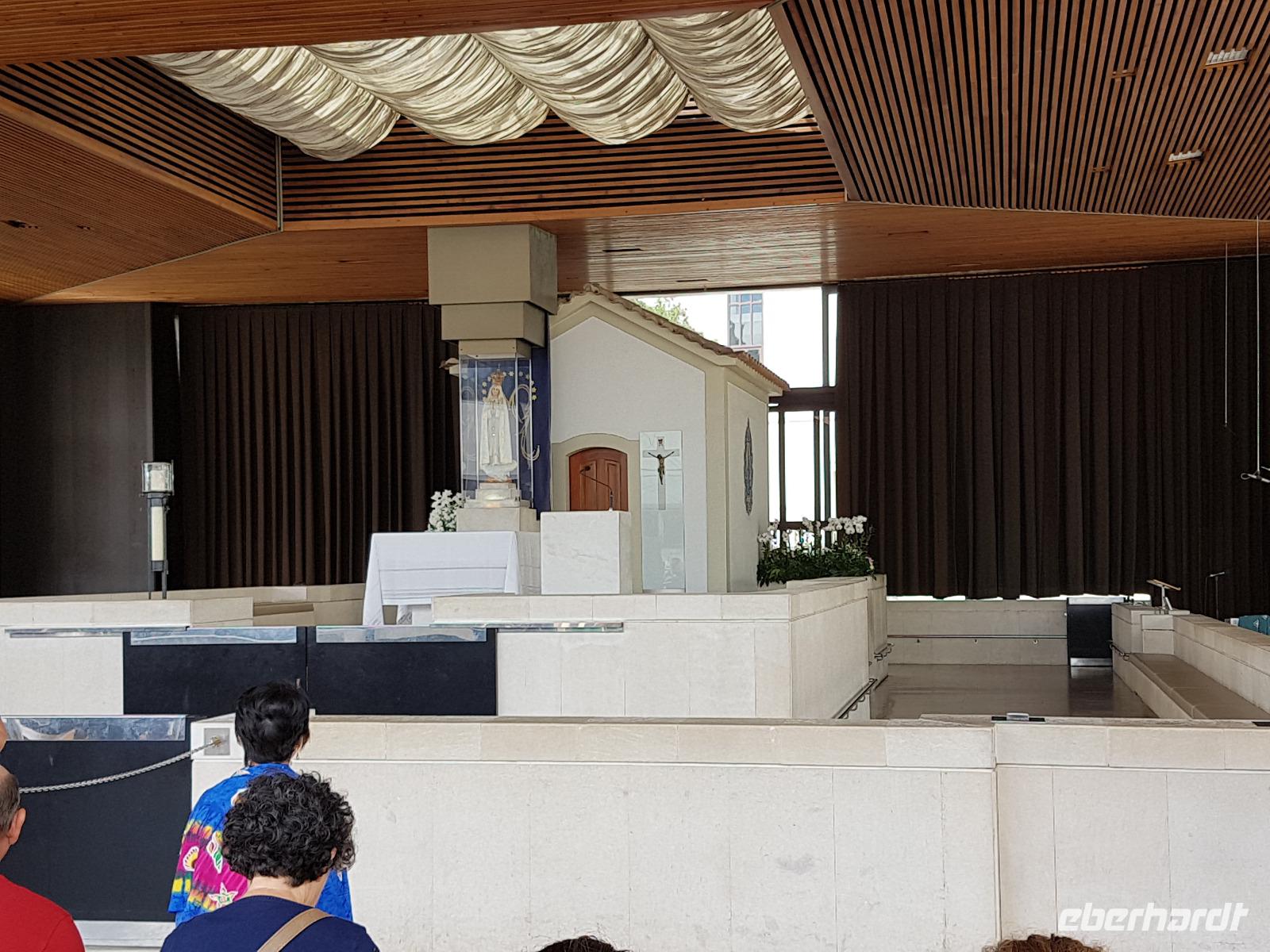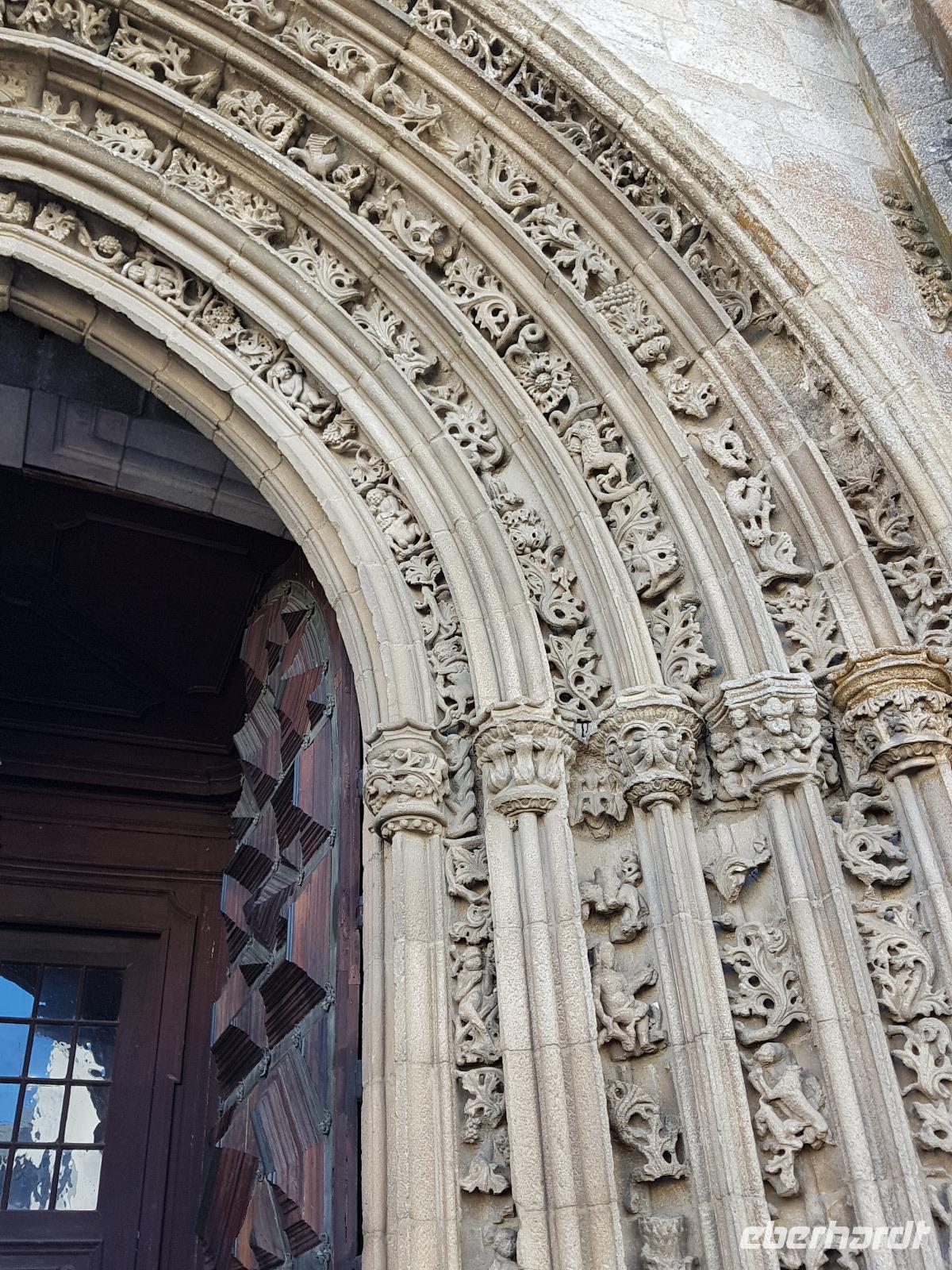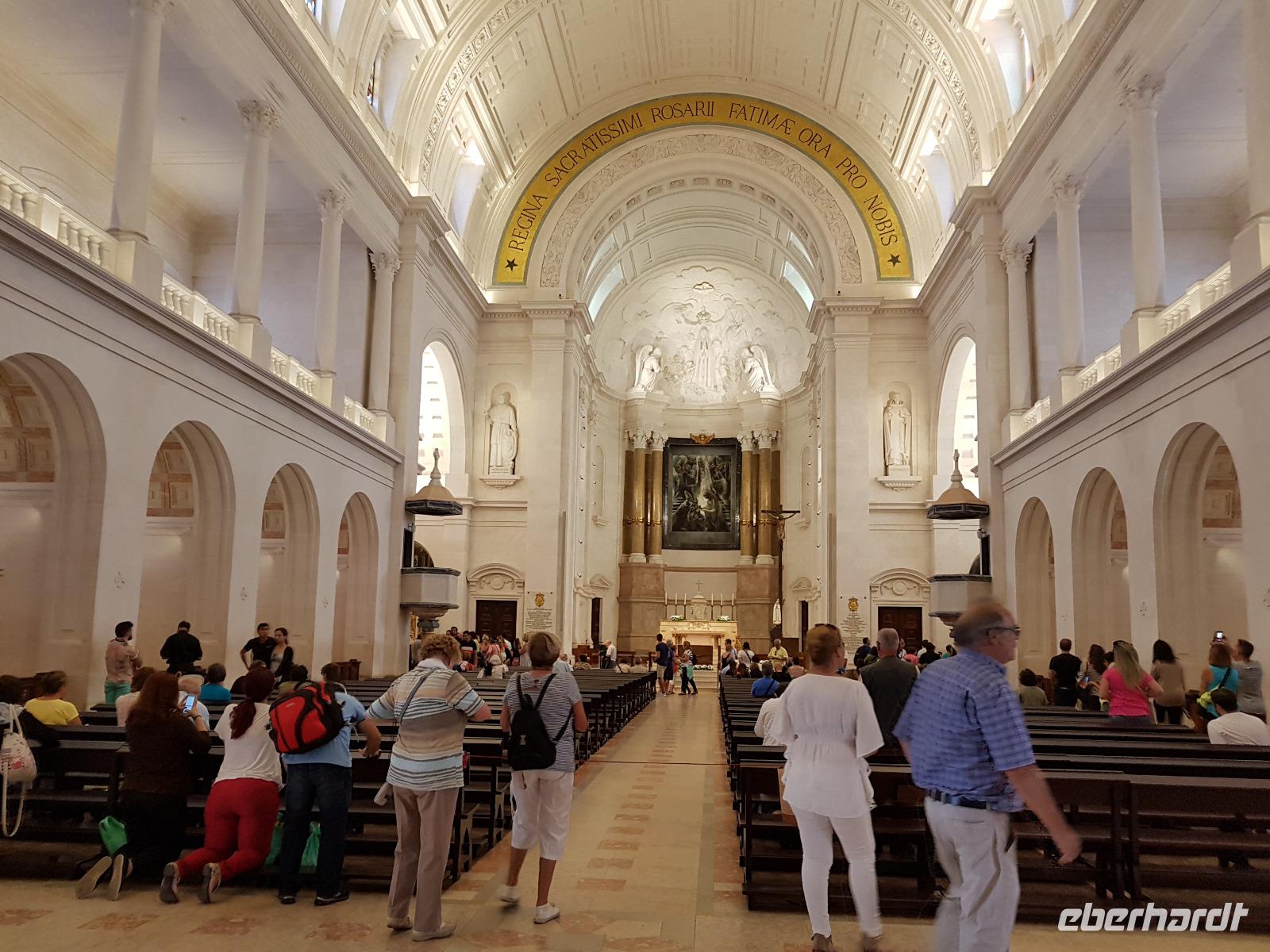 Nach kurzer Busfahrt erreichten wir Fatima. Es ist ein recht junger Wallfahrtsort. 1917 erschien 3 Kindern eine Madonna beim Schafe hüten. Diese Erscheinung wiederholte sich jeden Monat und im Herbst wohnten ihr schon mehrere tausend Menschen bei. Ab dann wurde regelmäßig nach Fatima gepilgert. In den 50er Jahren baute man die Basilika und überführte den Leichnam der Kinder in die Kirche. Schon bald war die Basilika zu klein für die vielen Pilger und so entstand der monumentale Platz davor. Seit 1973 trug man sich mit dem Gedanken, eine größere Basilika zu errichten. 1997 wurde ein internationaler Wettbewerb ausgeschrieben und 1998 bekam ein griechischer Architekt den Zuschlag. Im Jahr 2000 weilte Papst Johannes Paul II in Fatima und danach begann der Bau. Die Einweihung erfolgte im Herbst 2007 und seit 2012 trägt das monumentale Gebäude den Namen Basilika Minor. Der freitragende Innenraum bietet fast 9000 Pilgern Platz. Nach dem Besuch all dieser Gebäude stärkten wir uns mit einem kleinen Imbiss und fuhren dann weiter gen Norden nach Porto.