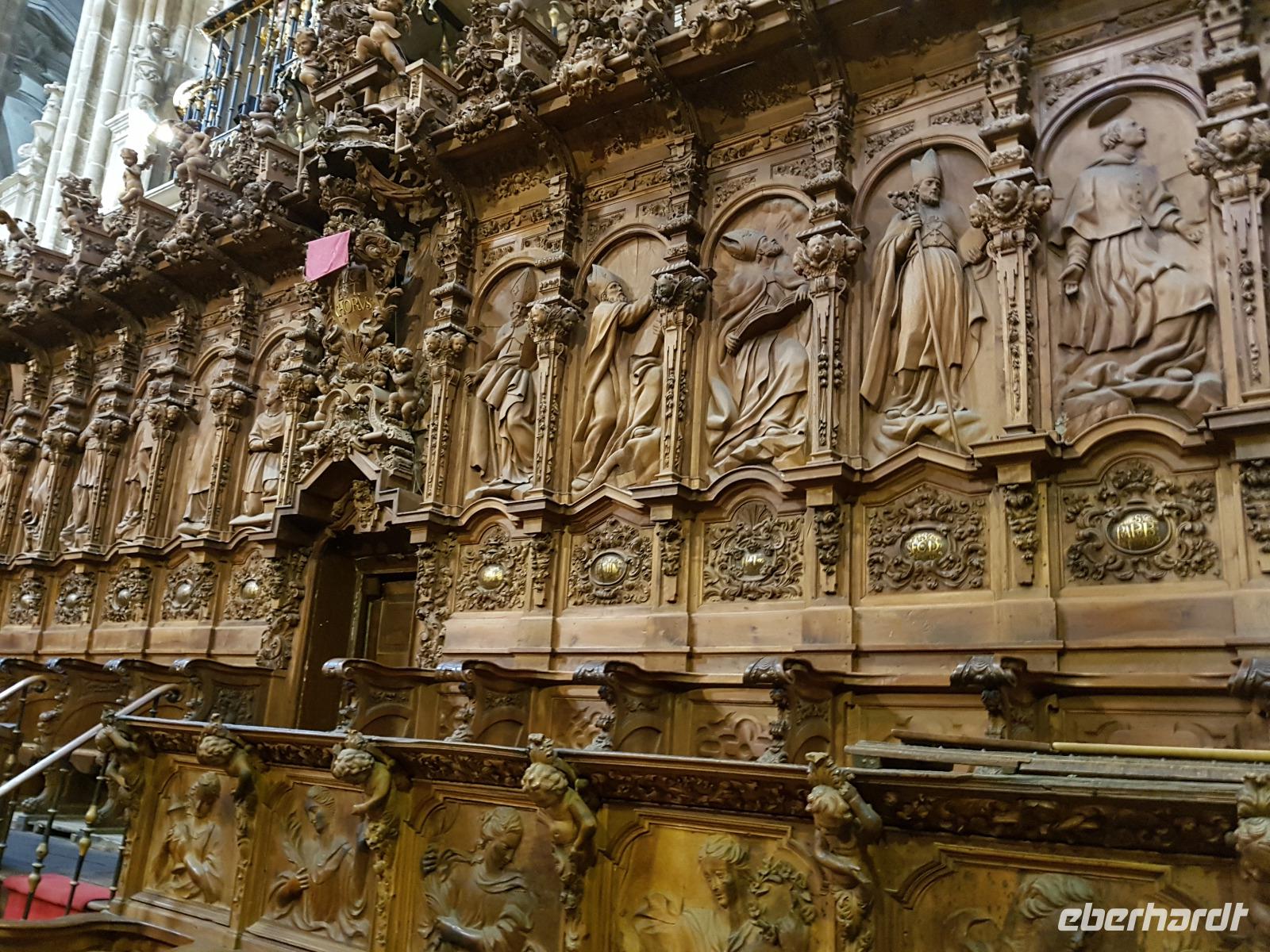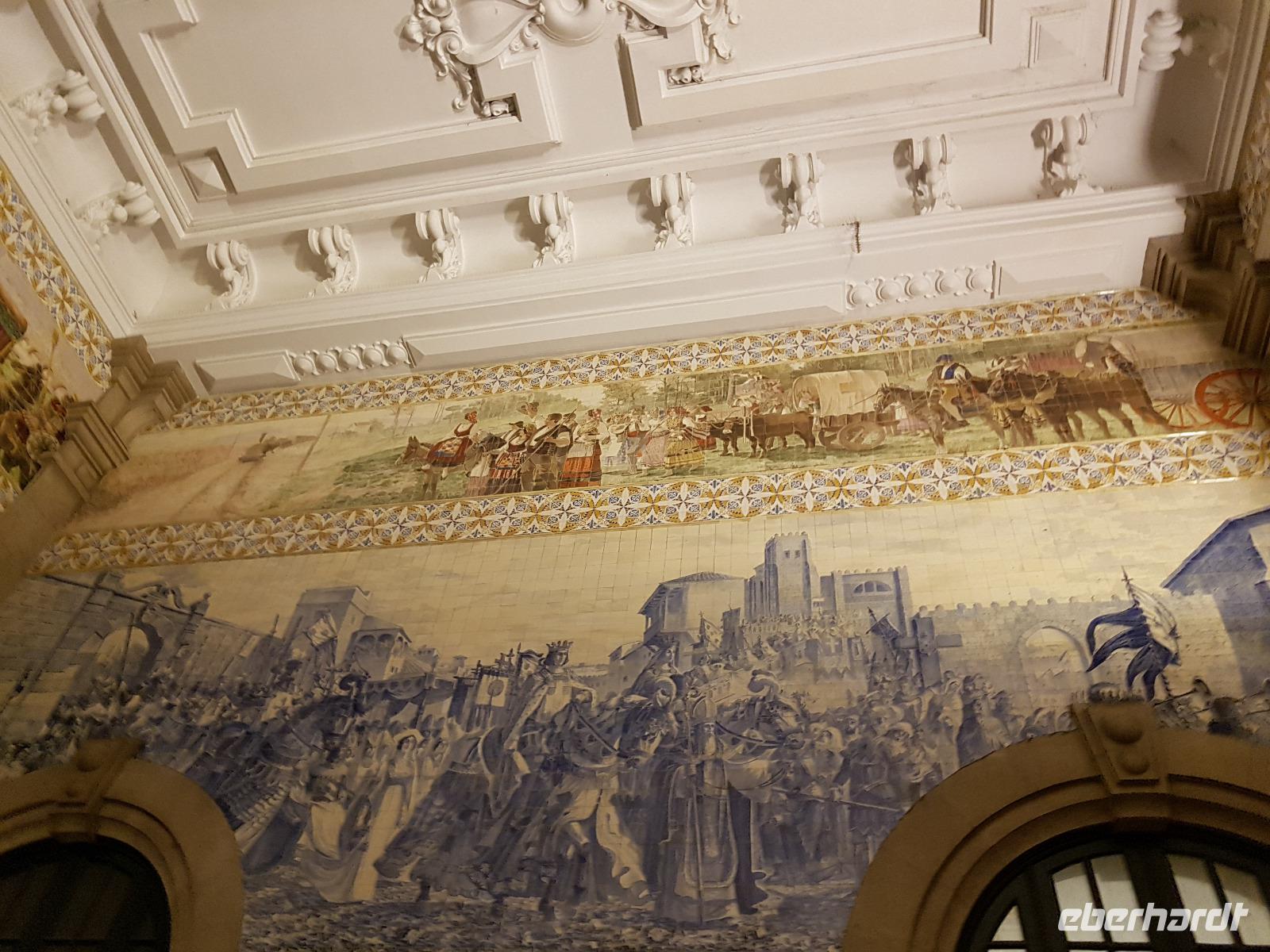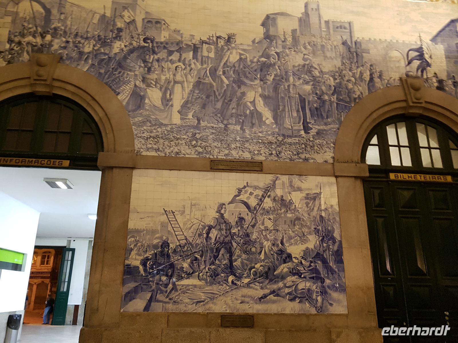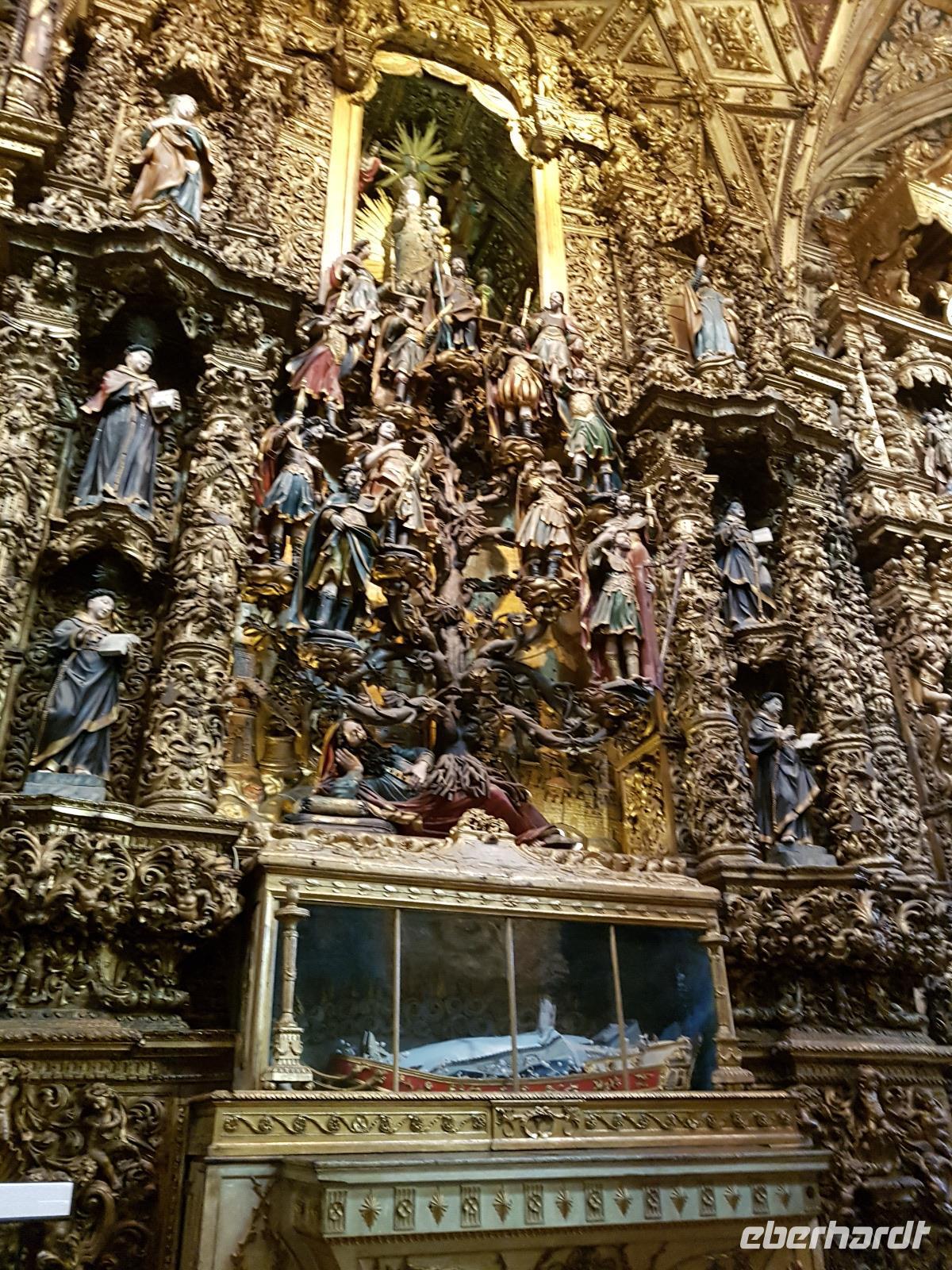 Nach kurzer Busfahrt erreichten wir Fatima. Es ist ein recht junger Wallfahrtsort. 1917 erschien 3 Kindern eine Madonna beim Schafe hüten. Diese Erscheinung wiederholte sich jeden Monat und im Herbst wohnten ihr schon mehrere tausend Menschen bei. Ab dann wurde regelmäßig nach Fatima gepilgert. In den 50er Jahren baute man die Basilika und überführte den Leichnam der Kinder in die Kirche. Schon bald war die Basilika zu klein für die vielen Pilger und so entstand der monumentale Platz davor. Seit 1973 trug man sich mit dem Gedanken, eine größere Basilika zu errichten. 1997 wurde ein internationaler Wettbewerb ausgeschrieben und 1998 bekam ein griechischer Architekt den Zuschlag. Im Jahr 2000 weilte Papst Johannes Paul II in Fatima und danach begann der Bau. Die Einweihung erfolgte im Herbst 2007 und seit 2012 trägt das monumentale Gebäude den Namen Basilika Minor. Der freitragende Innenraum bietet fast 9000 Pilgern Platz. Nach dem Besuch all dieser Gebäude stärkten wir uns mit einem kleinen Imbiss und fuhren dann weiter gen Norden nach Porto.
