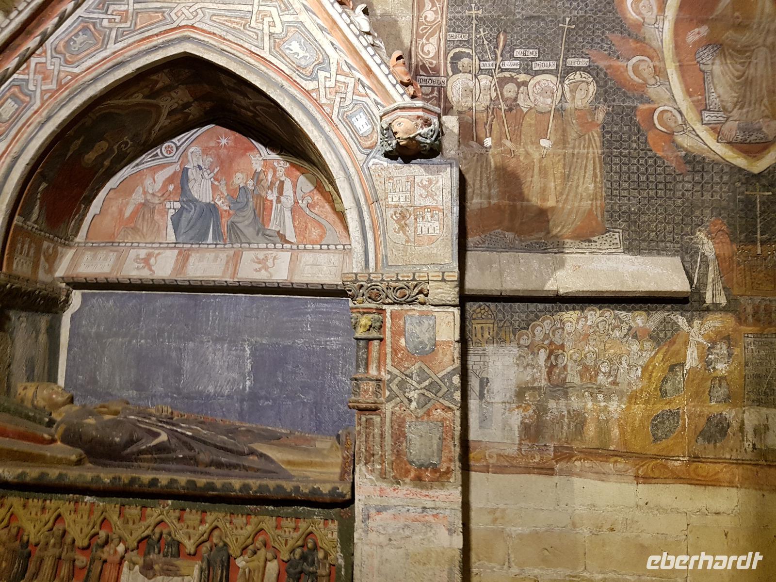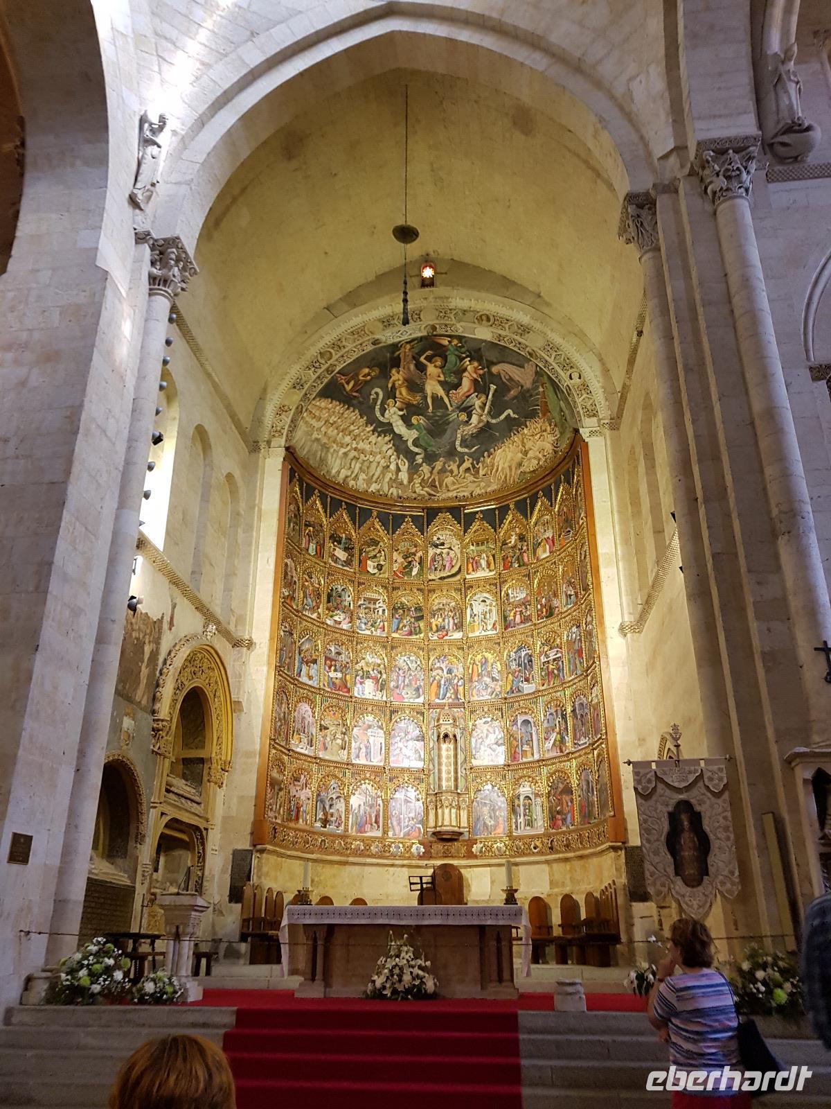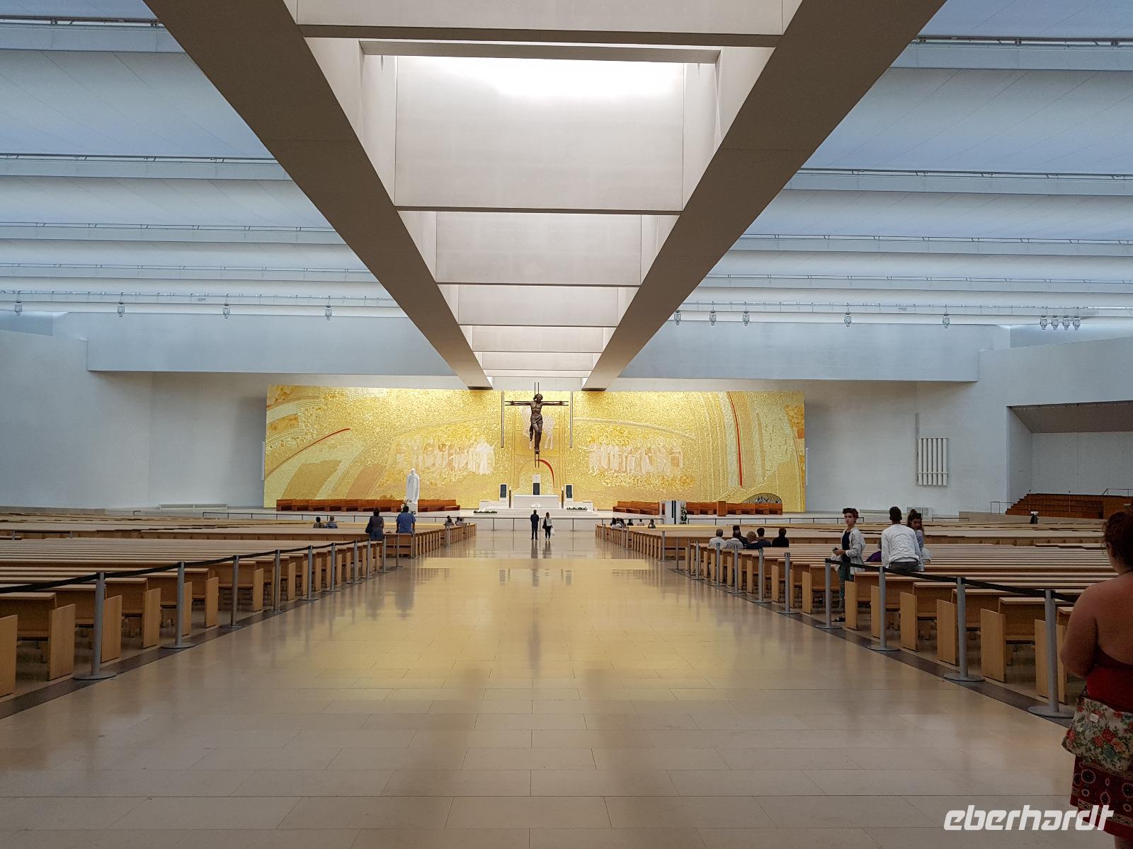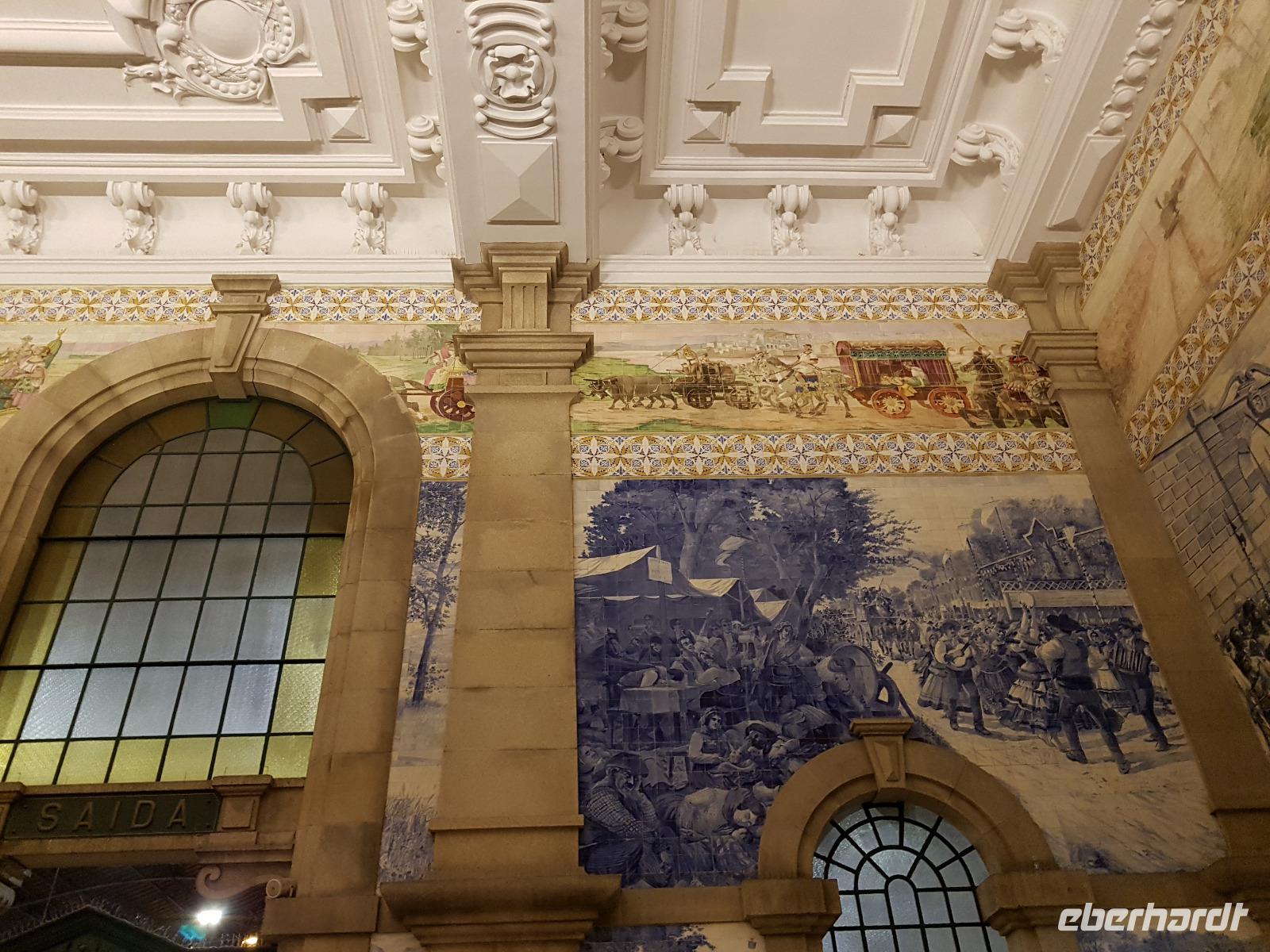 Nach kurzer Busfahrt erreichten wir Fatima. Es ist ein recht junger Wallfahrtsort. 1917 erschien 3 Kindern eine Madonna beim Schafe hüten. Diese Erscheinung wiederholte sich jeden Monat und im Herbst wohnten ihr schon mehrere tausend Menschen bei. Ab dann wurde regelmäßig nach Fatima gepilgert. In den 50er Jahren baute man die Basilika und überführte den Leichnam der Kinder in die Kirche. Schon bald war die Basilika zu klein für die vielen Pilger und so entstand der monumentale Platz davor. Seit 1973 trug man sich mit dem Gedanken, eine größere Basilika zu errichten. 1997 wurde ein internationaler Wettbewerb ausgeschrieben und 1998 bekam ein griechischer Architekt den Zuschlag. Im Jahr 2000 weilte Papst Johannes Paul II in Fatima und danach begann der Bau. Die Einweihung erfolgte im Herbst 2007 und seit 2012 trägt das monumentale Gebäude den Namen Basilika Minor. Der freitragende Innenraum bietet fast 9000 Pilgern Platz. Nach dem Besuch all dieser Gebäude stärkten wir uns mit einem kleinen Imbiss und fuhren dann weiter gen Norden nach Porto.