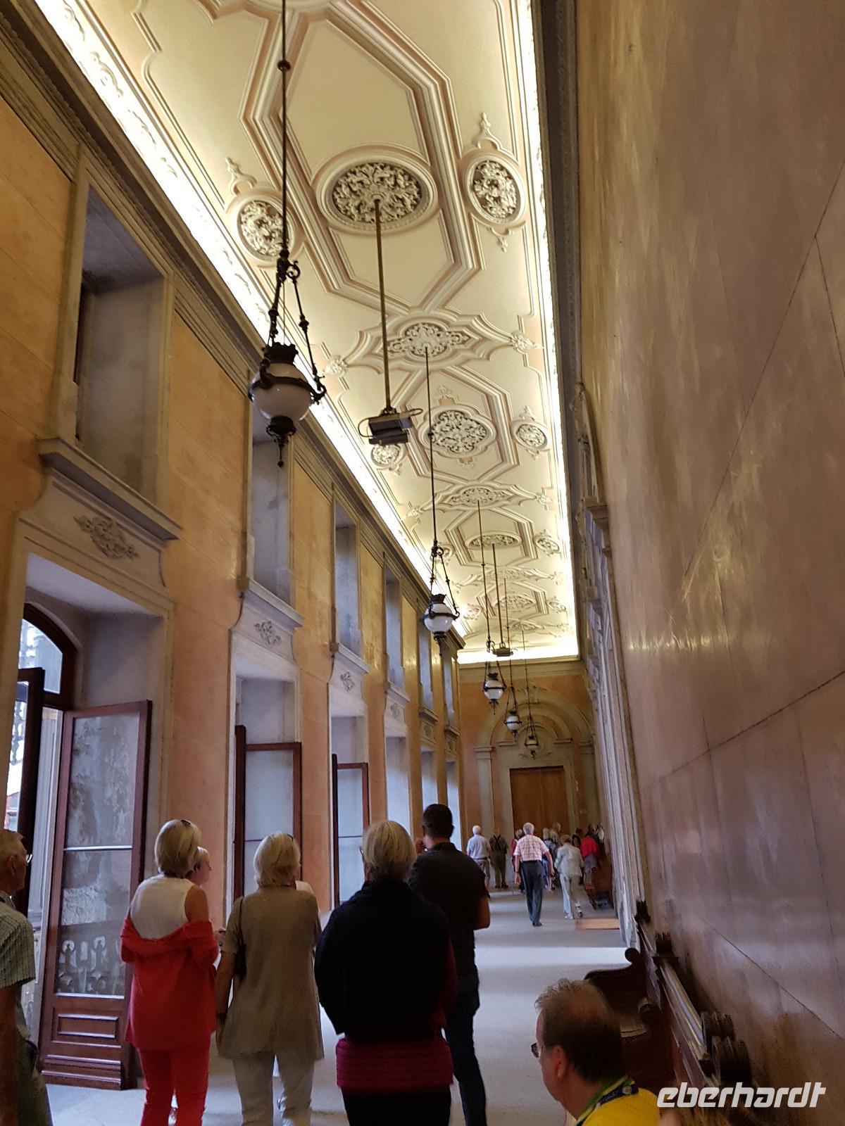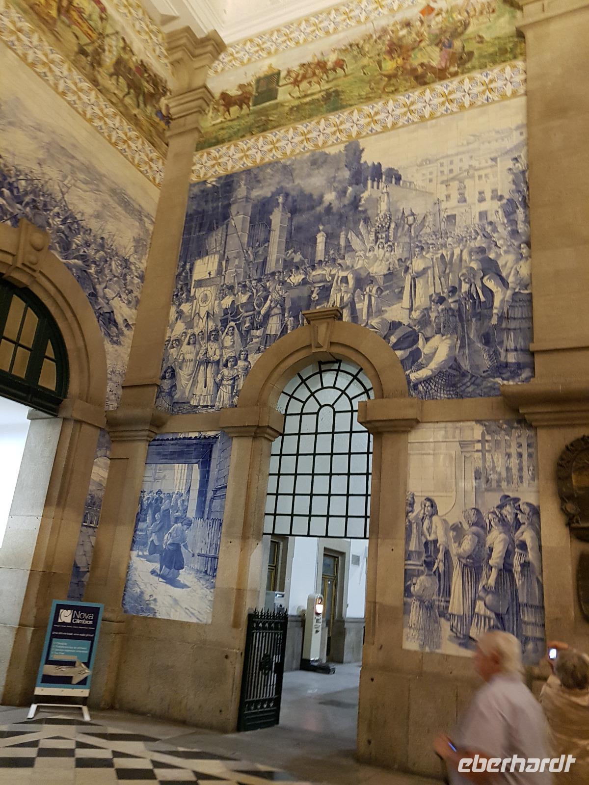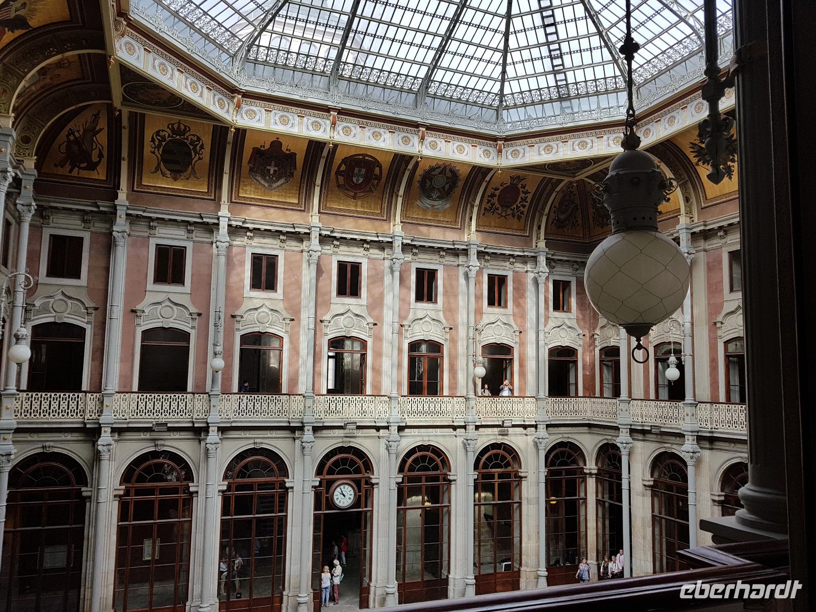 Nach dem Frühstück fuhren wir mit dem Bus und unserem Stadtführer Paulo, den wir vom Vorabend schon kannten, ins Zentrum von Porto. An der Börse stiegen wir aus und gingen zunächst zur Franziskanerkirche und besichtigten dieses Kleinod auch innen. Danach folgte die Innenbesichtigung des Börsengebäudes. Die Börse wurde 1834 errichtet und wart Sitz der Handelsvereinigung Portos. Die Innenräume waren prächtig verziert und besonders schön der arabische Saal. Es folgte eine kleine Rundfahrt durch die Stadt und dann brachte uns der Bus über den Douro in der Schwesternstadt Gaia, wo sich am Ufer zahlreiche Portweinkellereien befanden. Wir kehrten bei Sandeman ein und erfuhren bei einer Führung mit einer jungen Dame das Geheimnis der Portweinherstellung mit dem Ruby, dem Tawny und dem Vintage. Am Ende der Führung stand die Probe eines weißen und eines roten Portweines. Wieder zurück auf dem Schiff stärkten wir uns beim Mittagessen. Am Nachmittag konnte man für 6 Euro mit dem Rabelo-Boot, welches direkt neben unserem Kreuzfahrtschiff anlegte, nochmals in die Stadt fahren. Eine gute Gelegenheit für individuelle Besichtigungen, für einen Bummel durch die Gassen und Geschäfte oder mit einer alten Staßenbahn hinaus an den Atlantik zu fahren. Nach dem Abendessen lernten wir in der Bar beim Fado Abend den typischen portugisischen Gesang, begleitet von 2 Gitarren, kennen.