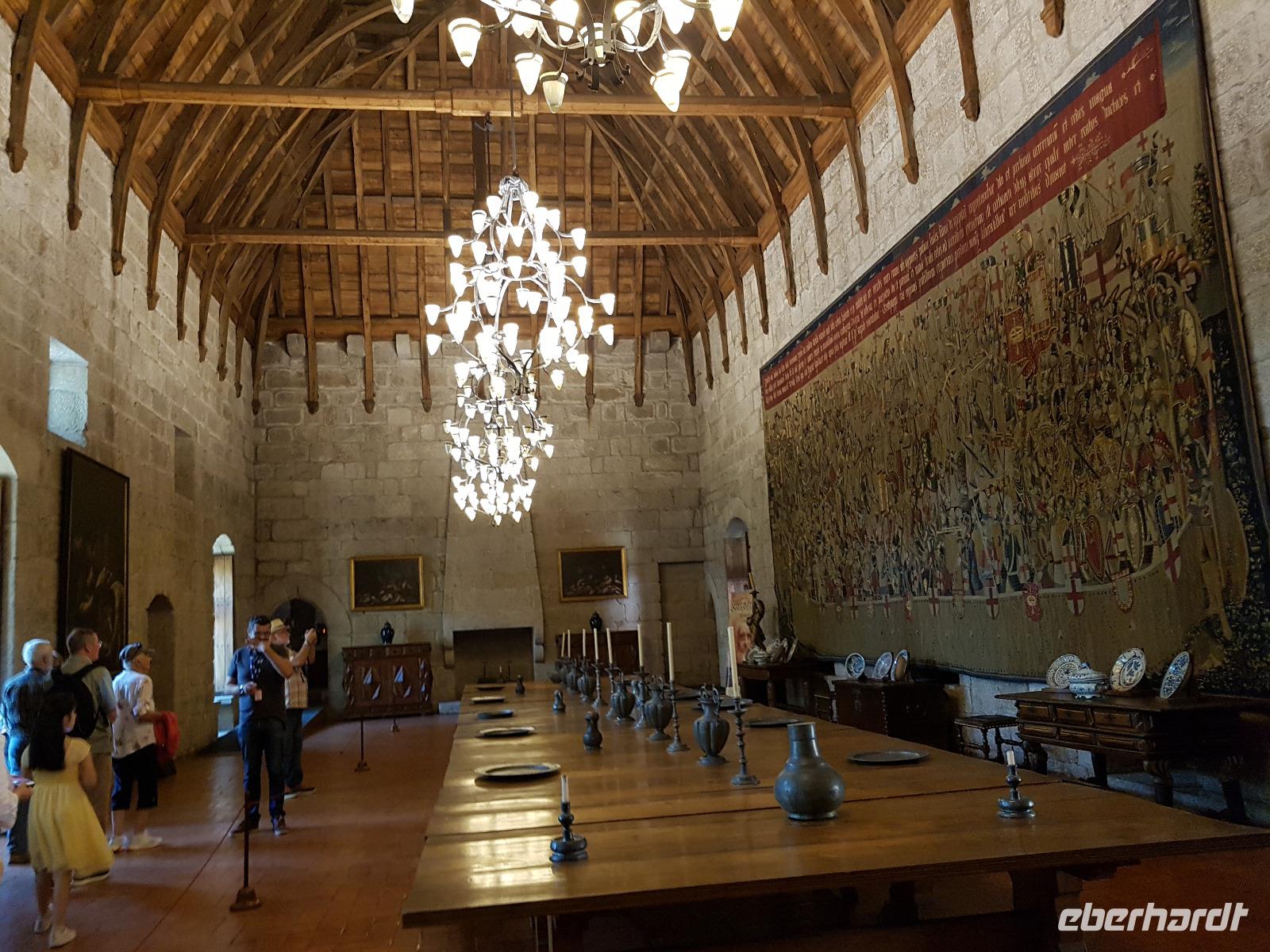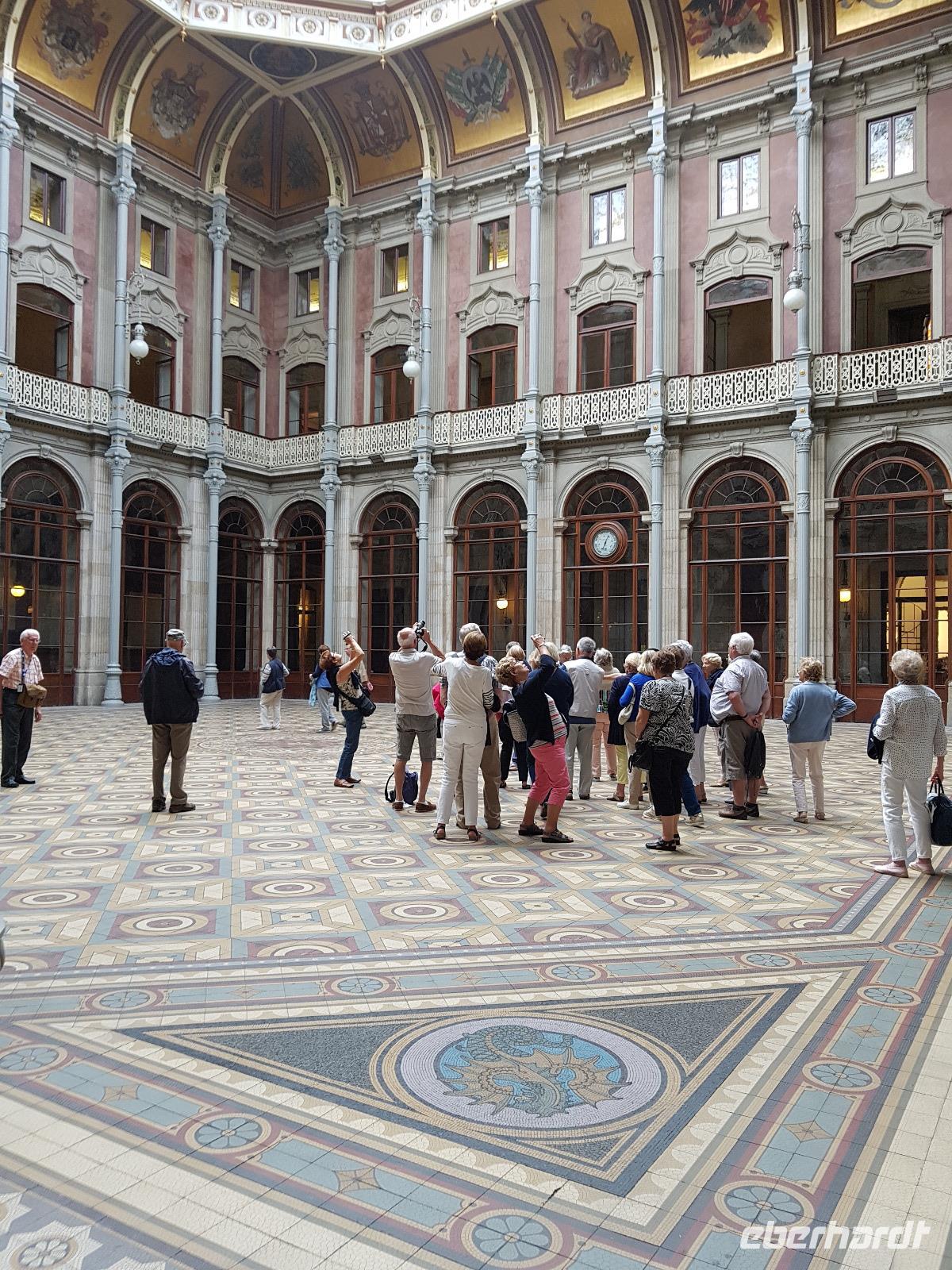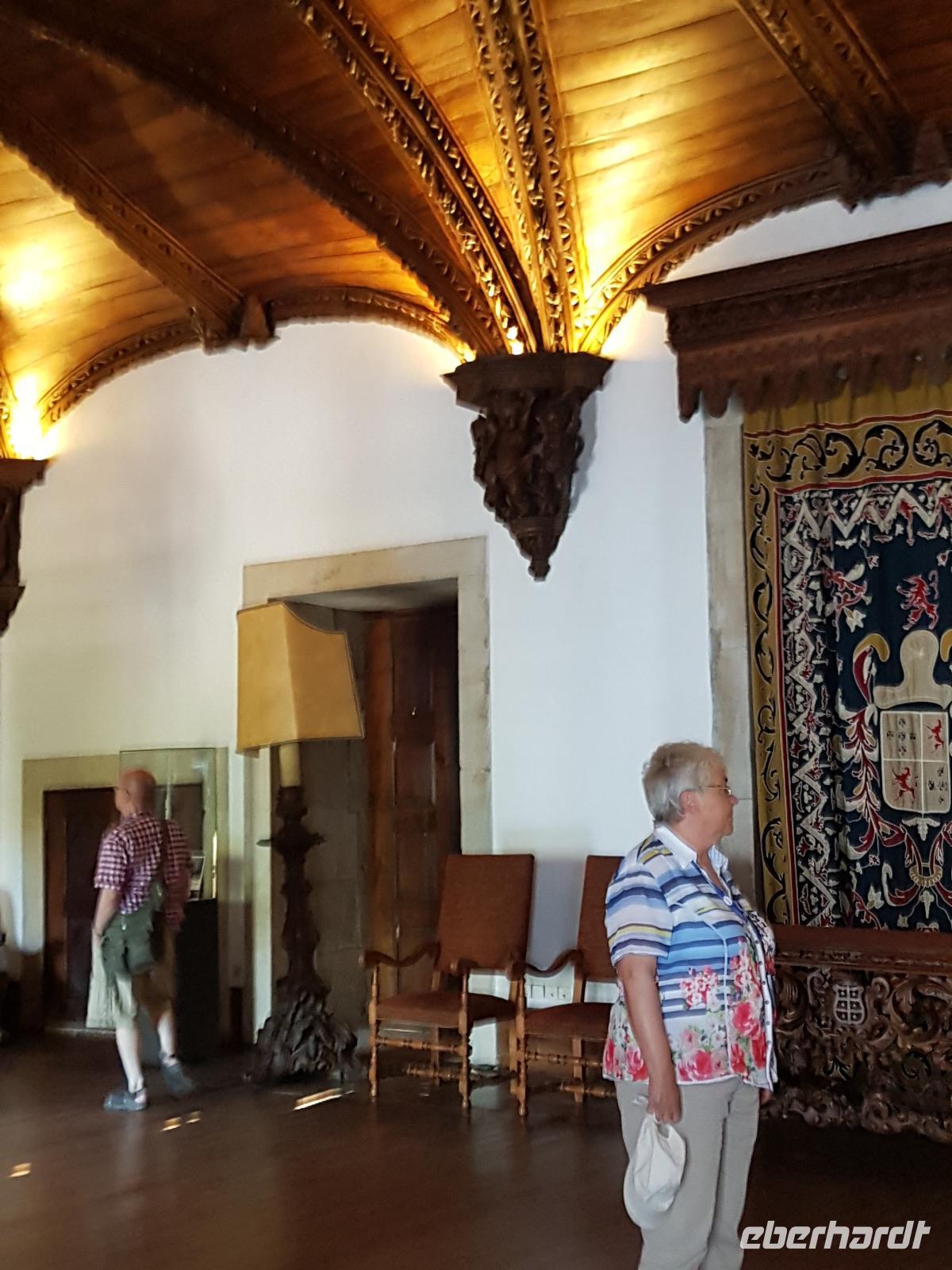 Immer 7 Uhr öffnete sich der Speisesaal mit einem sehr reichhaltigen Frühstücksbuffet und 8.30 Uhr begannen die Ausflüge am Vormittag. Die Ausflüge waren individuell buchbar und so war unsere Gruppe selten komplett auf einem Ausflug. Heute stand die alte Königsstadt Guimaraes auf dem Programm, eine Fahrstunde von Porto entfernt. Am Rande von Porto kamen wir am "Drachenstation" des Fußballclubs FC Porto vorbei. Der imposante Bau entstand anläßlich der Europameisterschaften 2004 und ist ein Multifunktionsbau, wo neben Fußballspielen auch Konzerte oder große Hochzeiten stattfinden. Wir fuhren wieder mit Paulo und schon auf der Fahrt machte er uns mit der Geschichte Portugals bekannt und berichtete wie Heinrich von Burgund die Könige im Kampf gegen die Mauren unterstützte und dafür die Grafschaft Portugale erhielt. Sein Sohn Alfonso wurde dann nach dem Tod des Vaters der erste König Portugals. Wir besuchten den Königspalast, der heute noch eine Residenz des portugisischen Staatspräsidenten ist und wo wichtige ausländische Staatsoberhäupter empfangen werden.