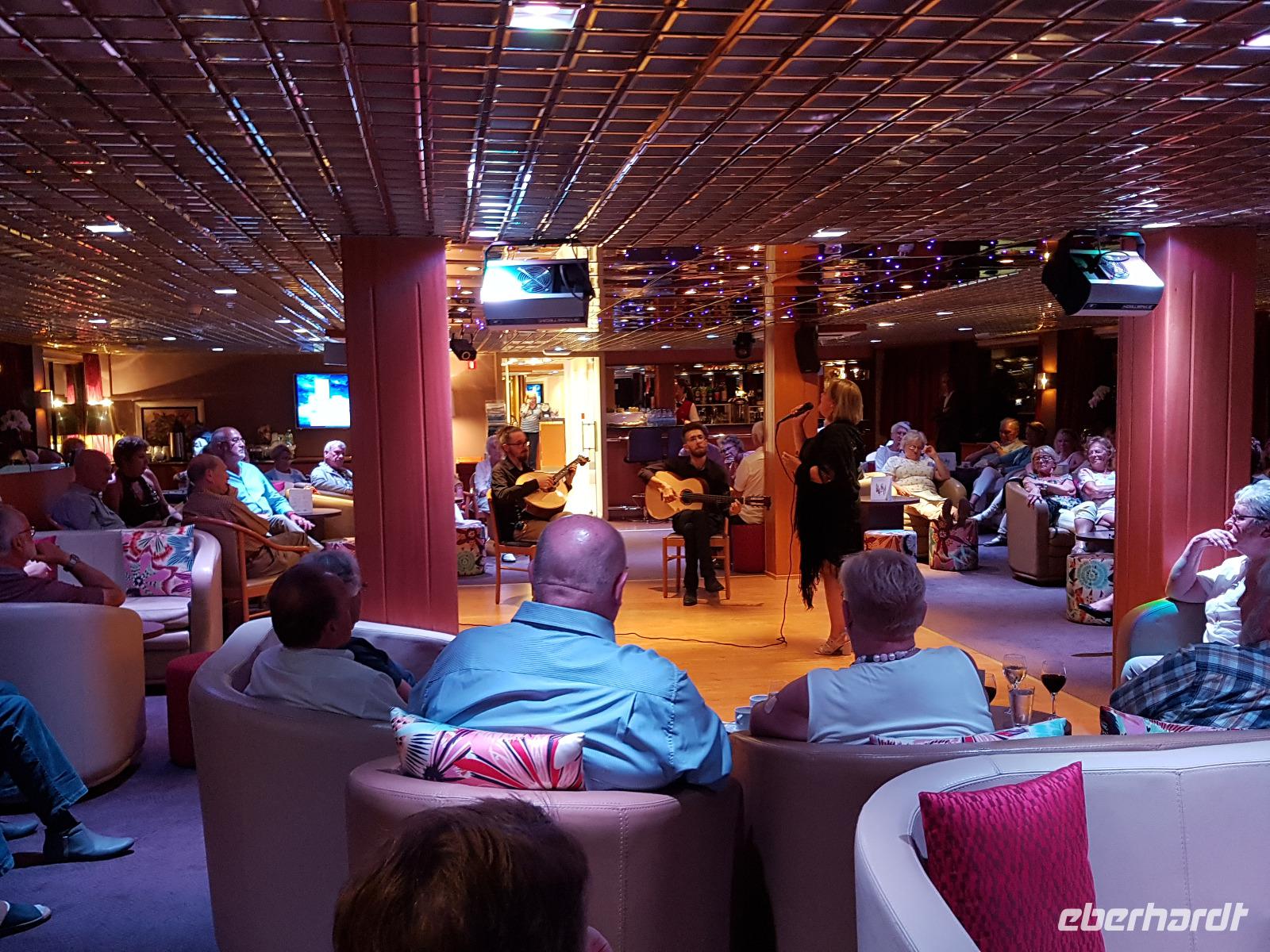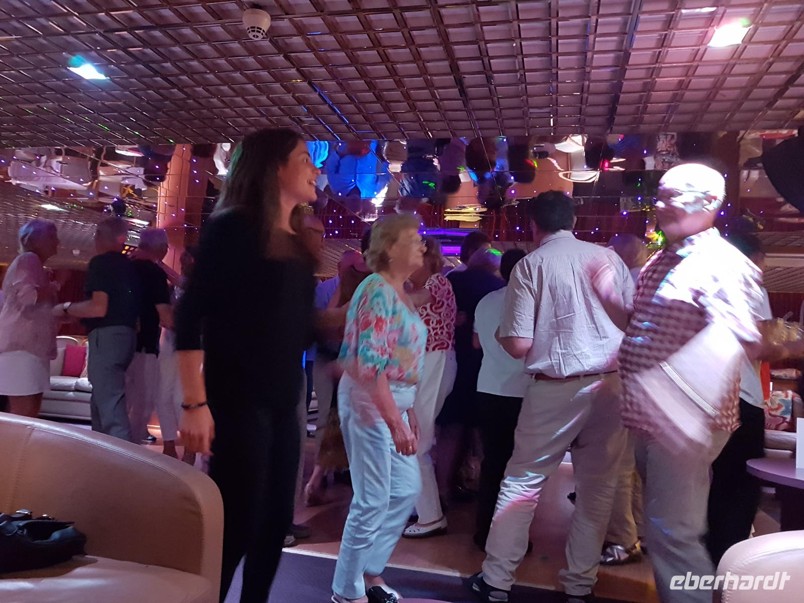 An Bord hieß es dann schick machen für den Gala Abend. Er begann mit einem Aperitif in der Bar und dann folgte ein fantastisches Essen im Speisesaal. Unsere Gruppe nutzte die Gelegenheit für ein Gala Foto mit dem Kapitän.