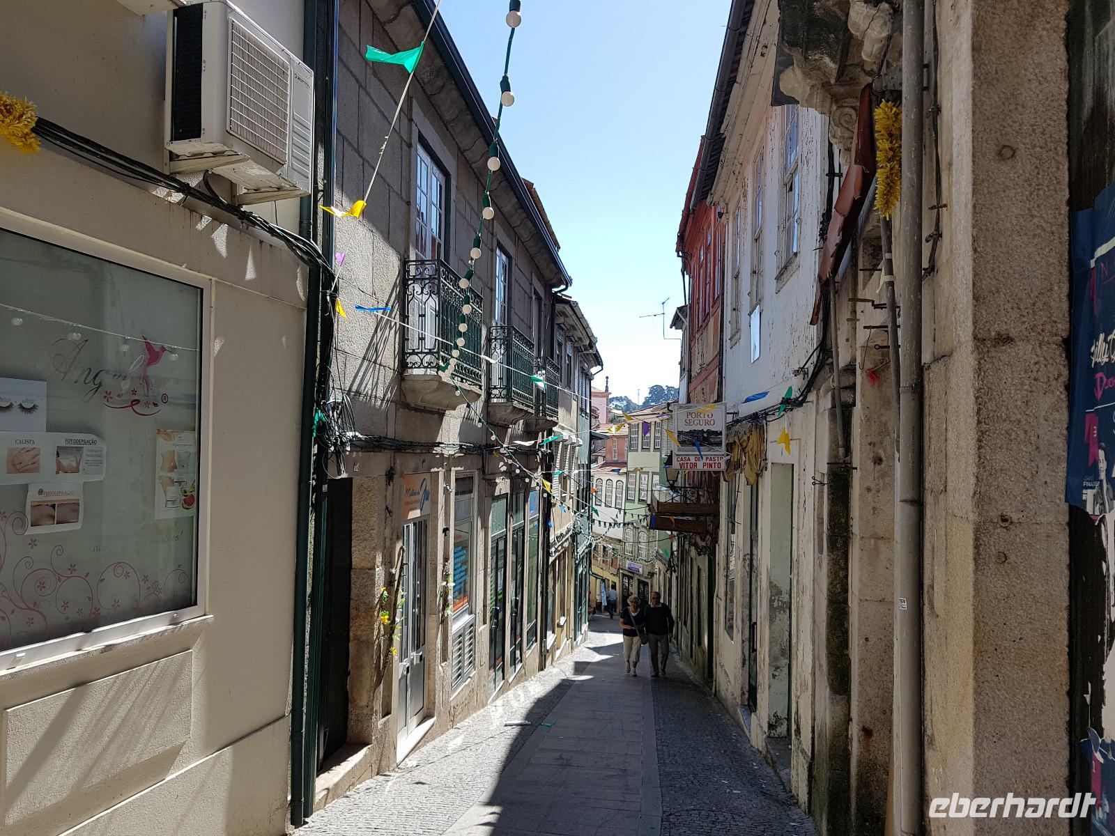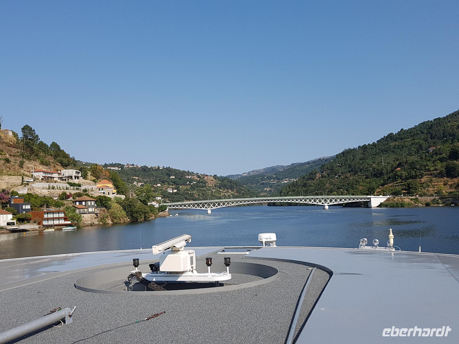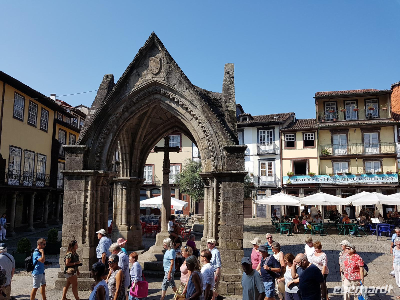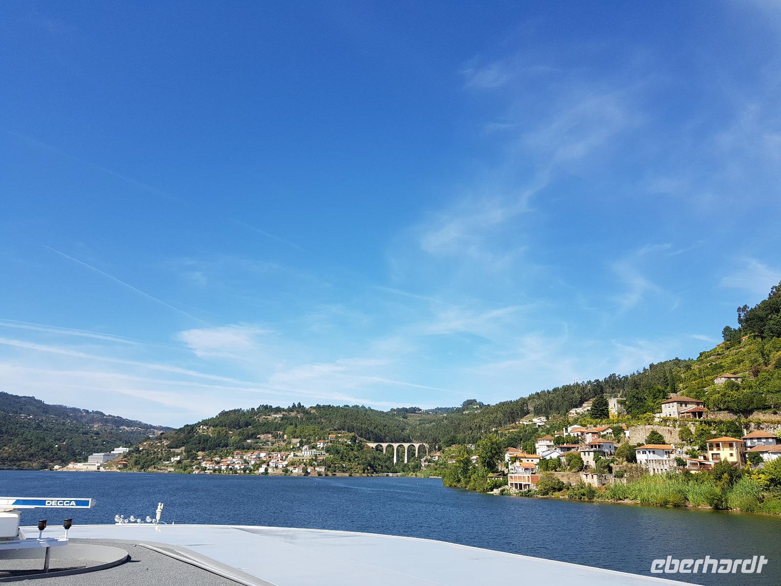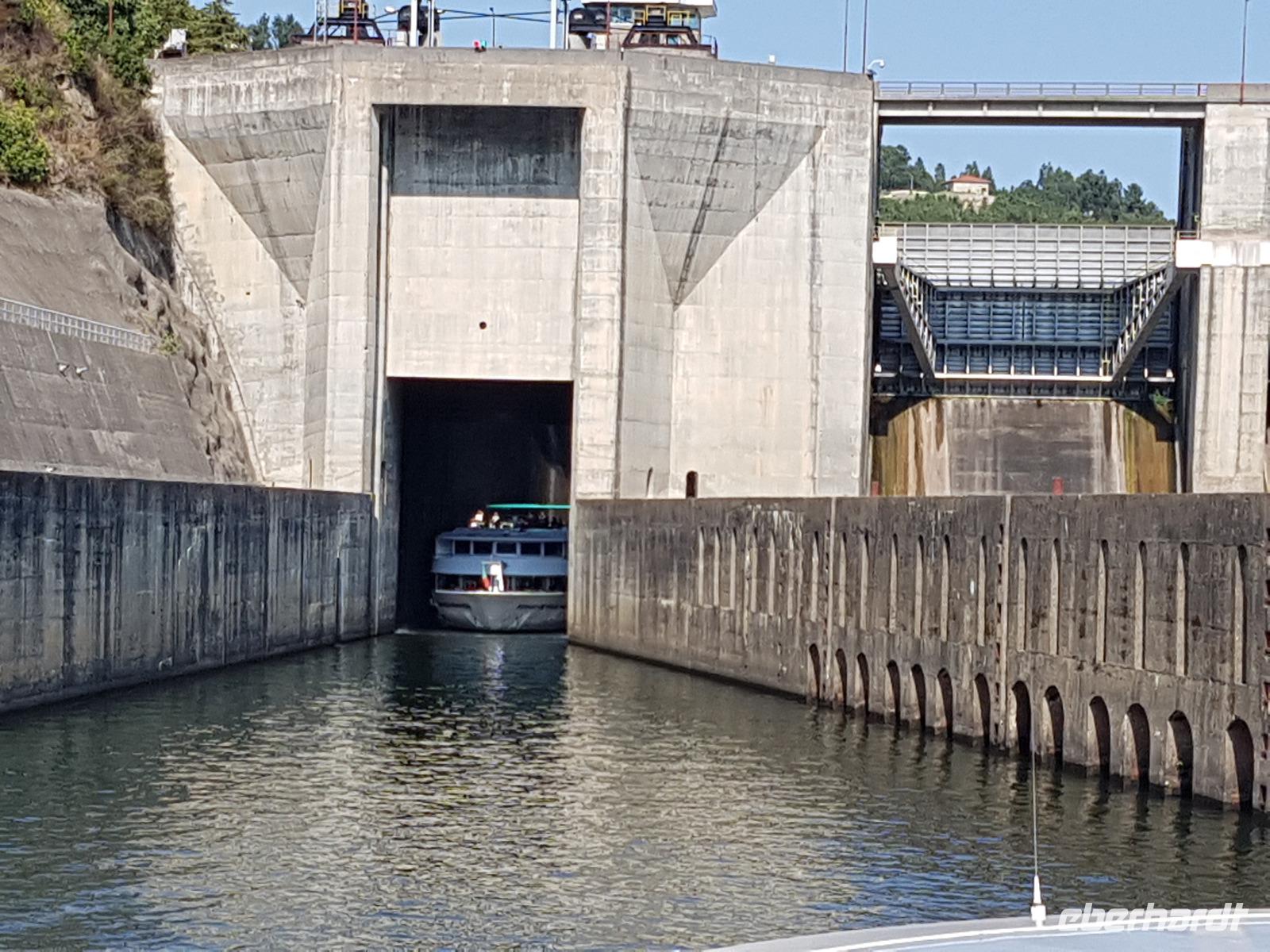 2012 war Guimaraes Europäische Kulturhauptstadt und so wurde der Spaziergang durch das Zentrum zu einem zweiten großen Erlebnis auf unserem Ausflug. Unser Schiff hatte inzwischen Porto verlassen und wir Ausflügler stiegen in Leverinho kurz vor dem Mittagessen wieder zu. Nach dem Mittagessen konnte dann auf dem Sonnendeck die Schleuseneinfahrt am Carrapatelo Staudamm beobachtet werden und unser Schiff wurde 36 m gehoben. Abends legte das Schiff in Regua an und so konnten wir nach dem Abendessen von Bord gehen und durch die Stadt bummeln.