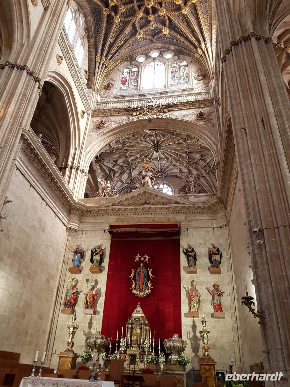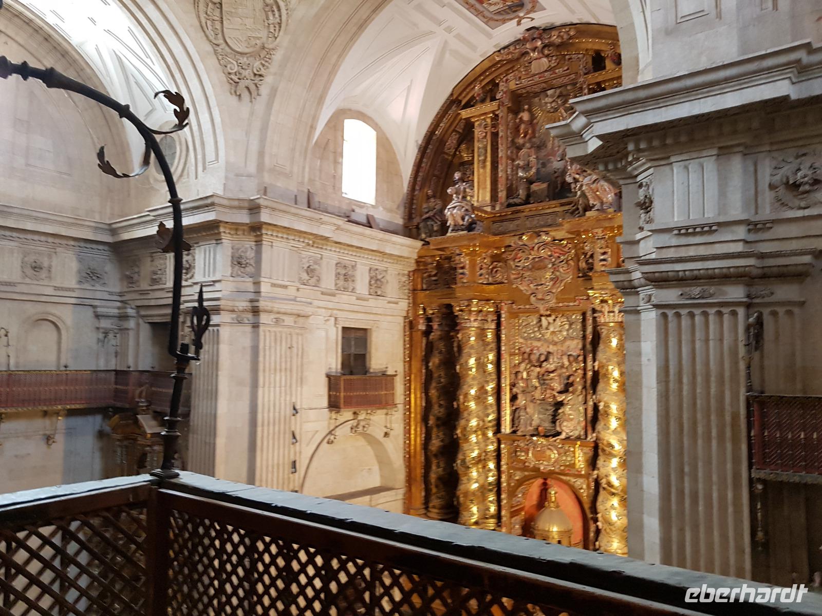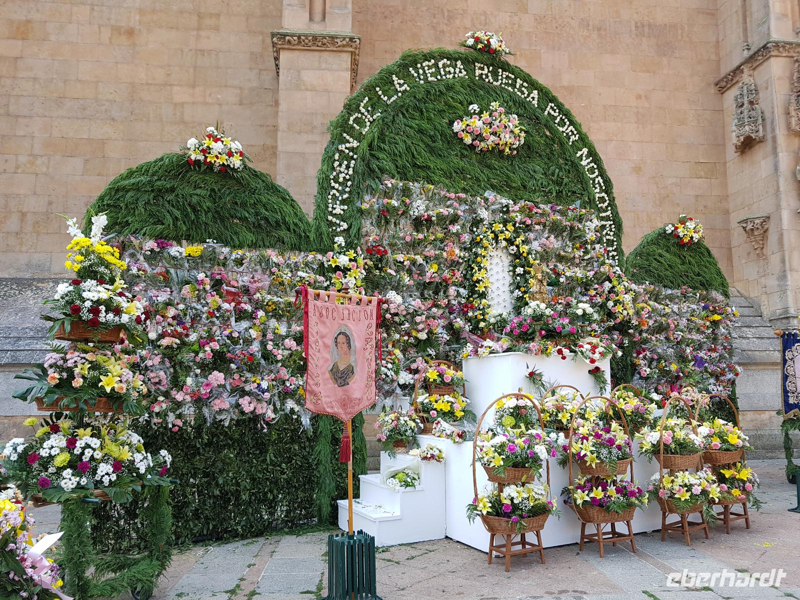 Früher als sonst fuhren wir ab mit dem Bus begleitet von Susanne und Teresa - 2 gute Geister der Rezeption. Unterwegs bekam jeder einen Stadtplan von Salamanca, wo alle wichtigen Stationen unserer Besichtigung und die Treffpunkte mit Uhrzeiten eingezeichnet waren - eine perfekte Vorbereitung. In Salamanca dann erwartete unsere kleine Gruppe eine deutschsprachige Führerin, die mit uns einen schönen Rundgang machte. Es war Sonntag und die Stadtbewohner feierten ihr wichtigstes Fest der Madonna von Bega gewidmet. Auf dem Plaza Mayor begann gerade der Rundgang der Prominenz in Richtung Kathedrale. Wir spazierten weiter durch die Innenstadtgassen zur alten Universität, wo wir am Portal den berühmten Frosch auf einem Totenkopf finden mußten. Die Innenräume der alten Universität sind im Kreuzgang angeordnet und wir besichtigten sie einschließlich der Kapelle. Unser Mittagessen nahmen wir im Muschelhaus ein und danach war Freizeit. Wir stiegen auf die beiden Türme der ehemaligen Jesuitenkirche, besuchten danach die neue und alte Kathedrale und ganz zum Schluß das Art Deco Museum. Es war ein sehr schöner Ausflug mit perfekter Organisation. Auf dem Schiff ging es spanisch weiter mit dem Abendessen und einer Flamenco Show in der Bar.