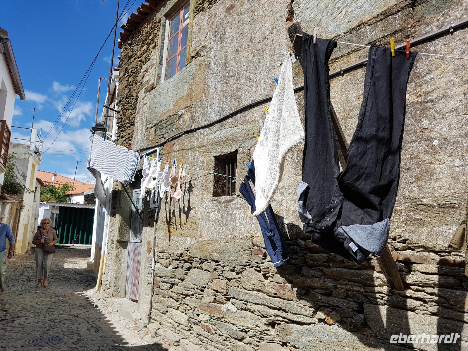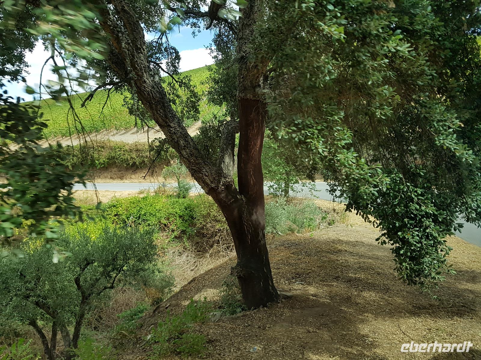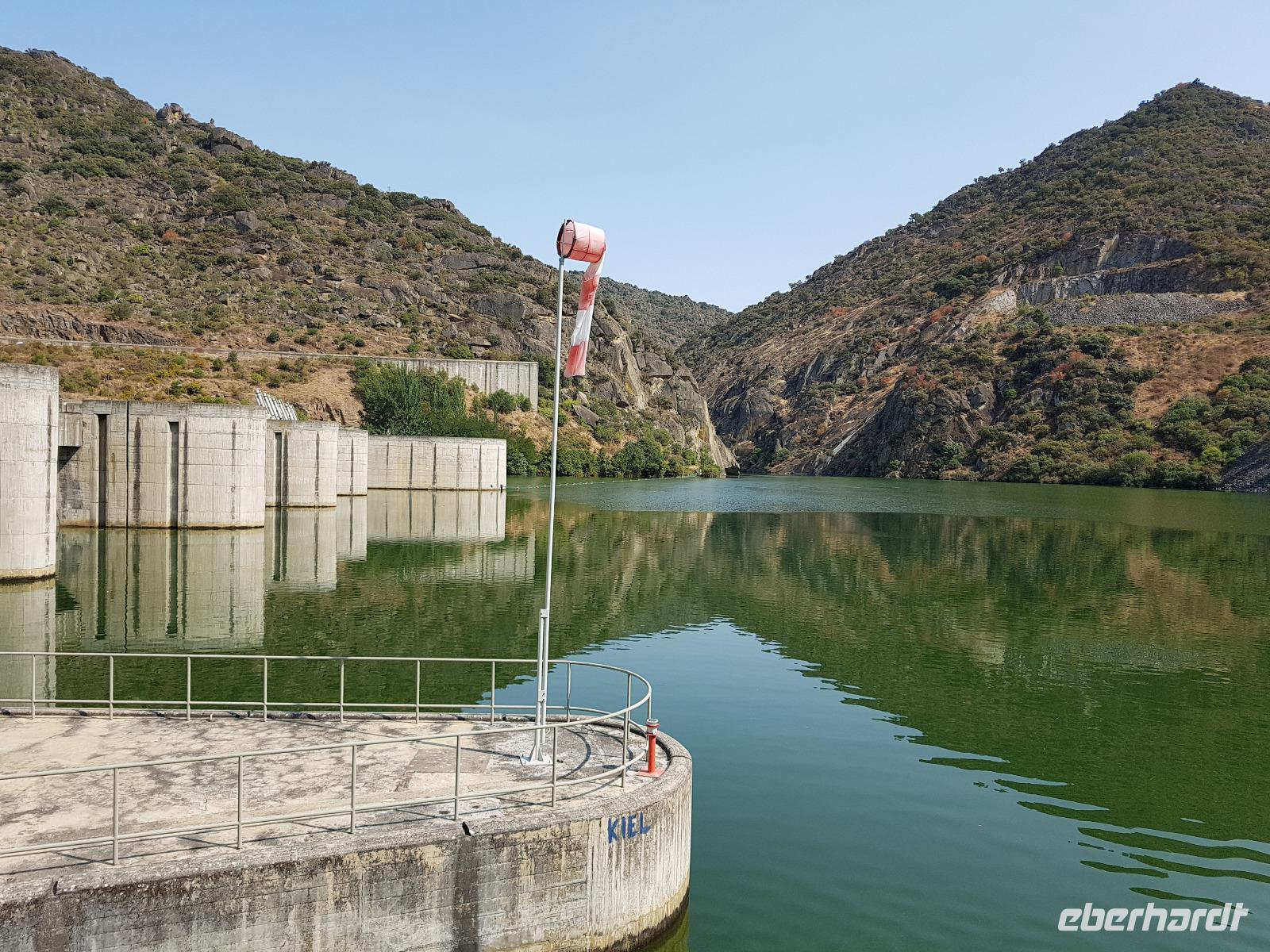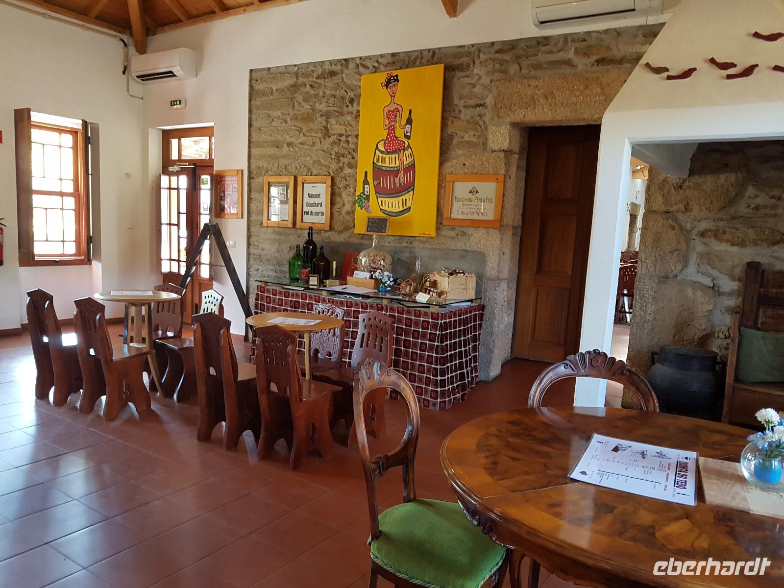 Das Frühstück gab es später, weil der Vormittag gemütlich an Bord verbracht wurde. Für Bewegung sorgte die Crew beim Frühsport auf dem Sonnendeck und danach gab es wieder ein Quizz und einen weiteren Staudamm mit Schleuse. Nach dem Mittagessen begann dann der Ausflug zur Portweinstrasse. Er wurde von Adelia begleitet, die auch in Deutschland gelebt hatte und sehr gut zu verstehen war. Wir fuhren mit dem Bus steil bergan auf 500 m Höhe zu einem Aussichtspunkt und dann weiter auf 700 m nach Sao Joao de Pesqueira vorbei an vielen Mandelbäumen, Korkeichen und Olivenhainen. Dieser kleine Ort war ganz zauberhaft und der Rundgang zum Hauptplatz und durch die Katzenstrasse sehr interessant. Die Einwohnerinnen boten viele regionale Produkte an. Weiter ging unsere Fahrt durch die steilen Weinberge und Adelia berichtete über die Weinernte, die Quoten, die jährlich festgelegt werden, die verschiedene Anordnung der Rebstöcke und die Rebsorten. Es boten sich Ausblicke bis hinunter zum Douro und dort lag an einem Nebenfluß die Portweinkellerei Quinta do Tedo, die wir besuchten. Die Besitzer haben sich dem biologischen Weinanbau verschrieben und so werden die Trauben auch noch ganz traditionell mit den Füßen getreten, um den Saft zu gewinnen. Wir probierten rote Portweine und einen Rose und durften auch frische Trauben verkosten. Mit dem Bus ging es zurück nach Pinhao, wo unser Schiff lag. Zuvor besuchten wir aber noch den Bahnhof mit seinen wunderschönen blauweißen Kacheln.