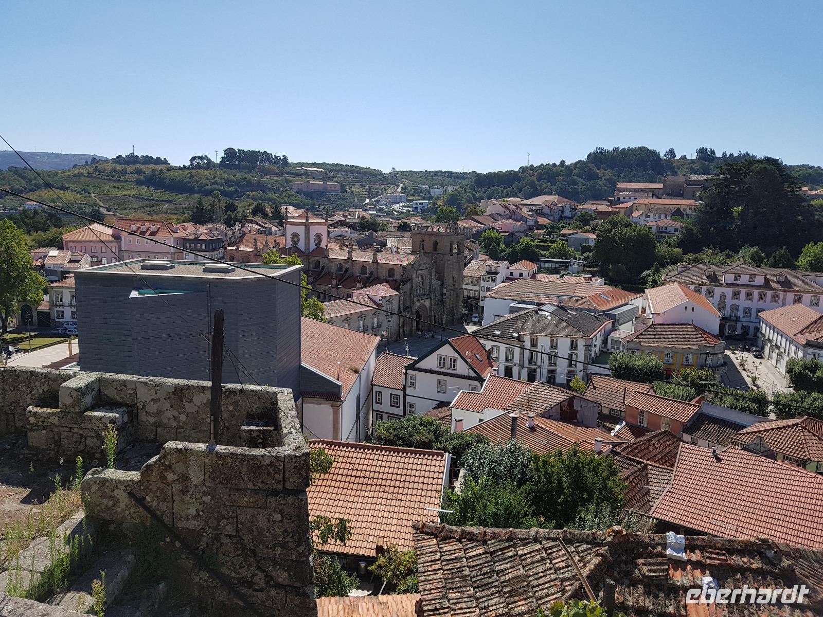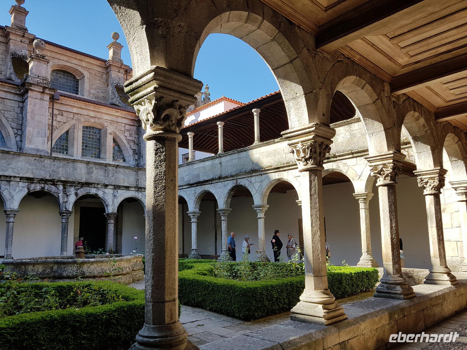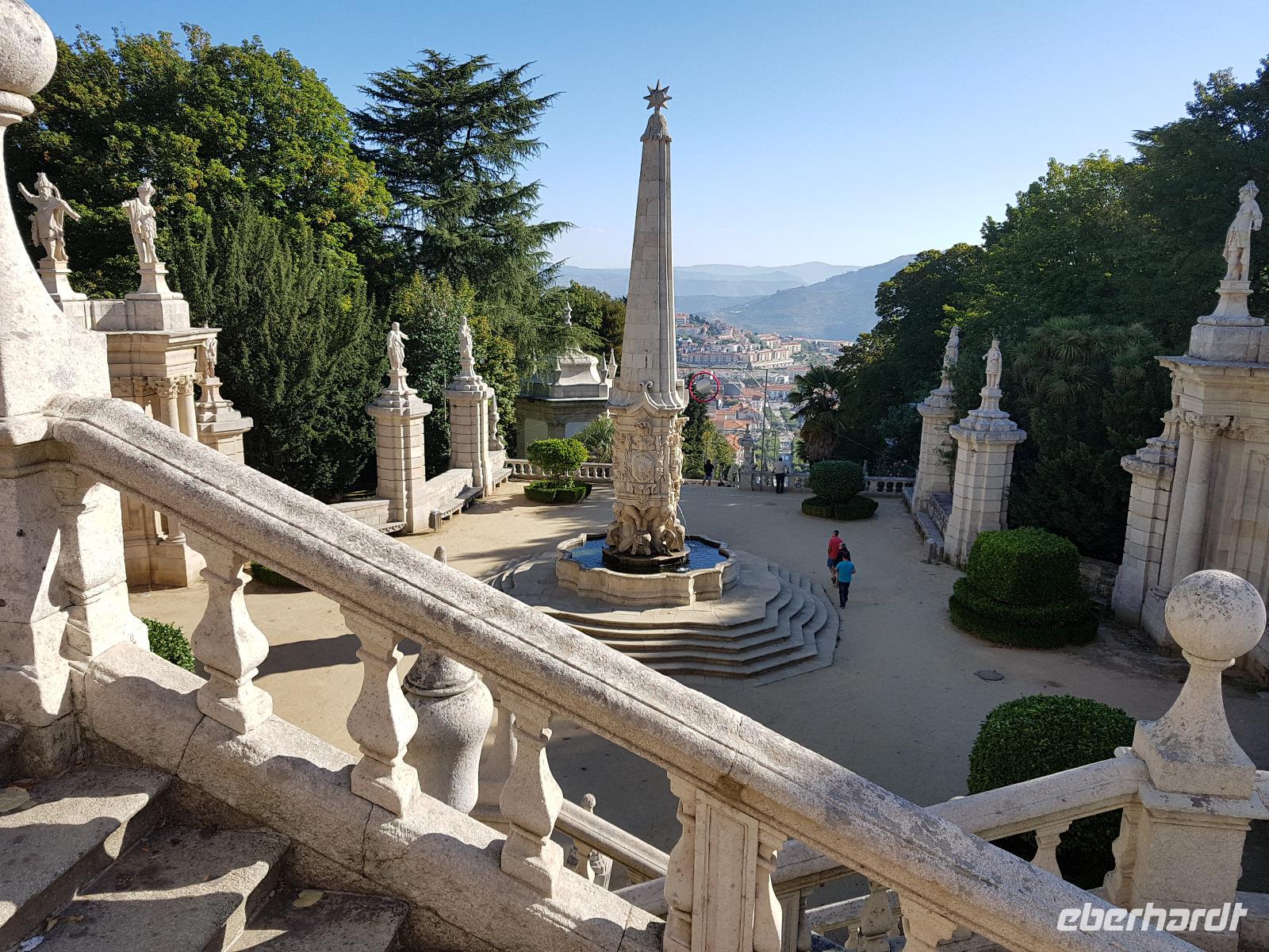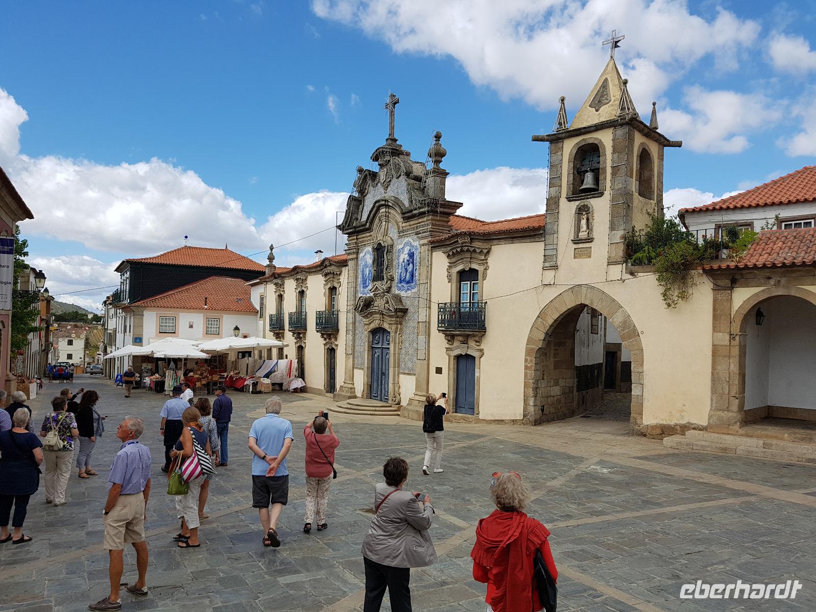 Unser Schiff kam während des Frühstücks in Folgosa an und dort gingen die Ausflügler von Bord. Adelia begleitete uns wieder und berichtete unterwegs zum Douro und einem Kanal, der das Wasser speichert, um an den sehr flachen und schmalen Stellen den Fluß zu speisen und so die Schifffahrt von April bis Anfang November zu sichern. Dann informierte sie uns schon vorab über den Wallfahrtort und die vielen Wunder der MADONNA FÜR DIE HAUSMITTEL. Oben an der Wallfahrtskirche in Lamego stiegen wir aus, besuchten die Kirche und gingen dann über die imposante Treppenanlage hinunter in die Stadt. Mit dem Bus fuhren wir ins Zentrum und besichtigten gemeinsam den Kreuzgang und danach die Kathedrale. In der Freizeit schlenderten wir durch schmale Gassen hinauf bis zur Burg und hatten von oben einen schönen Blick auf alle Gebäude. Danach blieb noch Zeit für einen Kaffee oder ein Glas Wein. Unser Schiff war inzwischen nach Regua weiter gefahren und dort gingen die Ausflügler mittags an Bord.
