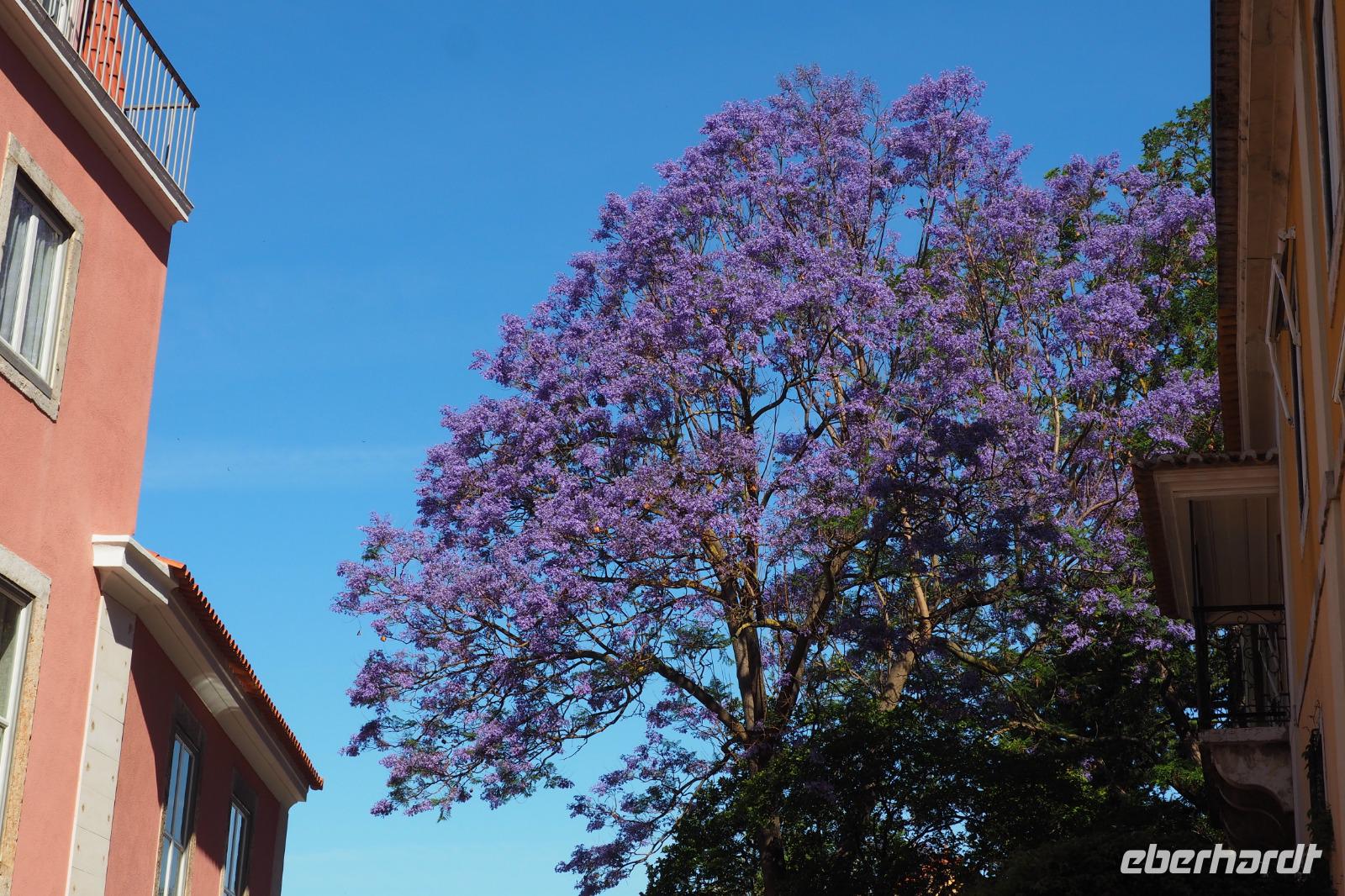 Wir setzten unseren Spaziergang durch die Alfama mit ihren kleinen Gassen und romantischen Ecken fort. Inzwischen war es hochsommerlich heiß, überall herrschte viel Betrieb und Straßenmusiker versammelten viele Menschen um sich. Die Blütenfülle in allen Farben war überwältigend! Dazu kam viel bunter Schmuck in den Gassen, denn die Stadt rüstete sich zum Antoniusfest. Isabel führte uns vorbei an einigen Fado-Lokalen und erzählte uns, was es mit diesem besonderen Gesang und der Musik auf sich hatte.
