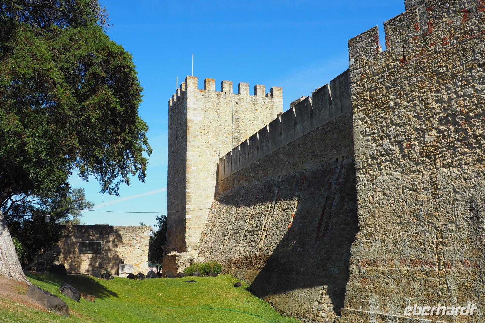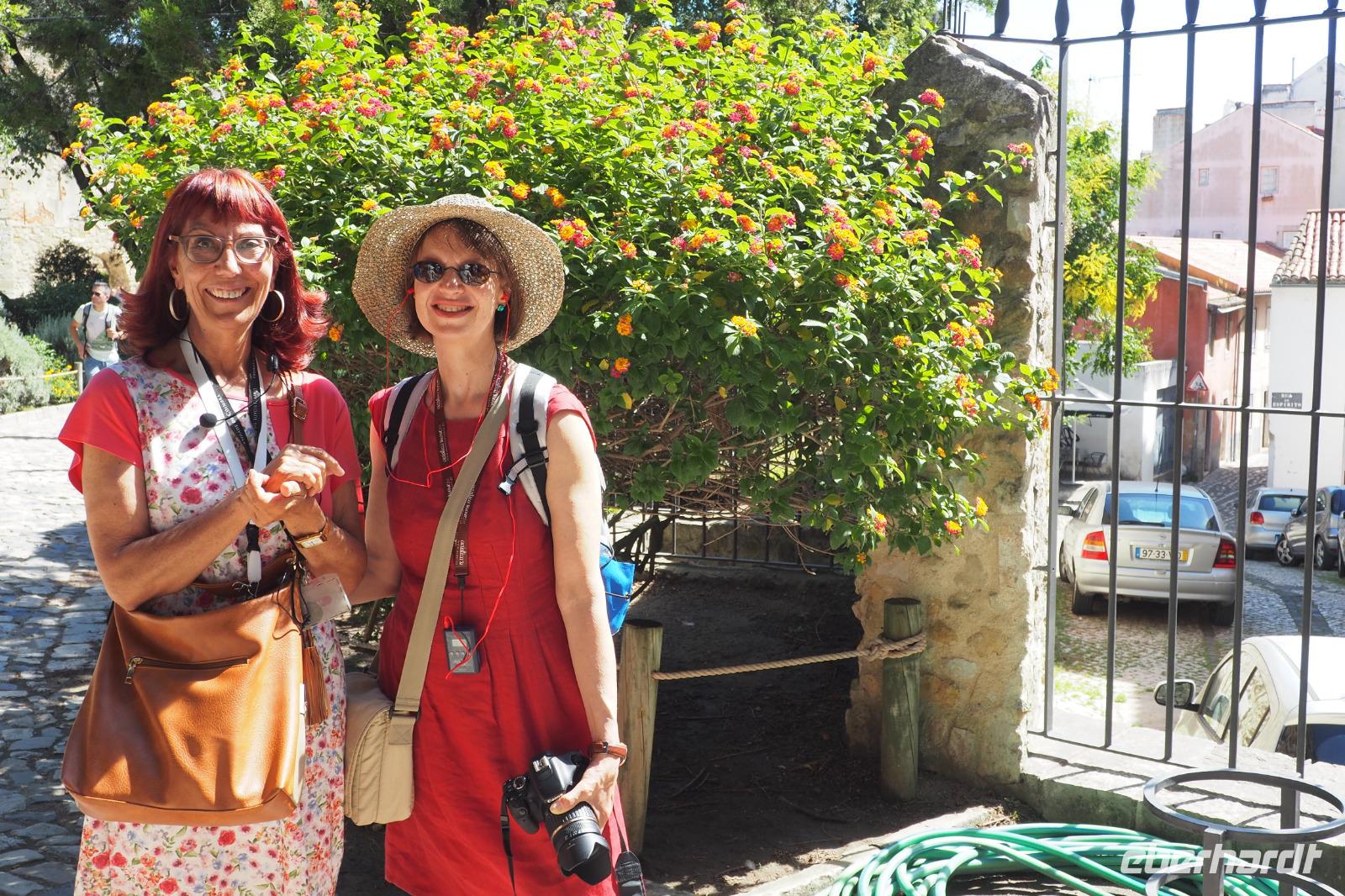 Unterwegs erfuhren wir allerlei zum ältesten Stadtviertel Lissabons, der Alfama, durch die wir spazierten. Wir genossen die Stimmung eines frühen Sonntagmorgens. Am Castel angelangt, erwartete uns die Besichtigung der großen Anlage. Phantastische Ausblicke hinunter auf die Stadt und über das Meer, alte Mauern, uralte Bäume, einfach eine besondere Atmosphäre, die hier herrschte. Natürlich erzählte uns Isabel die Geschichte der Burg und der Persönlichkeiten, die sie geprägt haben.