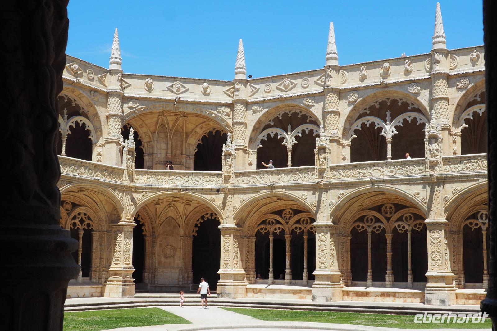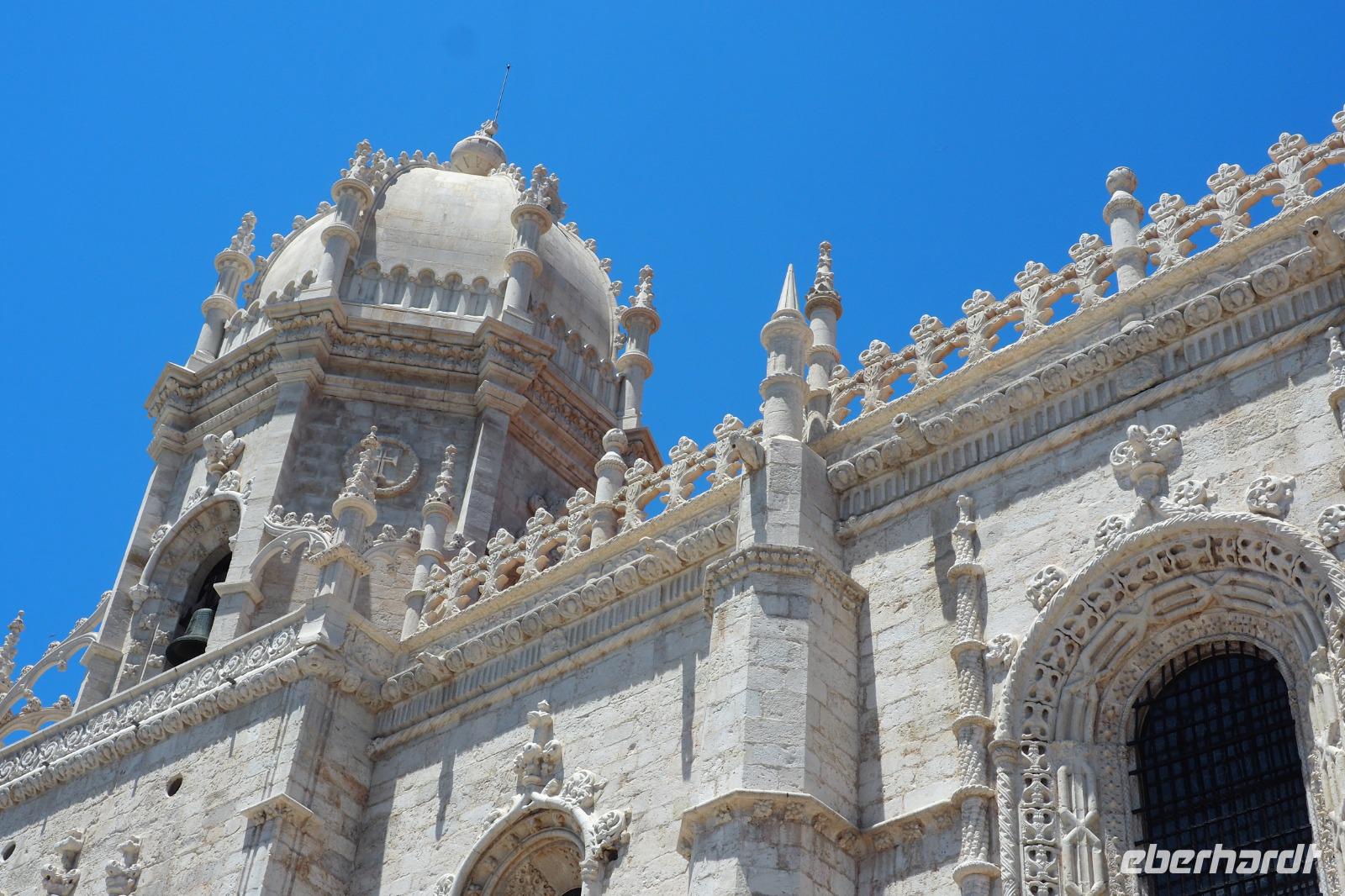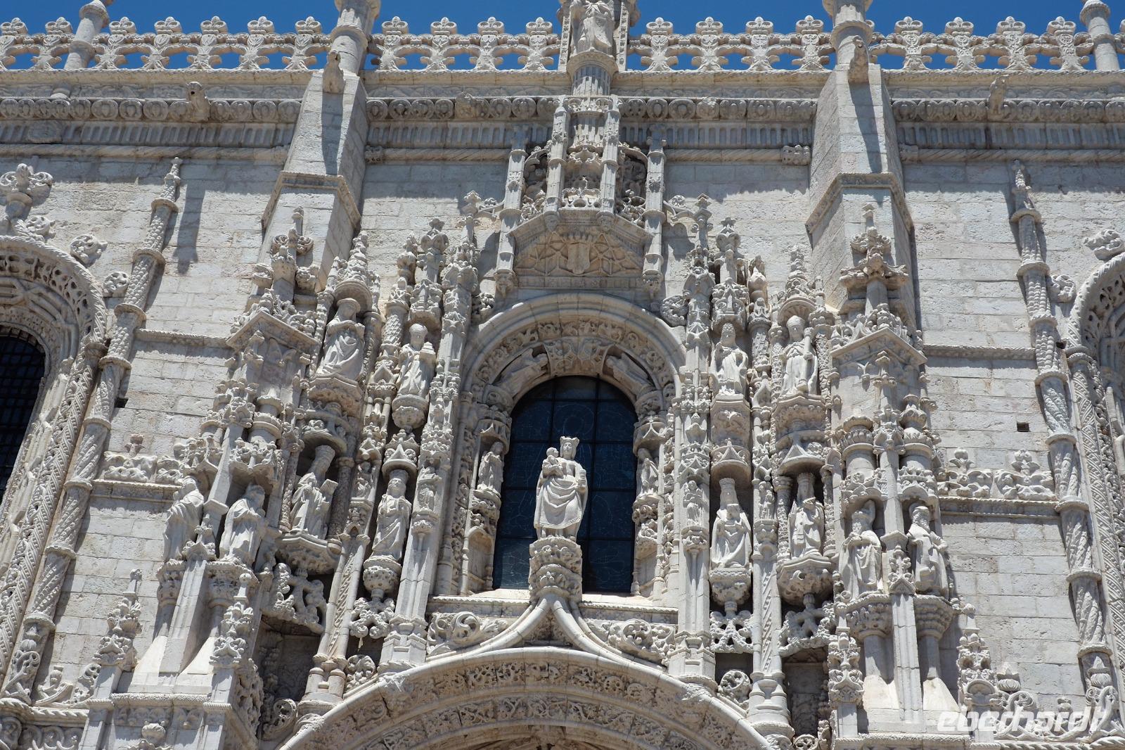 Nachdem die meisten etwas gegessen hatten und viele auch DIE Köstlichkeit der Hauptstadt probiert hatten, nämlich die 'pasteis de nata', ein kleines Küchlein, mit Creme gefüllt, ging es weiter mit der Besichtigung des Klosters. Hier erfuhren wir von einem ganz besonderen Stil, der Manuelinik. Die vielen Verzierungen, die das Kloster schmücken, zählen zu diesem Stil, der seinen Namen König Manuel I. verdankt.