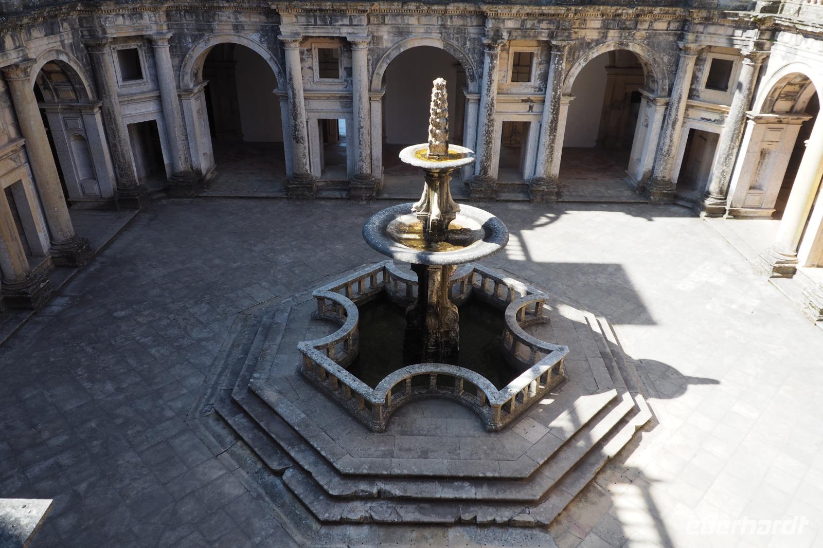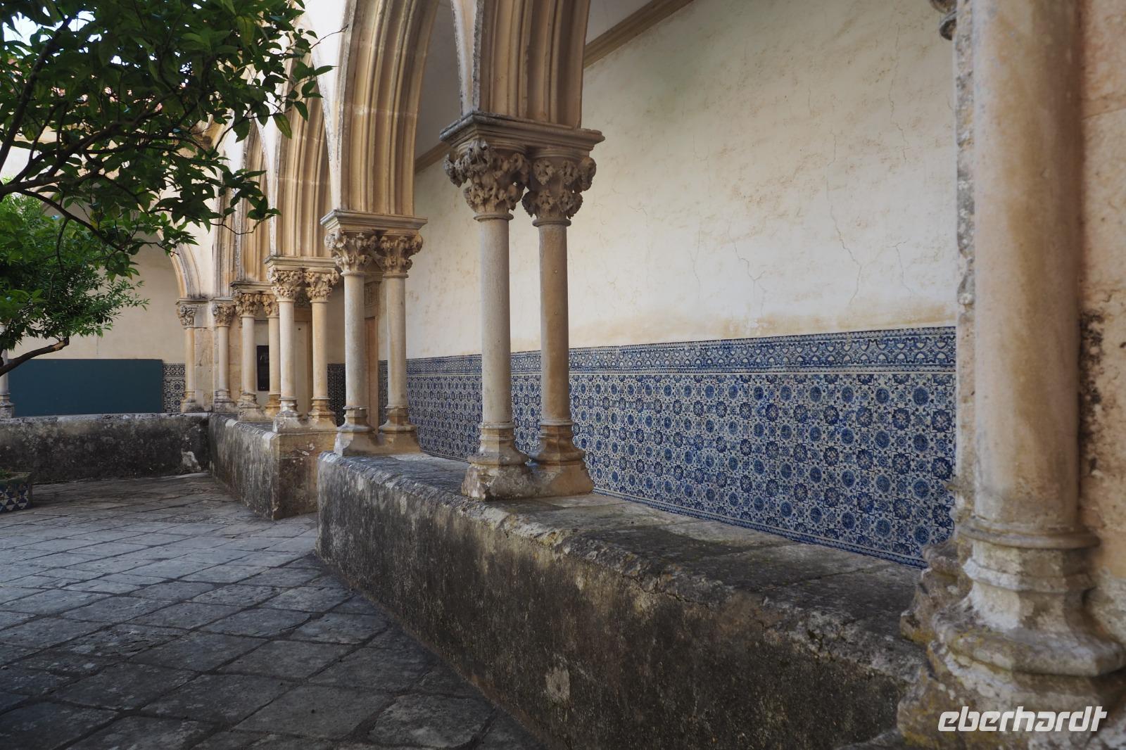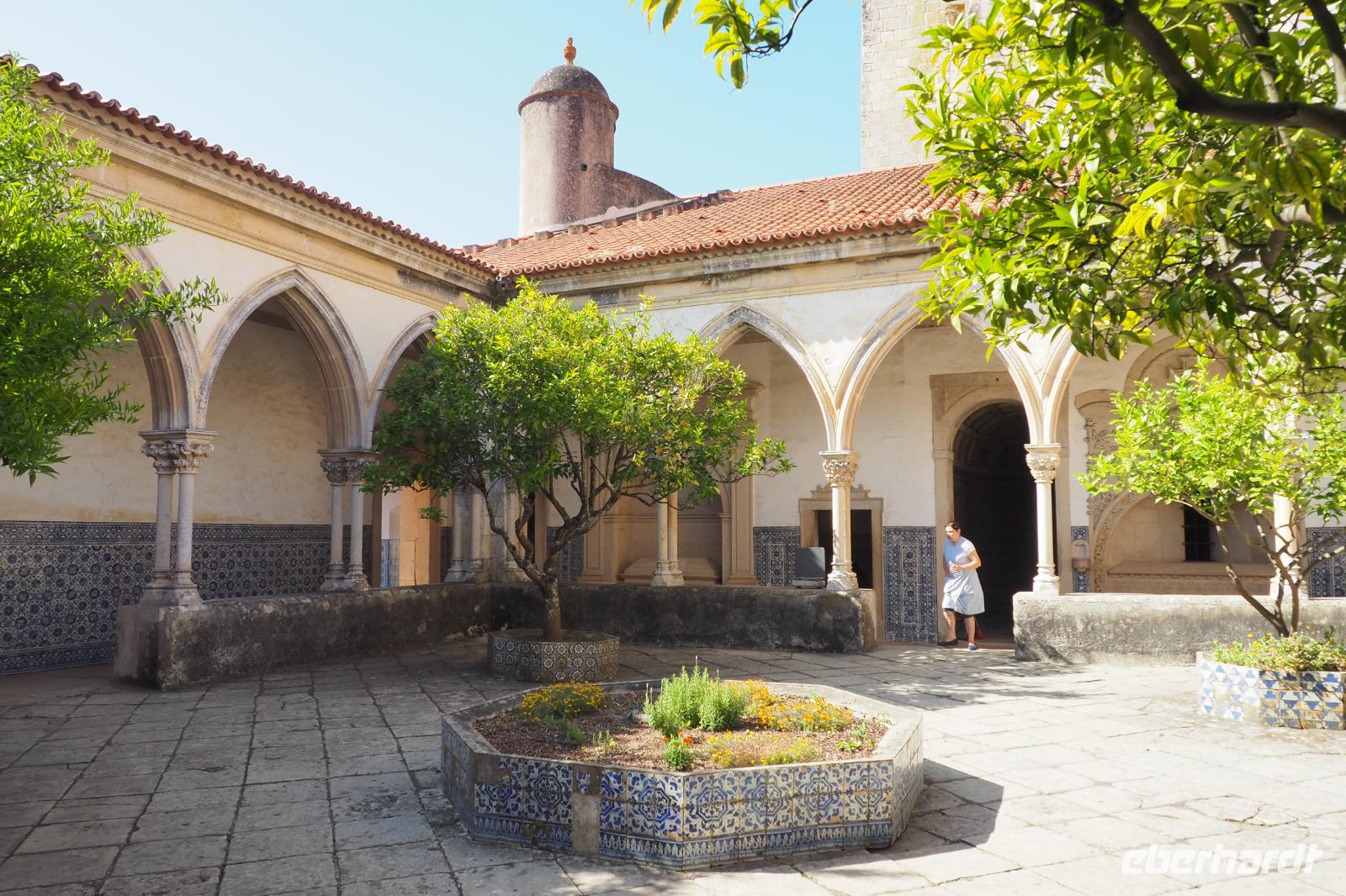Und dann erreichten wir auch schon Tomar, unser erstes Ziel. Isabel erzählte uns viel über die Tempelritter und die Christusritter und die interessanten geschichtlichen Zusammenhänge. Wir nahmen uns viel Zeit zur Besichtigung der beeindruckenden Anlage. Verschiedene Kreuzgänge, eine über und über mit Gemälden und Fresken geschmückte Kirche, das Refektorium und all dies von mächtigen Mauern umgeben.