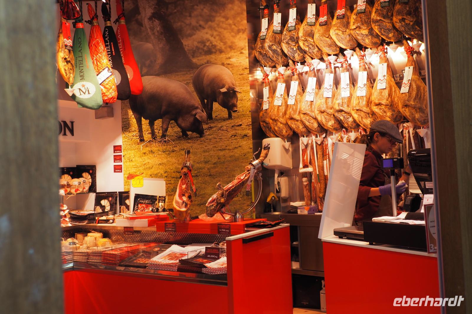 So ist der Schinken dieser Schweine, der berühmte pata negra, von bester Qualität. Natürlich ist es besonders wichtig, welches Futter diese Schweine bekommen. Wichtig für den Geschmack ist aber auch wie lange der geräucherte Schinken gelagert worden ist.