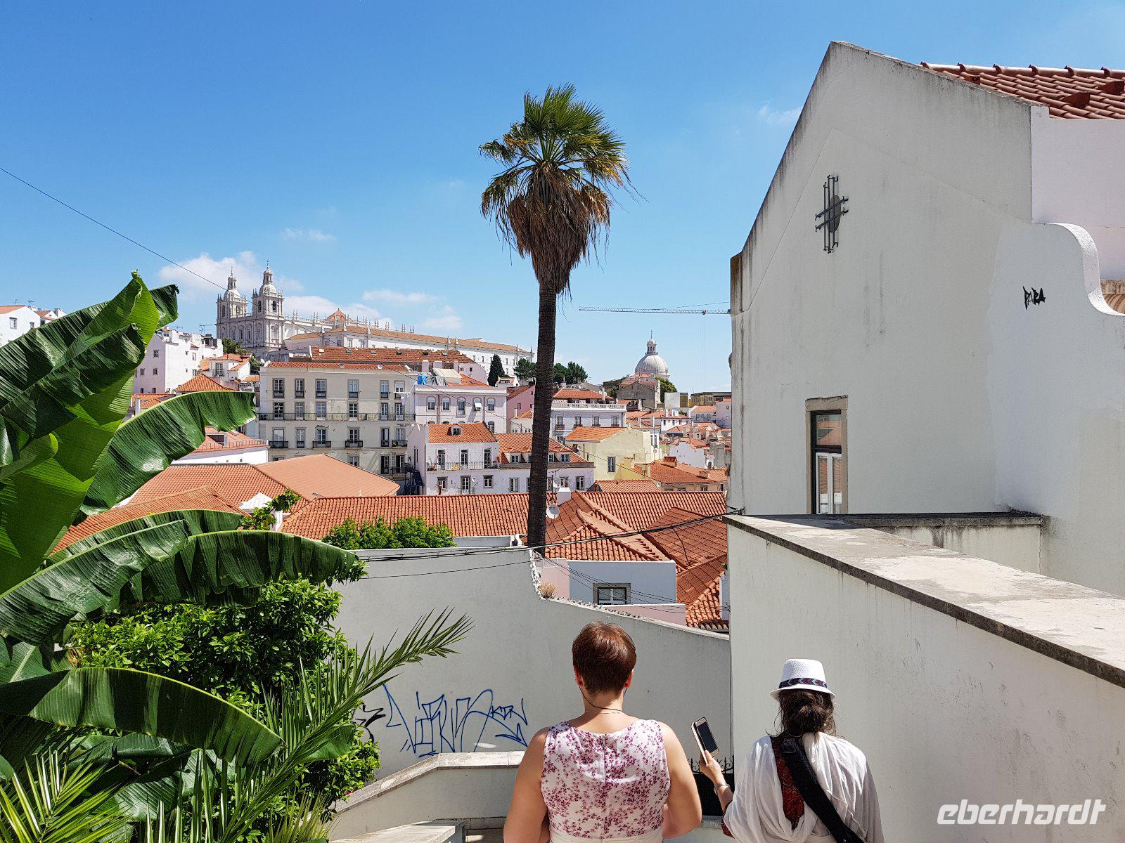 Endlich in Lissabon, der Stadt an den Hängen des Tejo mit ihren römischen und maurischen Ruinen, Kathedralen, weiten Plätzen und sonnigen Cafés. Auch hier erkunden wir die Stadt wieder zu Fuß und mit dem manchmal auch mit dem Bus. Höhepunkte des Tages sind das Castelo de Sao Jorge und seinen Aussichtspunkten, die Gassen hinab durch das beliebte Arbeiterviertel Alfama, das fantastische manuelinische Kloster Mosteiro dos Jerónimos, das leckerste pastéis de nata (Puddingtörtchen) ganz Lissabons und dem exzentrischen Torre (Turm) de Belém, welches als Symbol für das Zeitalter der Entdeckungen gilt. Ganz schön viel Programm für einen Tag und wir haben längst noch nicht alles gesehen. Am Abend hören wir dann typische Musik - die melancholische Fado-Musik aus dem Arbeitervierteln Lissabons reicht Jahrhunderte zurück. Die Lieder über gebrochene Herzen und die verlorene Jugend brauchen eine kraftvolle Stimme und die Begleitung einer portugiesischen guitarra.