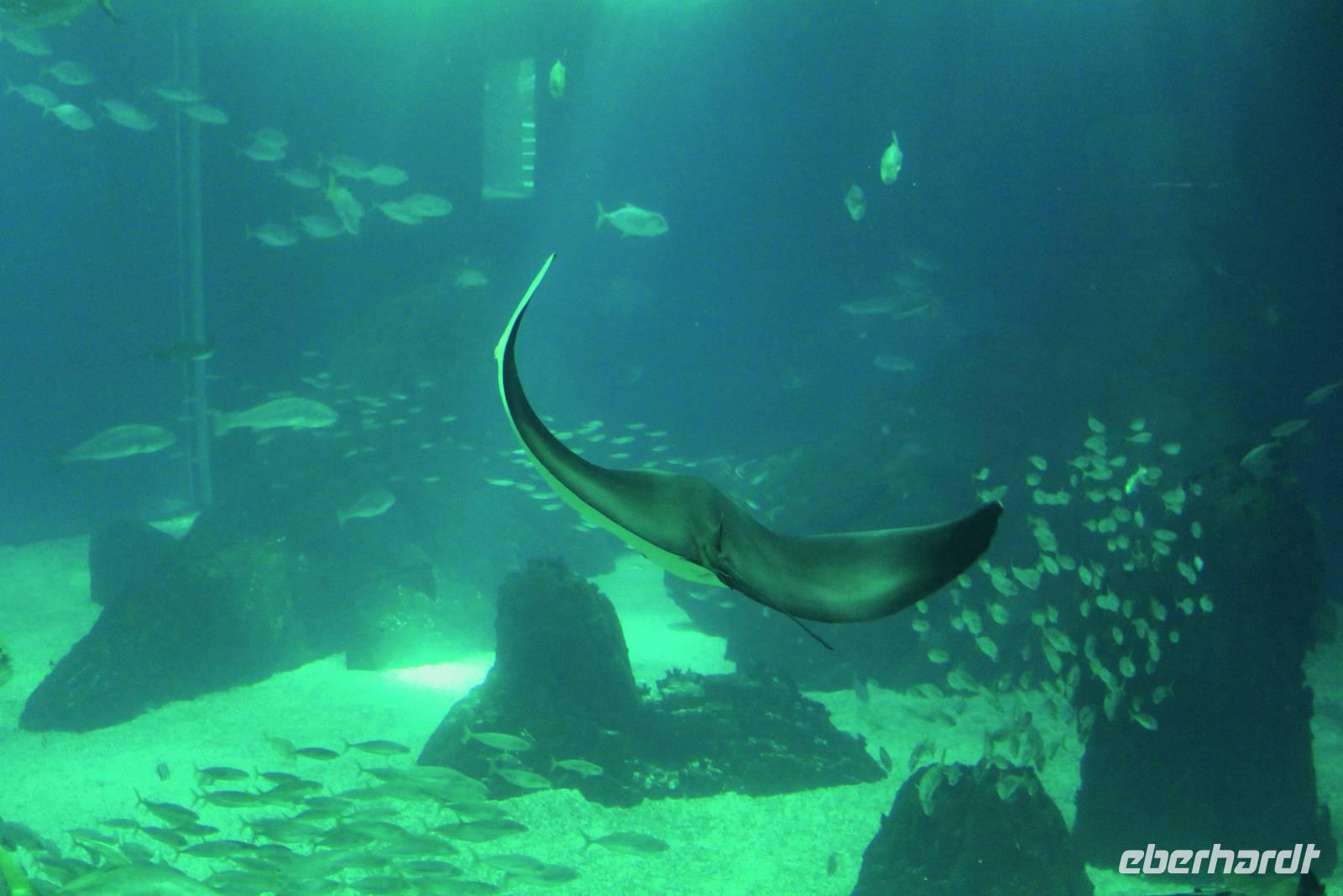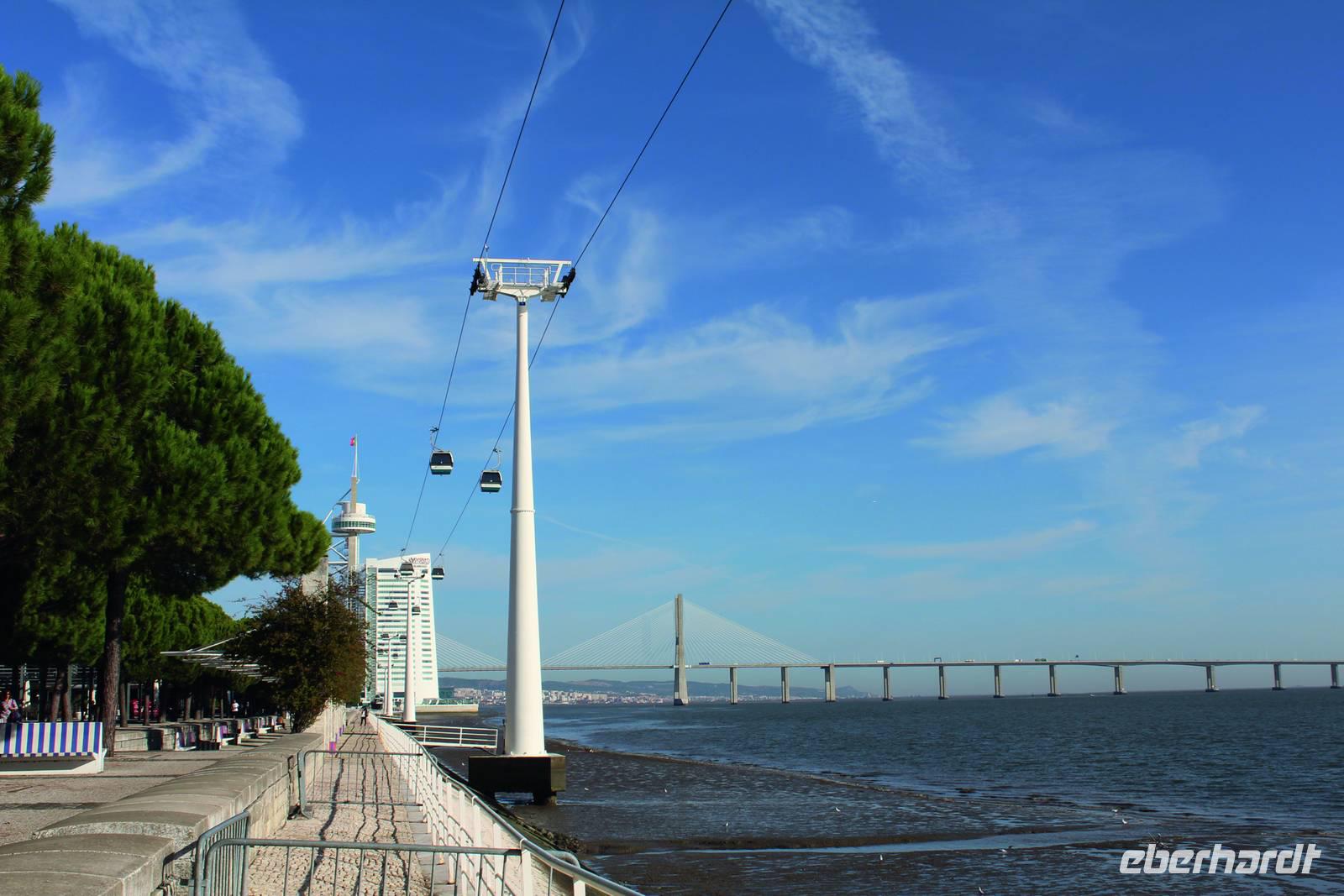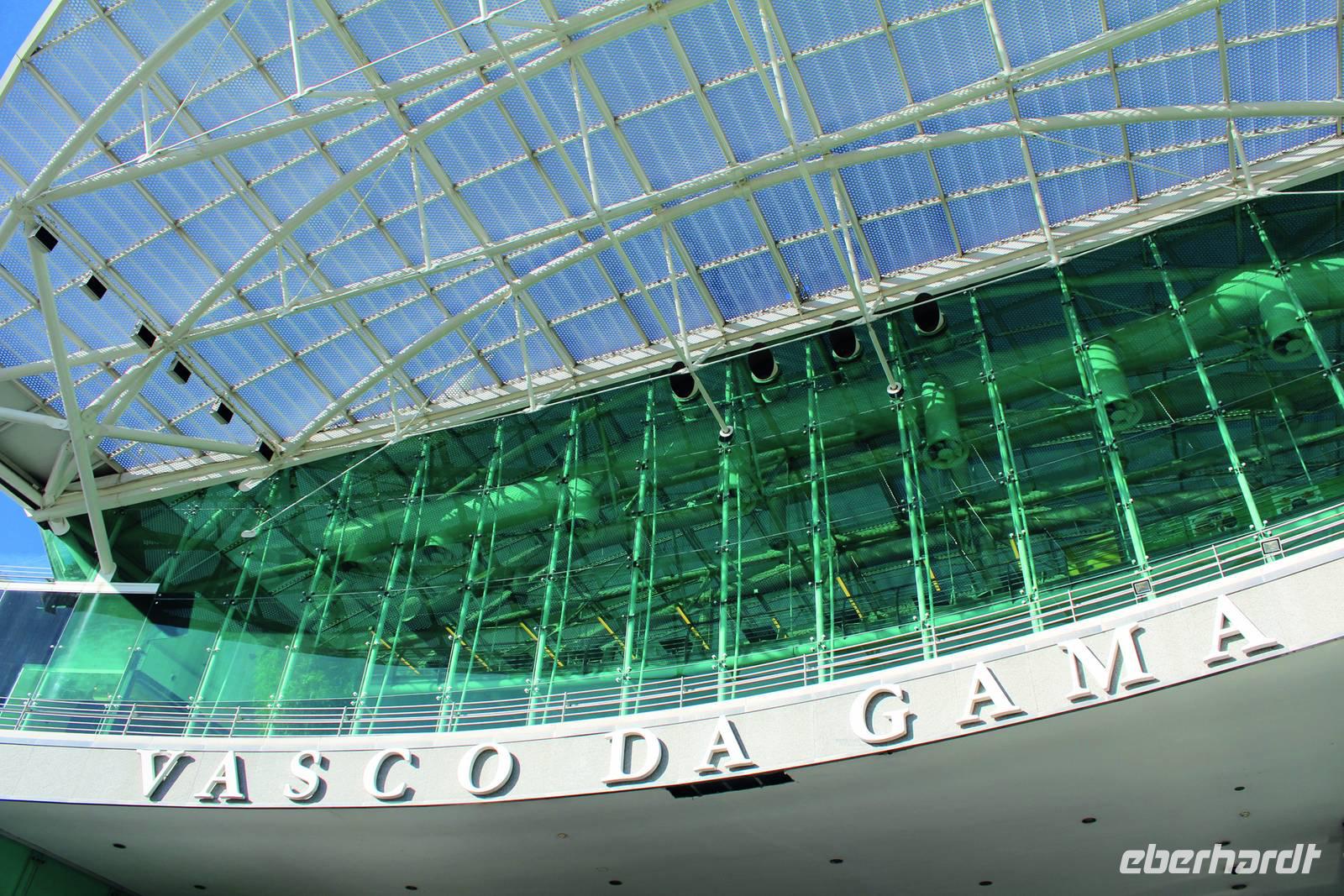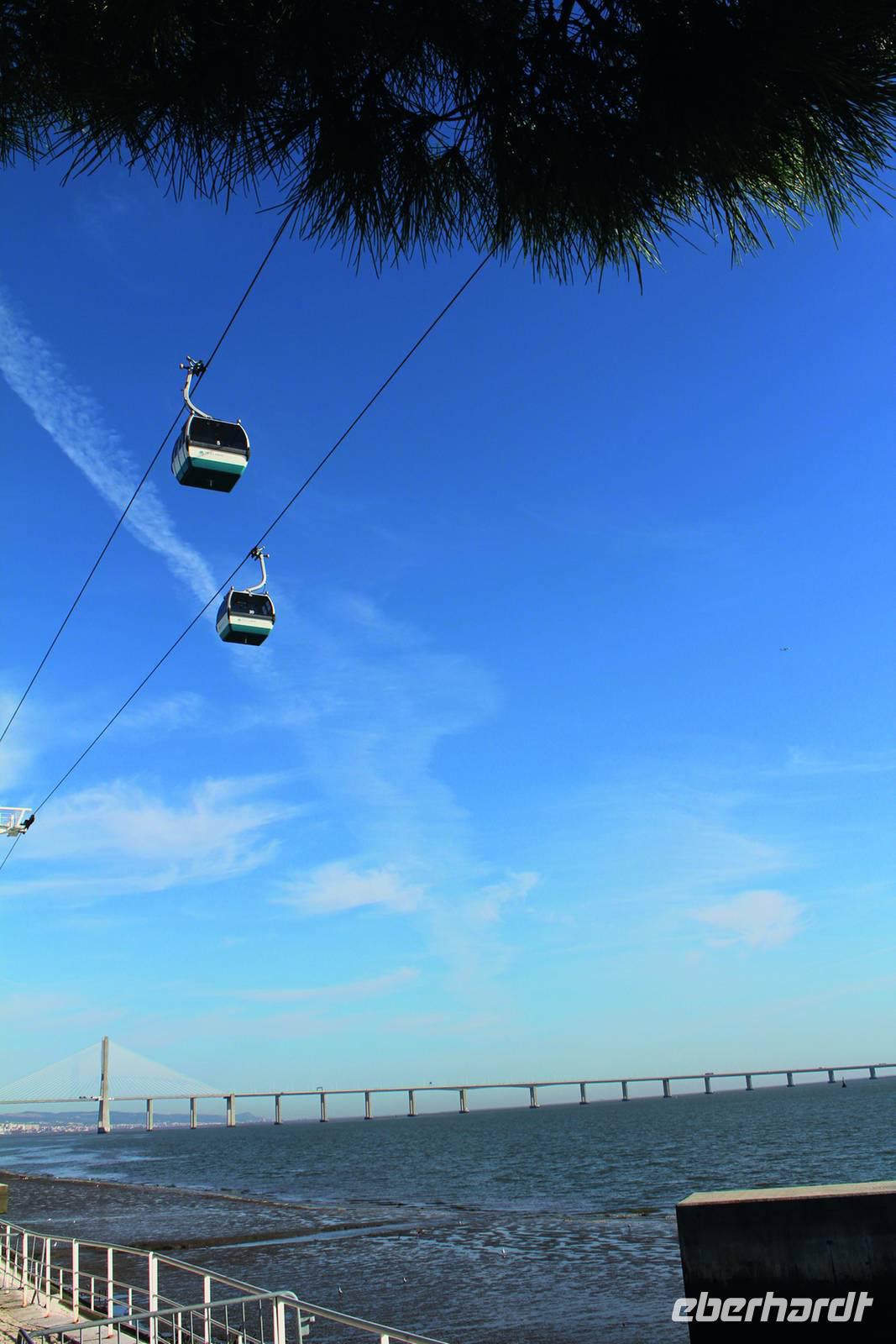 Nach dem Frühstück fuhren wir mit Margarida und der U-Bahn ins ehemalige Expo-Gelände. Quer durchs Einkaufszentrum Vasco da Gama landeten wir im Park der Nationen. Spazierend durch die Gärten kamen wir zur Seilbahn, der Teleferico, mit der wir entlang des Tejo vom Vaco da Gama Turm zum Aquarium fuhren. Nach der Gondelfahrt mussten wir uns leider von unser Power-Margarida verabschieden und wir waren nun auf uns allein gestellt. Viele der Reisegäste, mich eingeschlossen, besuchten das Aquarium Oceanario, was auf große Begeisterung stieß. Man taucht in die Unterwasserwelt ein, sieht Haie und Rochen ganz nah an sich vorbeischwimmen und vergisst beim Anblick dieser wunderbaren Tierwelt völlig die Zeit.