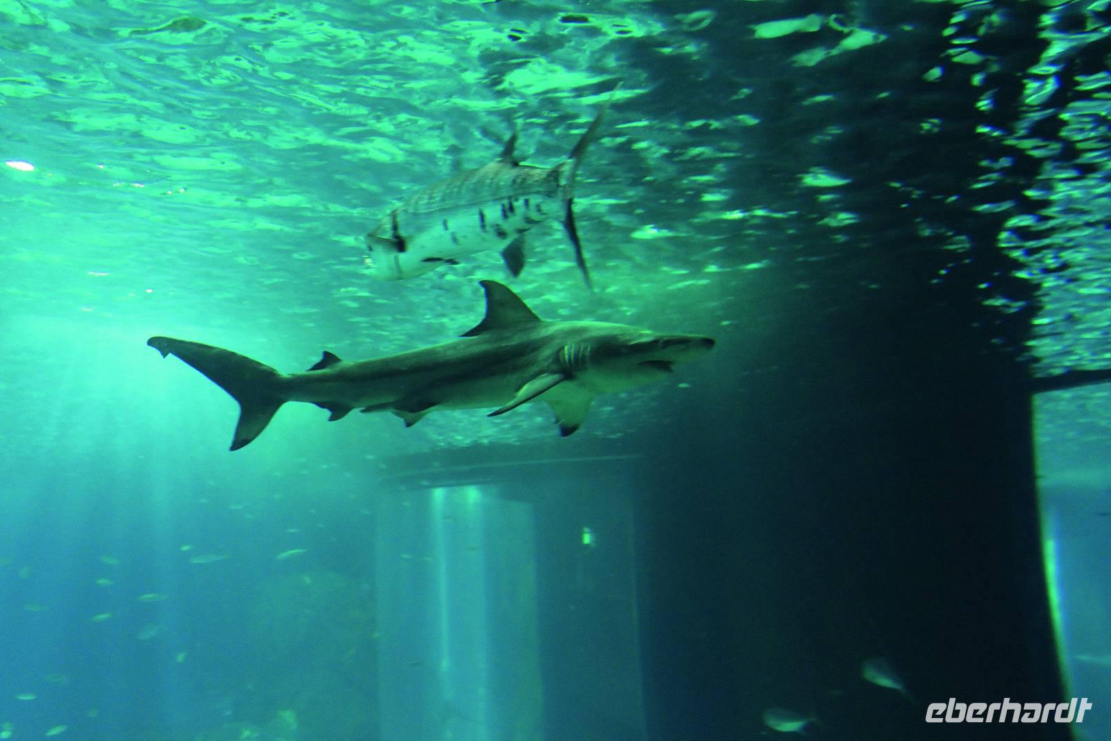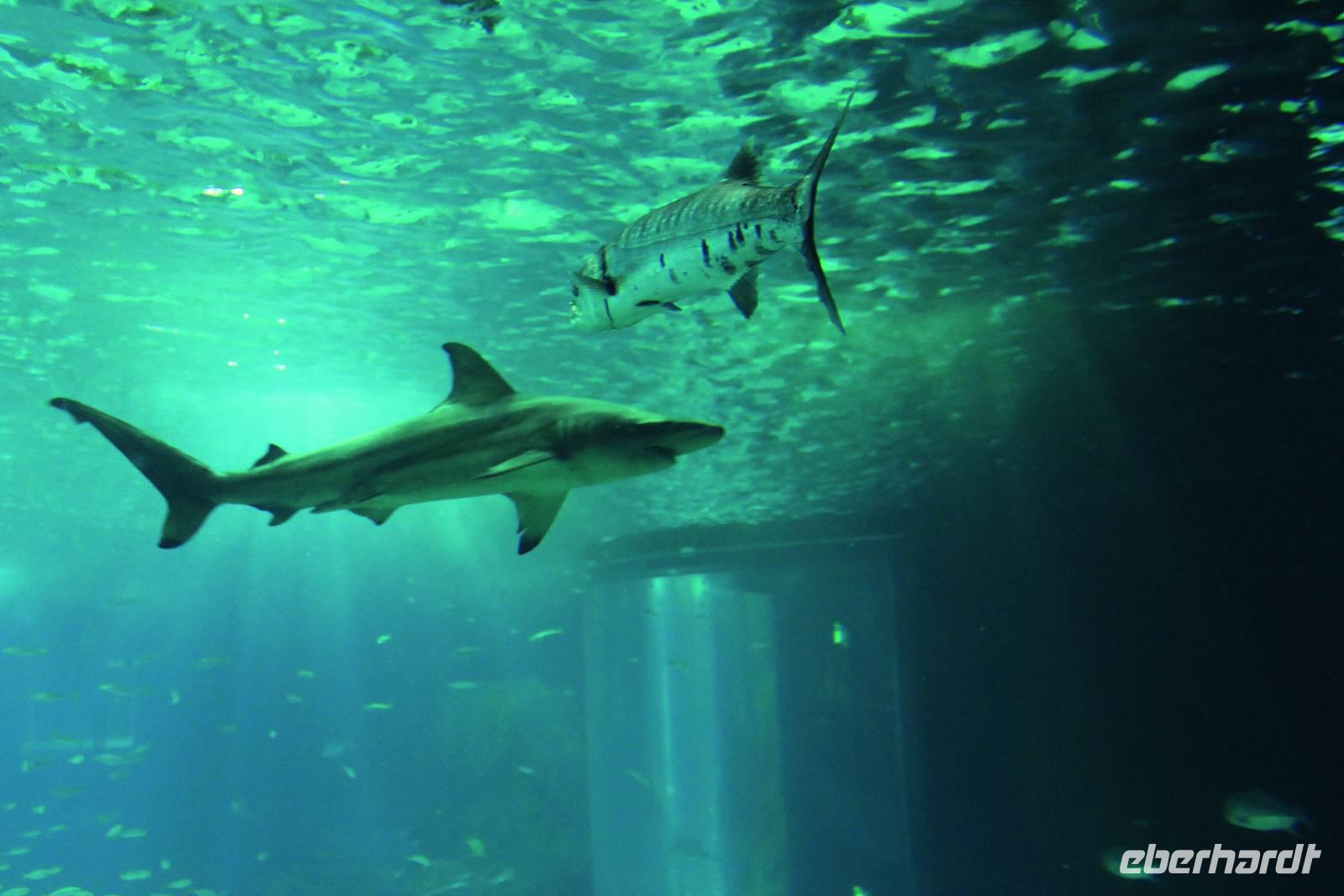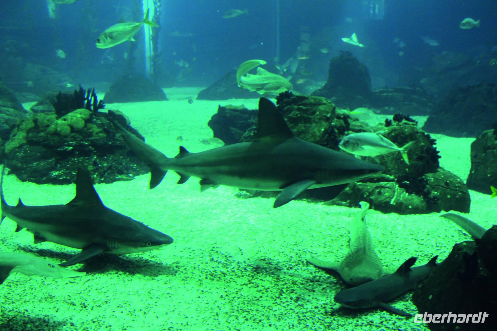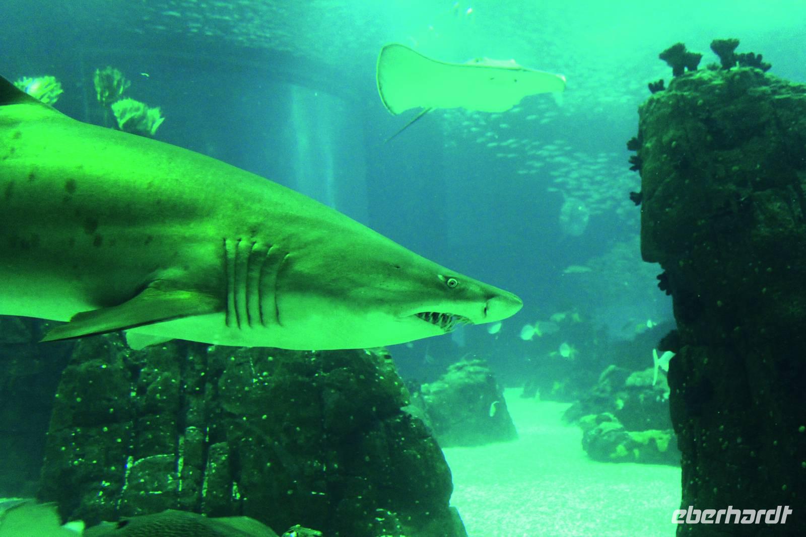 Nach dem Frühstück fuhren wir mit Margarida und der U-Bahn ins ehemalige Expo-Gelände. Quer durchs Einkaufszentrum Vasco da Gama landeten wir im Park der Nationen. Spazierend durch die Gärten kamen wir zur Seilbahn, der Teleferico, mit der wir entlang des Tejo vom Vaco da Gama Turm zum Aquarium fuhren. Nach der Gondelfahrt mussten wir uns leider von unser Power-Margarida verabschieden und wir waren nun auf uns allein gestellt. Viele der Reisegäste, mich eingeschlossen, besuchten das Aquarium Oceanario, was auf große Begeisterung stieß. Man taucht in die Unterwasserwelt ein, sieht Haie und Rochen ganz nah an sich vorbeischwimmen und vergisst beim Anblick dieser wunderbaren Tierwelt völlig die Zeit.