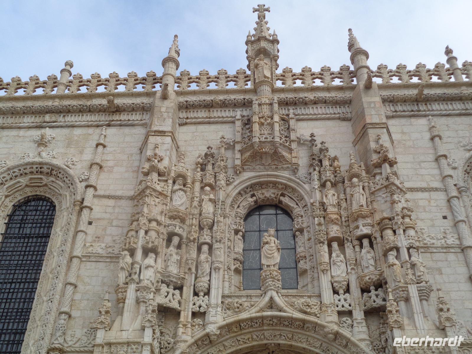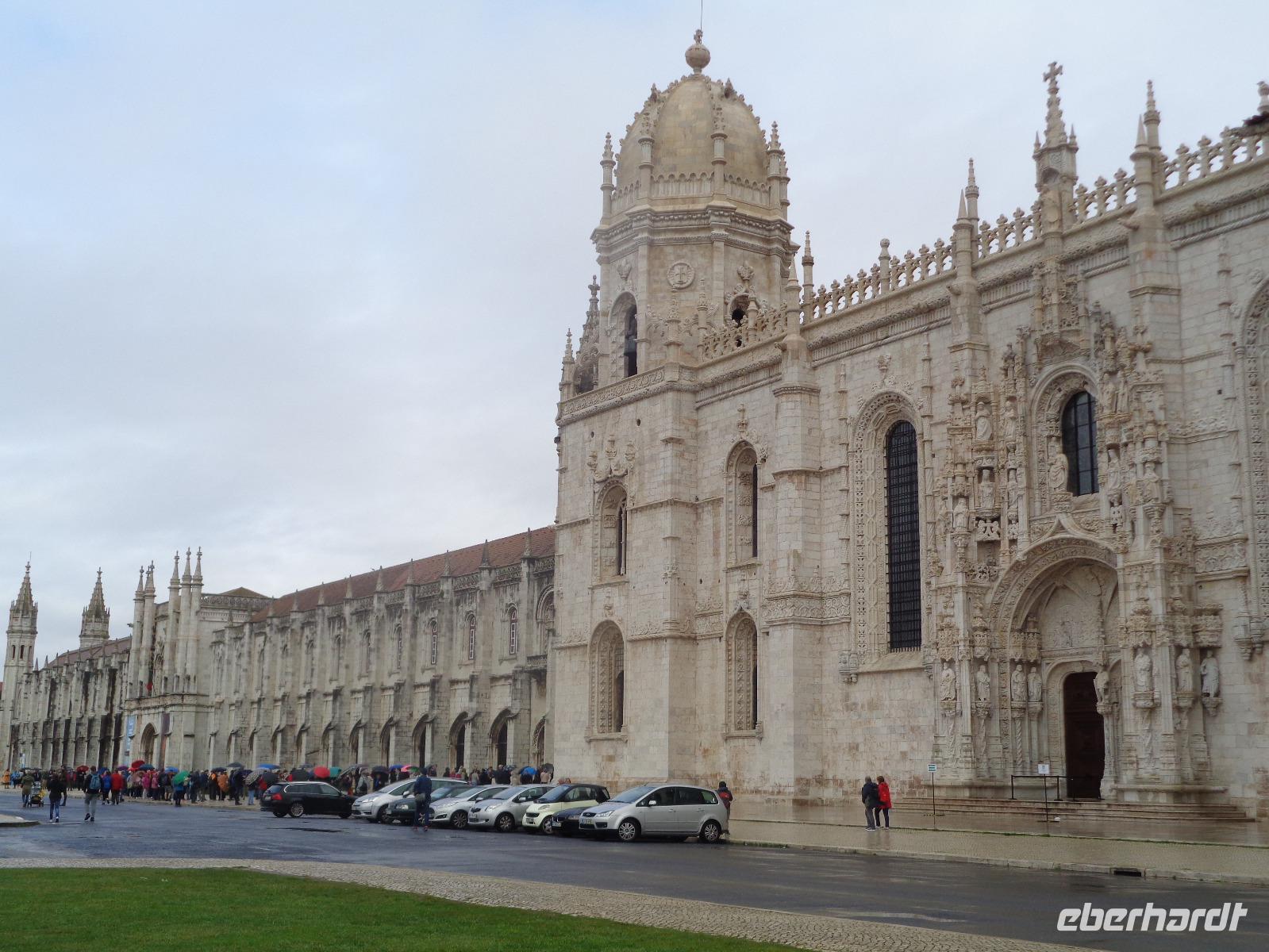 Nach einem wundervollen Frühstück erwartet uns unsere örtliche Reiseleiterin Isabel Barros mit Fahrer Luís zum ersten Teil unserer Stadtführung, die uns nach Belém, dem portugiesischen Bethlehem führen soll. Wir müssen allerdings den längeren Weg durch den Monsanto-Park, der grünen Lunge von Lissabon, nehmen, denn in der Hauptstadt wird wieder gelaufen. Die sportbegeisterten Hauptstädter und ihre Gäste lassen keine Gelegenheit aus, Langstreckenläufe oder Marathon zu veranstalten und wir sind jetzt mittendrin. Wir erreichen das Hieronymus-Kloster als erste, da noch nicht viele Touristen hier sind. Wir besuchen zuerst die Kirche Santa Maria, denn der Gottesdienst ging gerade zu Ende. In der Kirche befinden sich auch die Sarkophage von Vasco da Gama, Luís de Camoes, Fernando Pessoa und König Manuel I. Nach der Besichtigung können wir schnurstracks an den Wartenden vorbeiziehen, die inzwischen eingetroffen sind, um den wohl berühmtesten Kreuzgang der Welt zu sehen. Das Mosteiro dos Jerónimos wurde im Baustil der Manuelinik, einer portugiesischen Variante unserer Spätgotik errichtet, die König Manuel I. persönlich in die portugiesische Architektur eingebracht hat. Man erkennt seinen Einfluss an vielen umwundenen Seilen und Knoten, Ankern, Blättern, Früchten und immer wieder an der Armillarssphäre, der sogenannten Weltmaschine, die König Manuel I. neben dem Christuskreuz zu seinen Zeichen wählte. Das Kloster aus dem frühen 16. Jahrhundert wurde den Bethlehemitischen Hieronymiten von König Manuel I. anvertraut. Hier wirkten sie bis zur Säkularisation in Portugal und mussten dann das Land verlassen. Nach unserem Besuch des Klosters nehmen wir die Unterführung zum Entdeckerdenkmal und spazieren zum Padrao dos Descobrimentos. Das Denkmal wurde noch unter Salazar 1960 am Ufer des Tejo anlässlich des 500. Todestages von Heinrich dem Seefahrer errichtet. Unseren Besuch des Torre de Belém müssen wir verschieben, denn die Straßen sind immer noch versperrt. Unser Chauffeur Luis bringt uns wunschgemäß zurück und unsere Reisegäste genießen die freie Zeit für eigene Entdeckungen.