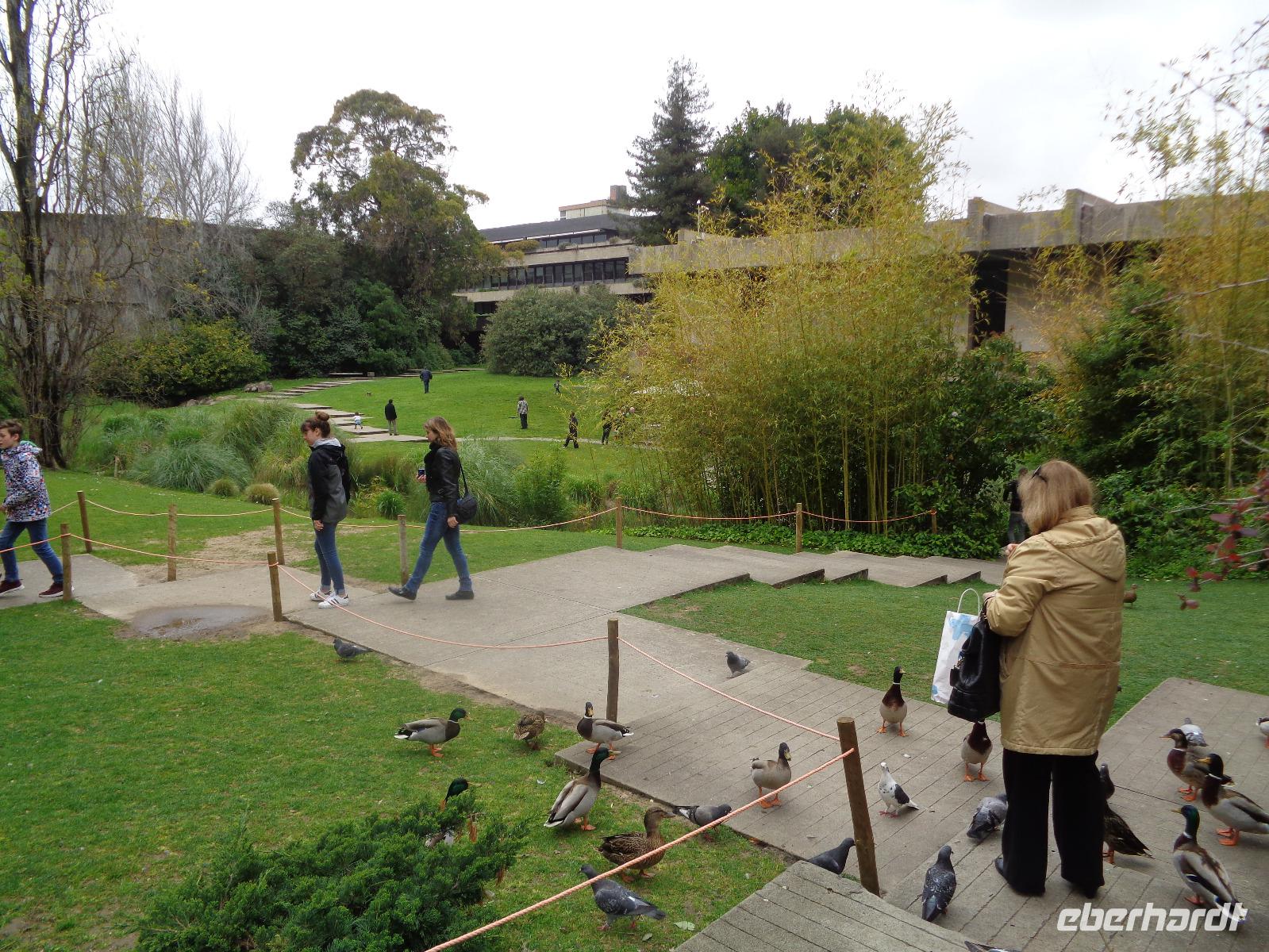 Unser Flug mit Lufthansa führt uns von Dresden über Frankfurt nach Lissabon. Mit unseren Gästen aus Leipzig und Berlin ist unsere 11-köpfige Gruppe komplett und unser Check-in im 4-Sterne-Hotel „Olissippo Marqués de Sá" verläuft gut vorbereitet und flott. Nach einer kurzen Erfrischungspause verabreden wir uns zu einem ersten Spaziergang zum Park von Eduardo VII. , der nach dem englischen König benannt wurde, der Lissabon einst für einen Tag besuchte, und zum Park von Amália Rodrigues, der berühmtesten Fado-Sängerin Portugals, die hier sehr verehrt wird und deren Leben im Fado-Museum nachgezeichnet wurde. Im Café im Park an einem kleinen künstlichen See machen wir uns bei einer Kaffeepause bekannt und präzisieren unsere Zeitplanung für die nächsten Tage. Dann besuchen wir das Kaufhaus „El Corte Inglés", wo es von Luxus-Artikeln bis zu Lebensmitteln alles gibt. Neben der Kaufhalle im unteren Teil befinden sich zahlreiche kleine Restaurants und Cafés, Kinos und vieles mehr. Hier trennen sich unsere Wege und die individuelle Freizeit beginnt.
