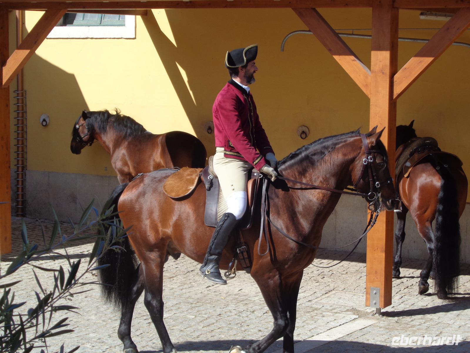 Den angebotenen Ausflug zum Expo-Gelände will heute niemand so richtig machen, denn Lissabon bietet noch so viel. Wir haben ein verrücktes Amphibienfahrzeug in der Stadt gesehen und würden das gern ausprobieren. Alle Gäste sind dabei und wir kaufen unsere Tickets für den Nachmittag im Voraus. Aber wir haben noch einen Höhepunkt für den Vormittag, die Portugiesische Reitschule von Belém, Picadeira Portuguesa de Arte Equestre, ein absoluter Geheimtipp! Die Geschichte dieser Reitschule geht auf das 18. Jahrhundert zurück. König D. Joao V. gründete 1748 das Gestüt Coudelaria de Alter. Das portugiesische Landwirtschaftsministerium beschloss 1979, die alte Tradition wieder aufzunehmen. Die wunderschönen Reitpferde, die Lusitanos, stammen ausschließlich aus dem Alentejo. Die Anfänge der neuen Reitschule gehen auf die Gärten des Nationalpalastes von Queluz, Richtung Sintra, zurück. 2015 wurde die Reithalle in Belém, nach der Renovierung, wieder genutzt. Heute gibt es hier tägliche Trainingseinheiten, wöchentliche Vorführungen und Galavorstellungen nach Plan. Mit unserer heutigen Trainingseinheit geht es um 10:30 Uhr los. Wir sind schon eher da und werden energisch reglementiert, dass es vorher nicht los geht. Das Reglement endet in einer respektvollen Freundschaft mit viel Spaß. Es geht zum regulären Termin los und wir besichtigen die Ställe. So viel Funktionalität, Sauberkeit und Professionalität beeindruckt uns sehr. Ich persönlich habe noch nie solche gepflegte, glänzende Pferde gesehen. Und dann diese Vertrautheit und Liebe zwischen Reiter und Pferd! Die Lusitanos haben hier die besten Bedingungen zu Höchstleistungen, das spürt man eindeutig, selbst in den Trainingseinheiten. Wir sind einfach nur begeistert und hoch zufrieden! Aber die nächste Attraktion wartet, unser HippoTrip. Ich hole einen Teil unserer Gäste vom Praca do Comércio ab und wir fahren mit dem Taxi zum Abfahrtspunkt des Amphibienfahrzeuges HippoTrip. Pedro, der Fahrer, und Ana, unsere absolut großartige Reise-Animateurin, bescheren uns außerordentliche Glücksgefühle zu Lande und zu Wasser. Selbst unsere älteren Reisegäste fanden es cool!! Was für ein erlebnisreicher Tag! Da wir hier etwas versteckt sind, müssen wir auf unsere Taxis warten, aber nach einigen Telefonaten klappt alles und wir erreichen hochzufrieden unser Hotel. Nun wird es Zeit, sich zu verabschieden. Gerade, als wir loslegen wollten... Allen hat es sehr gefallen, und ich bedanke mich im Namen von Ebi mit einem kleinen Andenken an Lissabon und Portugal.
