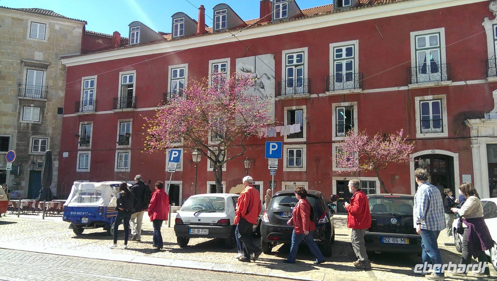 Unsere gemeinsame Reise beginnt für einen Teil der Reisegruppe am Berliner Flughafen Schönefeld und für die anderen in Frankfurt/Main. Am Nachmittag landen wir in Lissabon und treffen auf unsere Reiseleiterin, Margarita. Gemeinsam fahren wir in unser Hotel, Principe Lisboa. Wir checken im Hotel ein und informieren uns bei Margarita über den nächsten Supermarkt, der direkt "um die Ecke" liegt. Wir verabreden uns für unser erstes Abendessen, im Restaurant Colina.
