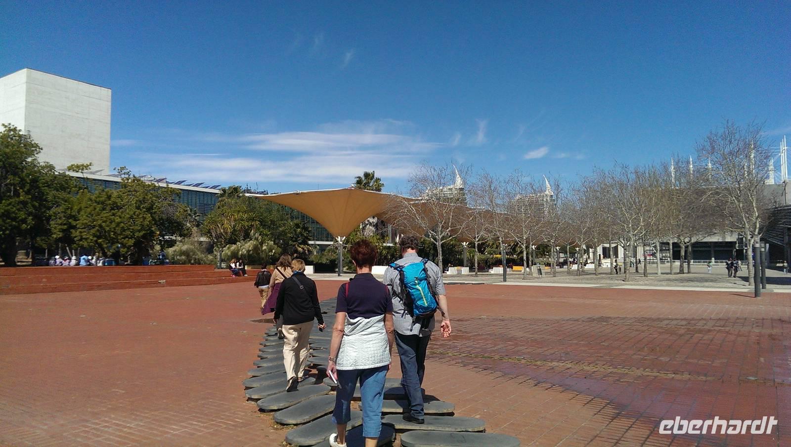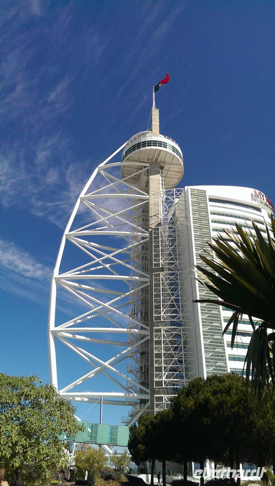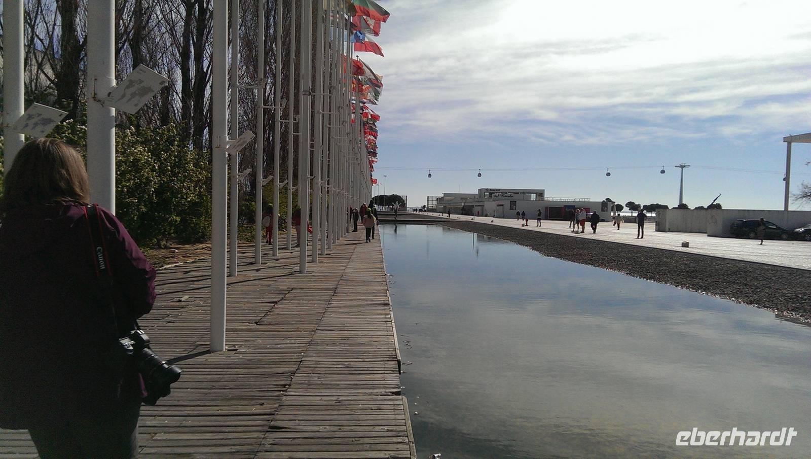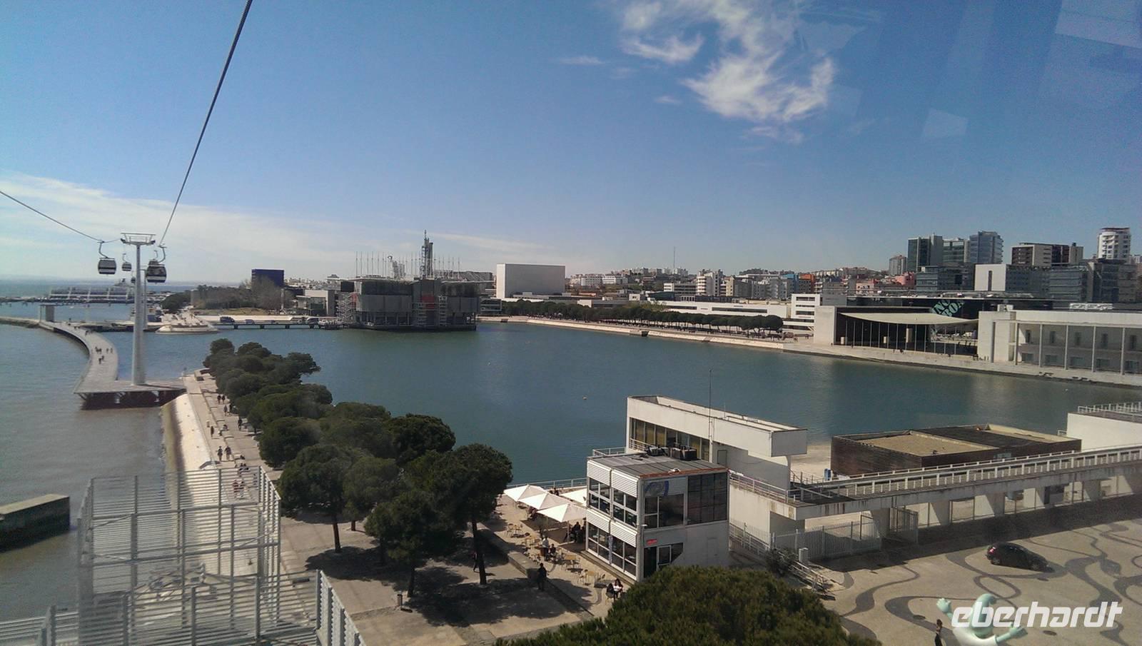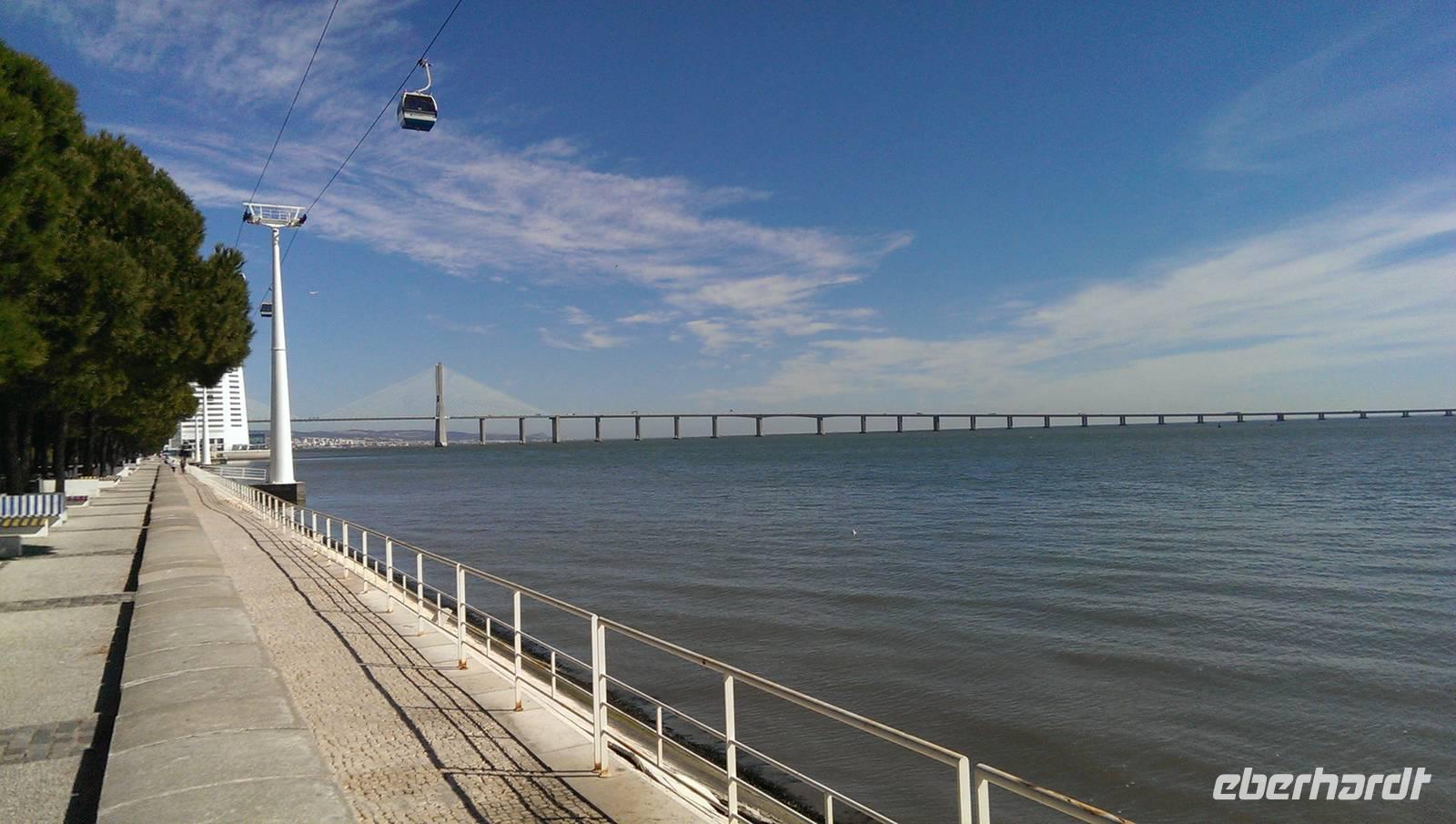 Heute fahren wir, nicht wie sonst üblich mit dem Reisebus, sondern mit den öffentlichen Verkehrsmitteln. Unser Tagesprogramm beinhaltet heute einen Besuch auf dem ehemaligen Expo-Gelände. Also begeben wir uns zunächst in die U-Bahn bis zum Handelsplatz und nehmen von dort den Bus bis zum Bahnhof "Oriente". Dieser sieht von weitem wie ein Palmenhain aus, natürlich aber aus Beton und Glas... Wir laufen weiter durch das große Shoppingcenter "Vasco da Gama" und genießen noch einen Bica bevor wir weiter gehen. Margarita erzählte uns von der Entstehung und den einzelnen Ausstellungshallen. Der Park wird heute Park der Nationen genannt. Wir unternehmen einen Spaziergang bis zum Vasco-da-Gama-Turm, durch die kleinen Gartenanlagen und noch ein Stück weiter am Ufer des Tejo entlang. Für den Rückweg entscheiden wir uns für die Seilbahn, die bis zum Aquarium zurück fährt. Während der Fahrt hat man einen tollen Ausblick über das gesamte Gelände. Hier endet unser Ausflug auch schon und jeder konnte selbst entscheiden, wie er den restlichen Tag verbringen wollte. Bevor wir uns auflösten verabredeten wir uns wieder fürs Abendessen, heute Abend in der Nähe des Rossio, im Restaurant "Leão d'Ouro".
