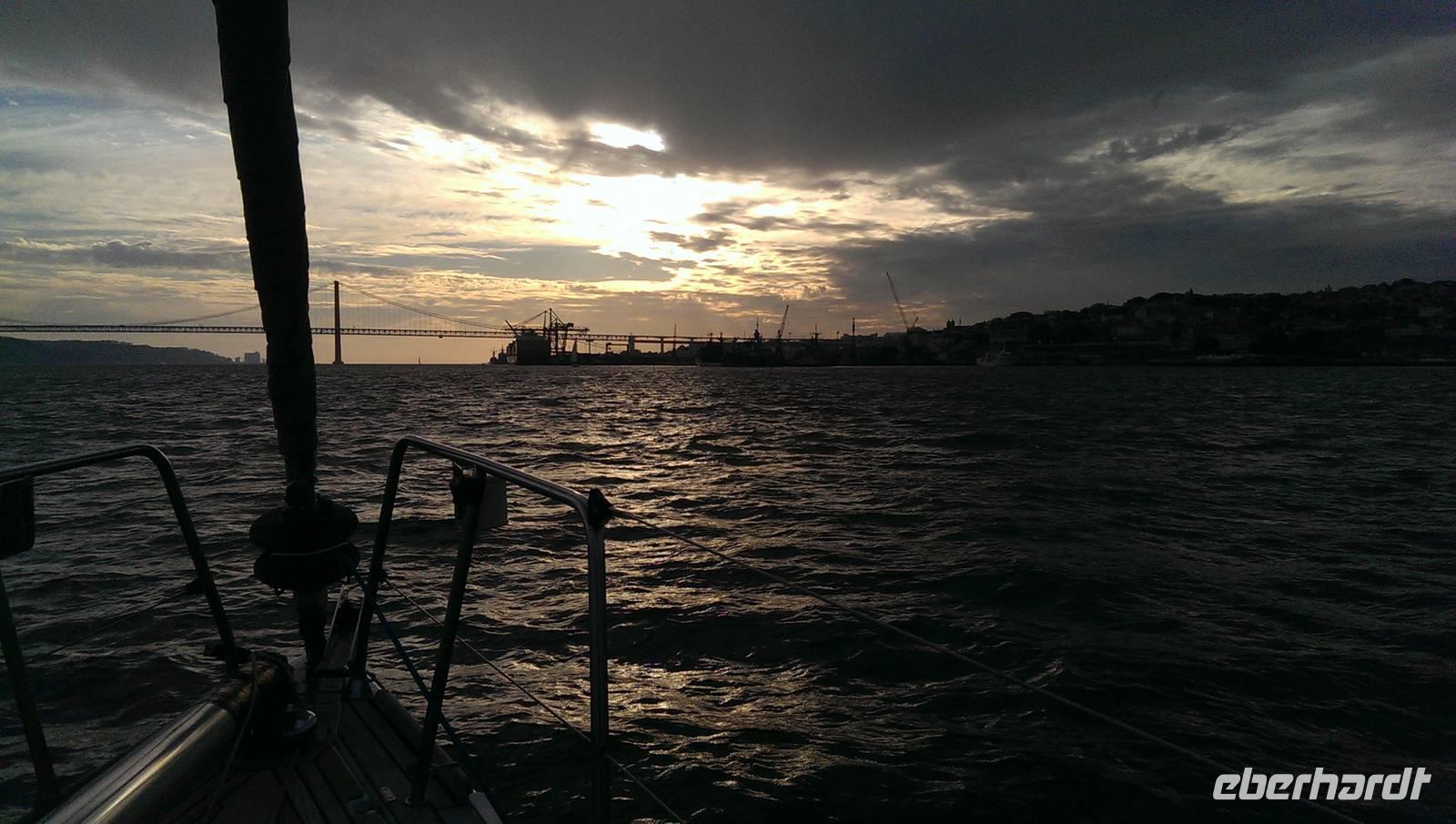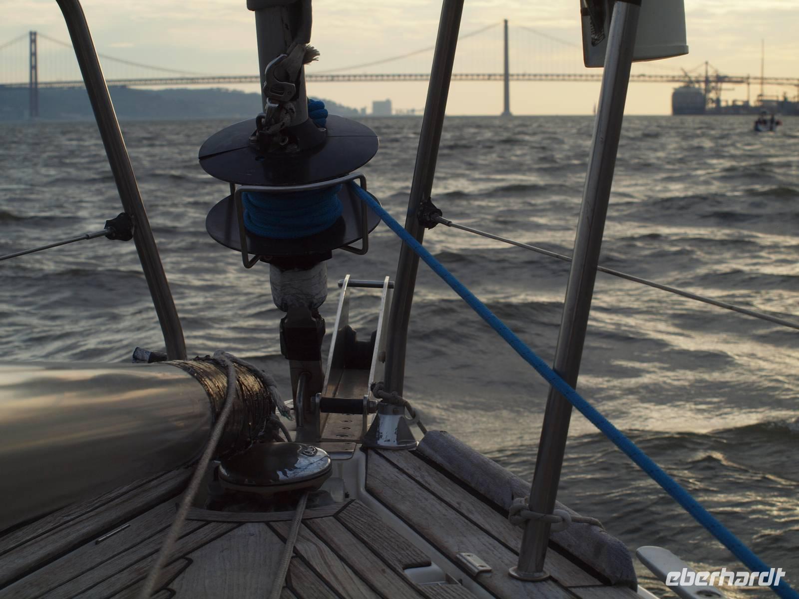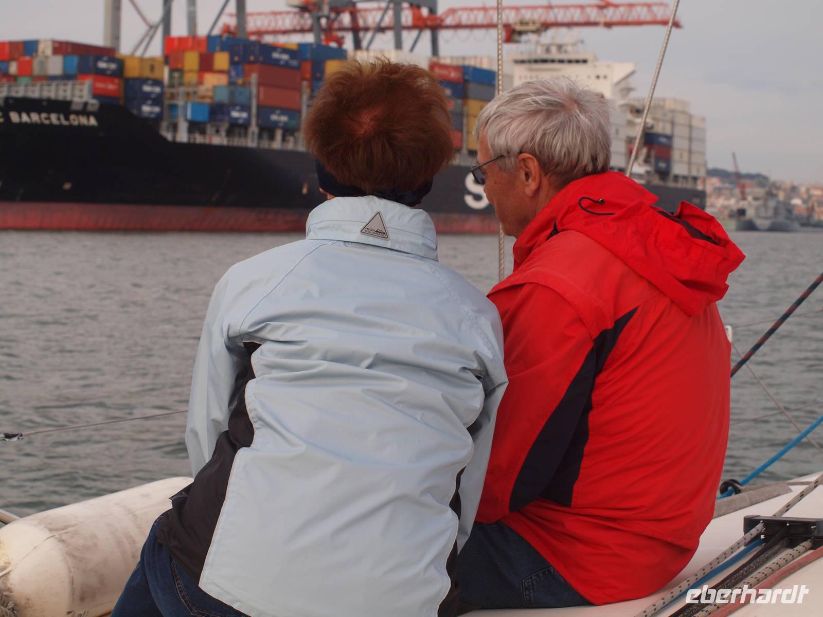 Uns steht der letzte Tag in Lissabon bevor. Nach dem Frühstück fahren wir mit Margarita nach Süden. Dabei überqueren wir die längste Brücke Europas, die Vasco-da-Gama-Brücke. Von der Brücke aus haben wir nochmal einen guten Blick zum Expo-Gelände, auf Lissabon und auf der anderen Seite hat man die Chance von der Brücke aus viele Muschelsucher bei der Arbeit zu erleben, die den Schlick durchsuchen. Schon bald erreichen wir Setubal und machen hier unseren ersten Stopp. Wir besuchen die Markthalle und den Hafen, vertreten uns etwas die Beine bevor wir wieder in den Bus steigen. Die Fahrt geht weiter ins Naturreservat rund um Setubal. Nach einem Stopp an einem Aussichtspunkt, mit Blick auf das Arrabida Kloster und hinunter zur Küste, erreichen wir Azeitao. Hier besuchen wir den Weinkeller Jose Maria da Fonseca. Wir werden mit der Geschichte des Weingutes vertraut und nehmen an einem Rundgang durch die Weinkeller teil. Am Ende stehen uns sogar noch zwei Weinproben zur Verfügung. Unser Ausflug nähert sich dem Ende und wir fahren zurück nach Lissabon, diesmal aber über die Brücke des 25. April, um die Stadt der Seefahrer von einer wieder anderen Perspektive sehen zu können. Zurück in Lissabon verabschieden wir auch unserer Margarita. Der Nachmittag steht uns nun wieder frei und wir entscheiden uns für einen Bootsausflug bzw. Segelturn auf dem Tejo. Ein paar von uns schippern schon am Nachmittag los, der Rest begibt sich erst am Abend ans Ufer. Vom Wasser aus, so sagt der Portugiese, sieht man Lissabon von der "richtigen" Perspektive aus.