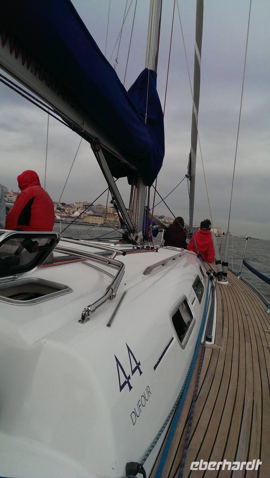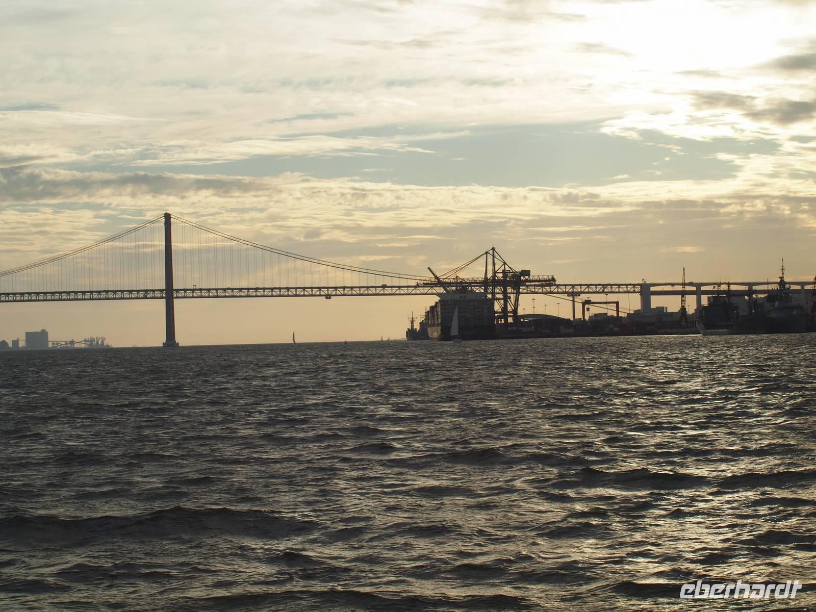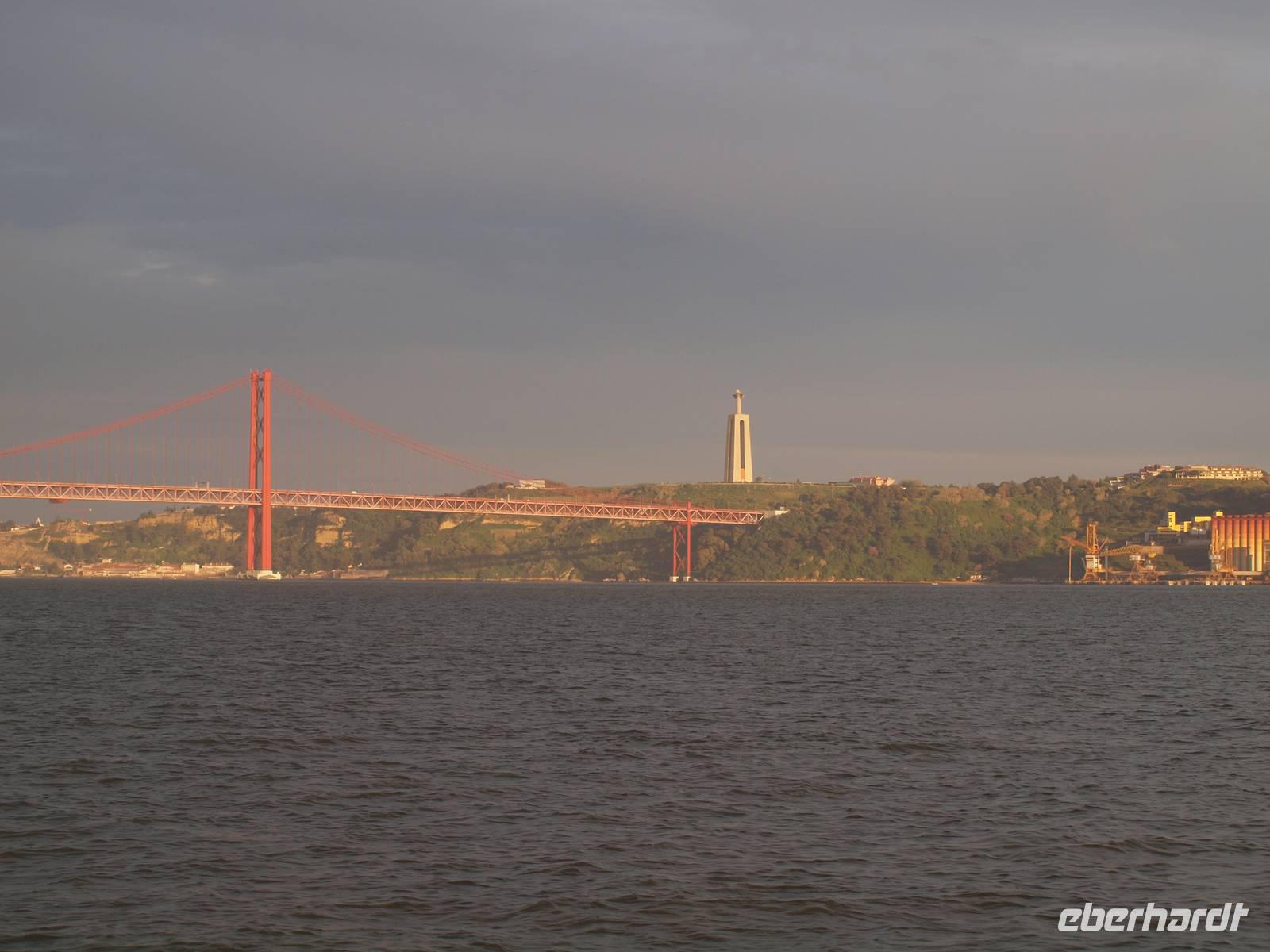 Uns steht der letzte Tag in Lissabon bevor. Nach dem Frühstück fahren wir mit Margarita nach Süden. Dabei überqueren wir die längste Brücke Europas, die Vasco-da-Gama-Brücke. Von der Brücke aus haben wir nochmal einen guten Blick zum Expo-Gelände, auf Lissabon und auf der anderen Seite hat man die Chance von der Brücke aus viele Muschelsucher bei der Arbeit zu erleben, die den Schlick durchsuchen. Schon bald erreichen wir Setubal und machen hier unseren ersten Stopp. Wir besuchen die Markthalle und den Hafen, vertreten uns etwas die Beine bevor wir wieder in den Bus steigen. Die Fahrt geht weiter ins Naturreservat rund um Setubal. Nach einem Stopp an einem Aussichtspunkt, mit Blick auf das Arrabida Kloster und hinunter zur Küste, erreichen wir Azeitao. Hier besuchen wir den Weinkeller Jose Maria da Fonseca. Wir werden mit der Geschichte des Weingutes vertraut und nehmen an einem Rundgang durch die Weinkeller teil. Am Ende stehen uns sogar noch zwei Weinproben zur Verfügung. Unser Ausflug nähert sich dem Ende und wir fahren zurück nach Lissabon, diesmal aber über die Brücke des 25. April, um die Stadt der Seefahrer von einer wieder anderen Perspektive sehen zu können. Zurück in Lissabon verabschieden wir auch unserer Margarita. Der Nachmittag steht uns nun wieder frei und wir entscheiden uns für einen Bootsausflug bzw. Segelturn auf dem Tejo. Ein paar von uns schippern schon am Nachmittag los, der Rest begibt sich erst am Abend ans Ufer. Vom Wasser aus, so sagt der Portugiese, sieht man Lissabon von der "richtigen" Perspektive aus.