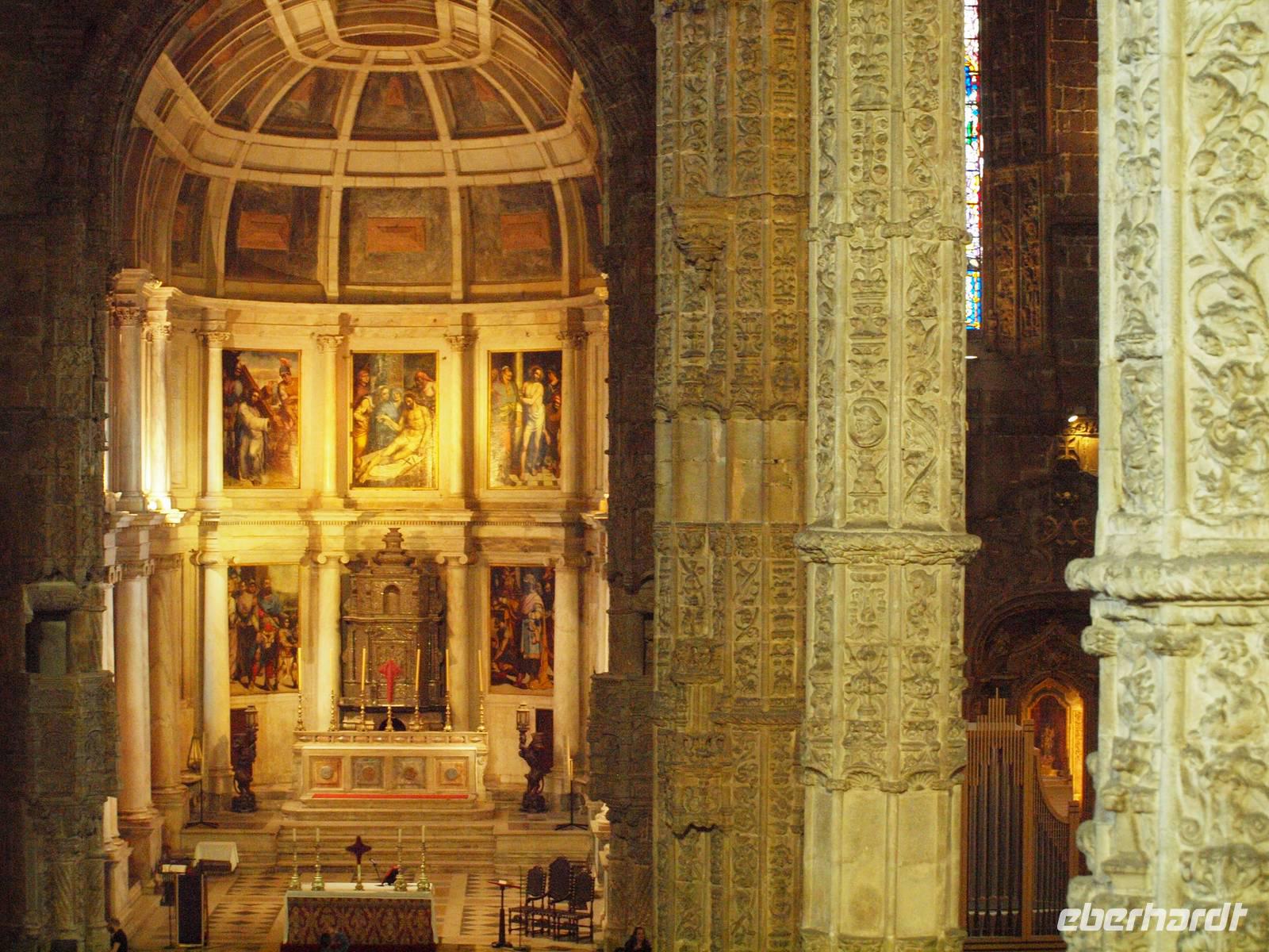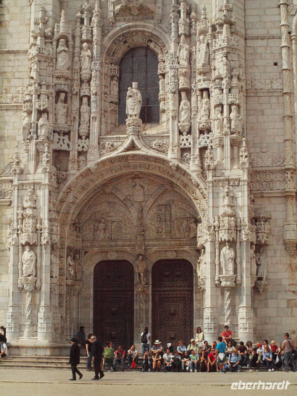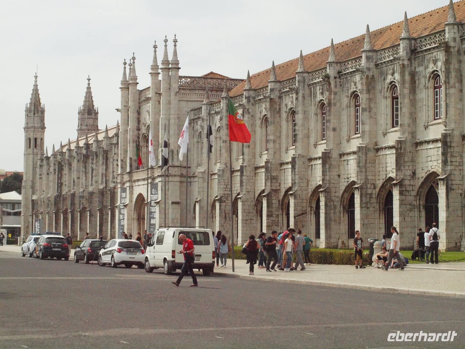 Immer weiter entlang der Küste führt uns die Straße nach Cascais. Dort wagten sich die wirklich Mutigen auch schon mal ins kühle Nass, zumindest mit den Zehenspitzen. Nach einem Bummel durch die Stadt fahren wir zurück nach Lissabon. Dort angekommen besuchen wir nun das Hieronimuskloster in Belem. Margarita führt uns natürlich uns erklärt uns alles über den Bau und die Besonderheiten der Architektur und Geschichte...