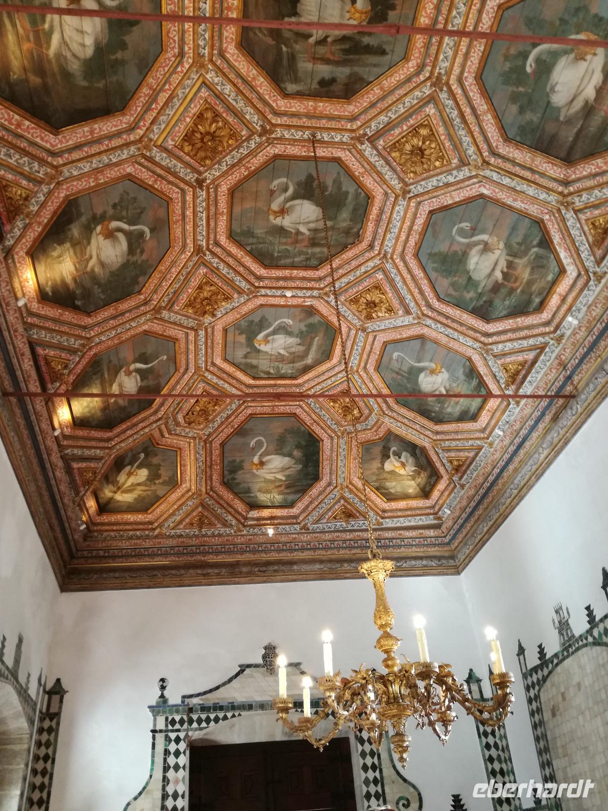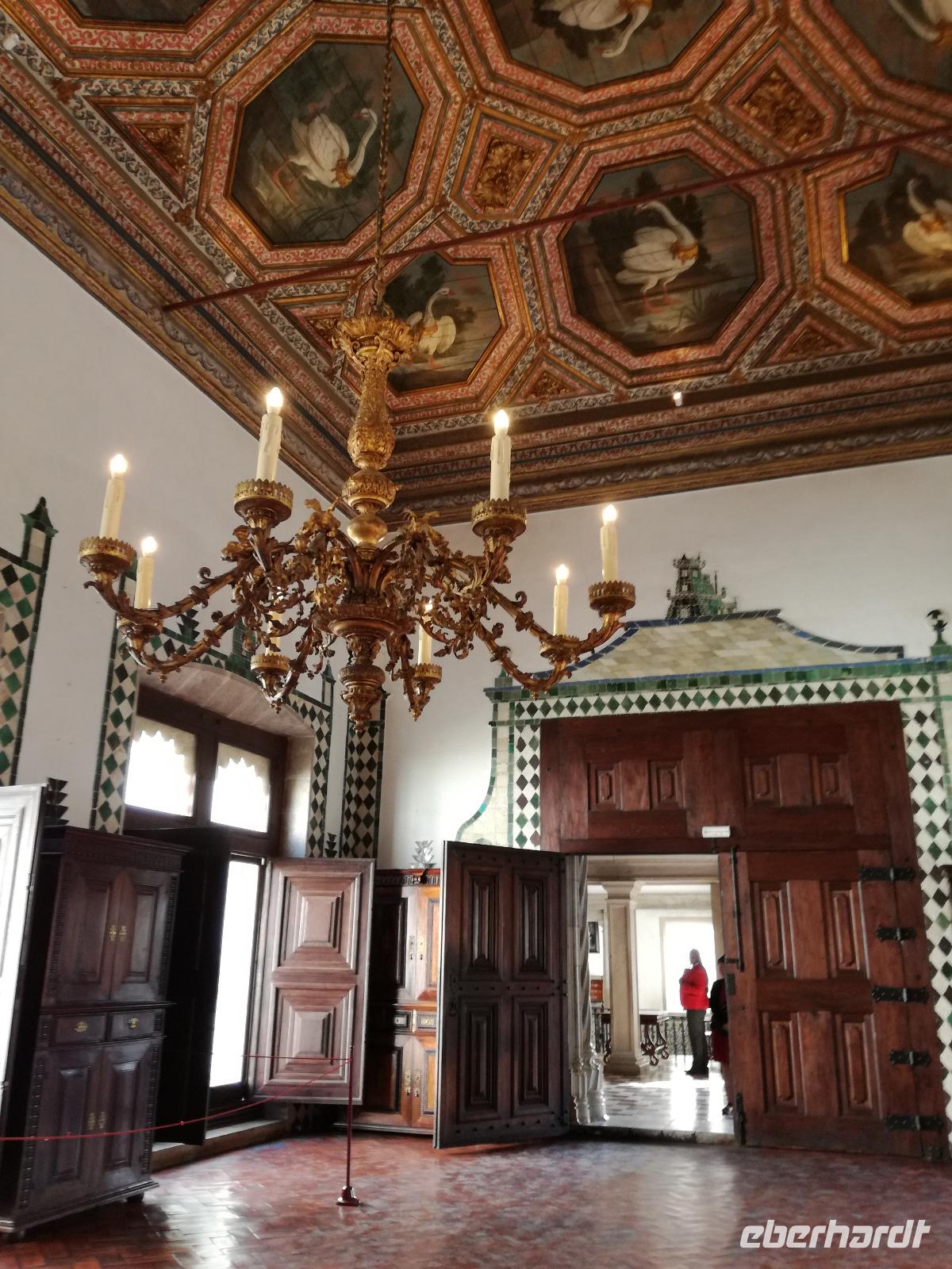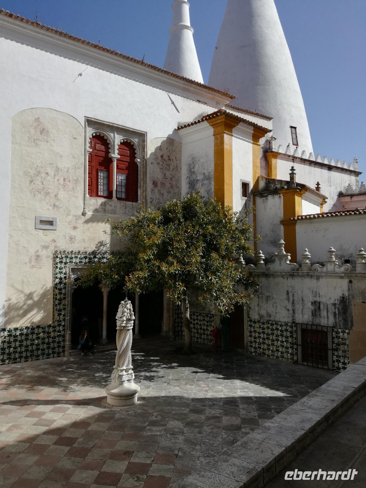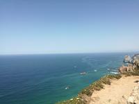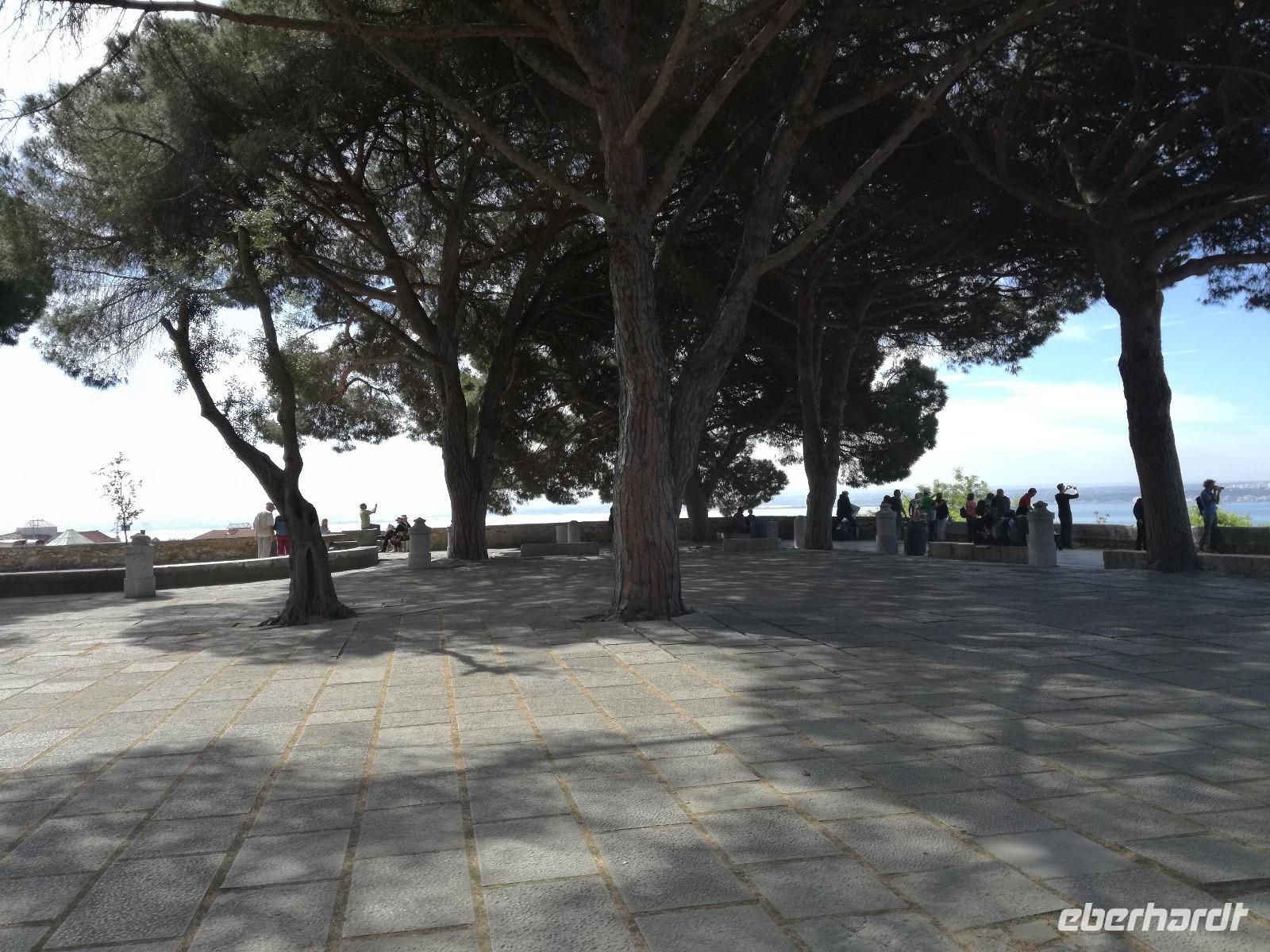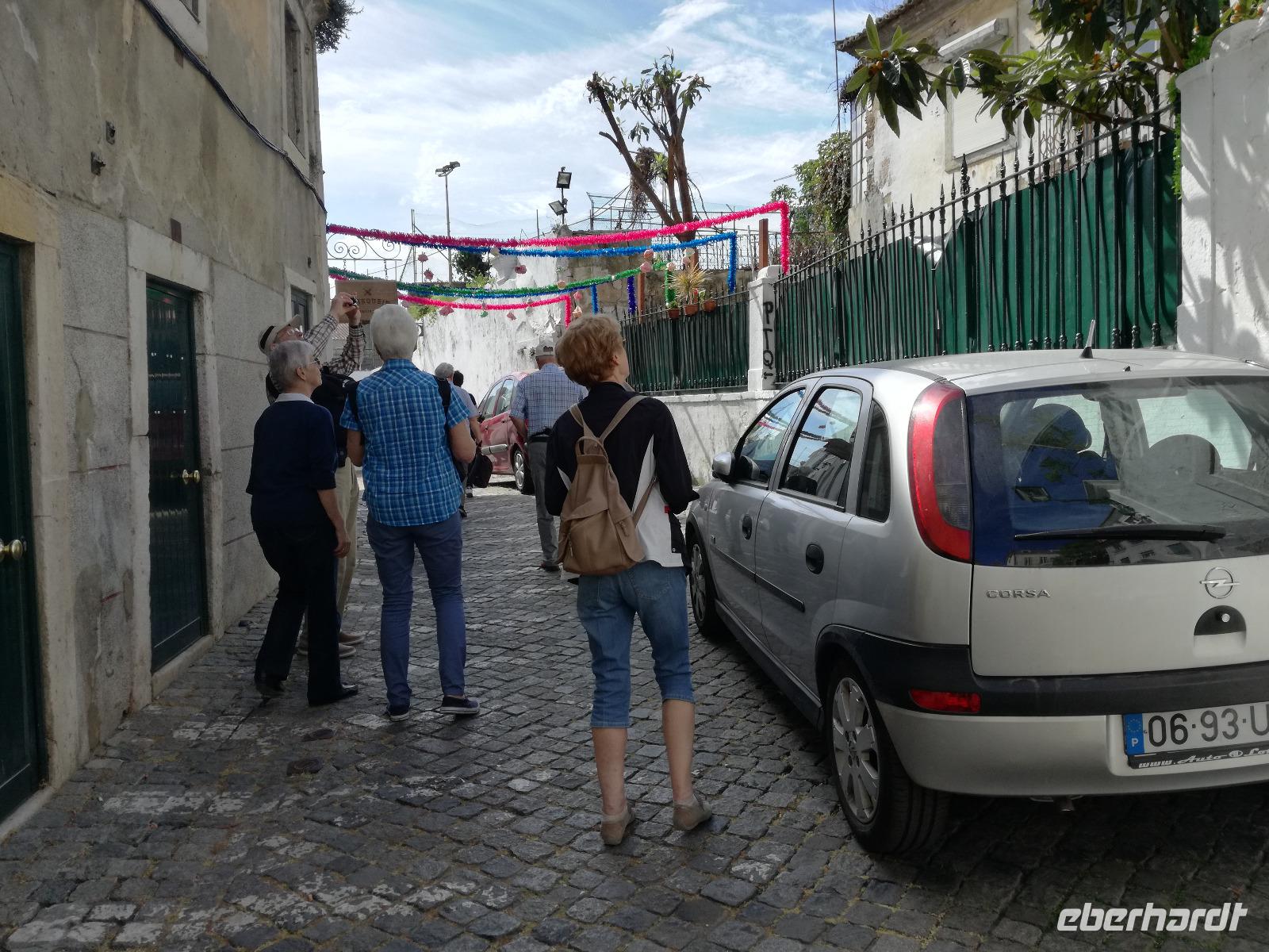 Gut gestärkt verließen wir heute das Hotel um uns in den Bus gen Westen aufzumachen. Catrin begrüßte uns mit einem portugiesischem „Bom Dia", was übersetzt „Guten Morgen" bedeutet. Unser erstes Ziel des heutigen Tages war die Blumenstadt Sintra. Die Kulturlandschaft von Sintra wurde zum UNESCO-Weltkulturerbe ernannt und zählte seit dem Mittelalter zum Sommerdomizil des Adels und der Könige. Unsere besondere Aufmerksamkeit galt dabei dem „Palacio Nacional". Schon von außen konnten wir erahnen warum der prachtvolle Stadtpalast schon damals beliebt war. Im Inneren des Palastes konnten wir den Wandel der Kachelkunst im Laufe der Zeit begutachten. Verschiedene Baustile vermischen sich hier zu einem beeindruckenden Kunstwerk. Catrin erzählte uns einiges über die Herstellung der Kacheln und die Einflüsse unter anderem die maurischen, die für die Gestaltung des Palastes verantwortlich waren. Nach der beeindruckenden Führung fuhren wir weiter Richtung Westen, bis wir am westlichsten Punkt Europa angekommen waren. Nicht nur die zerklüftete Küste, auch der Leuchtturm der an diesem besonderen Punkt Portugals steht ist sehenswert. Zu einem besonderen Punkt gehört auch ein besonderes Getränk, weshalb ich für die Gäste eine Runde des portugiesischen Kirschlikörs Ginjinha ausschenkte. Nach einem letzten Blick über „das Ende der Welt", fuhren wir weiter zu der Küstenstadt Cascais. Einige nutzten die Zeit um noch am Strand entlang zu schlendern und die Füße in den Atlantik zu tauchen, andere aßen einige portugiesische Spezialitäten in einem der Restaurants. Da wir so eine kleine Gruppe waren hatte Catrin noch ein kleines Extra für uns in petto: Die „Boco do Inferno", eine berühmte Felsformation in der Nähe von Cascais. Auf einer Plattform beobachteten wir die Wellen die an den Klippen brachen. Da sich unser Ausflug zu Ende neigte begannen wir die Rückfahrt nach Lissabon aufzunehmen, auf dem Weg zum Hotel hielten wir noch am „Parque Eduardo VII" für einen letzten Fotostopp.