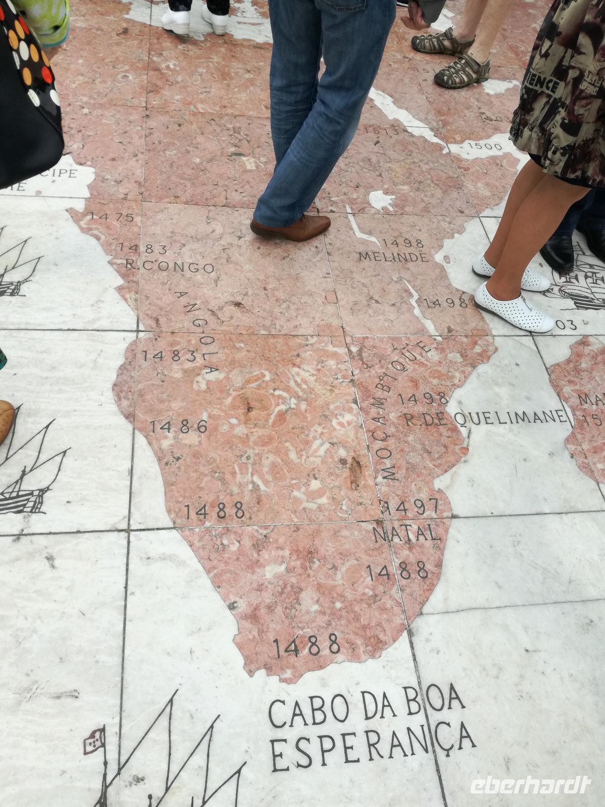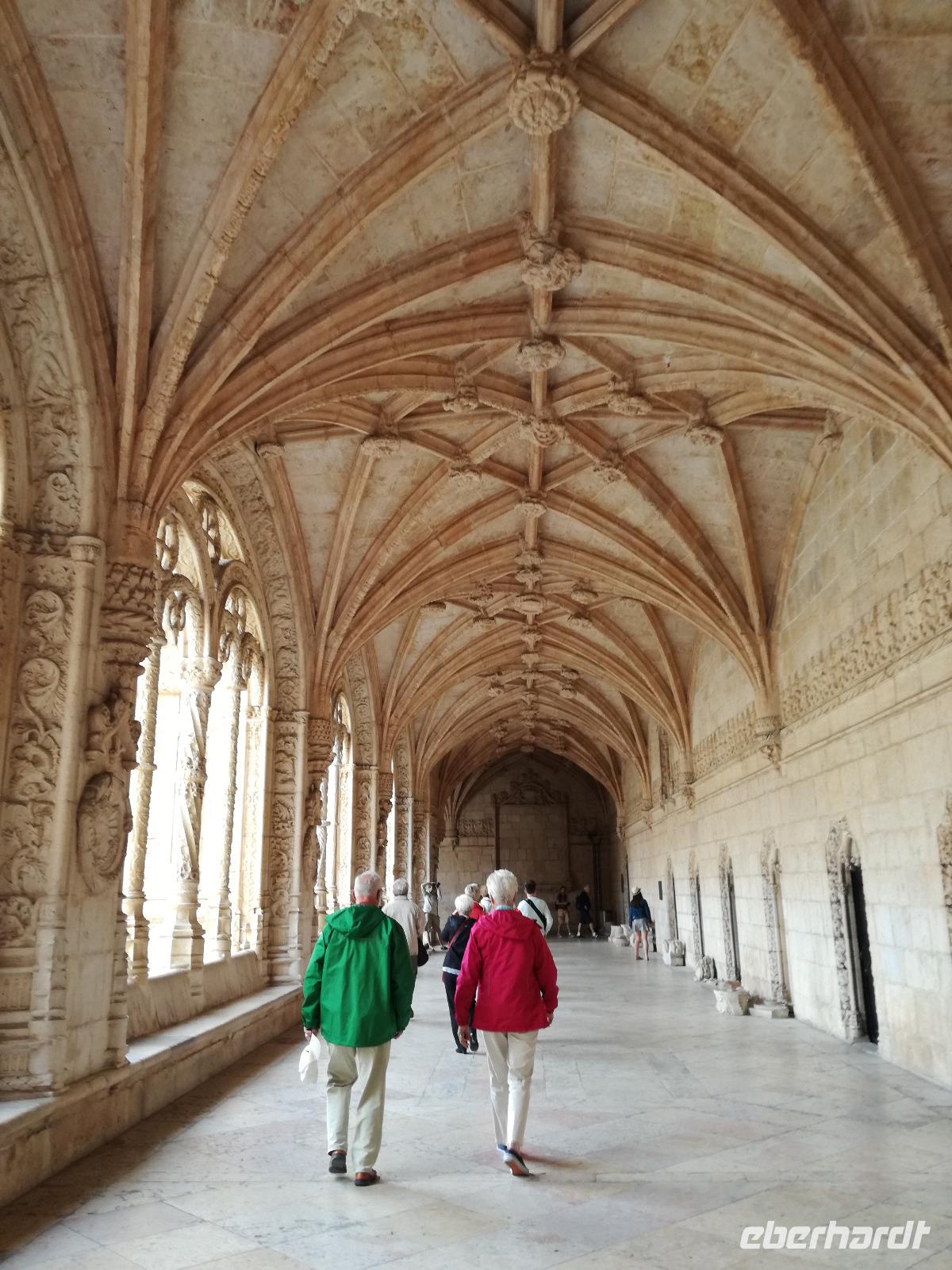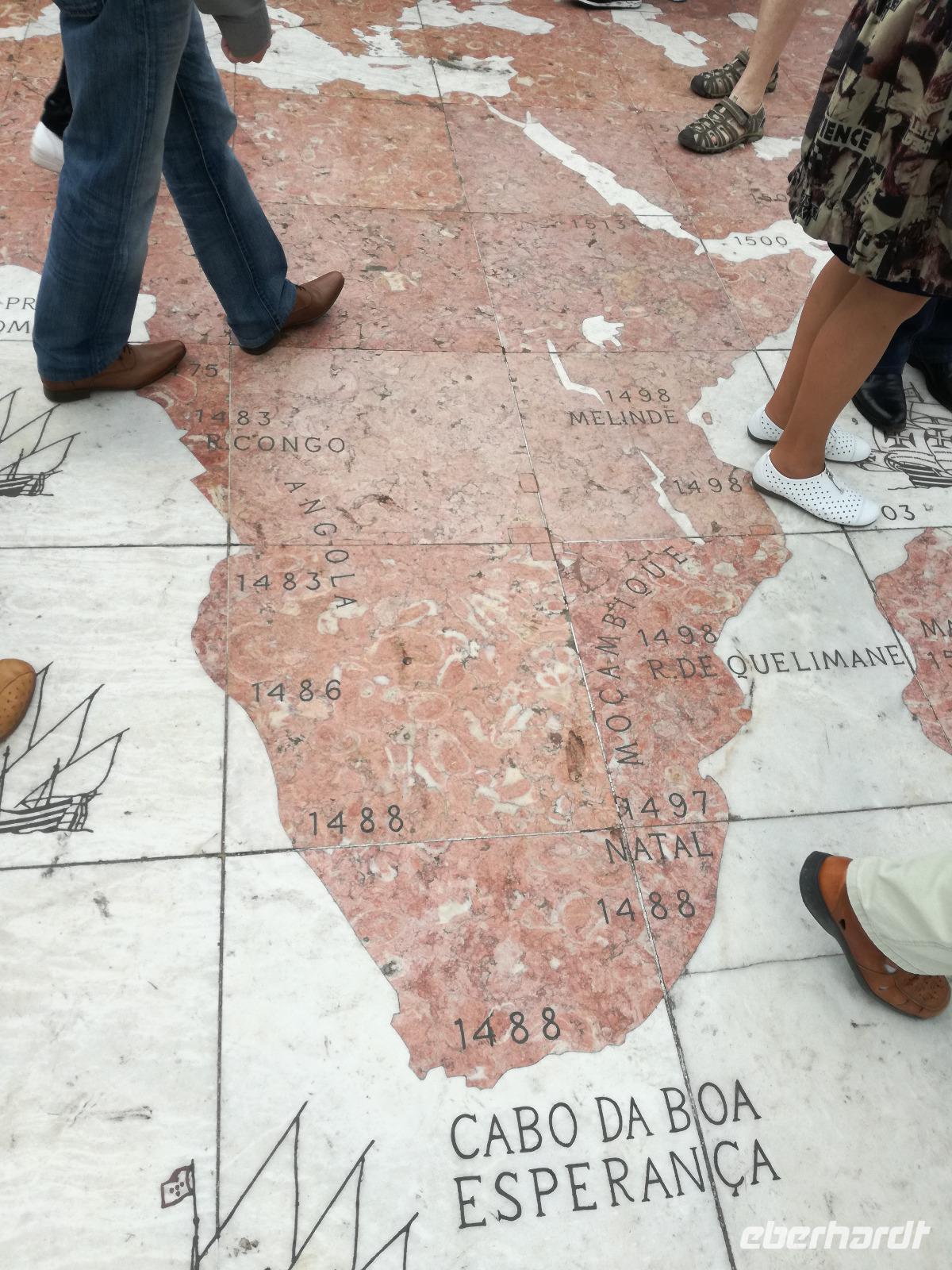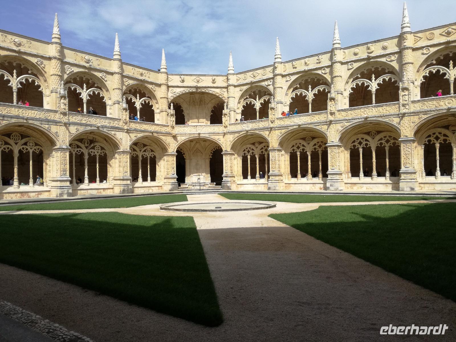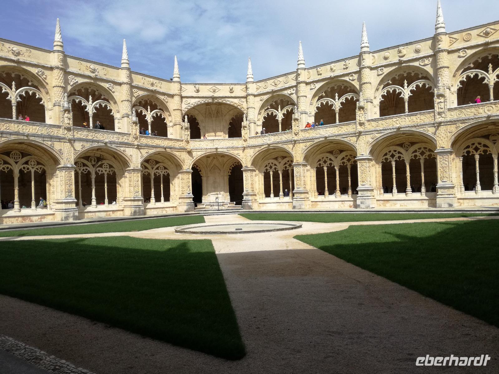 Der Stadtteil Belem liegt im Westen der Hauptstadt Lissabons und nicht nur wegen seiner leckeren Puddingtörtchen einen Besuch wert. Heute war der Tag der Seefahrerei. Zumindest was die Besichtigungen an diesem Tage angingen. Begonnen haben wir mit dem „Torre de Belem", dieses fungierte in der damaligen Zeit als Begüßung für die ankommenden Seefahrer. Die Besonderheit daran ist auch, dass es 1521 erbaut wurde und eins der wenigen überlebenden Bauten nach dem schweren Erdbeben 1755 war. Eine weitere Sehenswürdigkeit die wir besichtigten war das „Padrão dos Descobrimentos". Das Entdeckerdenkmal zeigt 32 wichtige Persönlichkeiten der Seefahrerei inklusive Heinrich der Seefahrer, der an der Spitze zu sehen ist. Am Fuße des Denkmals ist eine Weltkarte zu sehen, die die Entdeckungsreisen der Portugiesen dokumentiert. Wir gingen auch weiter auf Entdeckungsreise und spazierten durch den Fußgängertunnel Richtung Hieronymus Kloster. Das Kloster zählt neben dem „Torre de Belem" zu einem der unzerstörbaren Bauten. In der Kirche liegt der Sarkophag Vasco da Gamas, zusätzlich gehört zu dem Gebäudekomplex noch ein toll verzierter Kreuzgang. Zum Abschluss dieses Ausfluges genehmigten wir uns die berühmten „Pasteis de Belem" in dem gleichnamigen Café. Nur hier dürfen die Puddingtörtchen so genannt werden. Der Nachmittag stand im Zeichen der individuellen Erkundungen der Stadt.