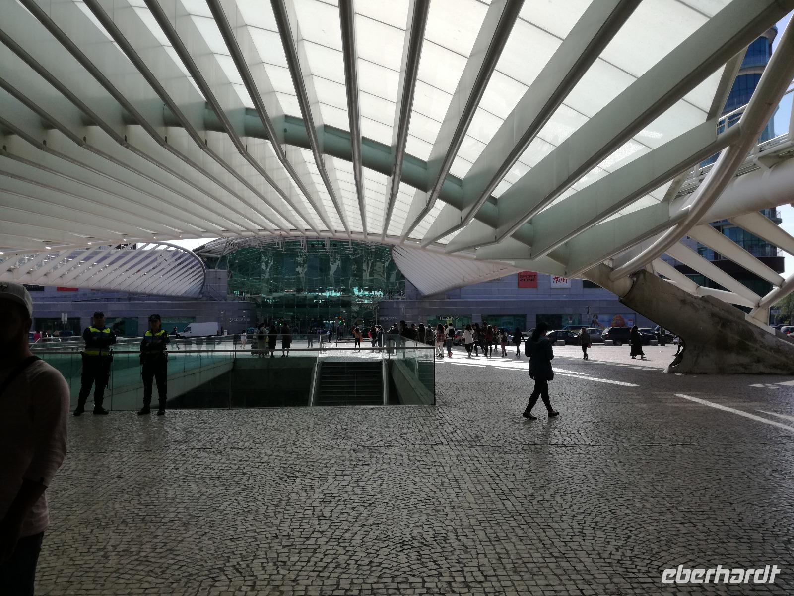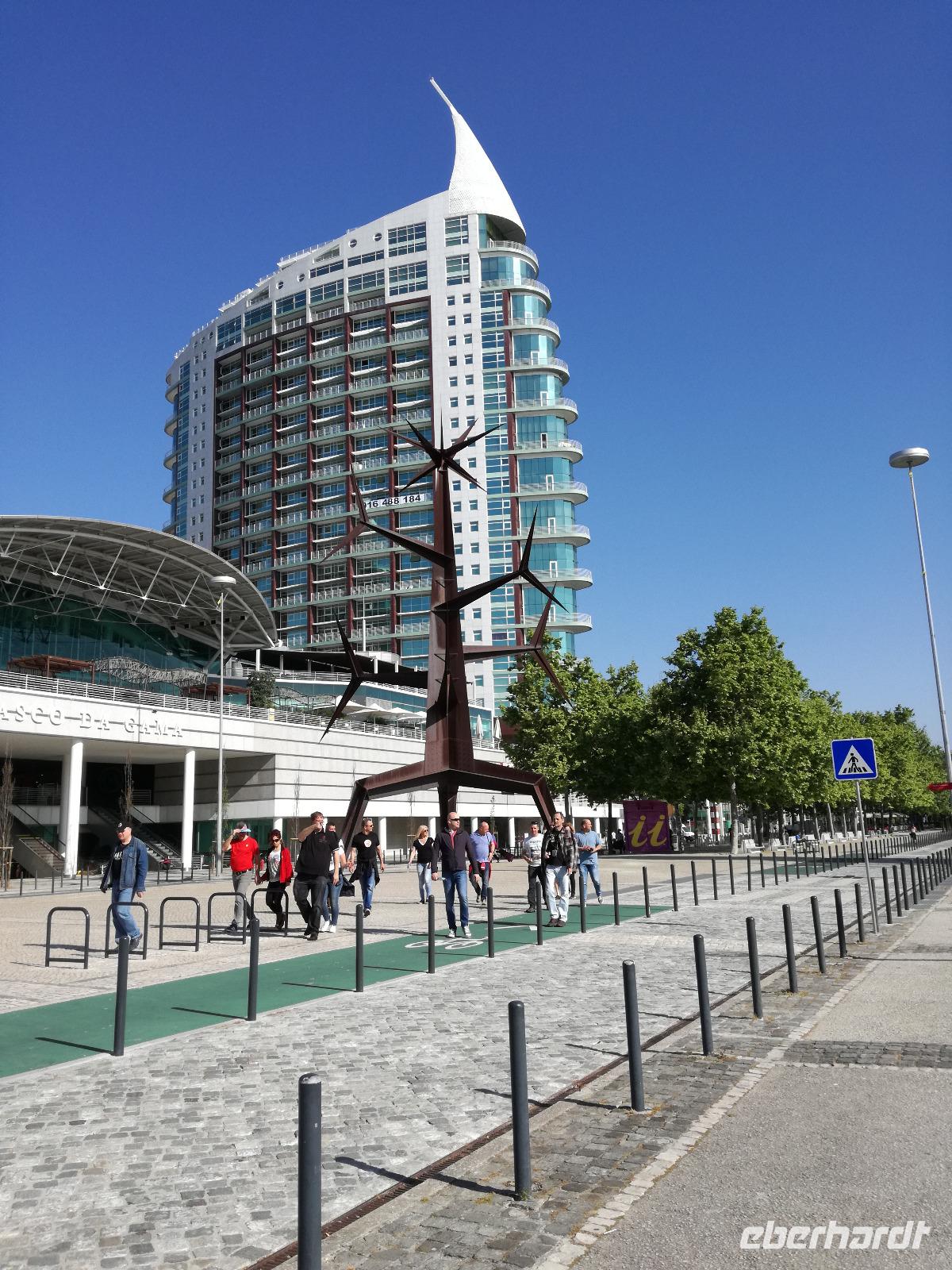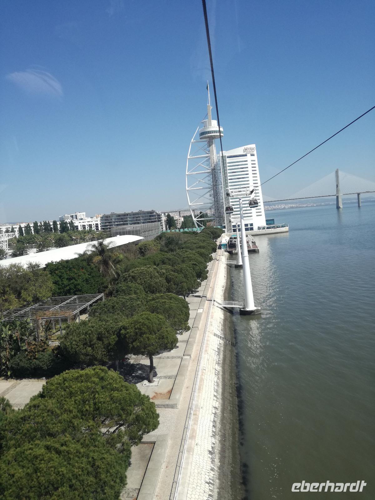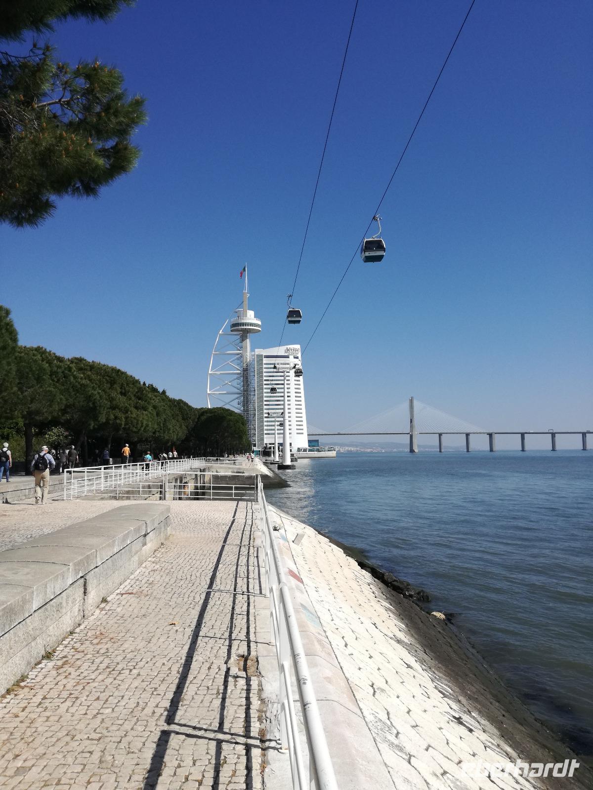 Das Expo-Gelände erinnert an die Austellung vom Jahre 1998, die unter dem Motto „Schutz der Weltmeere" stattfand. Mit dem öffentlichen Nahverkehr ist dieses gut zu erreichen. Um auf das weitläufige Gelände zu gelangen. Der „Park der Nationen" ist damals wie heute Ziel vieler Besucher in Lissabon, auch für uns. Wir durchquerten ein großes Einkaufszentrum bevor wir auf dem Gelände der damaligen Expo-Austellung ankamen. Catrin erzählte uns dabei einige interessante Dinge über die Weltausstellung. Für die Expo wurde das gesamte Gelände neu gestaltet, dieses war früher eines der weniger beliebten Viertel, aber heute kann sich nur noch die wohlhabende Schicht hier eine Wohnung leisten. Wir spazierten vom Ozenarium, ein rießiges Indoor Aquarium, welches wohl zu einem der größten der Welt gehört, zum Einstieg für die Seilbahn. Mit der Fahrt der Seilbahn bekamen wir nochmal einen ganz anderen Blick auf das Gelände. Am Ende dieser Seilfahrt heißt es Abschied nahmen von unserer wunderbareren Catrin, die uns ihr Lissabon gezeigt hat. Einige Gäste besuchten noch das Ozenarium, andere fuhren mit mir zurück in die Stadt.