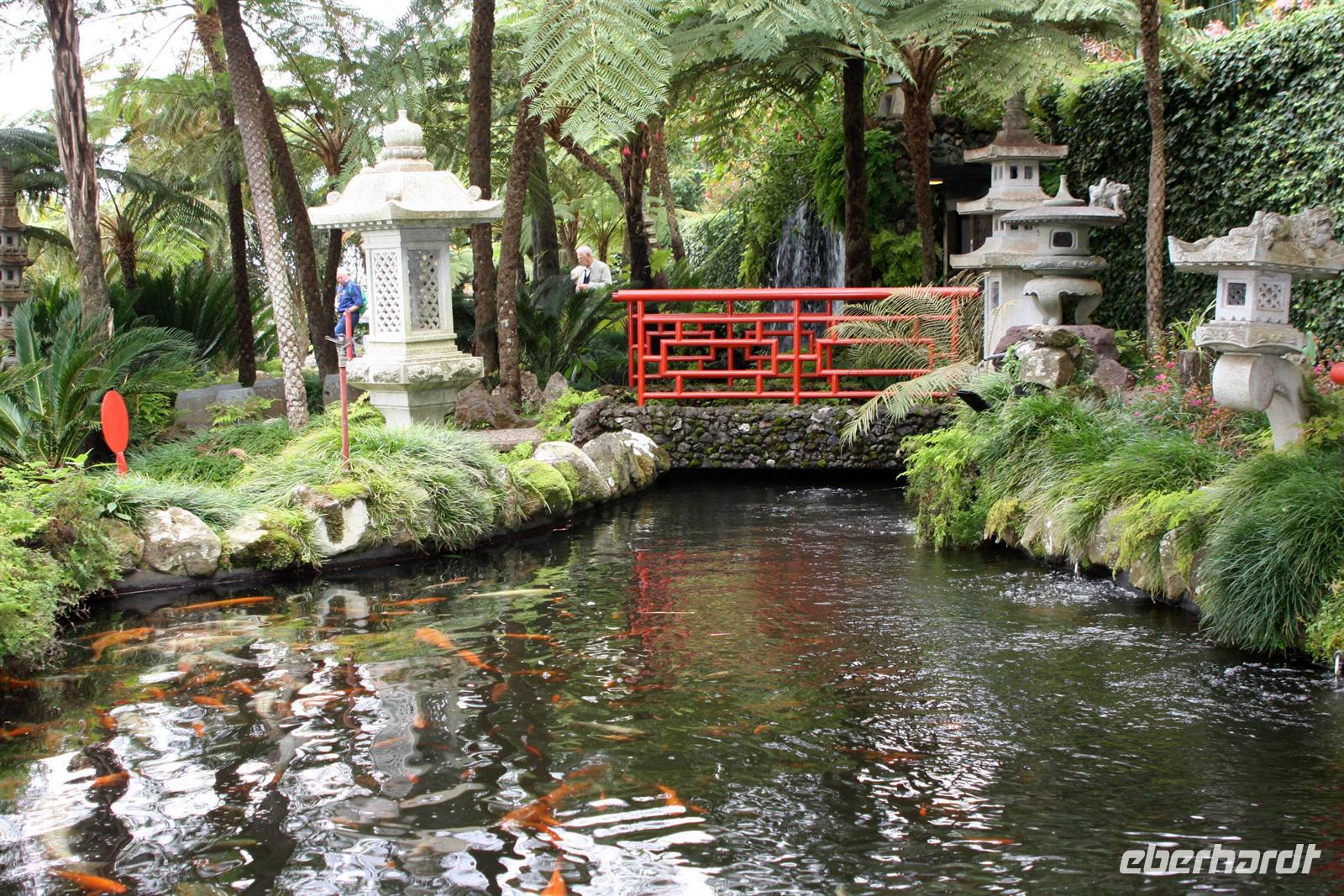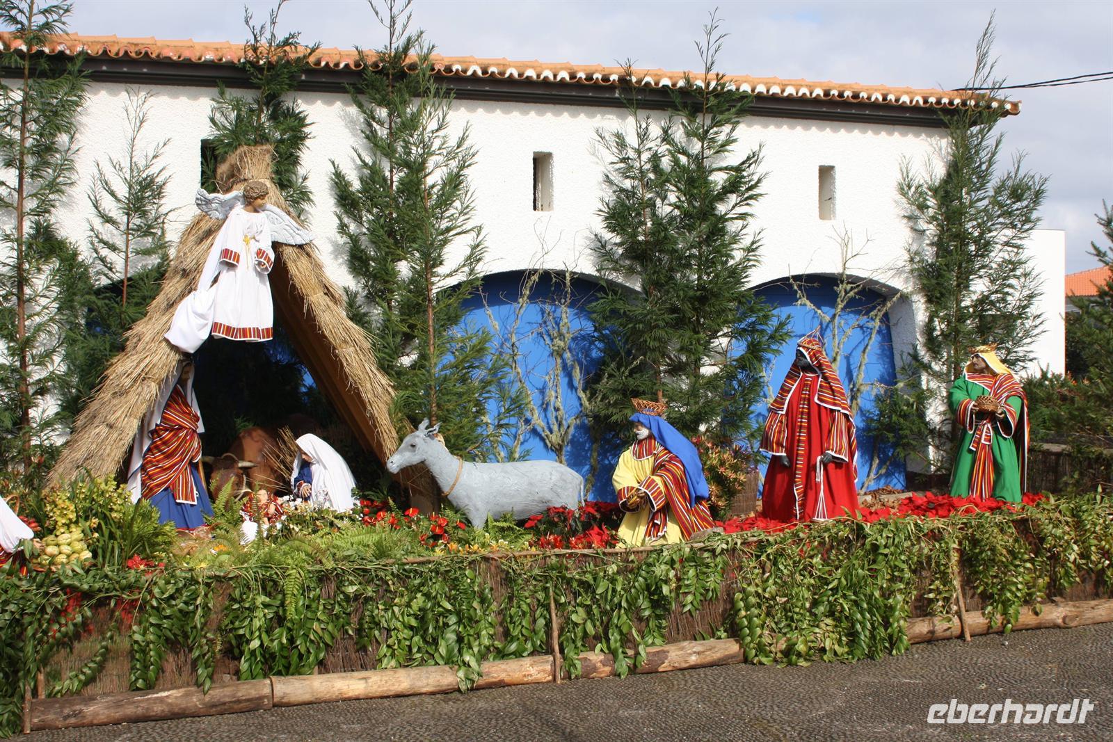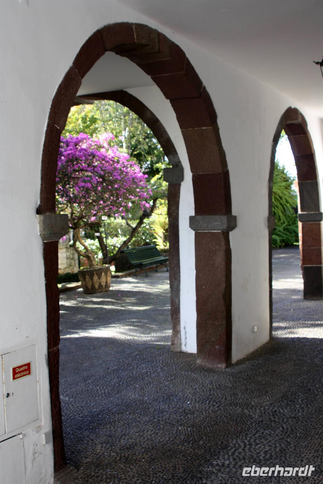 Unsere Reiseleiterin Teresa zeigt uns heute zahlreiche Sehenswürdigkeiten rund um Funchal. Los geht's mit der Gondelbahnfahrt hinauf nach Monte, wo wir den traumhaften Garten „Monte Palace" besichtigen. Neben der üppig grünen Vegetation gibt es viele Kunstwerke mit asiatischen und afrikanischen Einflüssen. Eine erstaunliche Sammlung von Mineralien gehört ebenso zu dem tropischen Garten wie die typisch portugiesischen Azulejos, eine Porzellanausstellung und Teiche mit Koi-Karpfen. Im Anschluss besteht die Möglichkeit für die mehr oder weniger „rasante" Talfahrt mit den einzigartigen Korbschlitten. Vor dem Mittagessen spazieren wir noch durch die Gärten des Kaisers, wo herrliche rosa und weiße Kamelienbäume blühen. In einem Restaurant am hübschen Yachthafen von Funchal genießen wir die Spezialität der Insel - schwarzer Degenfisch mit Banane. Lecker! Genussvoll geht es weiter bei der Weinverkostung in der Blandy's Weinkellerei. Madeirawein wird nicht als Tafelwein, sondern als Aperitif getrunken. Es ist ein gehaltvoller, schwerer Wein, der hier in mannshohen Eichenfässern reift. In den Straßen von Funchal ist nach wie vor weihnachtliche Stimmung. Die winterlich-festliche Dekoration mutet bei frühlingshaften Temperaturen zwar etwas merkwürdig an, aber schön ist sie auf jeden Fall. Eine Kapelle spielt weihnachtliche Musik und eine Tanzgruppe präsentiert traditionelle Folklore. Am Abend kehren wir zurück zum Hotel. Nach dem italienischen Essen vom Buffet gibt es noch ein Unterhaltungsprogramm in der Bar.