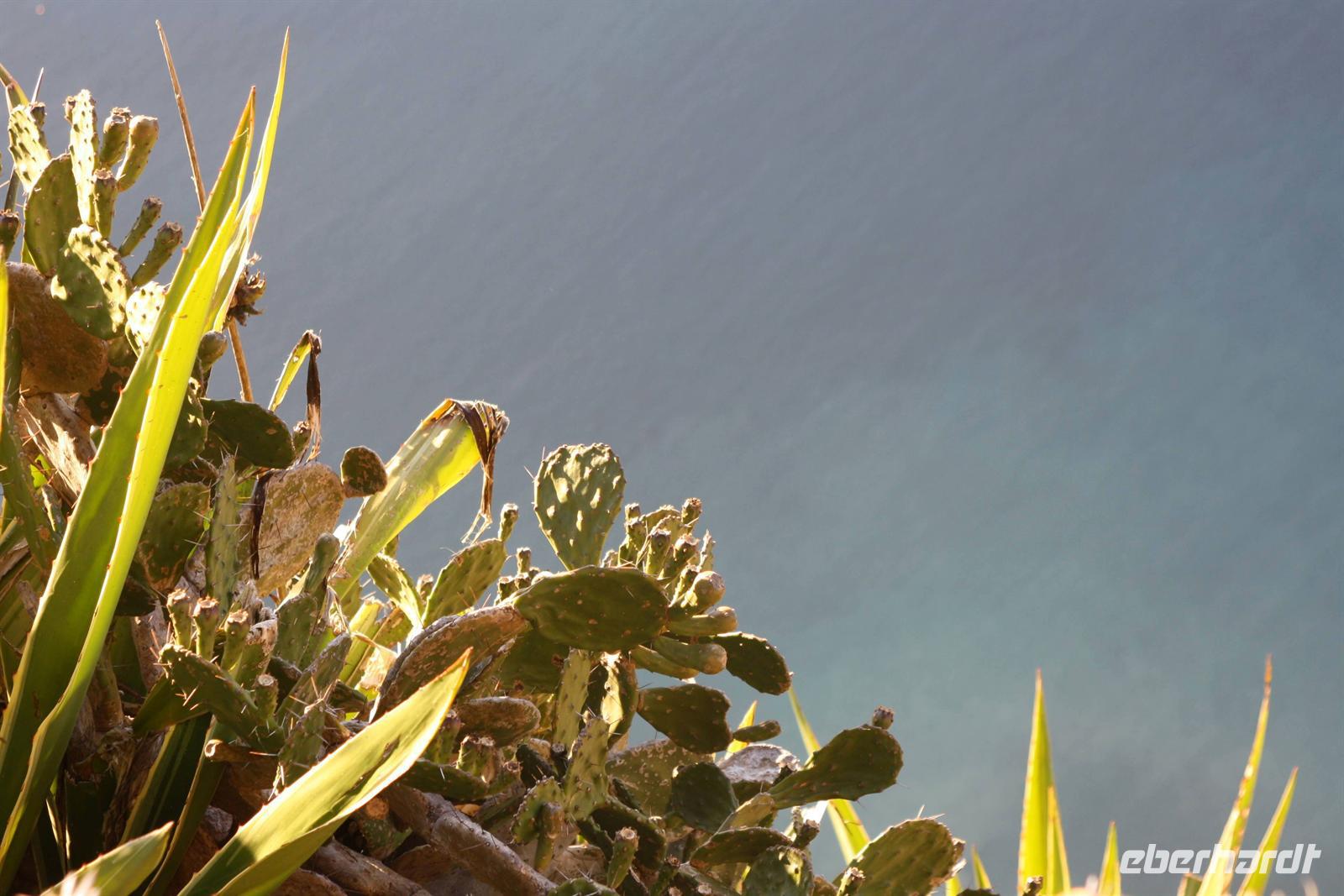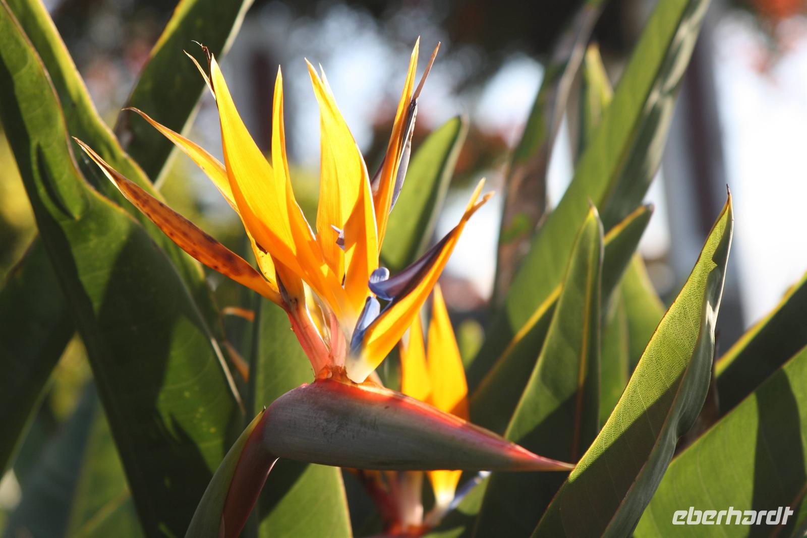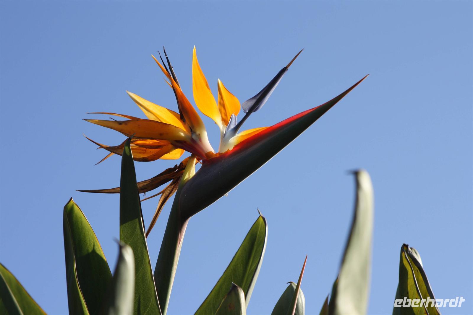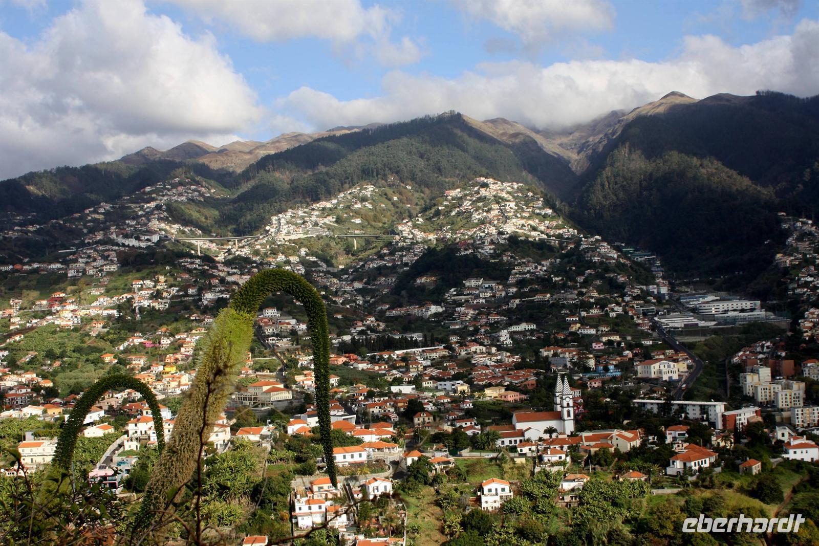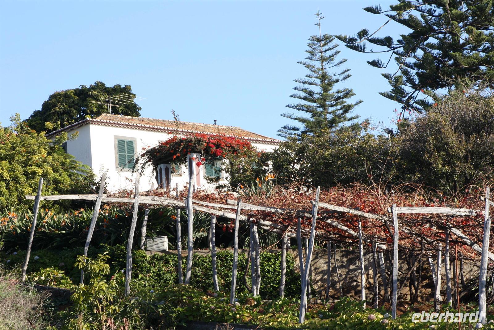 Der erste Tag des Jahres wird entspannt angegangen. Zum Mittag spazieren wir zum Restaurant „Atlantis", wo wir auf der Terrasse speisen. Wer möchte, begleitet mich zu einer wunderschönen Wanderung entlang der Levada von Maroços. Der Weg verläuft eben, immer entlang des künstlichen Wassergrabens. Die Levadas sind ein für Madeira charakteristische System zur Wasserversorgung und sozusagen die Lebensadern der der Insel. Viele Blumen und Pflanzen zieren den Wegesrand und wir finden sogar frische Cherimoyas. Die gelb-orange blühenden Girlandenblumen, die aus dem Himalaya stammen, wachsen hier wie Unkraut. Wir laufen im „Entenmarsch" vorbei an kleinen Dörfern, Feldern und Terrassen und bestaunen die abwechslungsreiche Flora. Immer wieder haben wir auch den weiten Blick auf das Meer und auf die Bucht von Machico. Ein herrlicher Neujahrs-Spaziergang!