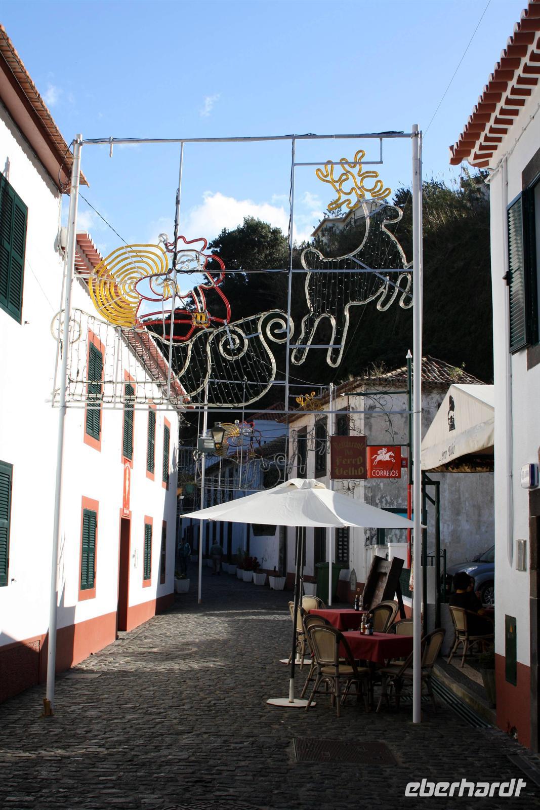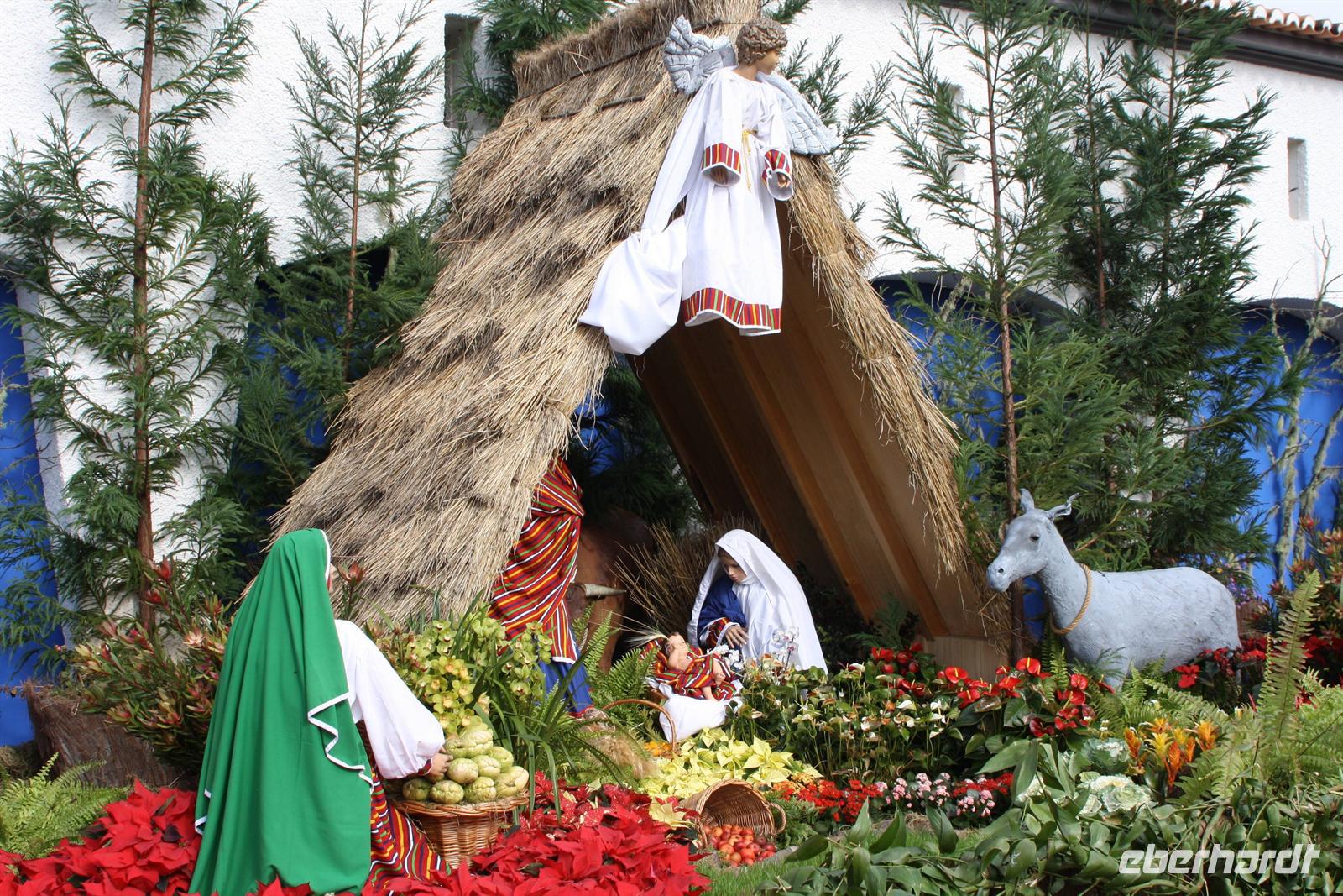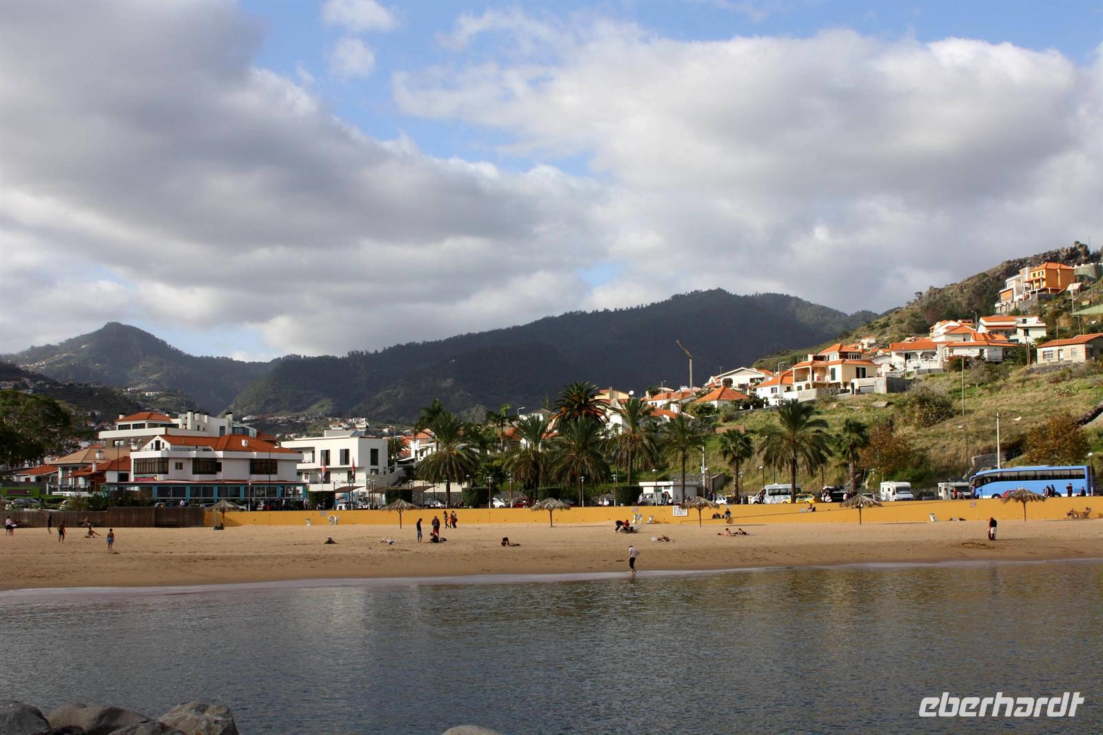 Von einem Aussichtspunkt oberhalb von Câmara de Lobos haben wir einen tollen Blick auf das kleine Fischerdorf, wo sich bereits Winston Churchill wohl fühlte. Auf der Quinta do S. João dürfen wir einen besonders alten Madeirawein von 1975 und den leckeren Honigkuchen „Bolo de Mel" verkosten. Der Weinberg ist eine wahre Pracht. Das Rot der Weinblätter wetteifert mit dem Orange der Strelizien und dem Grün der Bananenblätter. Bei einem Rundgang im alten Herrenhaus aus dem 17. Jahrhundert bekommen wir einen Eindruck, wie man einst hier lebte. Und auch der Hausherr sieht in seinem schicken Zwirn aus wie ein englischer Lord. „Alles Banane!" heißt es in Ponta do Sol. Das besonders milde Klima lässt Bananen und andere tropische Früchte prächtig gedeihen. Durch einen der 138 Tunnel gelangen wir in den Norden der Insel, wo das Klima deutlich rauer ist. Hier geht es entlang schwindelerregender Straßen oberhalb des Meeres entlang nach Arco de São Jorge. Im Rosengarten der Quinta finden wir allerlei verschiedene Rosenarten, leider ist die Blütezeit fast vorüber, aber die Namen der Rosen regen hin und wieder zum Schmunzeln ein. In Santana entdecken wir die typischen Strohhäuschen und legen eine Mittagspause ein. Wie in vielen Orten ist auch hier eine Weihnachtskrippe mit liebevollen Details aufgebaut. Vorbei am mächtigen Adlerfelsen führt uns die Route noch nach Machico, wo es sogar einen goldgelben Sandstand gibt! Auf der Rückfahrt zum Hotel passieren wir den Flughafen der Insel - die gigantischen Säulen unter der Landebahn lassen uns staunen über die Ingenieurarbeit. Darunter ist sogar Platz für Tennisplätze und andere Freizeiteinrichtungen.