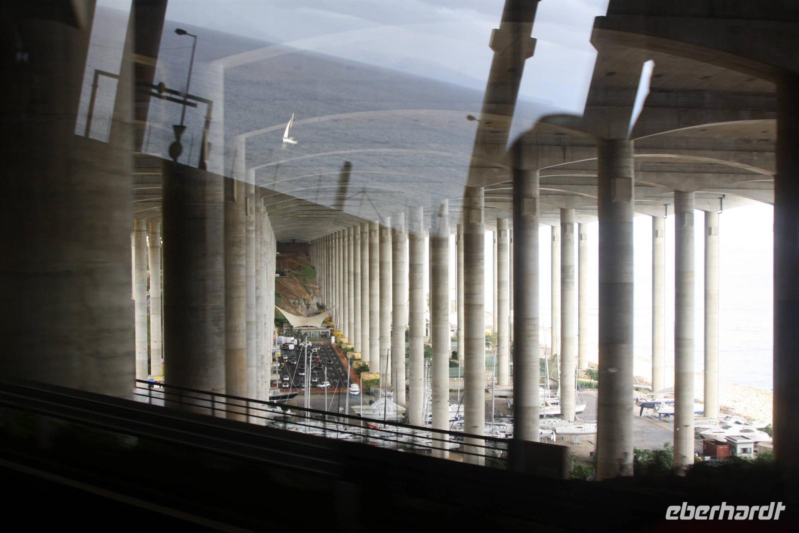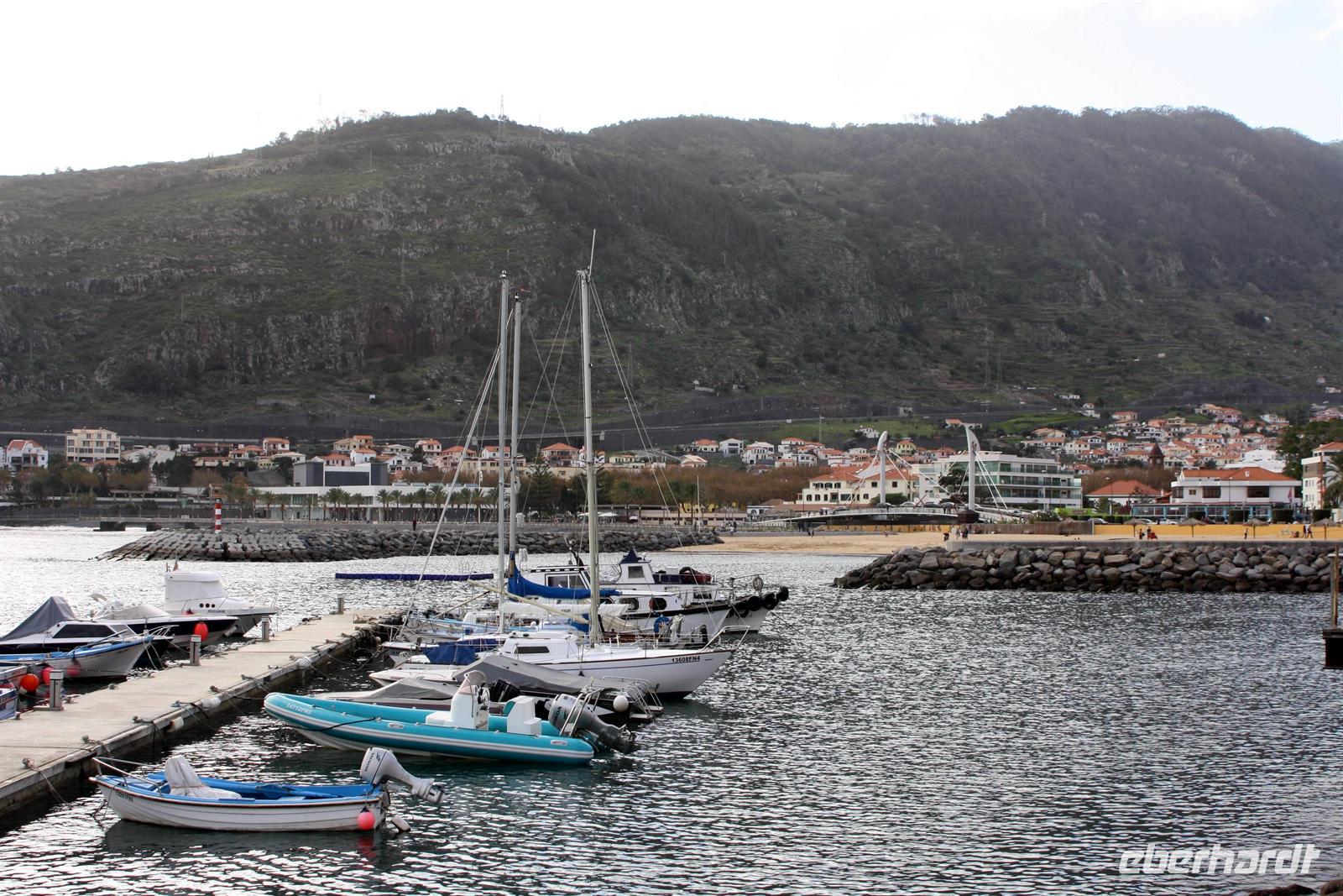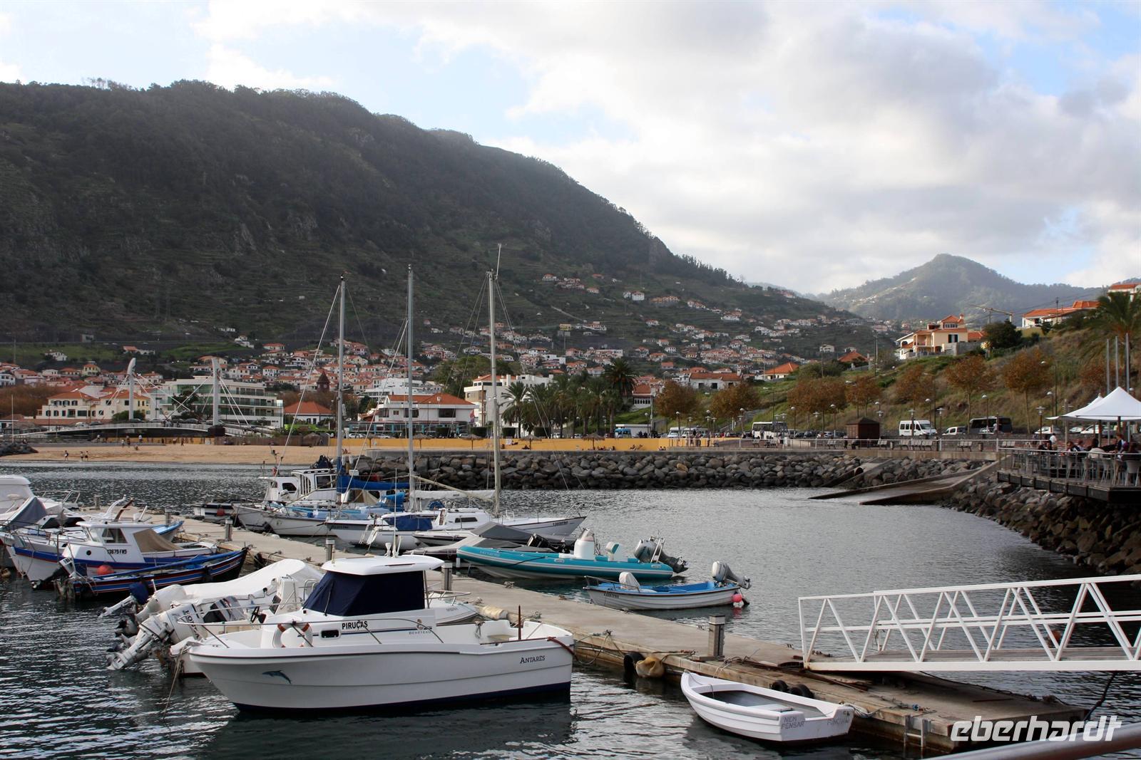Von einem Aussichtspunkt oberhalb von Câmara de Lobos haben wir einen tollen Blick auf das kleine Fischerdorf, wo sich bereits Winston Churchill wohl fühlte. Auf der Quinta do S. João dürfen wir einen besonders alten Madeirawein von 1975 und den leckeren Honigkuchen „Bolo de Mel" verkosten. Der Weinberg ist eine wahre Pracht. Das Rot der Weinblätter wetteifert mit dem Orange der Strelizien und dem Grün der Bananenblätter. Bei einem Rundgang im alten Herrenhaus aus dem 17. Jahrhundert bekommen wir einen Eindruck, wie man einst hier lebte. Und auch der Hausherr sieht in seinem schicken Zwirn aus wie ein englischer Lord. „Alles Banane!" heißt es in Ponta do Sol. Das besonders milde Klima lässt Bananen und andere tropische Früchte prächtig gedeihen. Durch einen der 138 Tunnel gelangen wir in den Norden der Insel, wo das Klima deutlich rauer ist. Hier geht es entlang schwindelerregender Straßen oberhalb des Meeres entlang nach Arco de São Jorge. Im Rosengarten der Quinta finden wir allerlei verschiedene Rosenarten, leider ist die Blütezeit fast vorüber, aber die Namen der Rosen regen hin und wieder zum Schmunzeln ein. In Santana entdecken wir die typischen Strohhäuschen und legen eine Mittagspause ein. Wie in vielen Orten ist auch hier eine Weihnachtskrippe mit liebevollen Details aufgebaut. Vorbei am mächtigen Adlerfelsen führt uns die Route noch nach Machico, wo es sogar einen goldgelben Sandstand gibt! Auf der Rückfahrt zum Hotel passieren wir den Flughafen der Insel - die gigantischen Säulen unter der Landebahn lassen uns staunen über die Ingenieurarbeit. Darunter ist sogar Platz für Tennisplätze und andere Freizeiteinrichtungen.