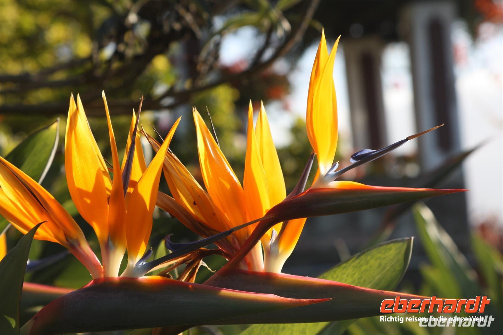 Den letzten Tag des Jahres beginnen wir mit einem Besuch der berühmten Markthalle in Funchal. Hier gibt es frisches Obst und Gemüse in Hülle und Fülle, leuchtend bunte Blumen und in der Fischhalle wird der schwarze Degenfisch und Thunfisch feil geboten. In der Stadt laufen bereits die Vorbereitungen für das große Silvesterfeuerwerk - an insgesamt 39 Stellen werden die Feuerwerke aufgebaut! Im Hafen liegen schon fünf große Kreuzfahrtschiffe, die anlässlich des Spektakels nach Madeira kommen. Wir besuchen anschließend die Quinta das Cruzes. Das Museum beherbergt eine interessante Sammlung alter Möbel, Porzellan, Kunstgegenstände und „Zuckerkisten". Zu dem schmucken Anwesen gehört auch ein wunderschöner grüner Garten. Hier kann man einen Café mit Blick auf den Hafen genießen. Schließlich wird noch ein Schatz der Quinta enthüllt - eine Kapelle von 1900, die die Weltausstellung in Paris zierte. Über den Dächern von Funchal liegt der zauberhafte Orchideengarten der österreichischen Familie Pregetter. Hier bekommen wir nebenbei auch ein paar hilfreiche Tipps für die Orchideenpflege zu Hause. Die Blütenvielfalt und Farbenpracht ist eine Augenweide! Ein Kastanienlikör mit Blick auf die Stadt und den Hafen beschließt unseren heutigen Ausflug. Den Nachmittag kann entspannt werden, denn es wird eine lange Nacht! Um 19.00 Uhr wird zu einem Glas Sekt geladen und zum Gala-Dinner. Das Restaurant ist festlich dekoriert und auch wir kommen nicht um „unsere eigene Dekoration" herum: für die Herren ein silberner Zylinder und für die Damen ein Krönchen - toll dass fast alle Hotelgäste mitmachen! Am Buffet gibt es viele Leckereien: von Garnelen und Muscheln über Lamm und Fisch bis zu süßen Desserts. Garniert wird das Abendessen mit Live-Musik, die gleich zum Tanzen, Feiern und Mitsingen animiert. Nachdem wir uns warm angezogen haben, fahren wir mit dem Bus nach Funchal. Von einer Dachterrasse nahe des Hafens erwarten wir das nächtliche Spektakel. Dann ist es soweit - um Mitternacht steigen die ersten Raketen in den schwarzen Himmel. Minutenlang ist das „Amphitheater" von Funchal in ein Farben- und Lichtermeer verwandelt. An den Berghängen wird das Feuerwerk synchron gezündet und der Hafen funkelt in tausend Farben. Wir können nur zustimmen, es ist wohl eines der schönsten und prächtigsten Silvesterfeuerwerke der Welt! Prosit Neujahr!