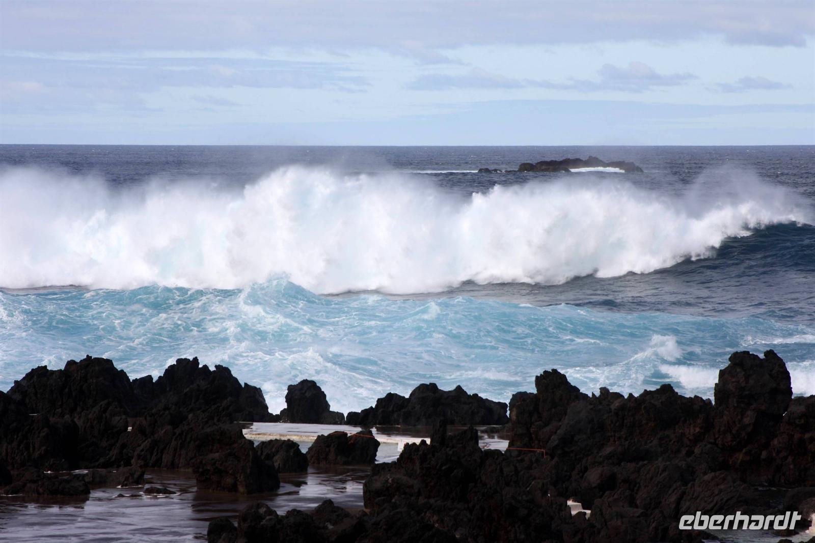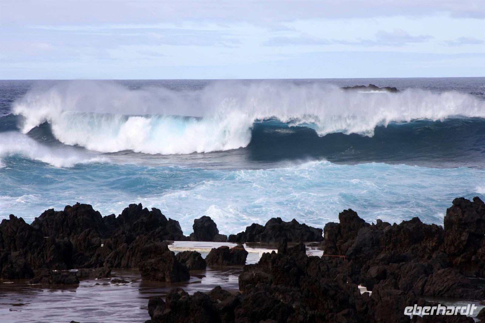 Heute fahren wir entlang der Südküste zum Cabo Girão. Die Straße schlängelt sich vom Meer bis auf 560 Meter hinauf. Die gepflegten Terrassenfelder reichen oft bis an den steilen Abgrund heran - die Bauern müssen nicht nur robust sondern auch schwindelfrei sein! Jeder Quadratmeter wird für den Anbau von Bananen, Wein, Erdbeeren, Kartoffeln & Co. Ausgenutzt. Dann fahren wir nach Ribeira Brava und erkunden den Ort und die hübsche Kirche bei einem Spaziergang. Vom Zentrum des Westens windet sich die Straße hinauf auf den Encumeada-Pass und die Hochebene Paul da Serra, so dass wir sogar auf die Wolkendecke hinab blicken können! Die Landschaft ist sehr abwechslungsreich: steil aufsteigende Berge und tiefe Schluchten prägen zunächst das Bild, währenddessen die Hochebene ein riesiges Plateau darstellt. Über die neue Straße fahren wir durch ein Naturschutzgebiet, in dem baumhohe Erika und Lorbeerwald gedeiht. Der Nebel lässt die Landschaft sogar etwas mystisch erscheinen. Schließlich erreichen wir Porto Moniz im Nordwesten. Vor der Küste liegt der markante „Fenster-Felsen" von Ribeira da Janela. Es ist Mittagszeit und wir genießen unser Lunch in einem örtlichen Restaurant. Die Wellen rauschen und brechen über den schwarzen Lavafelsen zusammen, dass die Gischt nur so schäumt. Bevor wir zum Hotel zurück fahren legen wir noch einen Stopp in Sao Vicente ein, einem beschaulichen Dörfchen im Norden der Insel.