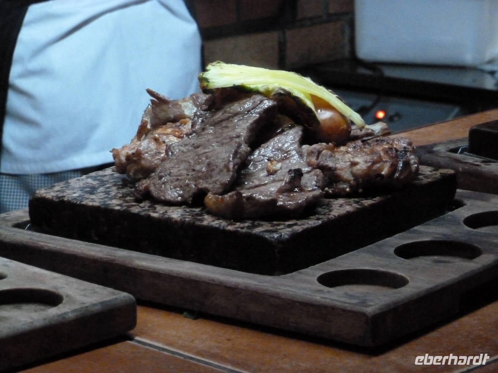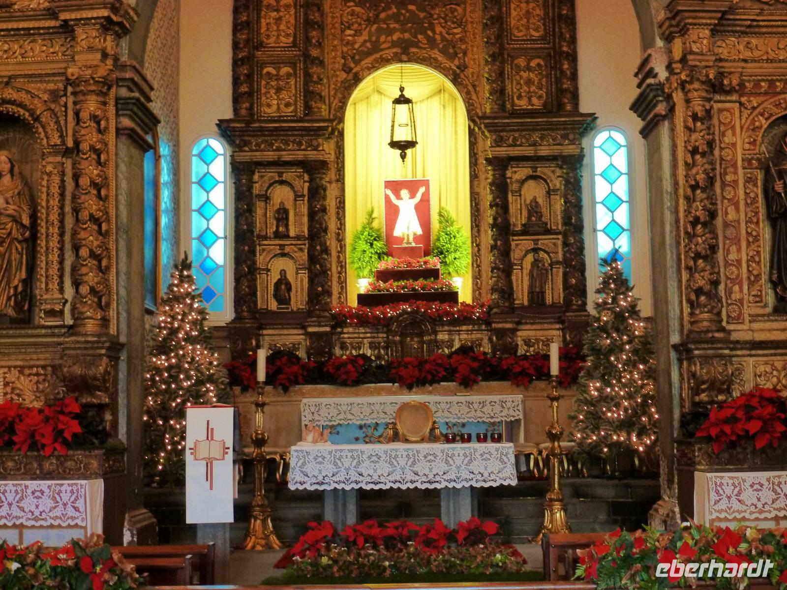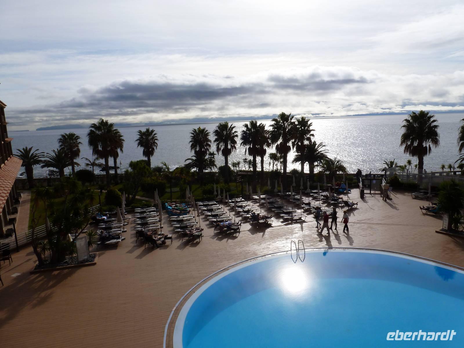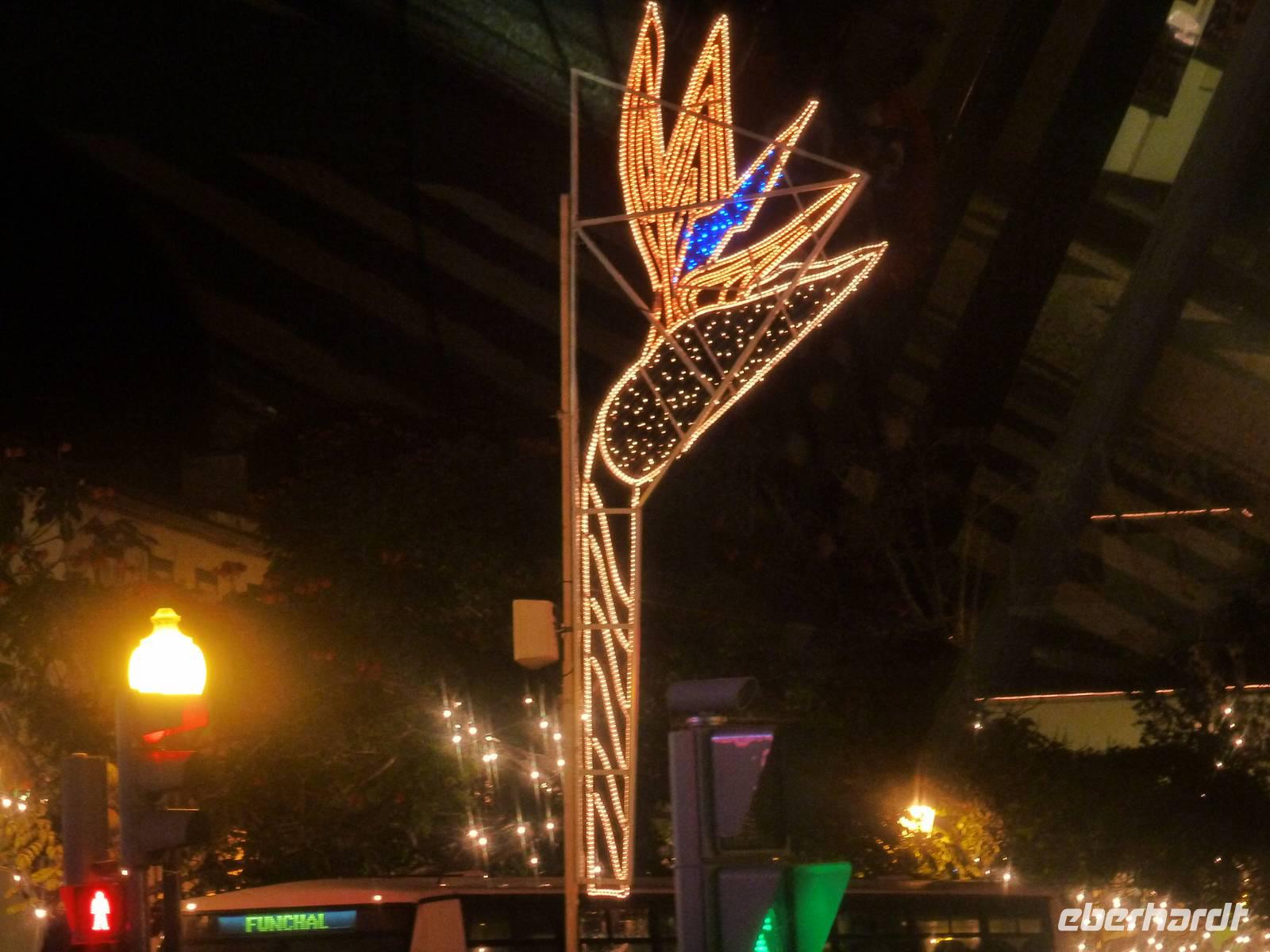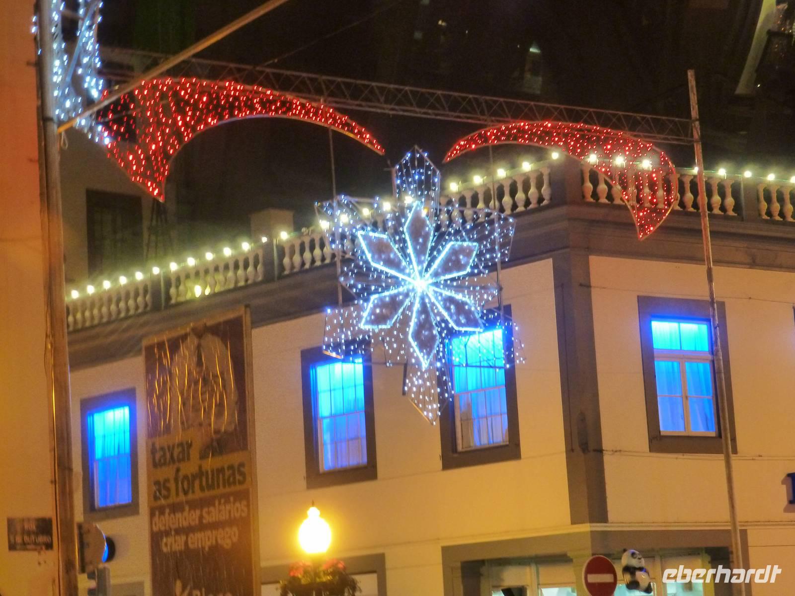 Nach einer kurzen, stürmischen und regnerischen Nacht, genossen wir trotzdem ein tolles erstes Frühstück in unserem Hotel und begrüßten auch herzlich unsere Mitreisenden, die bereits am 26.12.2013 anreisen durften. Ein bisschen haben wir uns schon eingelebt und letzte Fragen und Wünsche konnten schnell geklärt werden. So holten uns unsere Luise und unsere Rogerio püntklich 09:00 Uhr am Hotel ab und siehe da, Petrus meint es gut mit uns und die Sonne scheint. Natürlich...wenn Engel reisen. So unternehmen wir eine schöne Fahrt nach Funchal und erfahren auch erste Informationen über Madeira. In Funchal angekommen, zeigt uns Luisa alle wichtigen Sehenswürdigkeiten wie die manuelinische Kathedrale. Wir bummeln ein wenige über den „Weihnachtsmarkt", der hier dekorativ mit Fligenpilzen verziert ist und kehren anschließend in die Weinkellerei „Brandy´s" ein. Hier erfahren wir alles über die Herstellung des berühmten Madeira-Weins und dürfen natürlich auch selbst probieren. Der Ein oder Andere ersteht somit auch sein erstes Souvenir. Anschließend spazieren wir gemeinsam zum berühmten Marktplatz mit seinem großzügigen Blumen-, Obst - und Fischmarkt. Luise erklärt uns unbekannte Früchte und Blumenzwiebeln. Wir kosten Bananen und schießen natürlich viele Fotos. Auch die Freizeit vergeht wie im Flug. Auch die Sonne bleibt uns heute treu. Weiter geht es über die älteste Straße Funchal´s mit ihren toll dekorierten Eingangstüren, zur Seilbahnstation nach Monte. Von hier genießen wir eine beschauliche Fahrt bis auf 550 Meter. Hier angekommen besuchen wir die berühmte Kirche Nossa Senhora de Monte, in der Kaiser Karl von Österreich, 1922 in Monte gestorben, beigesetzt wurde. Einige Reisegäste trauen sich sogar, die berühmte Fahrt mit dem Korbschlitten zu unternehmen und sind froh, heil unten angekommen zu sein. Ein tolles Erlebnis, dass man auch nicht jeden Tag macht. Nach vielen Eindrücken sind wir heute doch etwas müde und so fahren wir nach unserem Halbtagesausflug zurück zu unserem Hotel. Hier holen wir natürlich die Begrüßungsveranstaltung vom Vortag nach und trinken...ja richtig...noch ein Gläschen Madeira-Wein. Nun sind wir schon richtige Kenner. Unsere Gäste erfahren alles über die nächsten Tage und jeder nutzt die anschließende Zeit individuell. Am Abend treffen wir uns wieder und kehren gemeinsam in ein örtliches Restaurant, die Villa Ventura ein. Hier genießen wir ein tolles Abendessen mit Mixed Grillplatten oder den berühmten Espetatas und lassen den Tag noch einmal Revue passieren.