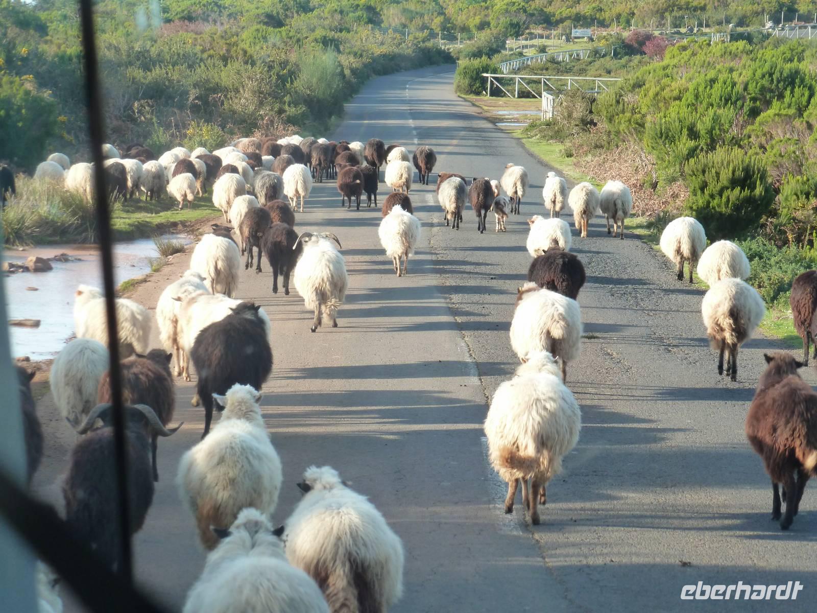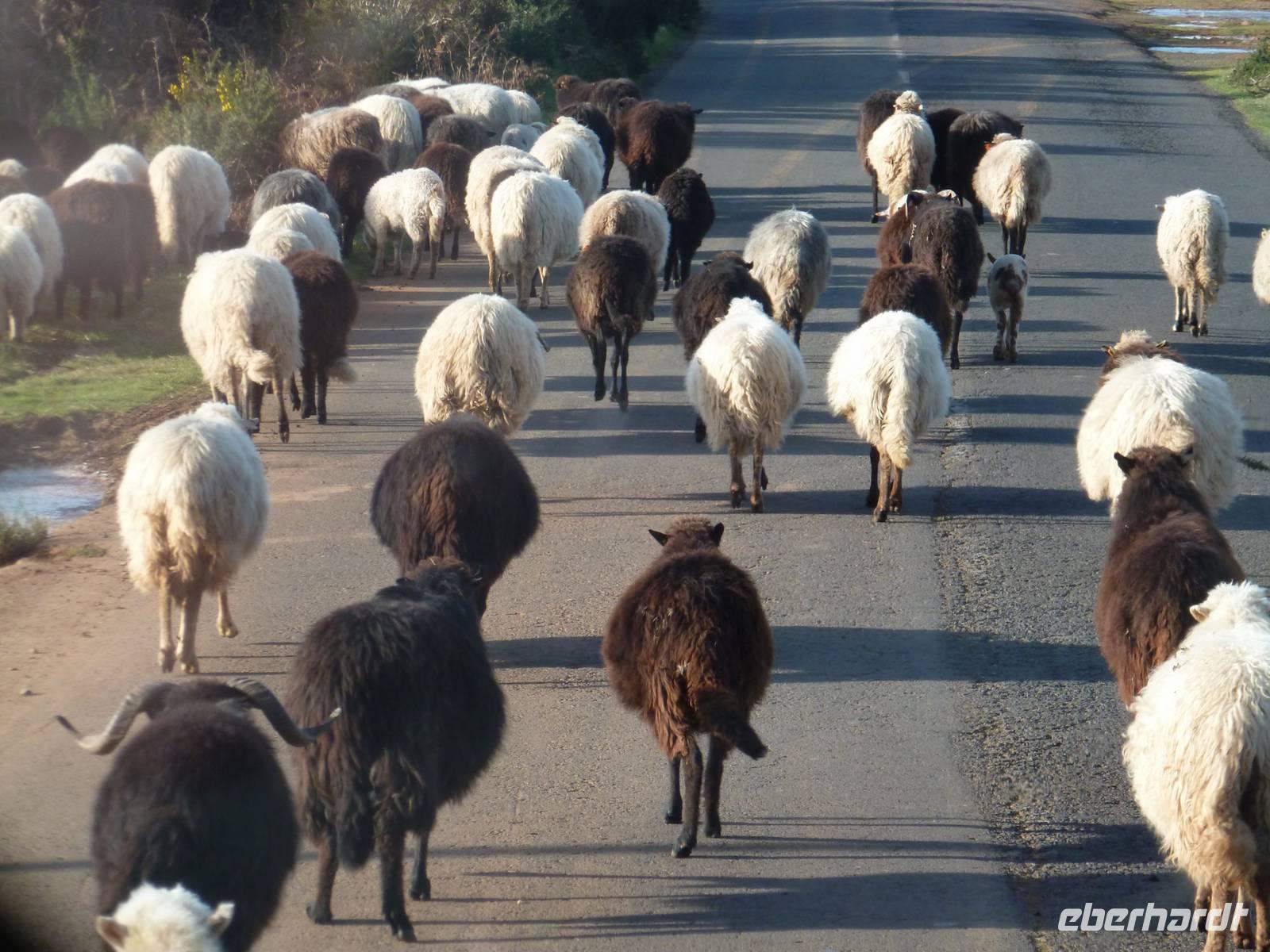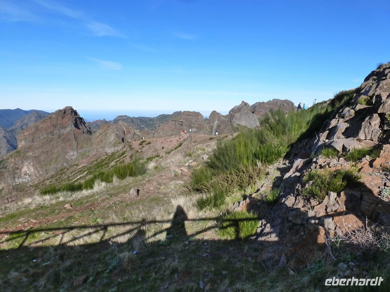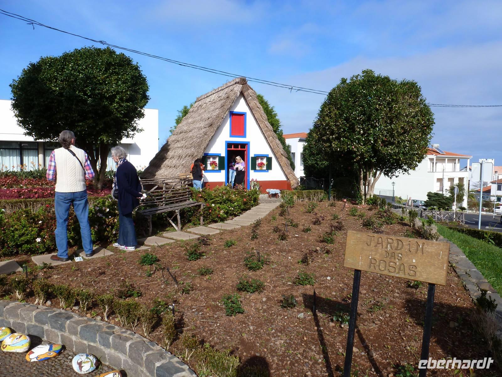 Heute beginnt unser Tag zur gewohnten Zeit um 09:00 Uhr und mit strahlendem Sonnenschein. Luisa holt uns ab und so fahren wir zunächst über den Poiso-Pass zum Pico de Arierio, dem zweithöchsten Berg Madeiras auf 1.818 Meter. Unterwegs sehen wir, wie sich die Vegetation ständig verändert und das der Frost hier auch Einzug gehalten hat. Wir durchqueren eine Schafherde und erreichen schließlich die Spitze des Pico do Arierio, wo wir dank des tollen Wetters tolle Aufnahmen machen können. Anschließend fahren wir weiter nach Ribeiro Frio, wo wir zunächst eine Forellenzucht besuchen. Danach spazieren wir gemütlich entlang der Levadas und Luisa erklärt uns alles über die hier wachsenden Bäume und Pflanzen. Der ingesamt drei Kilometer lange Weg führt uns zunächst zum Aussichtspunkt „Balcoes" von dem wir eine tolle Aussicht auf die Berglandschaft Madeiras genießen. Wir verweilen kurz bevor wir unseren Rückweg antreten. Natürlich hat sich Herr TRAVEL für die bemühten Gäste auch eine kleine Belohnung am Ende der Wanderung einfallen lassen. So kehren wir alle in eine kleine Bar ein und trinken gemeinsam den für Madeira berühmten Poncha, einen doch hochprozentigen Zuckerrohrschnaps mit Zitronensaft. Dieser schmeckt allen wunderbar und danach fühlen wir uns im wahrsten Sinne des Wortes wie im Siebten Himmel. Der Weg zum Bus fällt uns nicht leicht aber alle schaffen es. Im Bus philosophieren wir dann über Funchals Fußballer und andere wichtige Annehmlichkeiten wie rote Unterhosen zu Silvester. Aber Gott sei Dank kommen wir auch wieder zum Ernst zurück. Luisa freut das sehr. Nach unserem Poncha führt uns unsere Reise über eine wunderschöne Strecke mit Avocado Bäumen, Bananenpflanzen und Mispeln nach Santana. Hier kehren wir zunächst in ein Restaurant ein und probieren Thunfischsteak oder Weizensuppe. Natürlich darf der obligatorische Rot - oder Weißwein dazu nicht fehlen. Gestärkt und glücklich schauen wir uns anschließend die kleinen strohbedeckten Häuschen an, die sich wunderbar in das Stadtbild einfügen. Danach führt uns unsere Reise vorbei am Levada-Mann, um den wir einige Runden drehen, damit auch alle in voller Pracht die Muschel oder auch Schneckenhaus genannt und die Mütze des Mannes bewundern können, über den Portela-Pass nach Machico, zum ältesten Ort der Insel. Hier Verweilen wir kurz und sehen den wunderbaren gelben Sandstrand. Mit vielen Eindrücken fahren wir am Flughafen vorbei zurück zu unserem Hotel um die vielen Eindrücke zu verarbeiten. Am Abend treffen wir uns wieder und Luisa und Rogerio nehmen uns mit auf eine wunderbare Lichterfahrt duch Funchal mit anschließendem Abendessen in einem Restaurant mit Blick auf die Stadt. Bei dem berühmten und äußerst schmackhaften „Espetata" Spieß aus Rindfleisch lassen wir den Tag ausklingen.