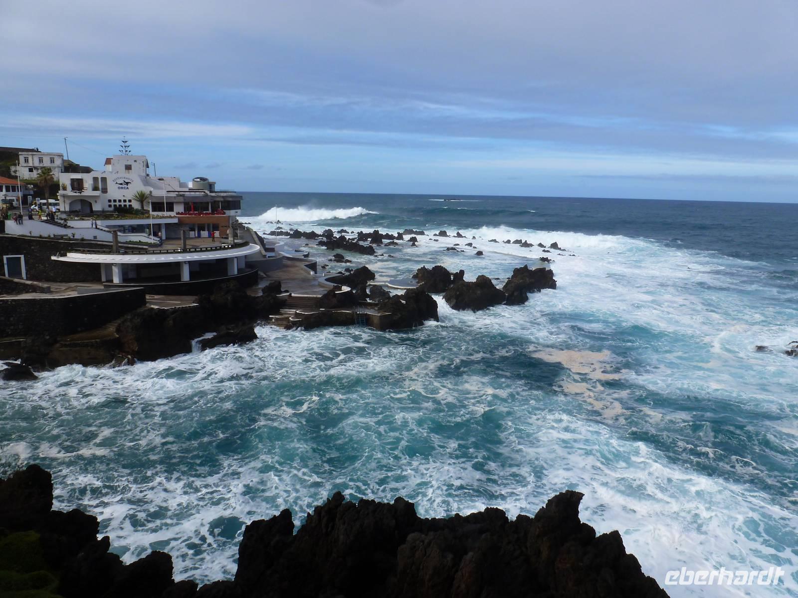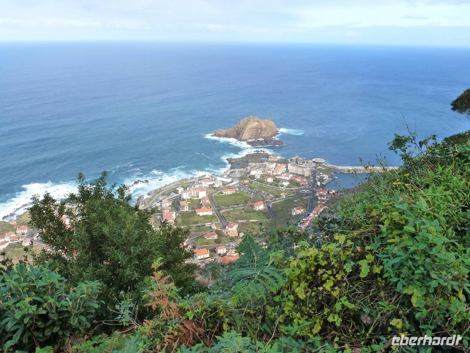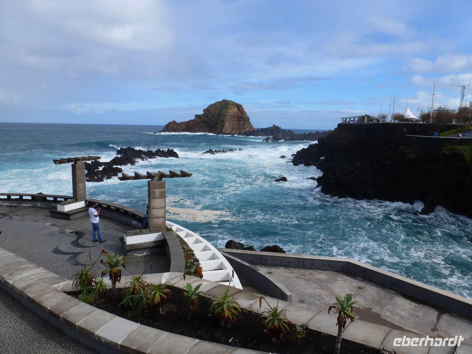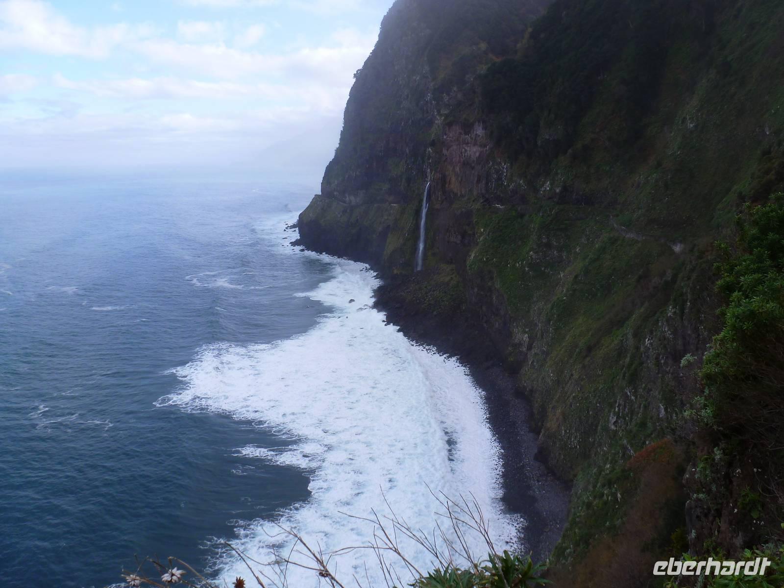Heute Morgen müssen wir uns bereits von einigen Gästen verabschieden, denn diese fliegen heute bereits zurück nach Hause. Wir dürfen noch ein wenig bleiben und so fahren wir nach einem ausgiebigen Frühstück bei anfänglichen Regen zunächst nach Ribeira Brava, dem Zentrum des Westens. In Canico hat es bereits die ganze Nacht geregnet und eigentlich glauben wir alle nicht an einen Umschwung des Wetters, da sich der Himmel in einem düsteren Grau zeigt. Aber Luisa hat Petrus eine SMS geschickt und so strahlt wirklich wenige Minuten später wieder die Sonne. Wir hatten bei unserer Reise wirklich ein unfassbares Glück mit dem Wetter. In Ribeira Brava besuchen wir die kleine Ortskirche und die kleine Markthalle, in der nur drei Degenfische Platz haben. Auf Madeira ist eben alles ein bisschen kleiner. Anschließend fahren wir auf den berühmten Encumeada-Pass, der sich ganz oben dann doch nur im Nebel zeigt. Aber vorher können wir wirklich wunderbar sonnige Ausblicke auf die Westküste genießen. Unten angekommen besuchen wir das kleine Städtchen Sao Vicente, dessen Kirche und Friedhof wir besuchen. Danach führt uns unser Weg weiter nach Porto Moniz. Auf der Strecke sehen wir einige schöne Wasserfälle und Straßen, die durch Erdrutsche nicht mehr befahren werden können. Bereits von Weitem können wir anschließend die natürlichen Meeresschwimmbecken im Vulkangestein erkennen. Da es aber hier ein wenig regnerisch ist, entscheiden wir uns erst in das Restaurant Orca direkt am Meer einzukehren. Hier gilt es nun, welcher Degenfisch mit Banane den Gästen besser schmeckt. Und wie so oft, gewinnt der deutsche Koch vom Vortag, obwohl der Degenfisch auch hier nicht schlecht geschmeckt hat. Nach einem ausgiebigen Mittagessen unternehmen wir einen ausführlichen Spaziergang in Porto Moniz und sind begeistert, von den Wellen, die hier gegen das Gestein prallen. Ein tolles Naturschauspiel und auch hier werden wir nach dem Essen von Sonne verwöhnt. Anschließend kehren wir am Nachmittag zurück zu unserem Hotel und verabschieden unseren Gast, der erst morgen Vormittag nach Hause fliegt. Welch ein Glück, denn für uns beginnt die Heimreise bereits um 03:15 Uhr. So verbringen alle Gäste den Abend individuell und bereiten sich auf die frühe Abfahrt vor.