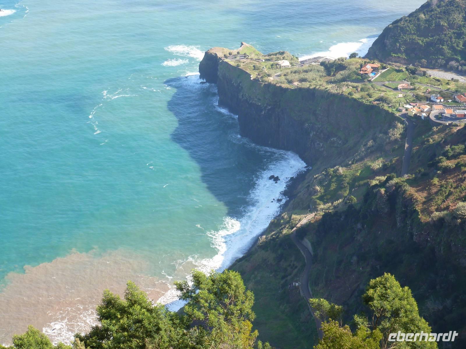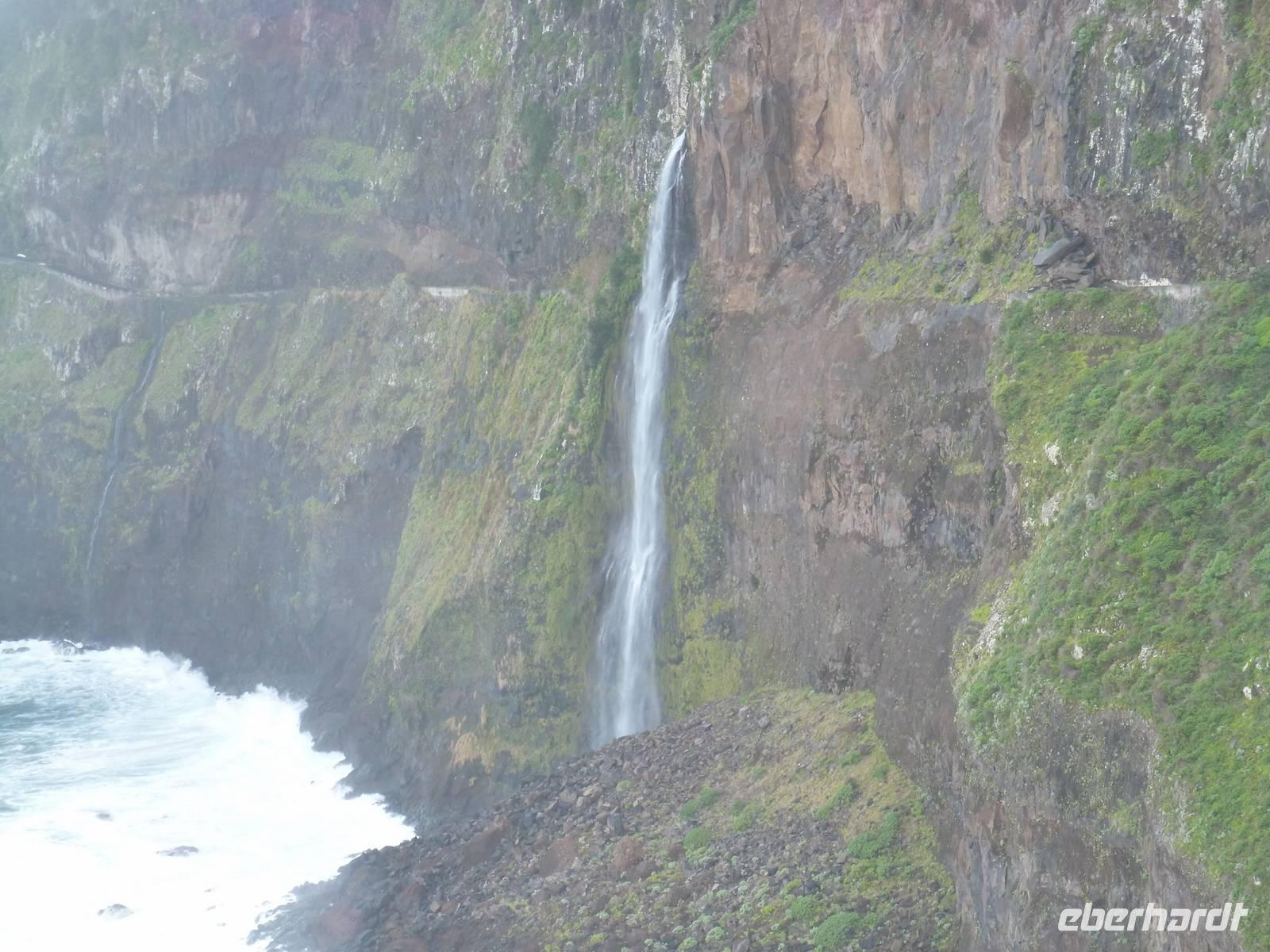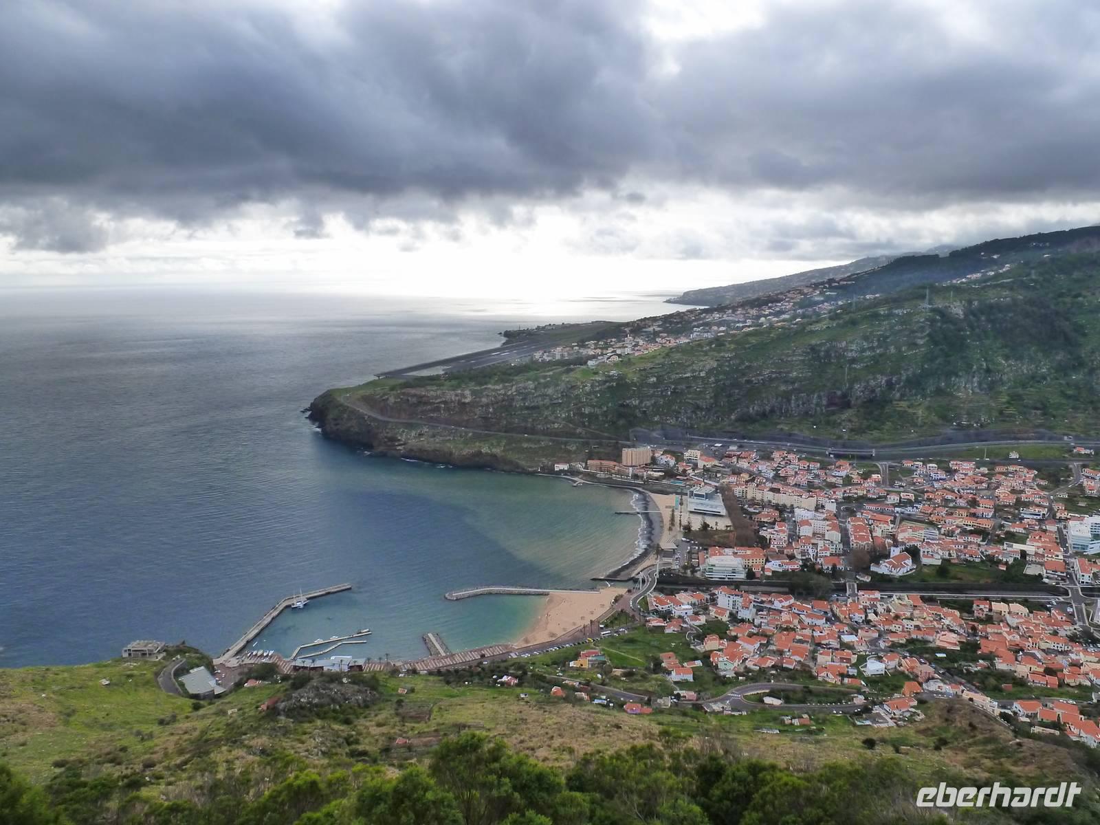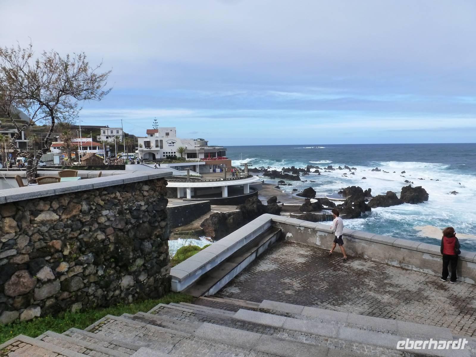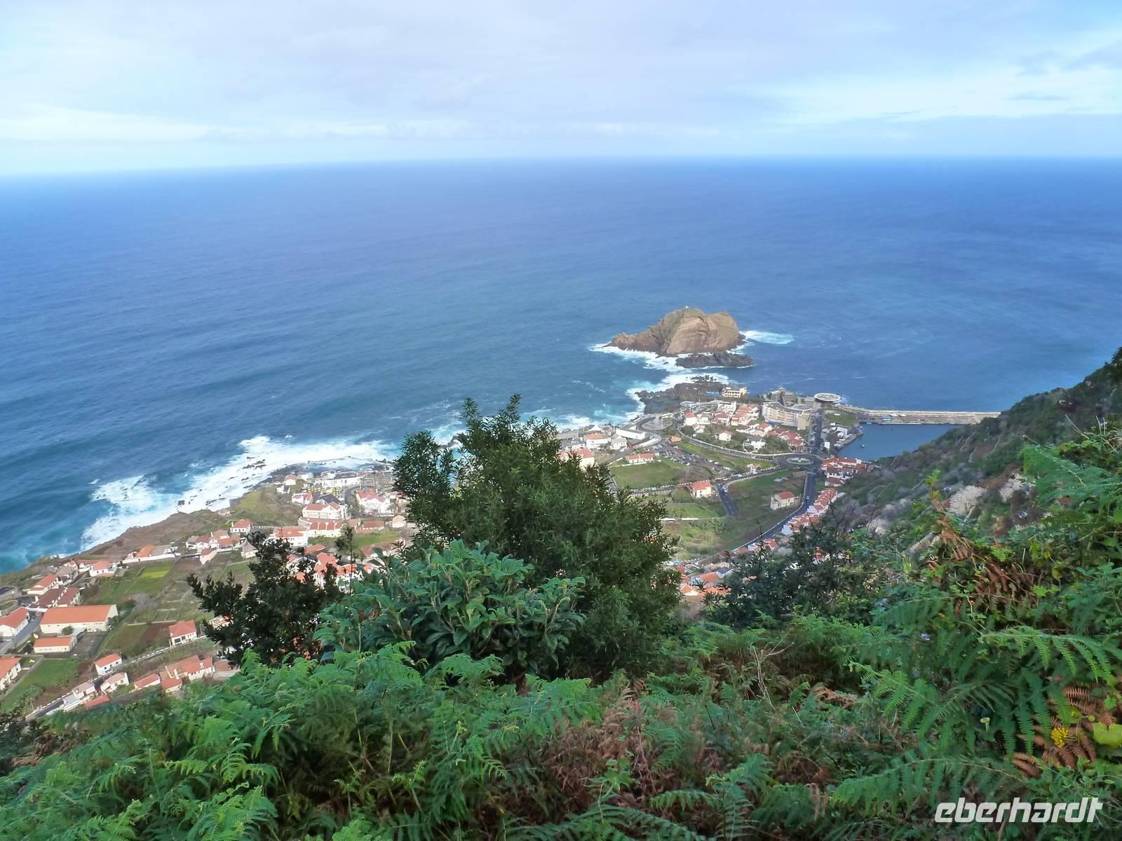 Heute Morgen müssen wir uns bereits von einigen Gästen verabschieden, denn diese fliegen heute bereits zurück nach Hause. Wir dürfen noch ein wenig bleiben und so fahren wir nach einem ausgiebigen Frühstück bei anfänglichen Regen zunächst nach Ribeira Brava, dem Zentrum des Westens. In Canico hat es bereits die ganze Nacht geregnet und eigentlich glauben wir alle nicht an einen Umschwung des Wetters, da sich der Himmel in einem düsteren Grau zeigt. Aber Luisa hat Petrus eine SMS geschickt und so strahlt wirklich wenige Minuten später wieder die Sonne. Wir hatten bei unserer Reise wirklich ein unfassbares Glück mit dem Wetter. In Ribeira Brava besuchen wir die kleine Ortskirche und die kleine Markthalle, in der nur drei Degenfische Platz haben. Auf Madeira ist eben alles ein bisschen kleiner. Anschließend fahren wir auf den berühmten Encumeada-Pass, der sich ganz oben dann doch nur im Nebel zeigt. Aber vorher können wir wirklich wunderbar sonnige Ausblicke auf die Westküste genießen. Unten angekommen besuchen wir das kleine Städtchen Sao Vicente, dessen Kirche und Friedhof wir besuchen. Danach führt uns unser Weg weiter nach Porto Moniz. Auf der Strecke sehen wir einige schöne Wasserfälle und Straßen, die durch Erdrutsche nicht mehr befahren werden können. Bereits von Weitem können wir anschließend die natürlichen Meeresschwimmbecken im Vulkangestein erkennen. Da es aber hier ein wenig regnerisch ist, entscheiden wir uns erst in das Restaurant Orca direkt am Meer einzukehren. Hier gilt es nun, welcher Degenfisch mit Banane den Gästen besser schmeckt. Und wie so oft, gewinnt der deutsche Koch vom Vortag, obwohl der Degenfisch auch hier nicht schlecht geschmeckt hat. Nach einem ausgiebigen Mittagessen unternehmen wir einen ausführlichen Spaziergang in Porto Moniz und sind begeistert, von den Wellen, die hier gegen das Gestein prallen. Ein tolles Naturschauspiel und auch hier werden wir nach dem Essen von Sonne verwöhnt. Anschließend kehren wir am Nachmittag zurück zu unserem Hotel und verabschieden unseren Gast, der erst morgen Vormittag nach Hause fliegt. Welch ein Glück, denn für uns beginnt die Heimreise bereits um 03:15 Uhr. So verbringen alle Gäste den Abend individuell und bereiten sich auf die frühe Abfahrt vor.
